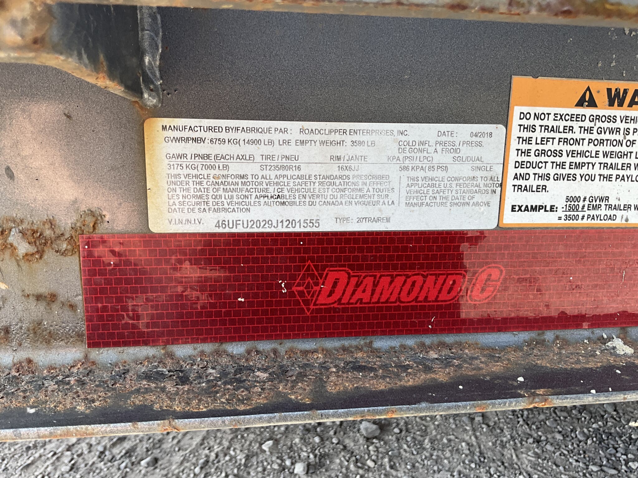 USED 2018 DIAMOND C 14K SPLIT DECK TILT 20 FT