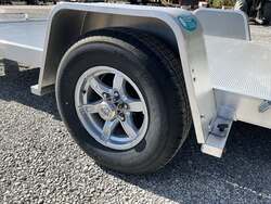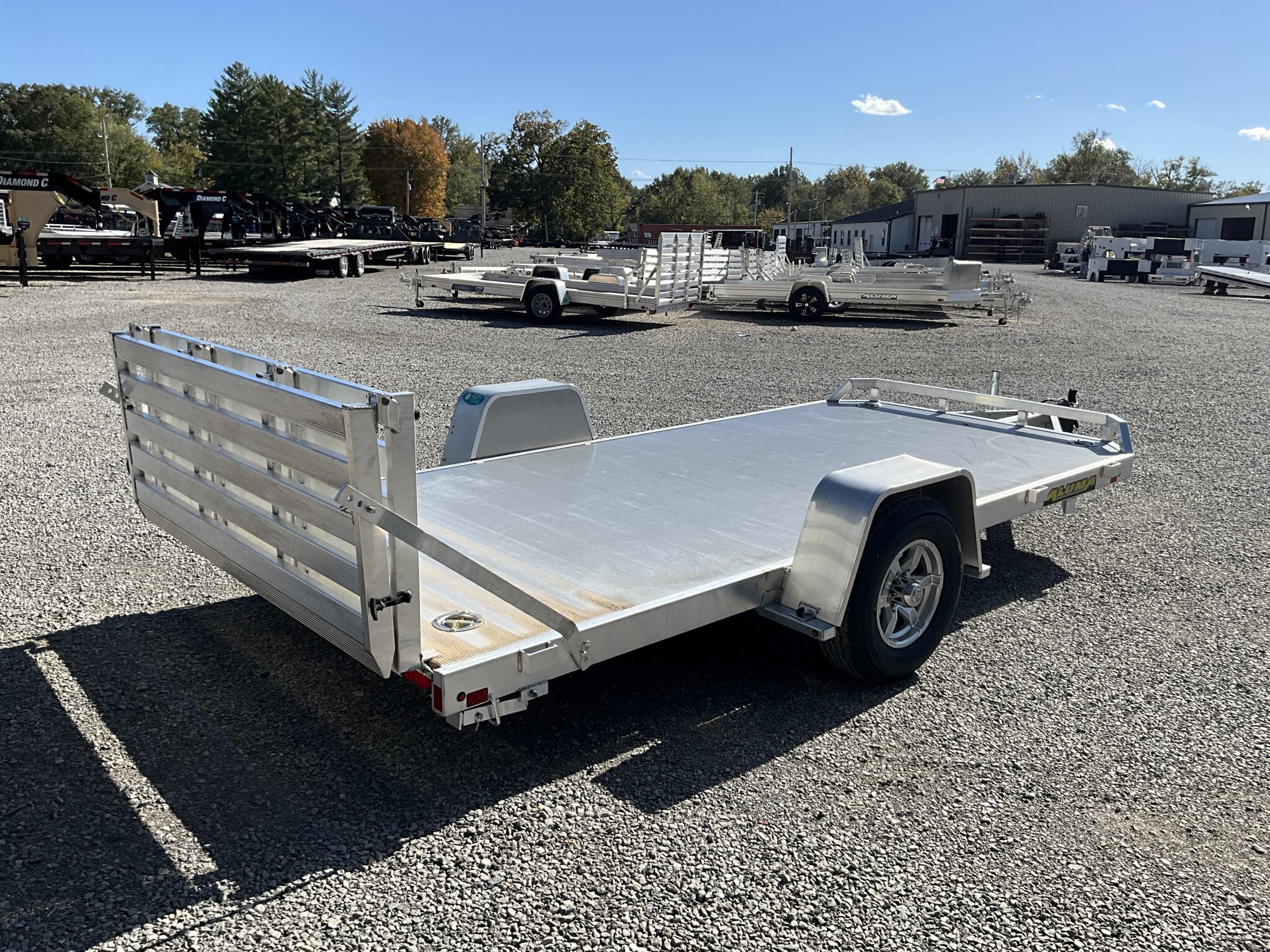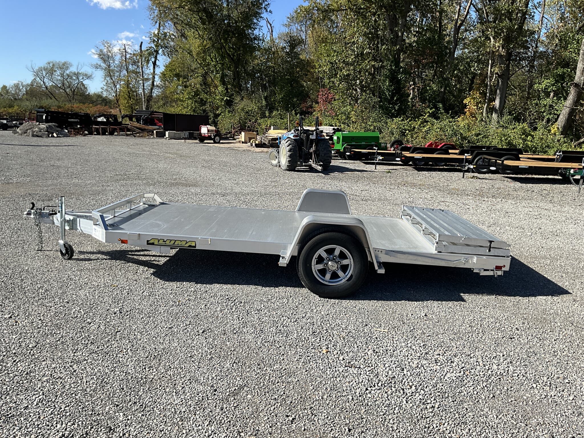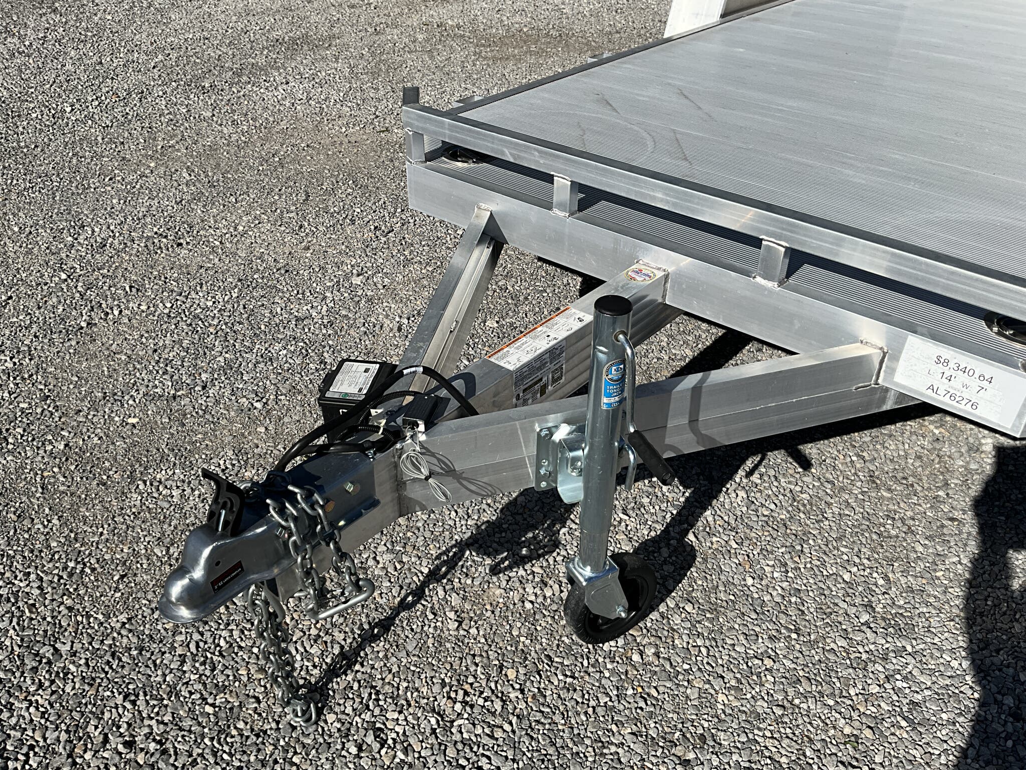2024 ALUMA 82" X 14' HEAVY DUTY SINGLE AXLE ALUMINUM TRAILER, 5200# ELECTRIC BRAKE TORSION AXLE, ST225/75R15" RADIAL TIRES, ALUMINUM WHEELS, REMOVABLE FENDERS, FRONT RETAINING RAIL, FOLD DOWN REAR STABILIZER JACKS, (6) STAKE POCKETS (3 PER SIDE), (4) RECESSED TIE RINGS, REAR BI-FOLD TAILGATE, EXTRUDED ALUMINUM FLOOR, SWIVEL TONGUE JACK, LED LIGHTS, 2" BOLT ON COUPLER.