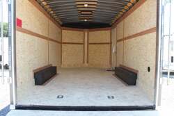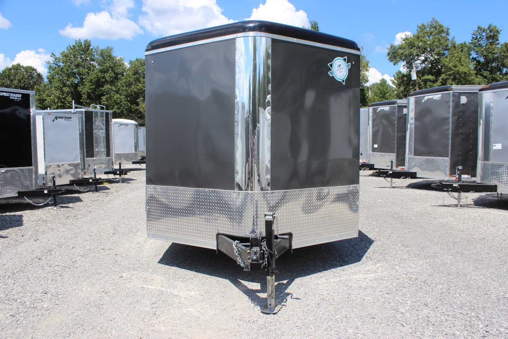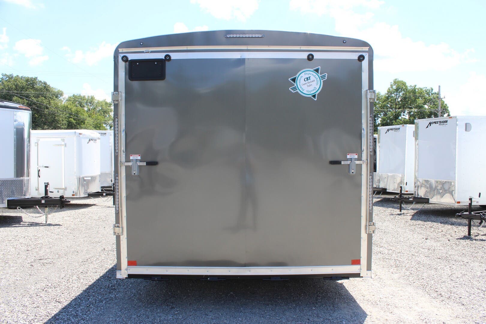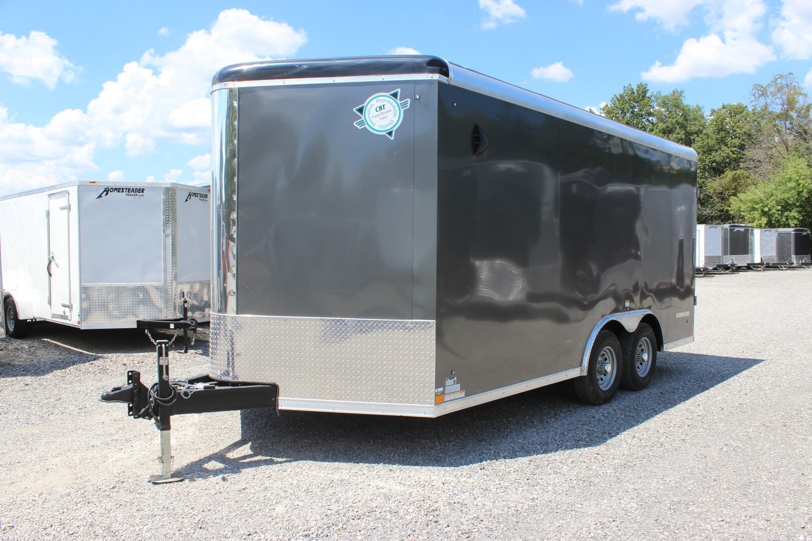 2023 COUNTRY BLACKSMITH ENCLOSED CARGO TRAILER, PLATINUM SERIES, ROUND TOP WITH WEDGE NOSE, 24" TALL FRONT STONEGUARD, BRITE FRONT NOSE, 8.5' X 16' PLUS 3' WEDGE NOSE, 84" INTERIOR HEIGHT, ONE PIECE ALUMINUM ROOF, 6" EXTENDED TONGUE WITH TRIPLE TUBE, 2-5.2K TORSION RIDE AXLES, ELECTRIC BRAKES ON ALL WHEELS, BREAKAWAY KIT, SILVER 15" WHEELS WITH ST225/75/R15 RADIAL 8 PLY TIRES, REAR RAMP DOOR W/ FLAP, 2ND GRAB HANDLE, 36" ALUMINUM FRAME SIDE DOOR WITH RV LATCH AND BAR LOCK, ALUMINUM DOOR HOLDBACKS, ALL KEYED ALIKE-ALL 3 HASPS, HIGH QUALITY .030" ALUMINUM SHEET METAL EXTERIOR, SCREWLESS, CHARCOAL EXTERIOR COLOR, 3" HEAVY DUTY BOTTOM TRIM, 12" WALL, ROOF AND FLOOR CENTERS, HD TUBE SIDEWALL FRAME, HD TOP TUBE FRAME, ELECTROLYSIS BARRIER BETWEEN STEEL AND ALUMINUM, TUBE MAIN FRAME AND C-CHANNEL FLOOR CROSSMEMBERS, WELDED CONSTRUCTION, REAR SILL UPGRADED TO 2" TUBE, UNDERCOATING ON FRAME, FRAMED FOR ROOF VENT, FLOW THRU SIDEWALL VENTS, 3/8" DRYMAX WALLS, 3/4" DRYMAX FLOOR, WATERPROOF, LED LIGHTS, DOT COMPLIANT, RV 7 PIN PLUG, 2ND SET OF STRIP LED TAILLIGHTS, (3) LED DOME LIGHTS WITH SWITCH, 2-5/16" ADJUSTABLE BALL COUPLER, DOT RATED SAFETY CHAINS, 7K DROP LEG JACK, 3 YEAR FRAME WARRANTY.