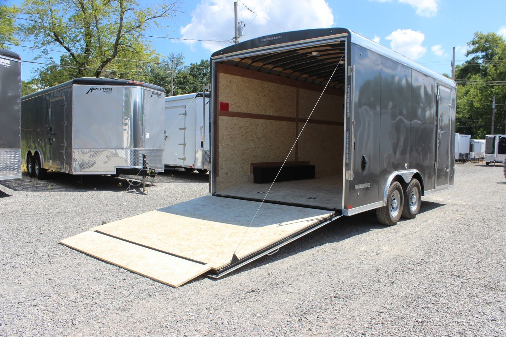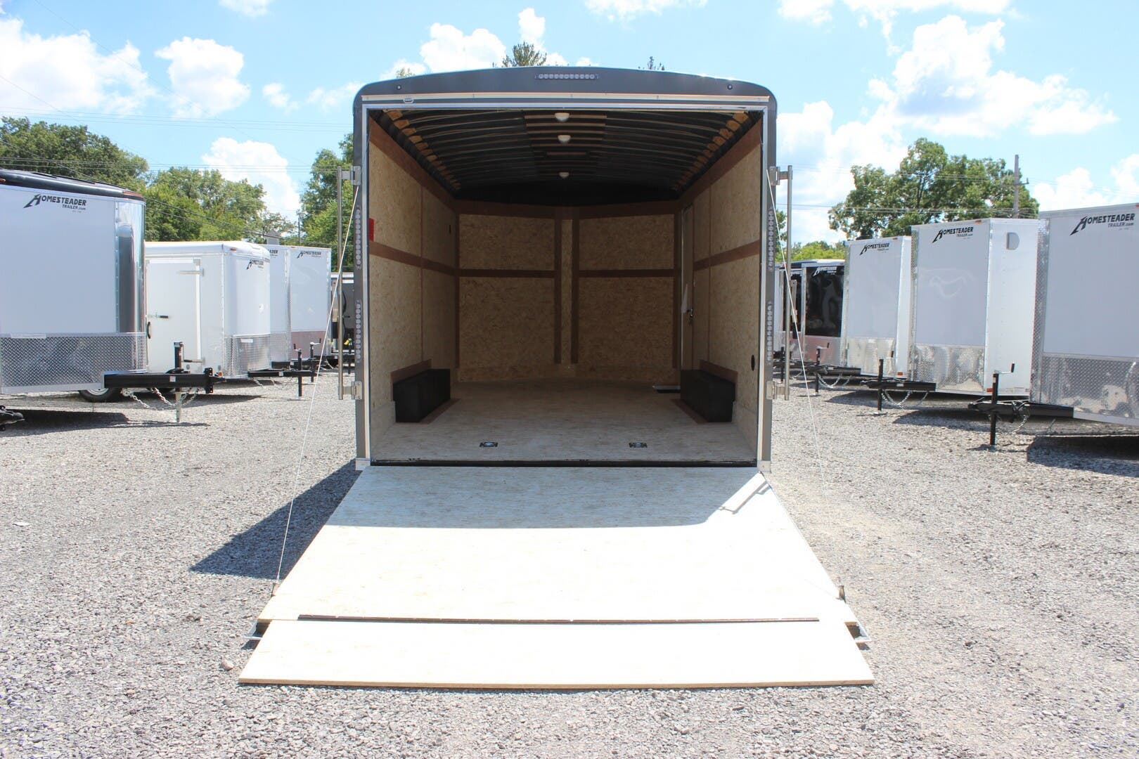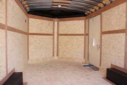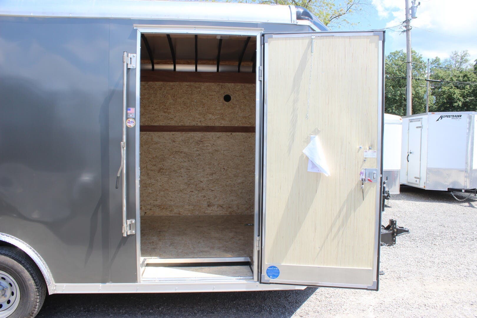 2023 COUNTRY BLACKSMITH ENCLOSED CARGO TRAILER, PLATINUM SERIES, ROUND TOP WITH WEDGE NOSE, 24" TALL FRONT STONEGUARD, BRITE FRONT NOSE, 8.5' X 16' PLUS 3' WEDGE NOSE, 84" INTERIOR HEIGHT, ONE PIECE ALUMINUM ROOF, 6" EXTENDED TONGUE WITH TRIPLE TUBE, 2-5.2K TORSION RIDE AXLES, ELECTRIC BRAKES ON ALL WHEELS, BREAKAWAY KIT, SILVER 15" WHEELS WITH ST225/75/R15 RADIAL 8 PLY TIRES, REAR RAMP DOOR W/ FLAP, 2ND GRAB HANDLE, 36" ALUMINUM FRAME SIDE DOOR WITH RV LATCH AND BAR LOCK, ALUMINUM DOOR HOLDBACKS, ALL KEYED ALIKE-ALL 3 HASPS, HIGH QUALITY .030" ALUMINUM SHEET METAL EXTERIOR, SCREWLESS, CHARCOAL EXTERIOR COLOR, 3" HEAVY DUTY BOTTOM TRIM, 12" WALL, ROOF AND FLOOR CENTERS, HD TUBE SIDEWALL FRAME, HD TOP TUBE FRAME, ELECTROLYSIS BARRIER BETWEEN STEEL AND ALUMINUM, TUBE MAIN FRAME AND C-CHANNEL FLOOR CROSSMEMBERS, WELDED CONSTRUCTION, REAR SILL UPGRADED TO 2" TUBE, UNDERCOATING ON FRAME, FRAMED FOR ROOF VENT, FLOW THRU SIDEWALL VENTS, 3/8" DRYMAX WALLS, 3/4" DRYMAX FLOOR, WATERPROOF, LED LIGHTS, DOT COMPLIANT, RV 7 PIN PLUG, 2ND SET OF STRIP LED TAILLIGHTS, (3) LED DOME LIGHTS WITH SWITCH, 2-5/16" ADJUSTABLE BALL COUPLER, DOT RATED SAFETY CHAINS, 7K DROP LEG JACK, 3 YEAR FRAME WARRANTY.