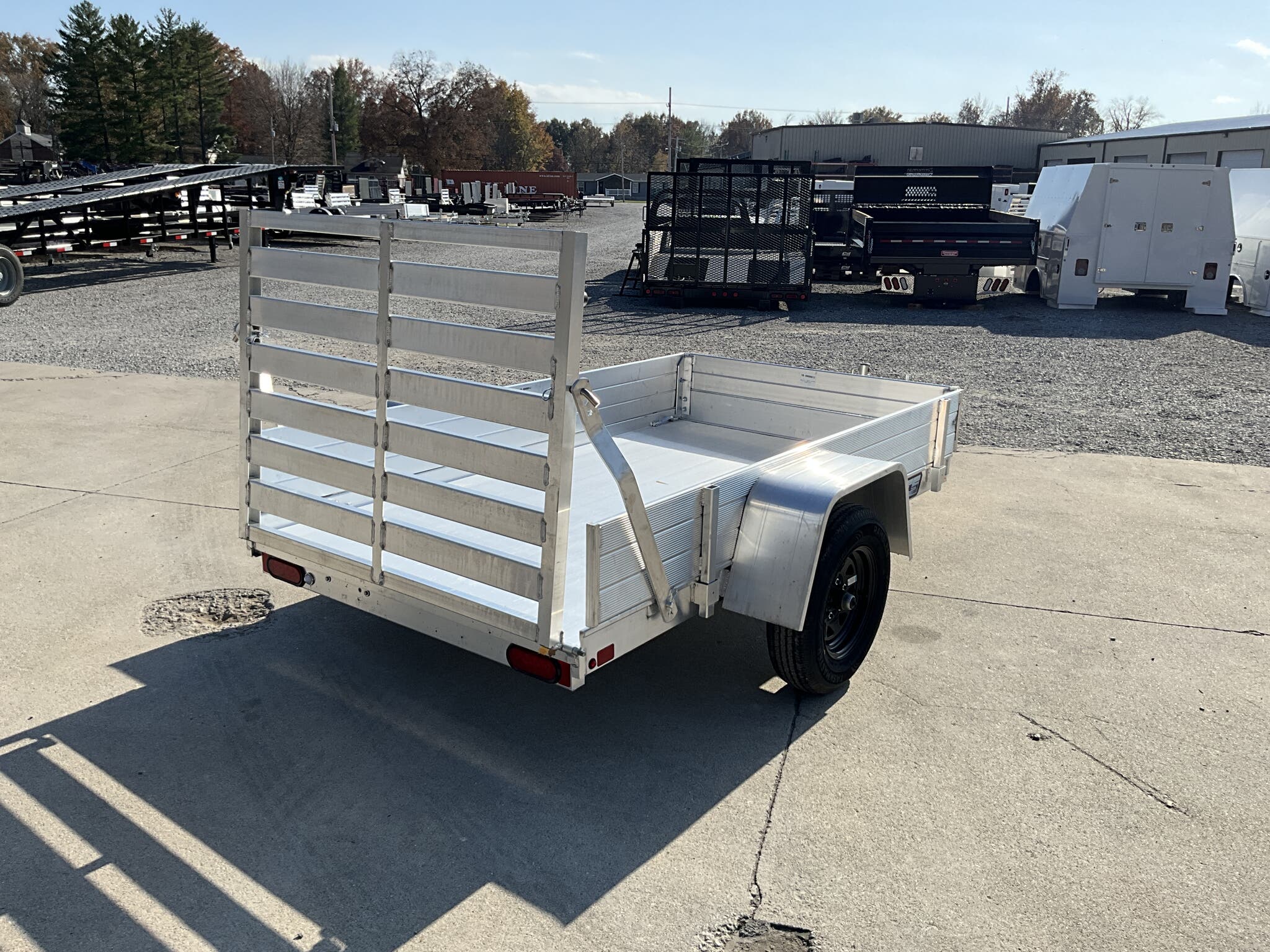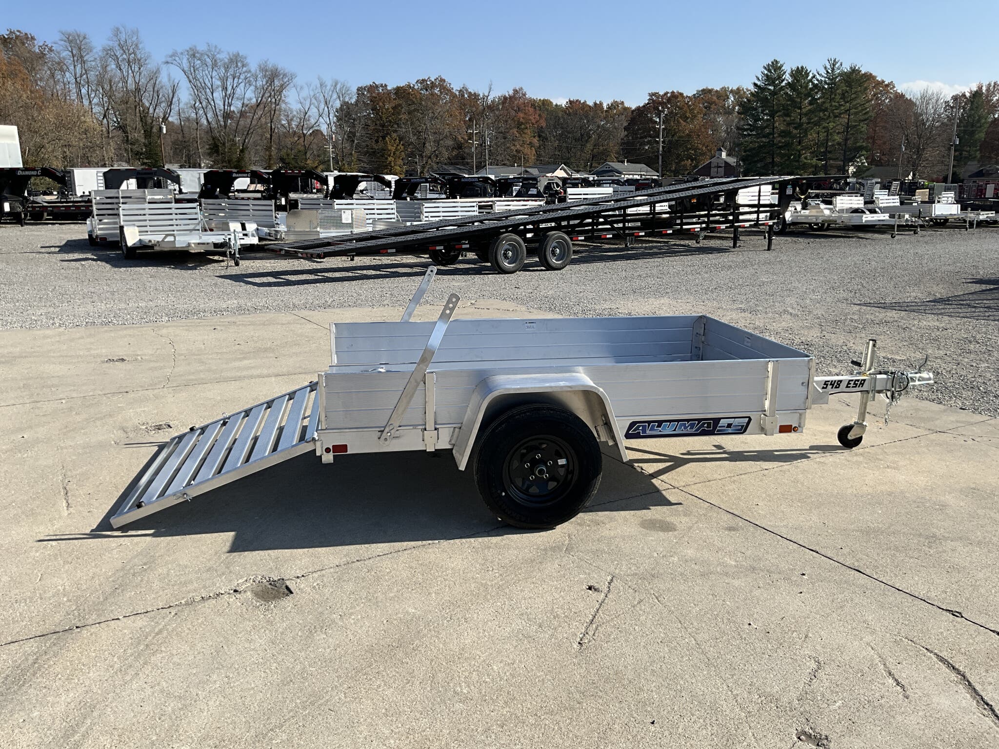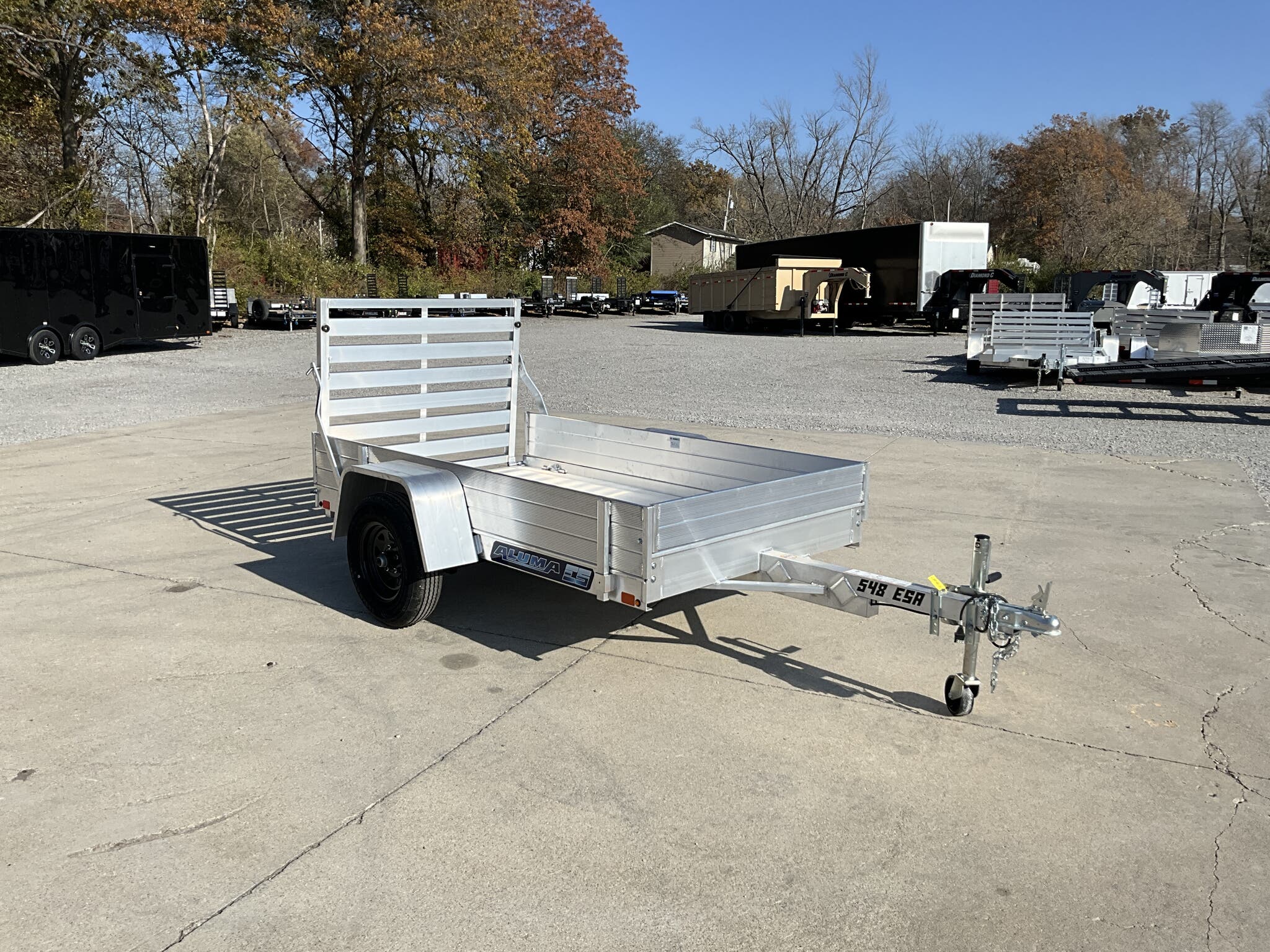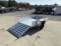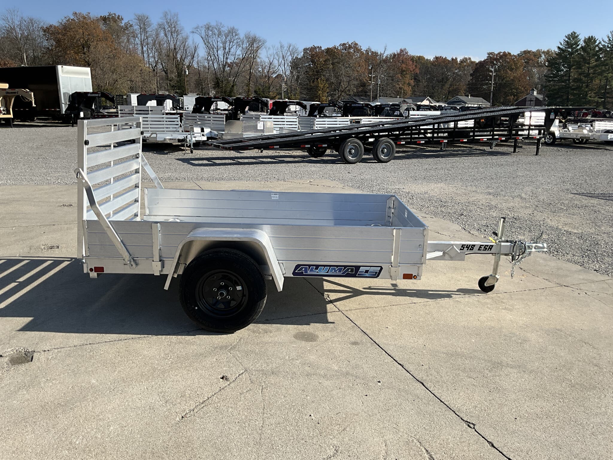 2026 ALUMA 548ESA S TG 54" x 96" Aluminum Utility, 2,000 lb GVWR, 12" Solid Side Kit, Rear Ramp Gate For Sale in Illinois Standout Options: 12" solid side kit Standout Options: Rear ramp gate (TG) Specs Axle/Suspension: 2,000 lb rubber torsion idler axle Specs Tires/Wheels: ST175/80R13 radial tires; 5 lug wheels Specs Floor: Extruded aluminum deck Specs Fenders: Aluminum Specs Tie Downs: Stake pockets and tie down loops (as equipped) Specs Tongue/Coupler/Jack: A frame tongue; 2" coupler; swivel tongue jack Specs Lighting/Safety: LED lighting; safety chains; 4 flat/RV plug as equipped Specs Finish/Warranty: All aluminum construction; manufacturer s limited warranty Weights & Capacities Total Axle Capacity (used for payload math): 2,000 lb Weights & Capacities Empty/Trailer Weight: 390 lb Weights & Capacities Payload on Axles (Capacity Empty): 2,000 390 = 1,610 lb Weights & Capacities Target Tongue Load (Bumper pull @ ~10% of Capacity): 200 lb Weights & Capacities Total Effective Payload (Axles + Tongue Support): 1,610 + 200 = 1,810 lb Delivery from 62864 (Lower 48): Up to 100 miles: $150 Delivery from 62864 (Lower 48): 101 300 miles: $2.00/mile Delivery from 62864 (Lower 48): 301 1200 miles: $3.00/mile Delivery from 62864 (Lower 48): Over 1200 miles: $4.00/mile