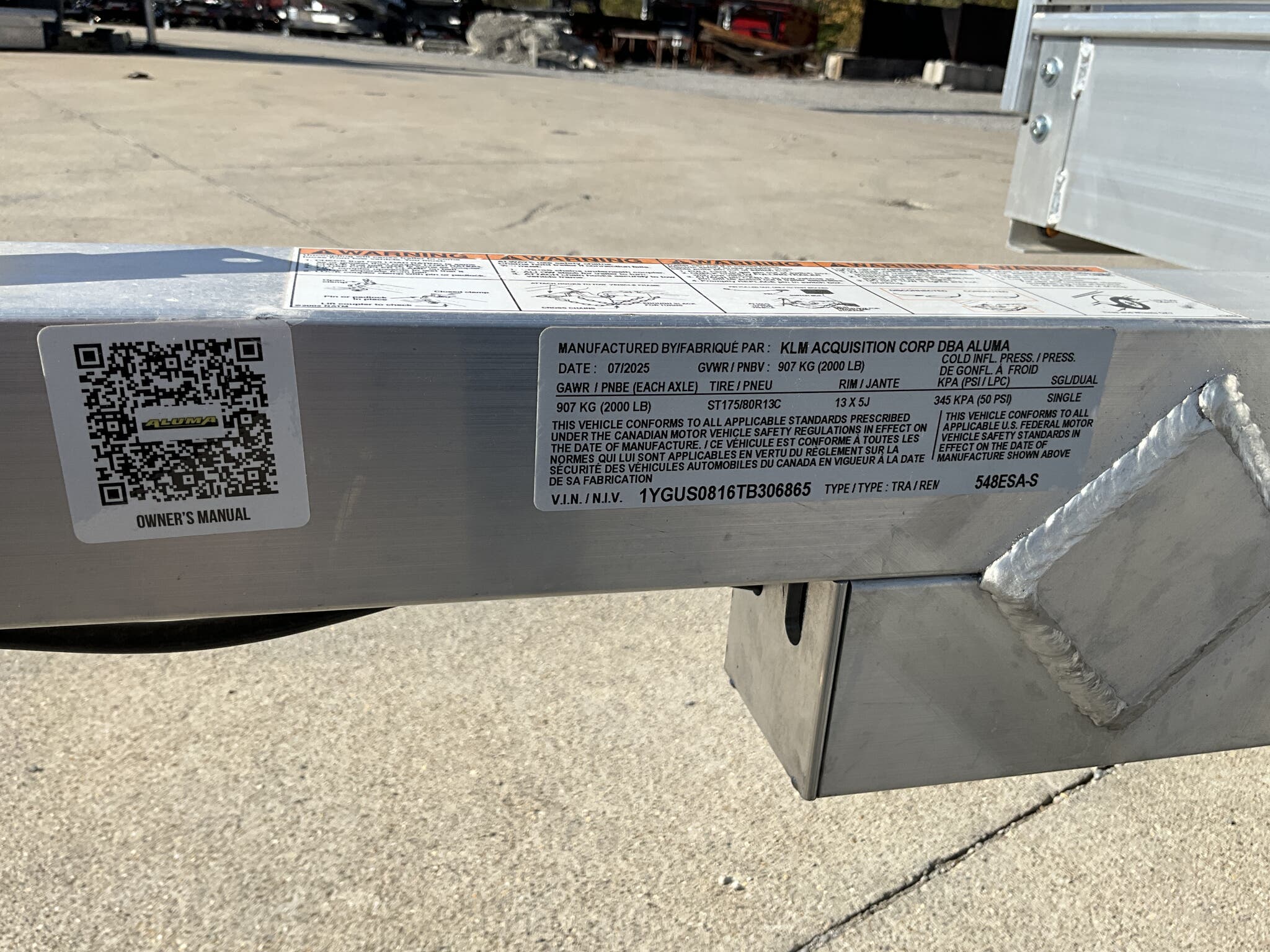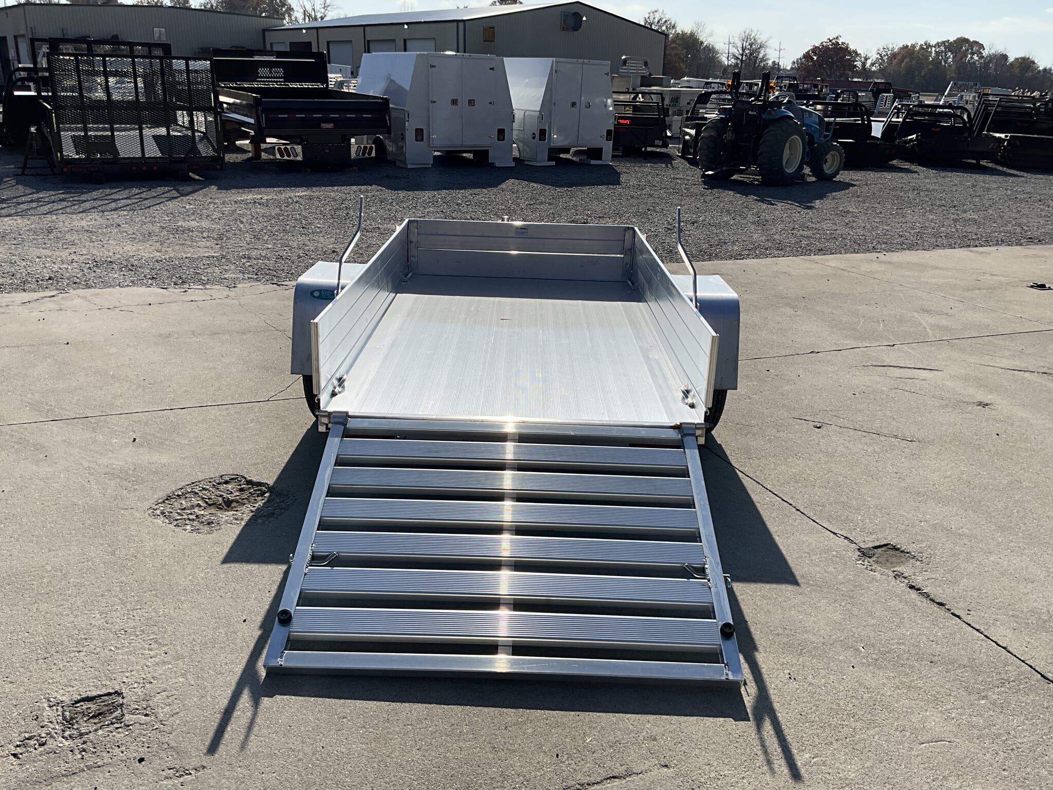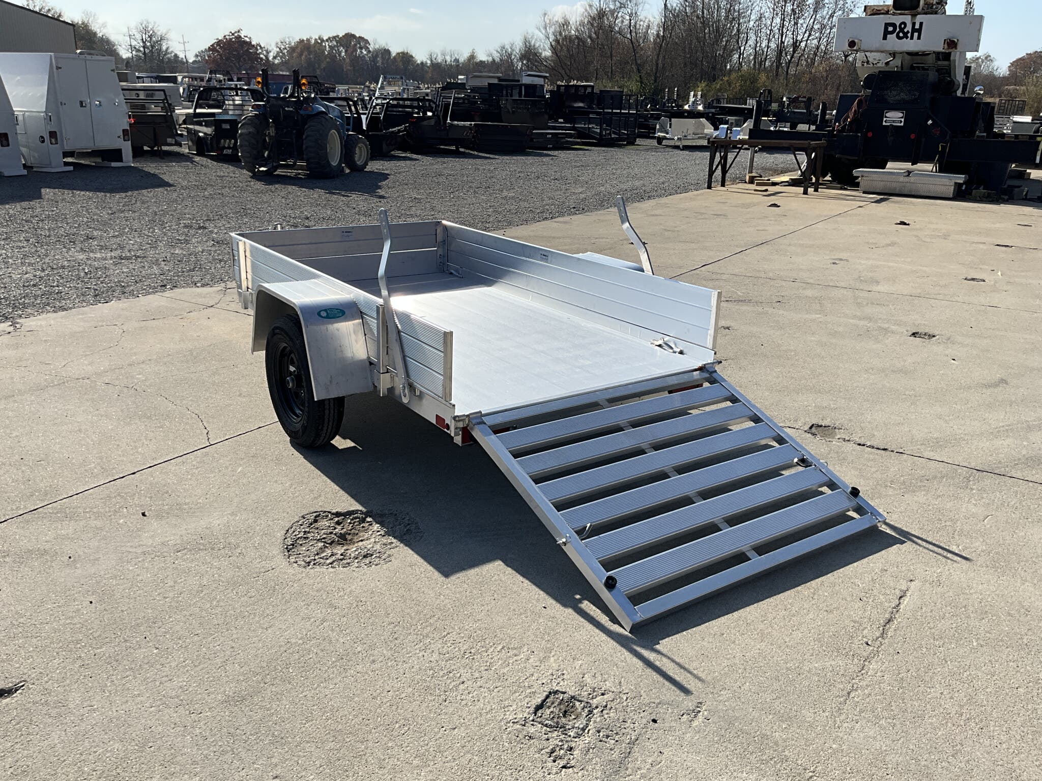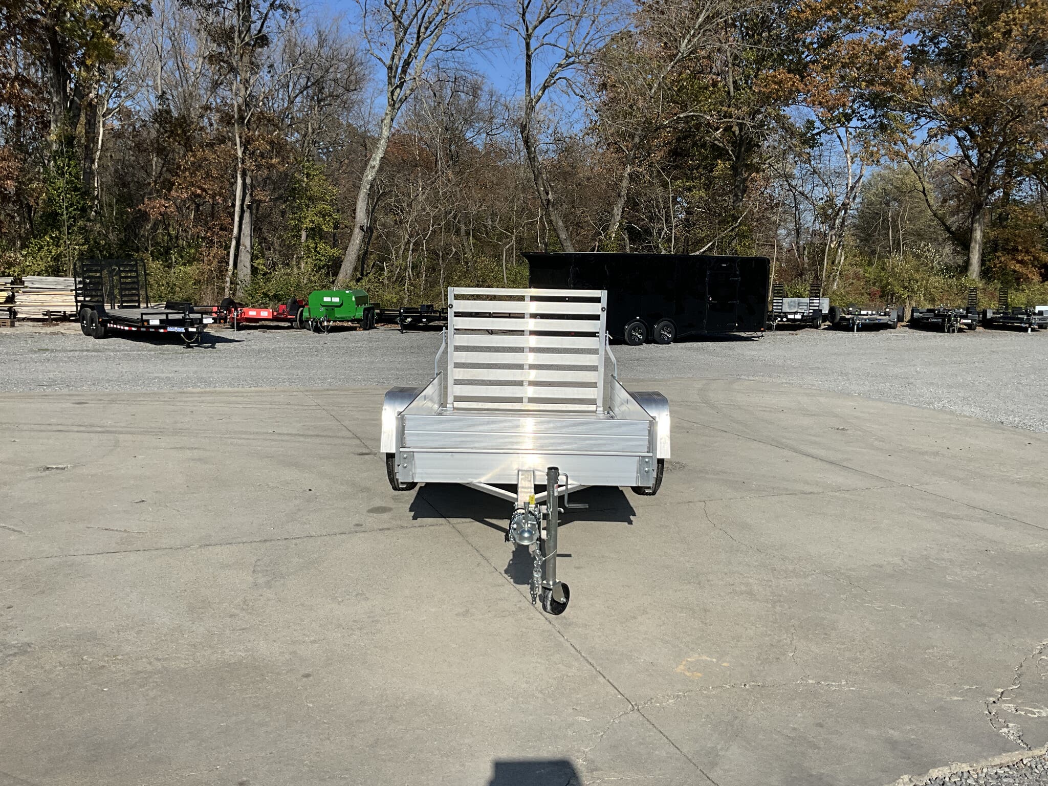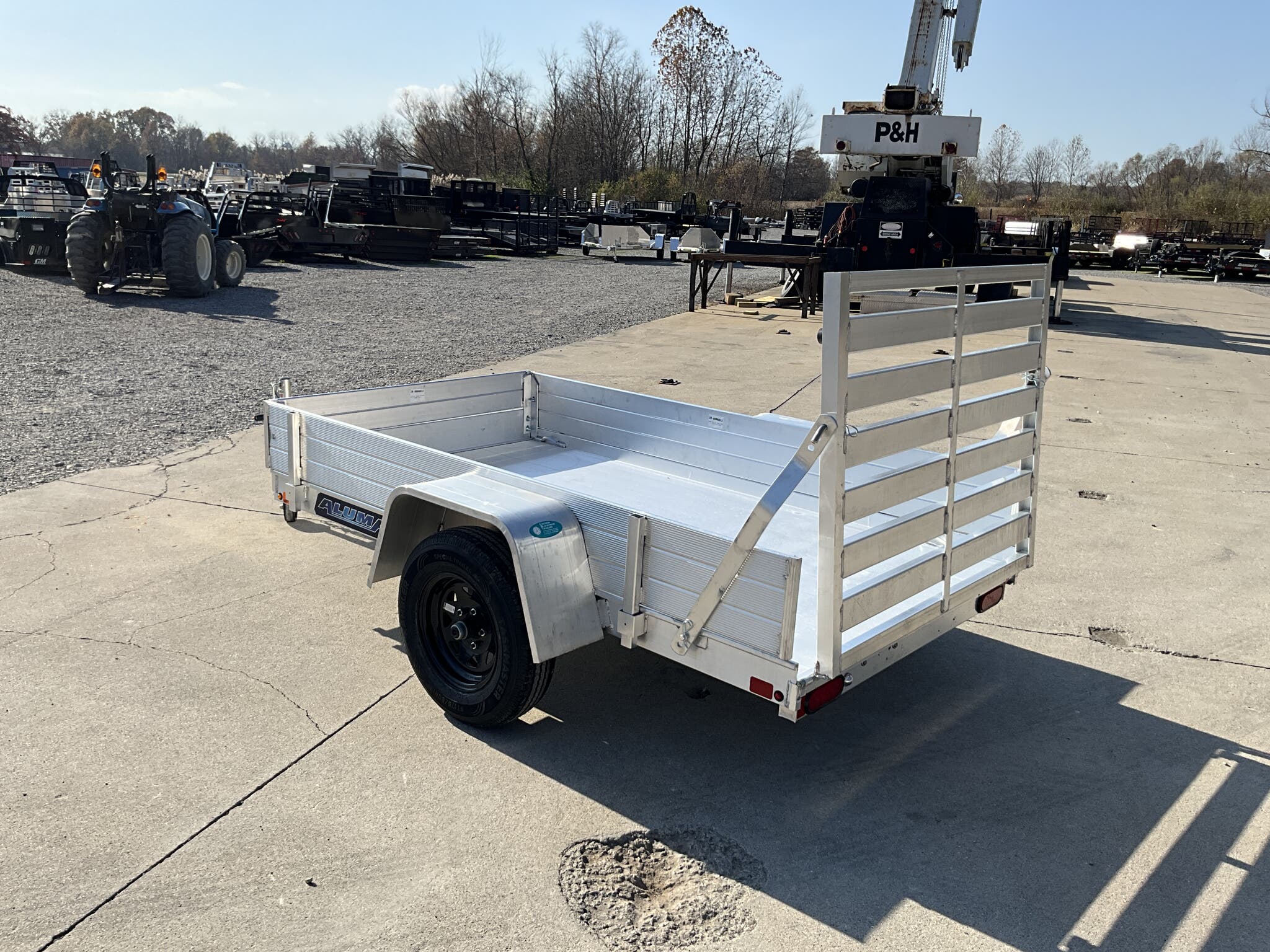 2026 ALUMA 548ESA S TG 54" x 96" Aluminum Utility, 2,000 lb GVWR, 12" Solid Side Kit, Rear Ramp Gate For Sale in Illinois Standout Options: 12" solid side kit Standout Options: Rear ramp gate (TG) Specs Axle/Suspension: 2,000 lb rubber torsion idler axle Specs Tires/Wheels: ST175/80R13 radial tires; 5 lug wheels Specs Floor: Extruded aluminum deck Specs Fenders: Aluminum Specs Tie Downs: Stake pockets and tie down loops (as equipped) Specs Tongue/Coupler/Jack: A frame tongue; 2" coupler; swivel tongue jack Specs Lighting/Safety: LED lighting; safety chains; 4 flat/RV plug as equipped Specs Finish/Warranty: All aluminum construction; manufacturer s limited warranty Weights & Capacities Total Axle Capacity (used for payload math): 2,000 lb Weights & Capacities Empty/Trailer Weight: 390 lb Weights & Capacities Payload on Axles (Capacity Empty): 2,000 390 = 1,610 lb Weights & Capacities Target Tongue Load (Bumper pull @ ~10% of Capacity): 200 lb Weights & Capacities Total Effective Payload (Axles + Tongue Support): 1,610 + 200 = 1,810 lb Delivery from 62864 (Lower 48): Up to 100 miles: $150 Delivery from 62864 (Lower 48): 101 300 miles: $2.00/mile Delivery from 62864 (Lower 48): 301 1200 miles: $3.00/mile Delivery from 62864 (Lower 48): Over 1200 miles: $4.00/mile