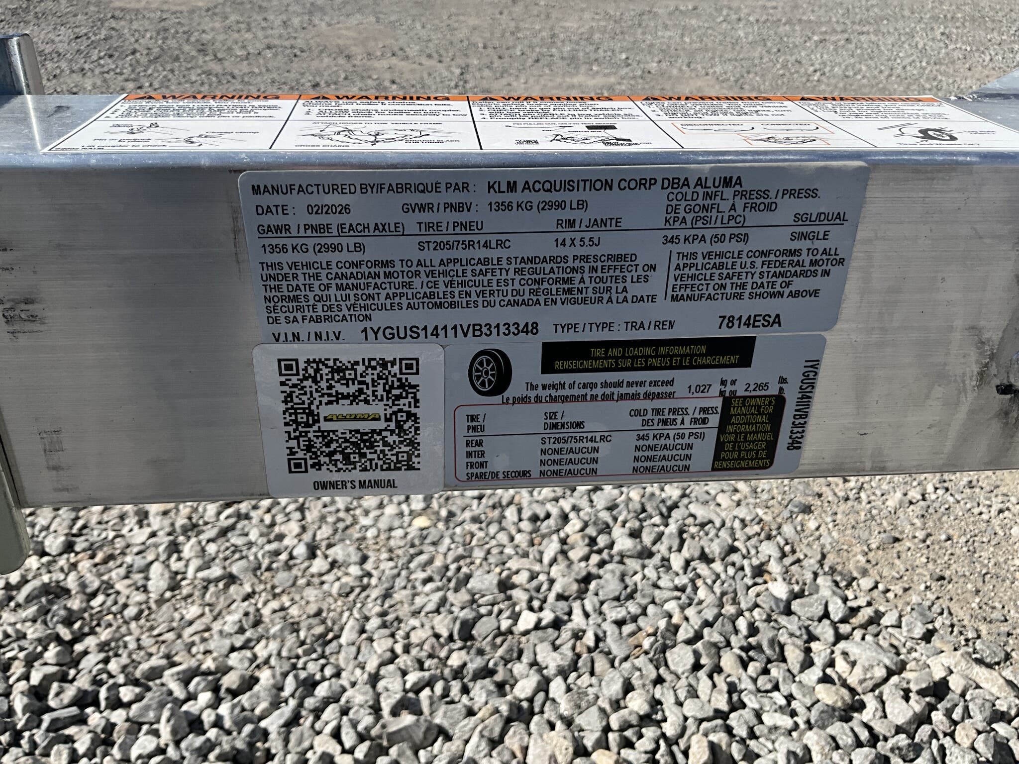 Specs — Tires/Wheels: ST205/75R14 radial trailer tires on steel wheels