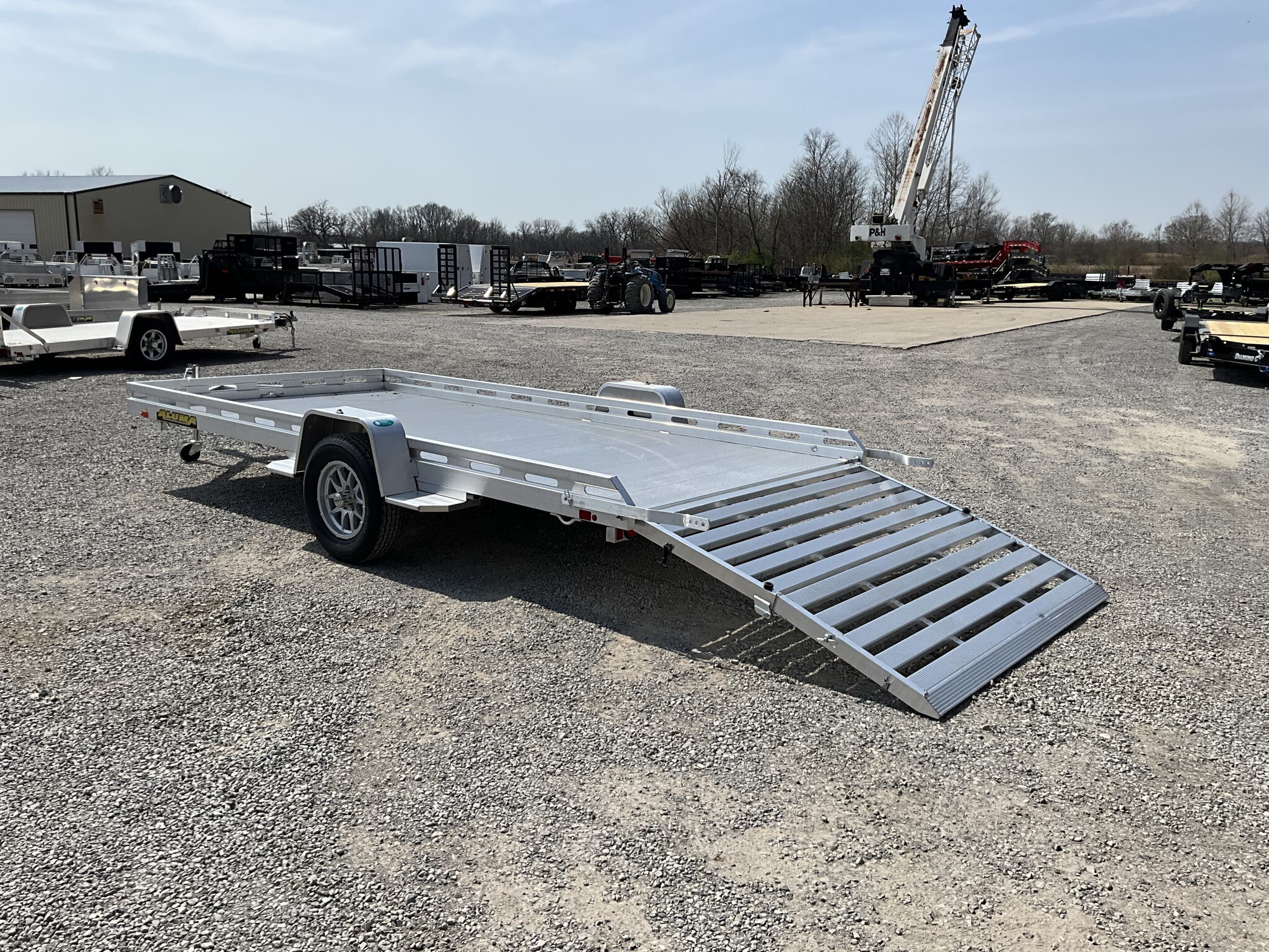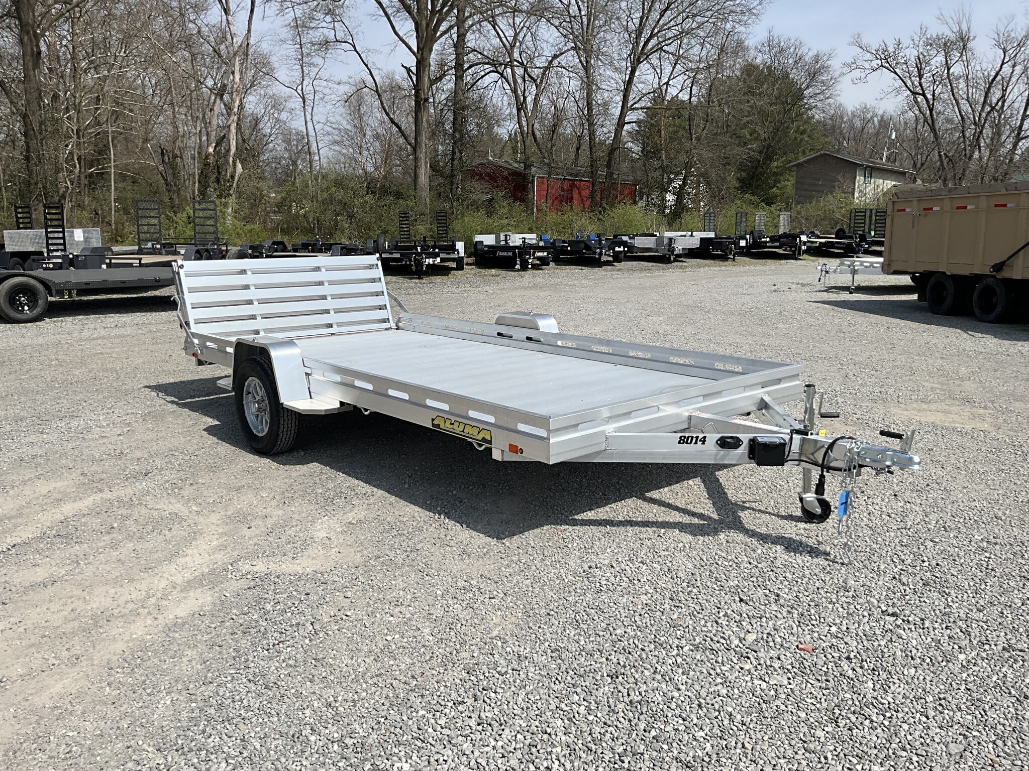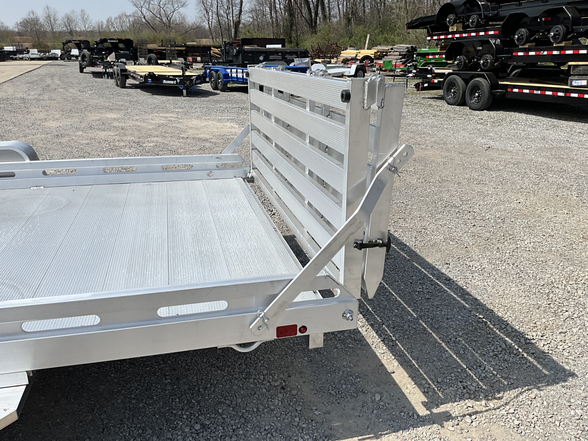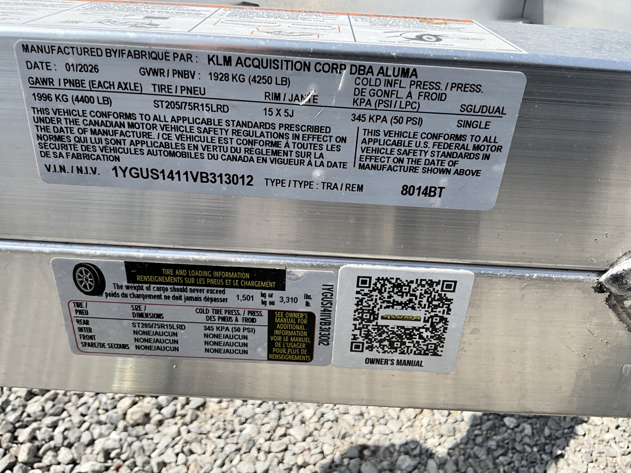 2026 ALUMA 8014S EL BT 6'7" 14'3" ALL ALUMINUM UTILITY TRAILER WITH BI FOLD TAILGATE AND FRONT SIDE RAMPS FOR SALE IN MOUNT VERNON, IL 62864 Feature: Full width aluminum bi fold tailgate for easy loading of mowers, ATVs, and equipment Feature: Dual front side ramps for loading ATVs or equipment from the front Feature: Lightweight all aluminum construction for corrosion resistance Feature: Extruded aluminum floor for durability and long service life Specs Model: Aluma 8014S EL BT Specs Size: 6'7" 14'3" (80.75" 172") Specs Construction: All aluminum trailer construction (excluding axle & coupler) Specs Floor: Extruded aluminum plank flooring Specs Axle/Brakes: (1) 3,500 lb rubber torsion axle with electric brakes and breakaway kit Specs Axle Service: Easy lube hubs Specs Tires/Wheels: ST205/75R14 radial trailer tires on aluminum wheels Specs Frame: Aluminum frame with 12" solid front Specs Coupler: 2 5/16" A frame coupler Specs Jack: 1,200 lb swivel tongue jack Specs Ramps: (2) 69" 12" front side ramps Specs Tailgate: Aluminum bi fold tailgate (75.5" 60") Specs Tie Downs: (8) tie down loops Specs Fenders: Aluminum fenders Specs Lighting: LED lighting package with safety chains Specs Warranty: Aluma 5 year limited warranty (1 year commercial) Weights & Capacities Empty Trailer Weight: 860 lb Total Axle Capacity: 3,500 lb Estimated Payload Capacity: 2,640 lb Delivery from 62864 (Lower 48) Up to 100 miles $150 101 300 miles $2.00/mile 301 1200 miles $3.00/mile Over 1200 miles $4.00/mile