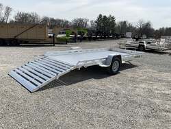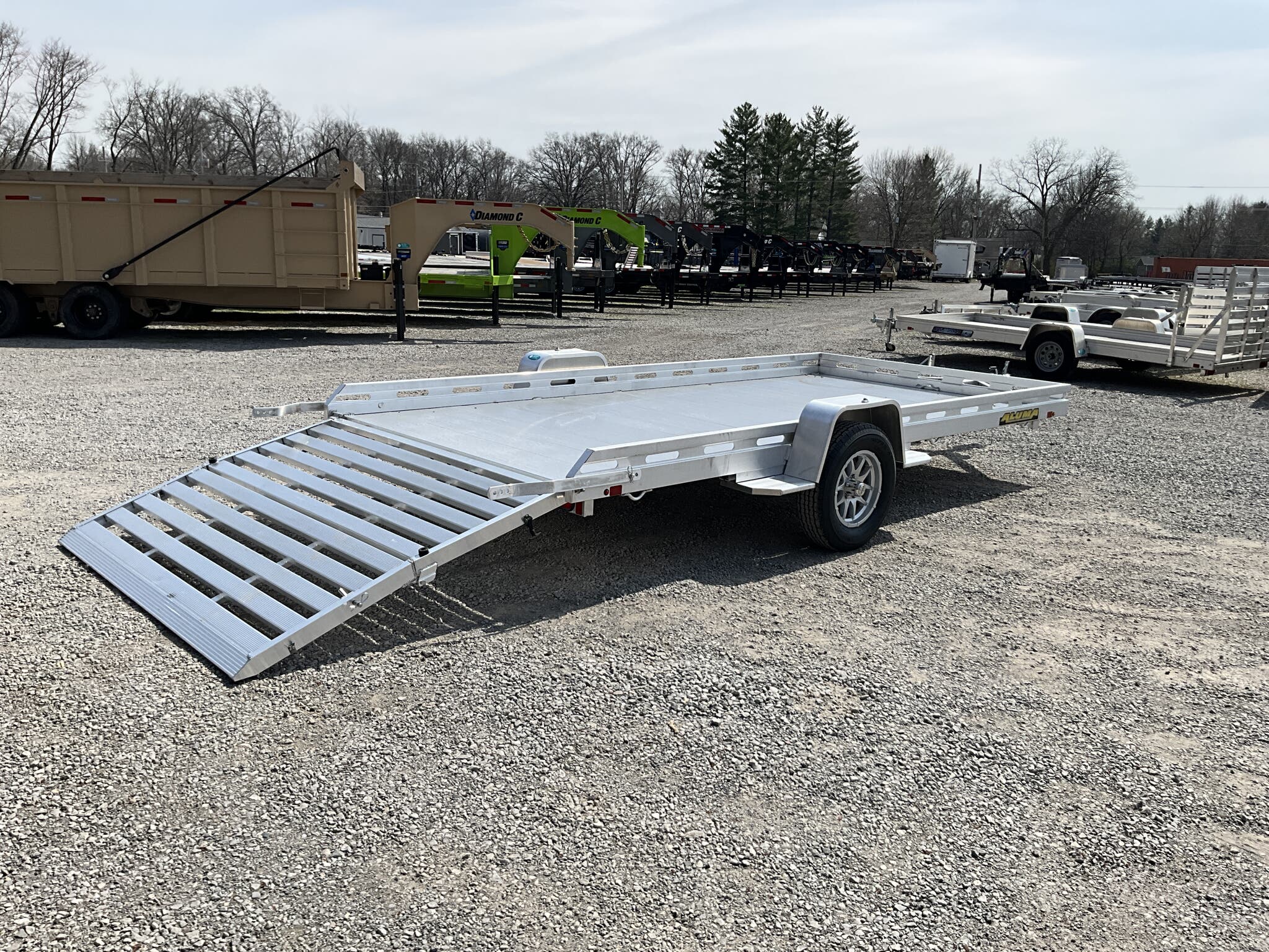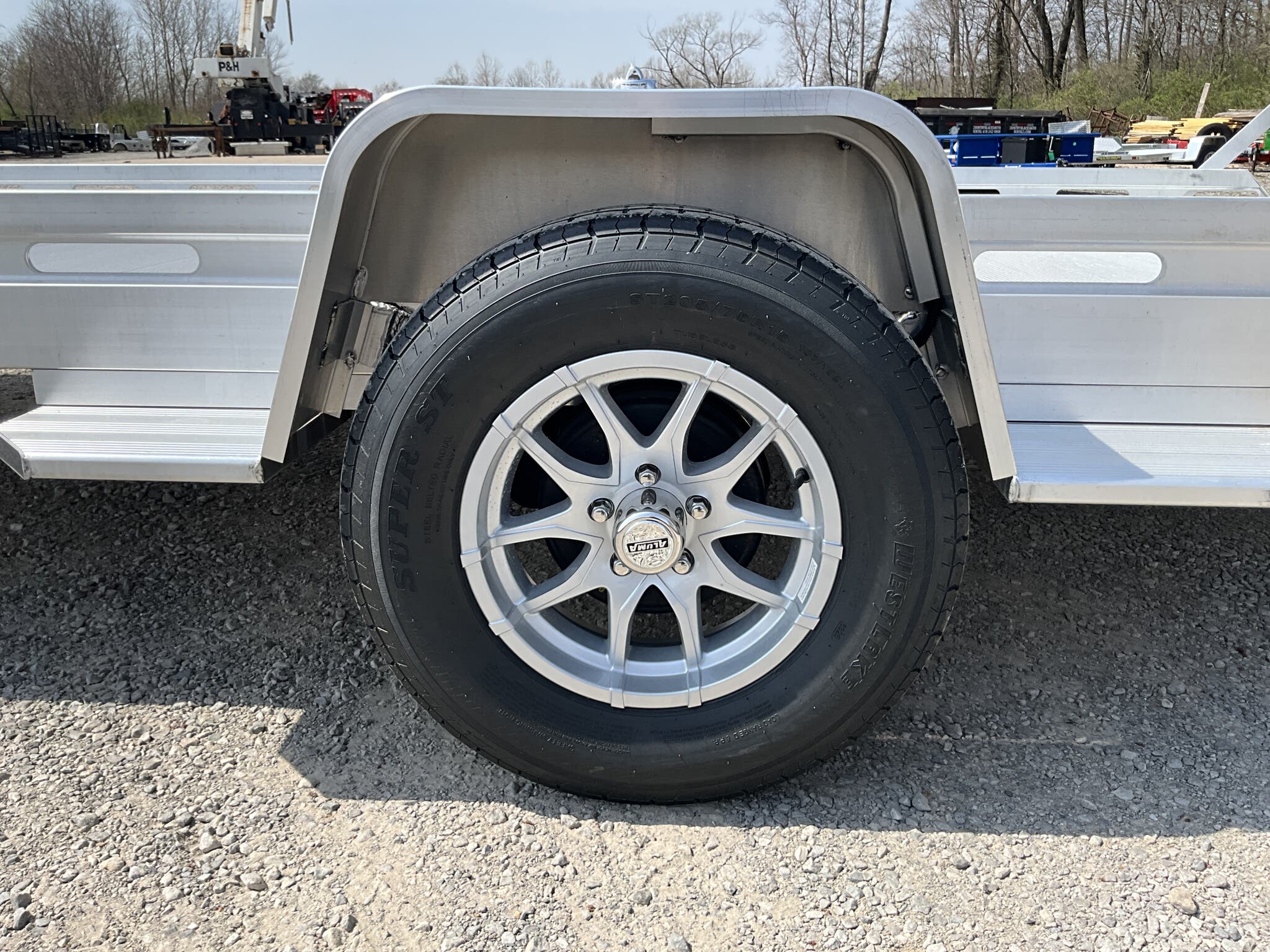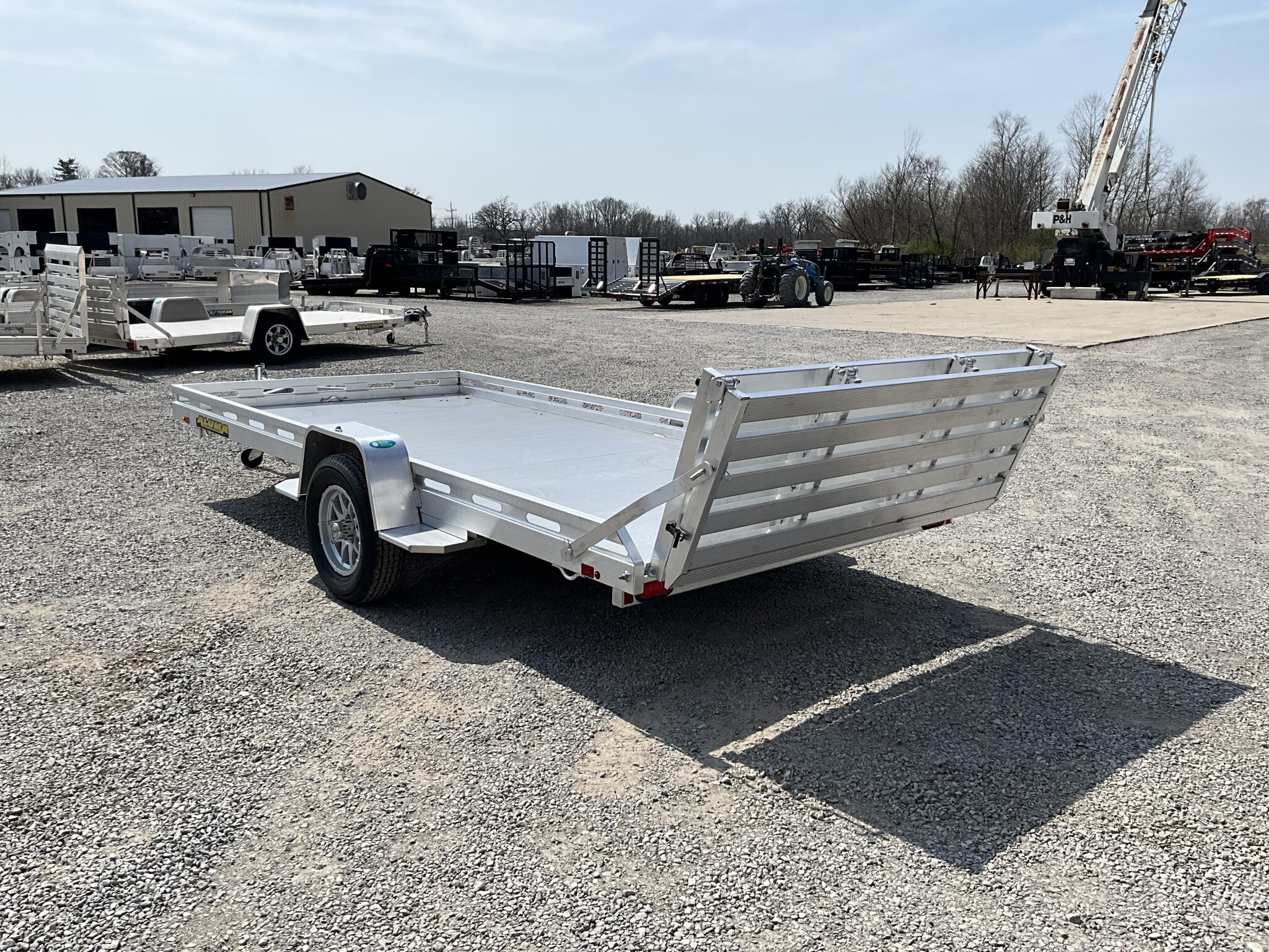 2026 ALUMA 8014S EL BT 6'7" 14'3" ALL ALUMINUM UTILITY TRAILER WITH BI FOLD TAILGATE AND FRONT SIDE RAMPS FOR SALE IN MOUNT VERNON, IL 62864 Feature: Full width aluminum bi fold tailgate for easy loading of mowers, ATVs, and equipment Feature: Dual front side ramps for loading ATVs or equipment from the front Feature: Lightweight all aluminum construction for corrosion resistance Feature: Extruded aluminum floor for durability and long service life Specs Model: Aluma 8014S EL BT Specs Size: 6'7" 14'3" (80.75" 172") Specs Construction: All aluminum trailer construction (excluding axle & coupler) Specs Floor: Extruded aluminum plank flooring Specs Axle/Brakes: (1) 3,500 lb rubber torsion axle with electric brakes and breakaway kit Specs Axle Service: Easy lube hubs Specs Tires/Wheels: ST205/75R14 radial trailer tires on aluminum wheels Specs Frame: Aluminum frame with 12" solid front Specs Coupler: 2 5/16" A frame coupler Specs Jack: 1,200 lb swivel tongue jack Specs Ramps: (2) 69" 12" front side ramps Specs Tailgate: Aluminum bi fold tailgate (75.5" 60") Specs Tie Downs: (8) tie down loops Specs Fenders: Aluminum fenders Specs Lighting: LED lighting package with safety chains Specs Warranty: Aluma 5 year limited warranty (1 year commercial) Weights & Capacities Empty Trailer Weight: 860 lb Total Axle Capacity: 3,500 lb Estimated Payload Capacity: 2,640 lb Delivery from 62864 (Lower 48) Up to 100 miles $150 101 300 miles $2.00/mile 301 1200 miles $3.00/mile Over 1200 miles $4.00/mile