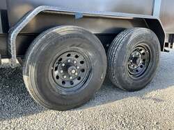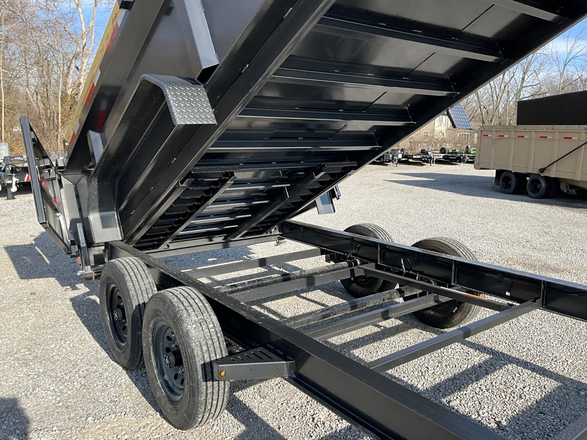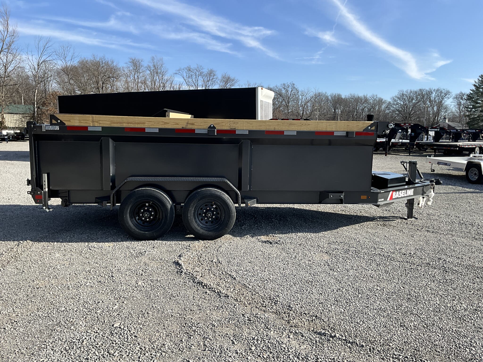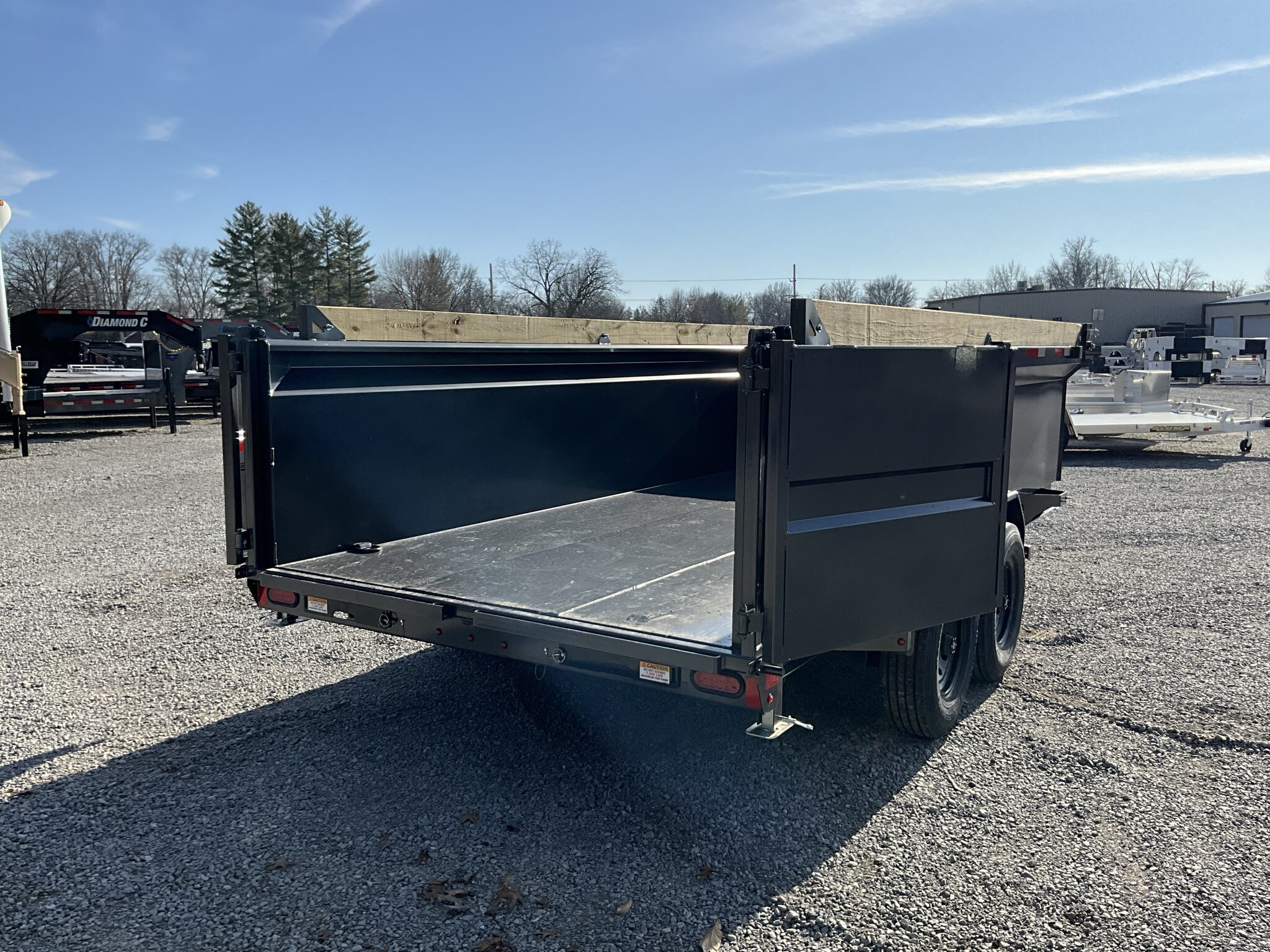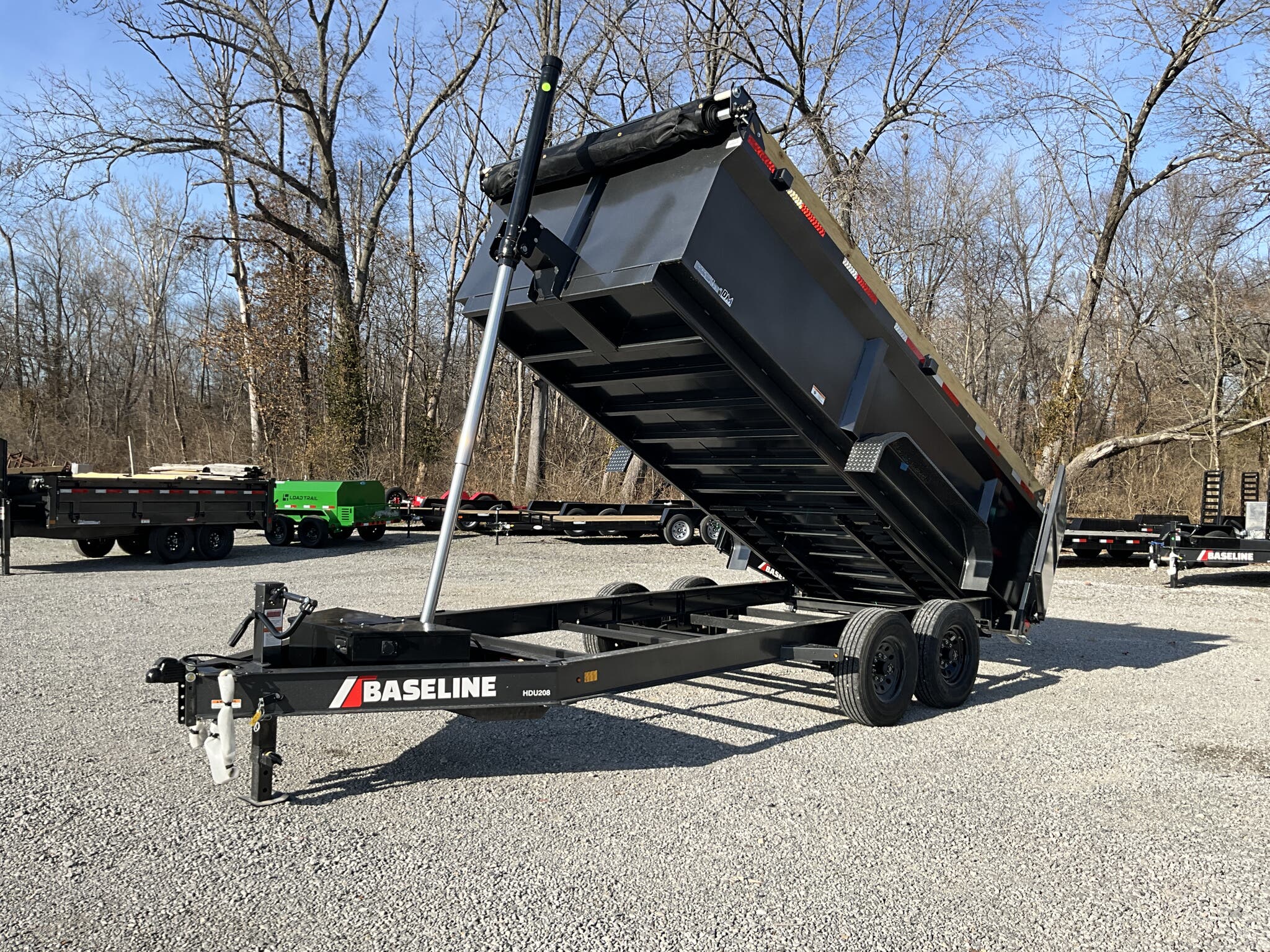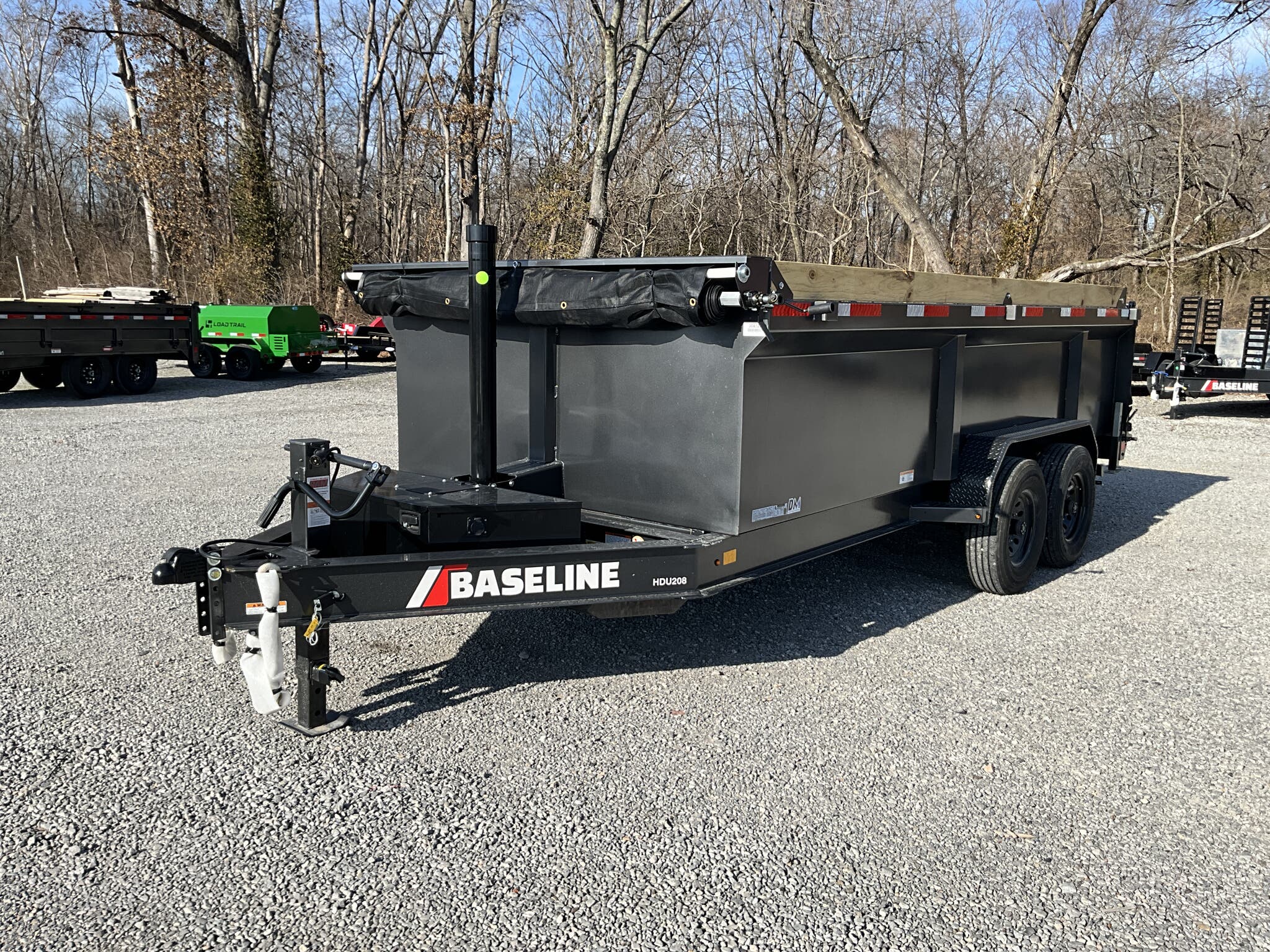 2026 DIAMOND C HDU208 16' x 82" Dump Trailer, Carbon Metallic Gray, 36" Tall 10 Ga Sides, 78" Slide In Ramps, Dual 8K Axles For Sale in Illinois Feature: 36" tall 10 ga integral sides (heavy duty commercial body) Feature: 78" rear slide in ramps (3" I beam) Feature: Board brackets with boards & raised front Feature: Rear stabilizer drop leg jacks (pair) Feature: SolarPulse 7W charger + Group 27 battery Feature: Spare mount (curb side) Specs Frame Size: L16 x 82 Specs Main Frame: 8" x 15 lb I beam; 16" center crossmembers Specs Body/Sides: 36" tall, 10 ga full integral body with floor Specs Gate: 3 way dump gate (standard) Specs Ramps: 78" rear slide in (3" I beam) Specs Hoist/Hydraulics: Power up / gravity down hydraulic system Specs Axles/Brakes: (2) 8,000 lb straight axles; electric drum brakes Specs Suspension: 6 leaf slipper springs Specs Coupler/Jack: 2 5/16" Demco EZ Latch 21K adjustable; 12K drop leg jack Specs Fenders: 14 ga straight diamond plate, weld on Specs Storage: Curb side spare mount Specs Tarp: 20' heavy duty black mesh tarp (installed) Specs Tie Downs: (4) 5/8" D rings Specs Tires/Wheels: ST235/80R16, 14 ply radials; 8 hole black wheels Specs Lighting/Wiring: All LED lights; sealed wiring harness Specs Paint/Finish: DM Difference Maker coating; Carbon Metallic Gray Specs Warranty: 6 year manufacturer warranty (2026+) Specs Web ID: 345920 Weights & Capacities Total Axle Capacity (used for payload math): 16,000 lb Weights & Capacities Empty/Trailer Weight: 5,100 lb Weights & Capacities Payload on Axles (Capacity Empty): 16,000 5,100 = 10,900 lb Weights & Capacities Target Tongue Load (Bumper pull @ ~10% of Capacity): 1,600 lb Weights & Capacities Total Payload Including Tongue Support: 10,900 + 1,600 = 12,500 lb Delivery from 62864 (Lower 48): Up to 100 miles: $150 101 300 miles: $2.00/mile 301 1200 miles: $3.00/mile Over 1200 miles: $4.00/mile