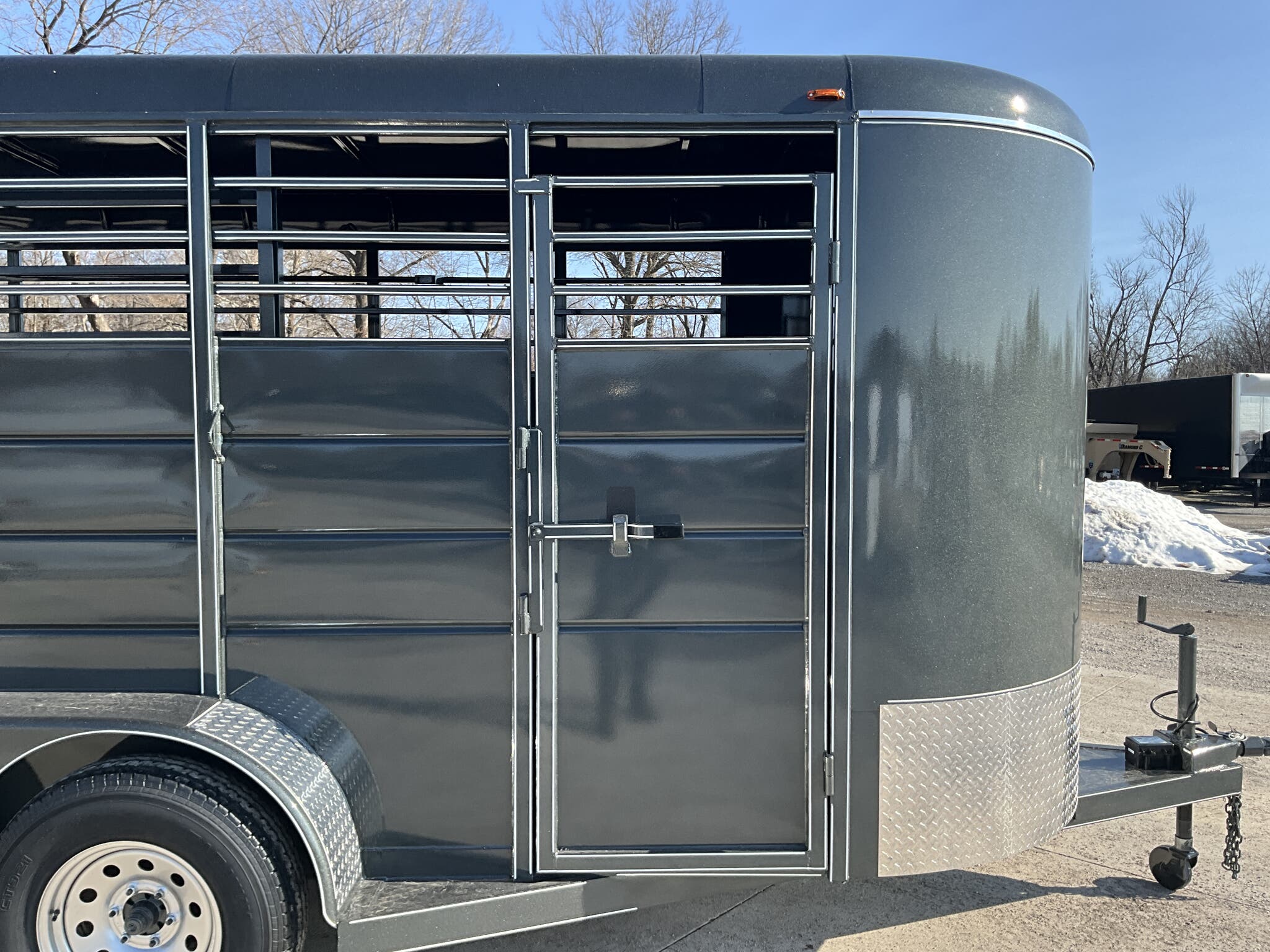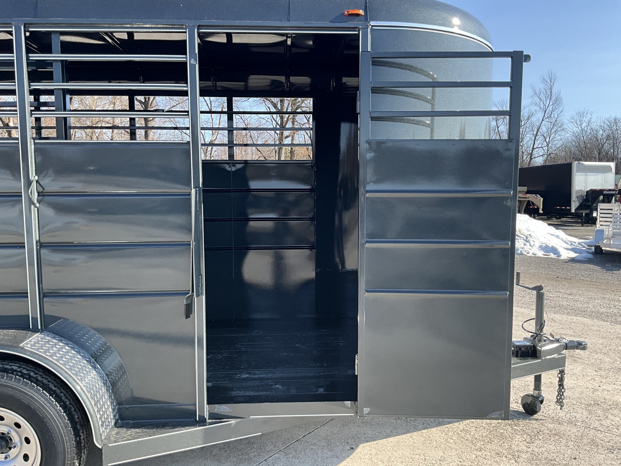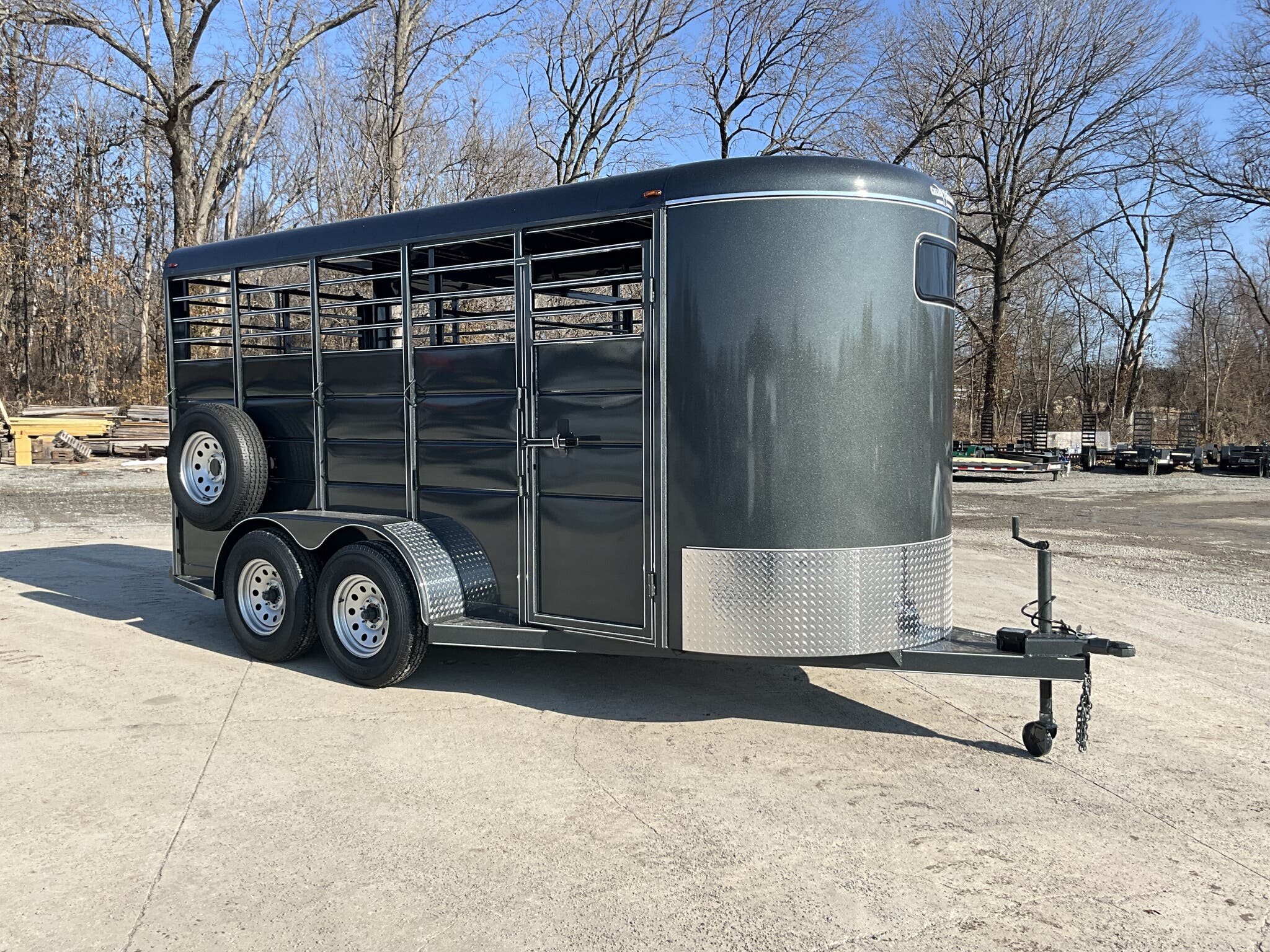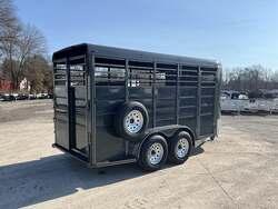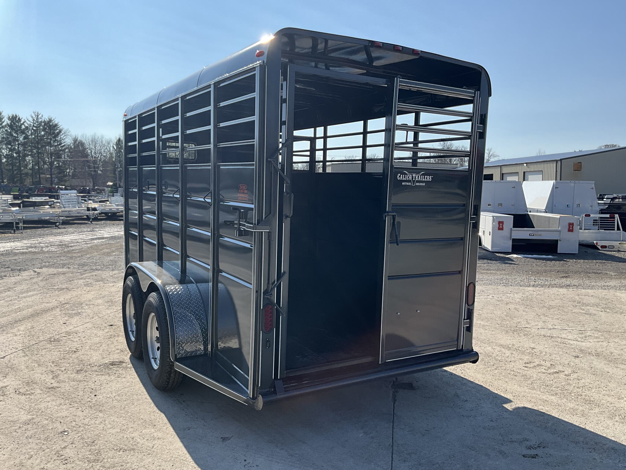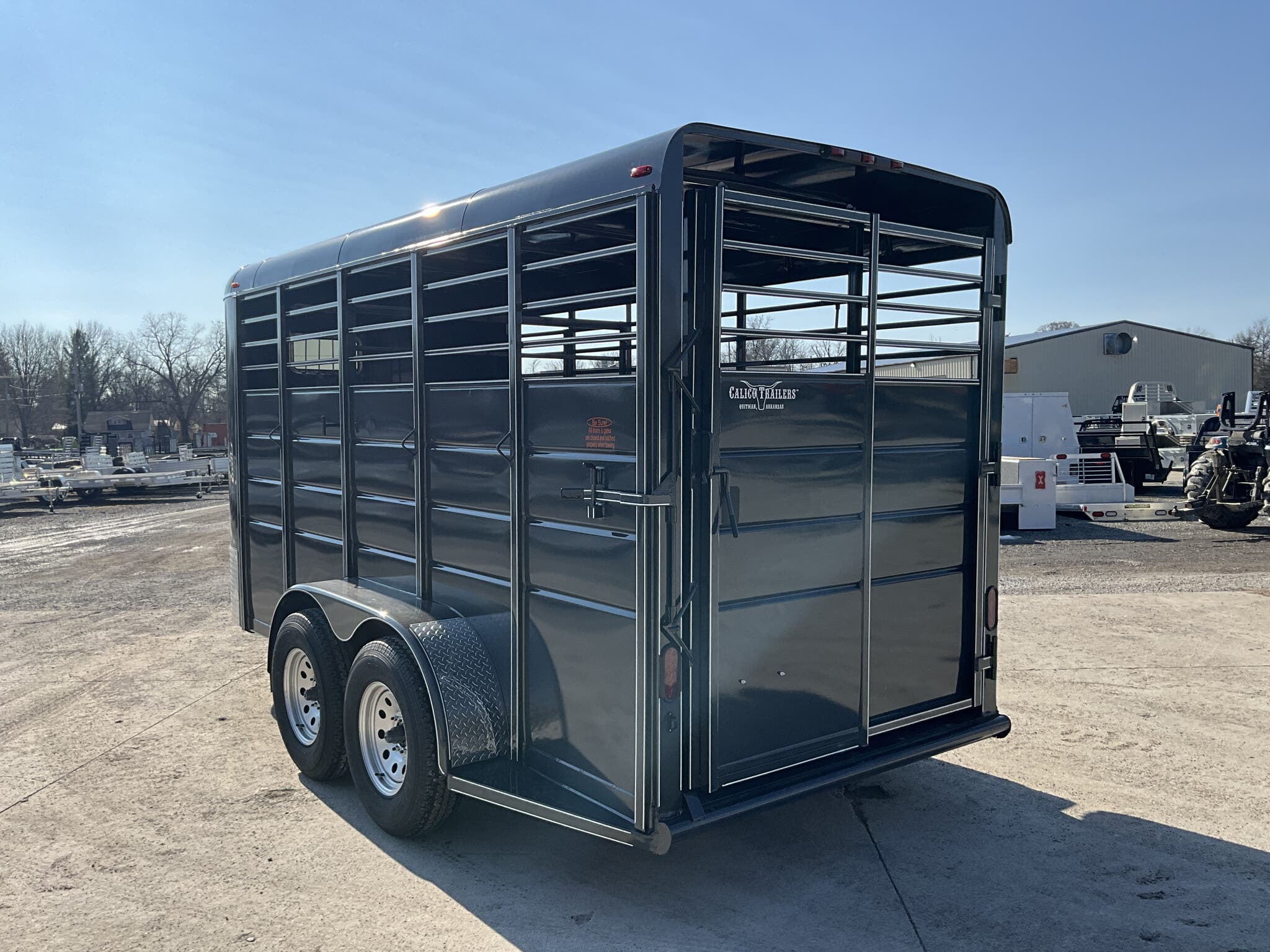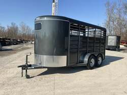 2026 CALICO 16' BUMPER PULL LIVESTOCK TRAILER — 6' Wide, 7' Interior Height, Dark Gray w/ White Stripes, Tandem Torsion — For Sale in Illinois