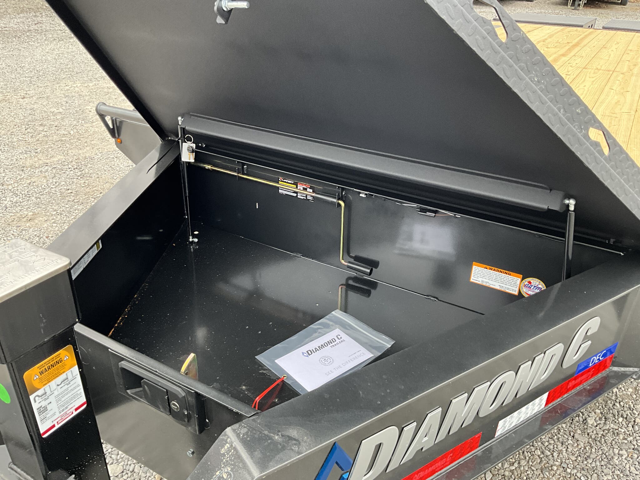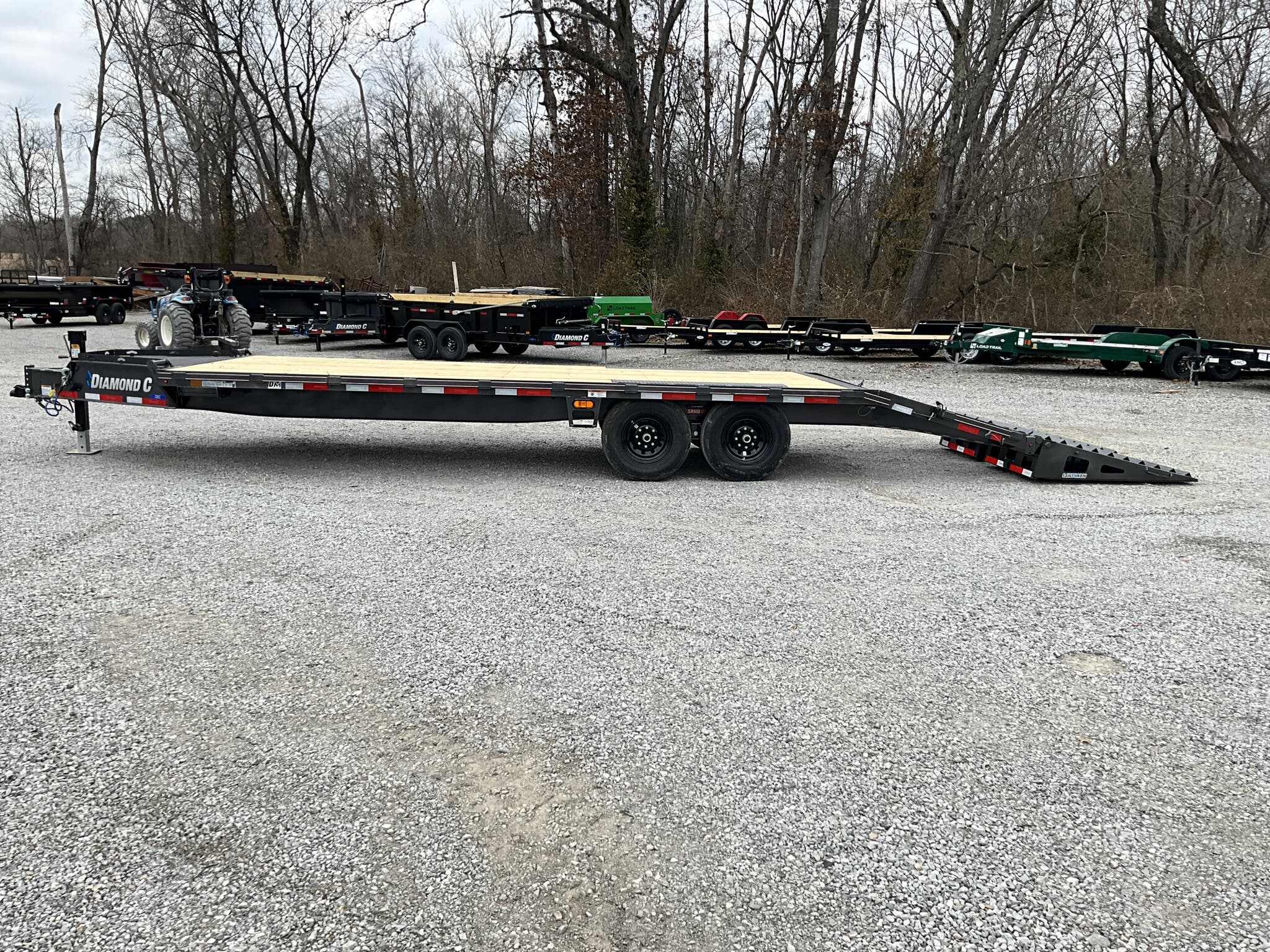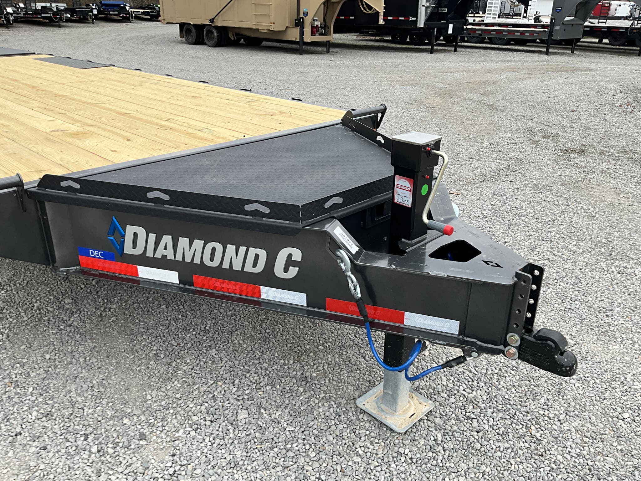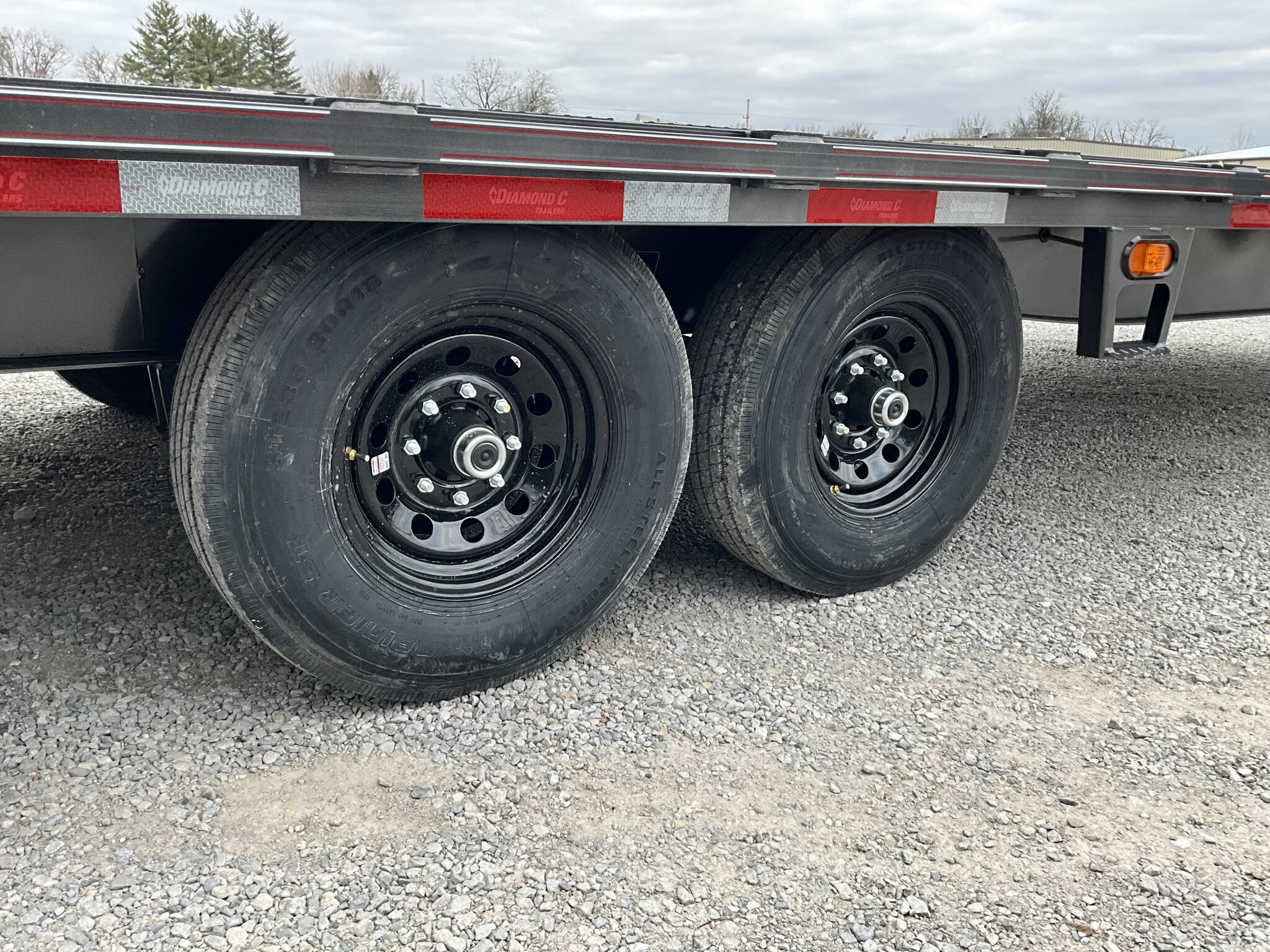 2026 DIAMOND C DEC207 24' x 102" Equipment Trailer, Carbon Metallic Gray, 60" Self Cleaning Dove with MAX Ramps, Dual 7K Axles For Sale in Illinois Feature: 60" self cleaning dovetail with MAX ramps Feature: Front retractable steps (pair) Feature: Mid turn light/step combo Feature: Retractable under frame spare cable winch mount Specs Frame: Engineered beam Specs Crossmembers: 3" I beam on 16" centers Specs Floor: 2" treated lumber Specs Axles/Brakes: (2) 7,000 lb axles; electric drum brakes Specs Suspension: 6 leaf slipper roller springs Specs Coupler: 2 5/16" Demco EZ Latch, adjustable Specs Jack: 15K Simol 2 speed drop leg Specs Storage: HD V tongue lid Specs Rail/Tie Downs: 5" channel lace rail; 3/8" rub rail with stake pockets & pipe spools Specs Tires/Wheels: ST235/80R16 radial, 14 ply; 8 hole black wheels Specs Lighting: All LED Specs Finish: DM Difference Maker coating; Carbon Metallic Gray Specs Warranty: 6 year manufacturer warranty Specs Web ID: 344793 Weights & Capacities Total Axle Capacity: 14,000 lb Weights & Capacities Empty Weight: 4,780 lb Weights & Capacities Payload on Axles: 14,000 4,780 = 9,220 lb Weights & Capacities Tongue Load (10%): 1,400 lb Weights & Capacities Total Payload Including Tongue: 10,620 lb Delivery from 62864 (Lower 48): Up to 100 miles $150 101 300 miles $2.00/mile 301 1200 miles $3.00/mile Over 1200 miles $4.00/mile