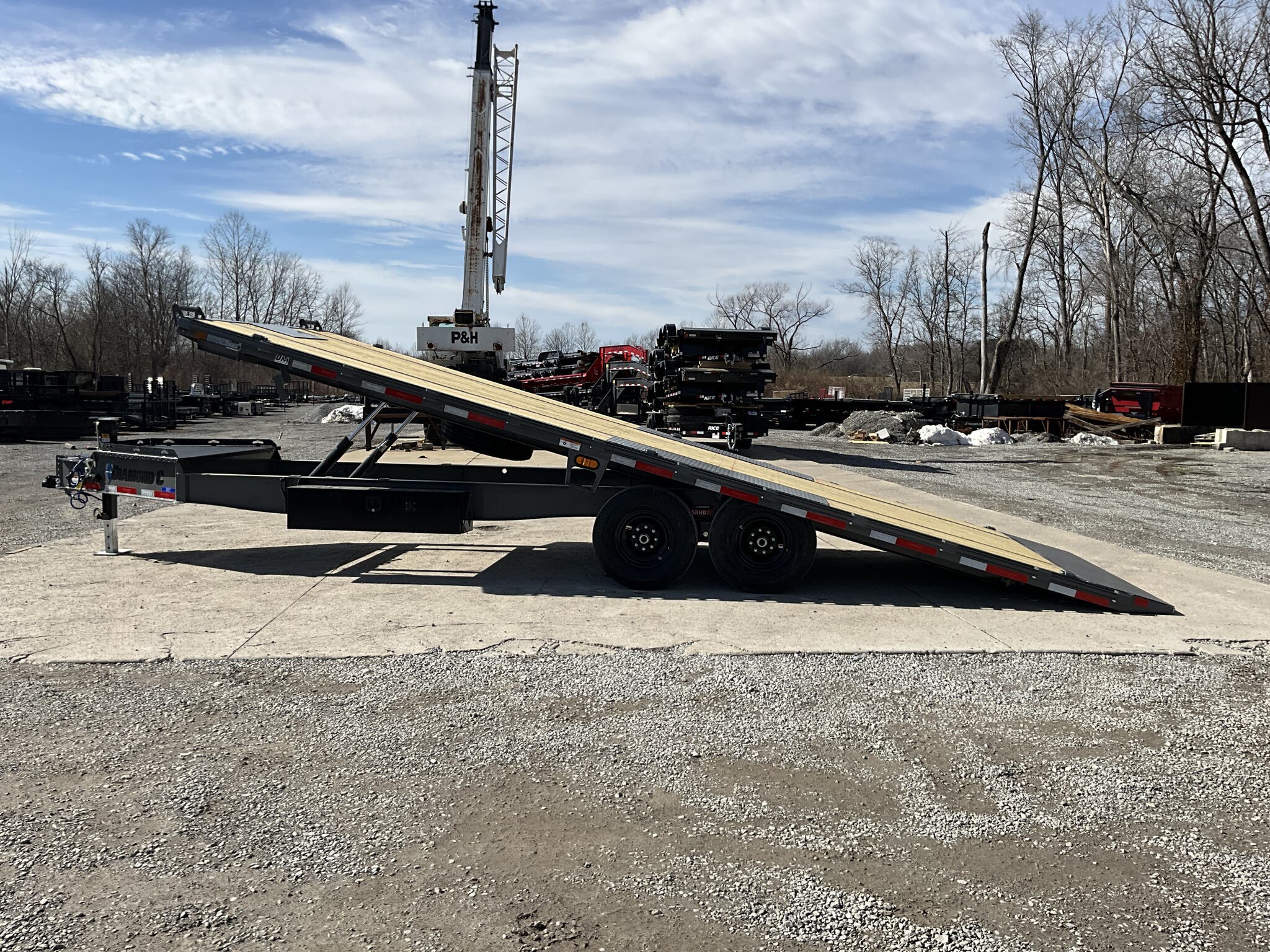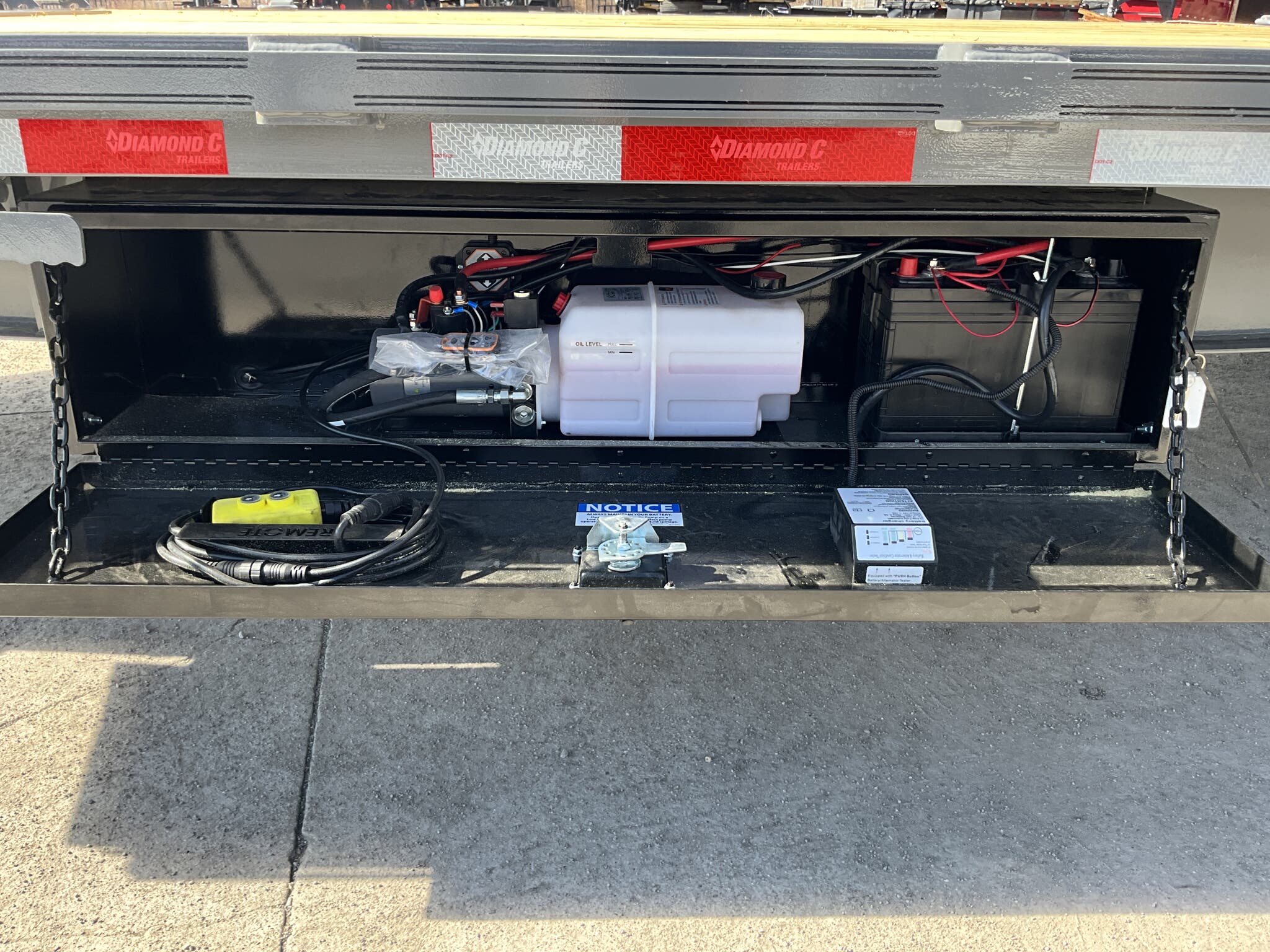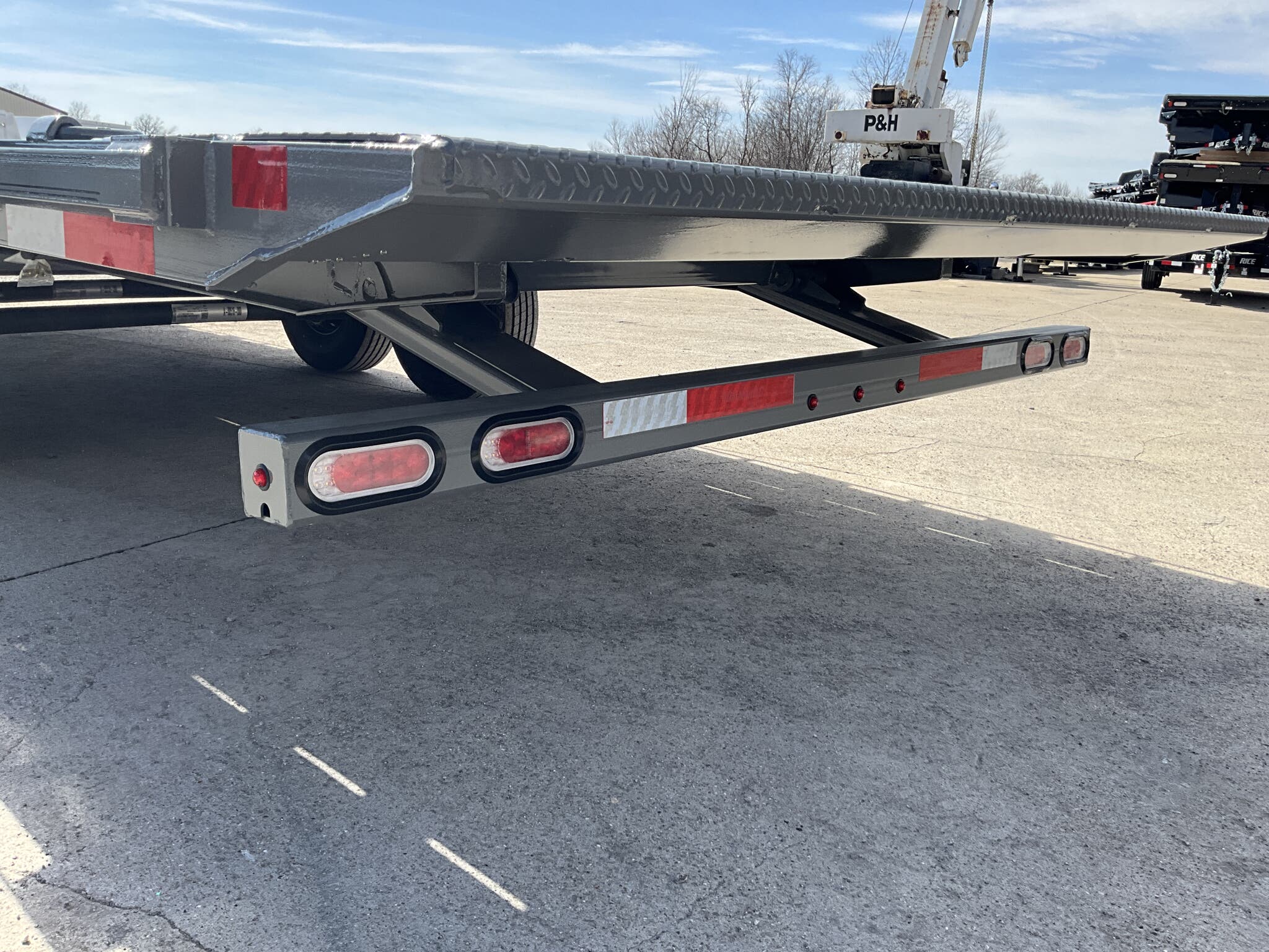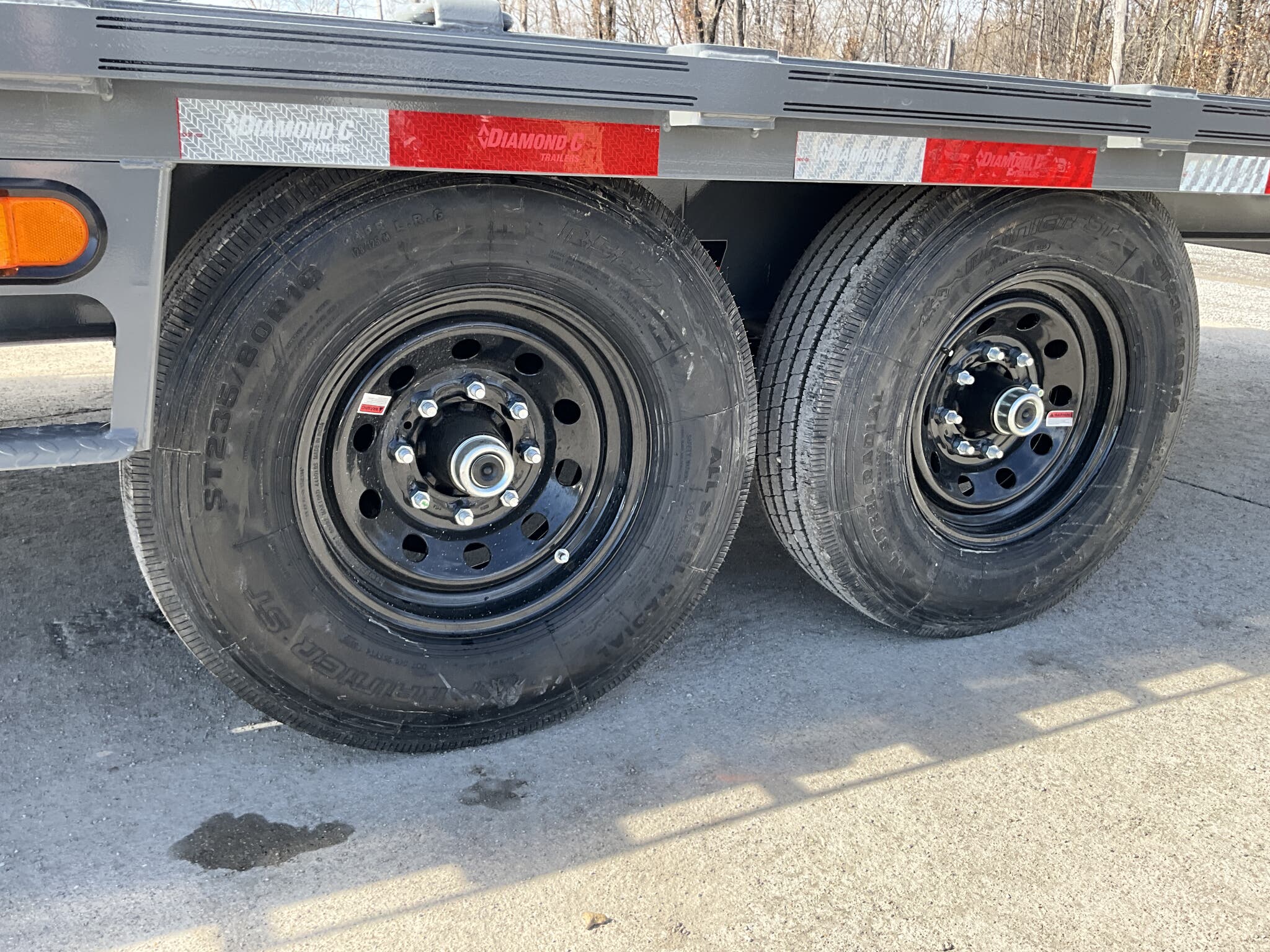 2026 DIAMOND C DET207 24' 102" FULL TILT EQUIPMENT TRAILER, Cement Gray, Tandem 7K Axles, Electric/Hydraulic Tilt For Sale in Illinois Feature: Full bed electric/hydraulic tilt with Bluetooth wireless controller Feature: Underslung component box plus HD V tongue storage lid Feature: SolarPulse charging system with Group 27 battery Feature: (6) additional 5/8" D rings for expanded tie down capacity Specs Frame: Engineered beam frame Specs Deck: Full bed tilt deck (24' total length) Specs Floor: 2" treated lumber Specs Axles/Brakes: (2) 7,000 lb axles; electric drum brakes Specs Suspension: 6 leaf slipper roller spring suspension Specs Coupler: 20K adjustable pintle ring (3" eye) on adjustable channel Specs Jack: 15K Simol 2 speed drop leg jack Specs Storage: HD V tongue lid; 10" 12" 53" underslung component box Specs Rail/Tie Downs: 5" channel lace rail with 3/8" rub rail, stake pockets & pipe spools; (6) extra D rings Specs Steps: Front retractable steps; mid turn light/step combo Specs Winch Prep: Floor level winch mounting plate (no holes drilled) Specs Tires/Wheels: ST235/80R16 14 ply radials on black wheels; matching spare Specs Lighting: All LED lighting Specs Finish: DM Difference Maker coating; Cement Gray Specs Warranty: 6 year Diamond C manufacturer warranty (2026+) Weights & Capacities Total Axle Capacity: 14,000 lb Weights & Capacities Empty Weight: 5,170 lb Weights & Capacities Payload on Axles: 14,000 5,170 = 8,830 lb Weights & Capacities Tongue Load (Bumper Pull @ 10%): 1,400 lb Weights & Capacities Total Payload Including Tongue: 10,230 lb Delivery from 62864 (Lower 48): Up to 100 miles $150 101 300 miles $2.00/mile 301 1200 miles $3.00/mile Over 1200 miles $4.00/mile