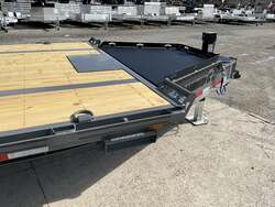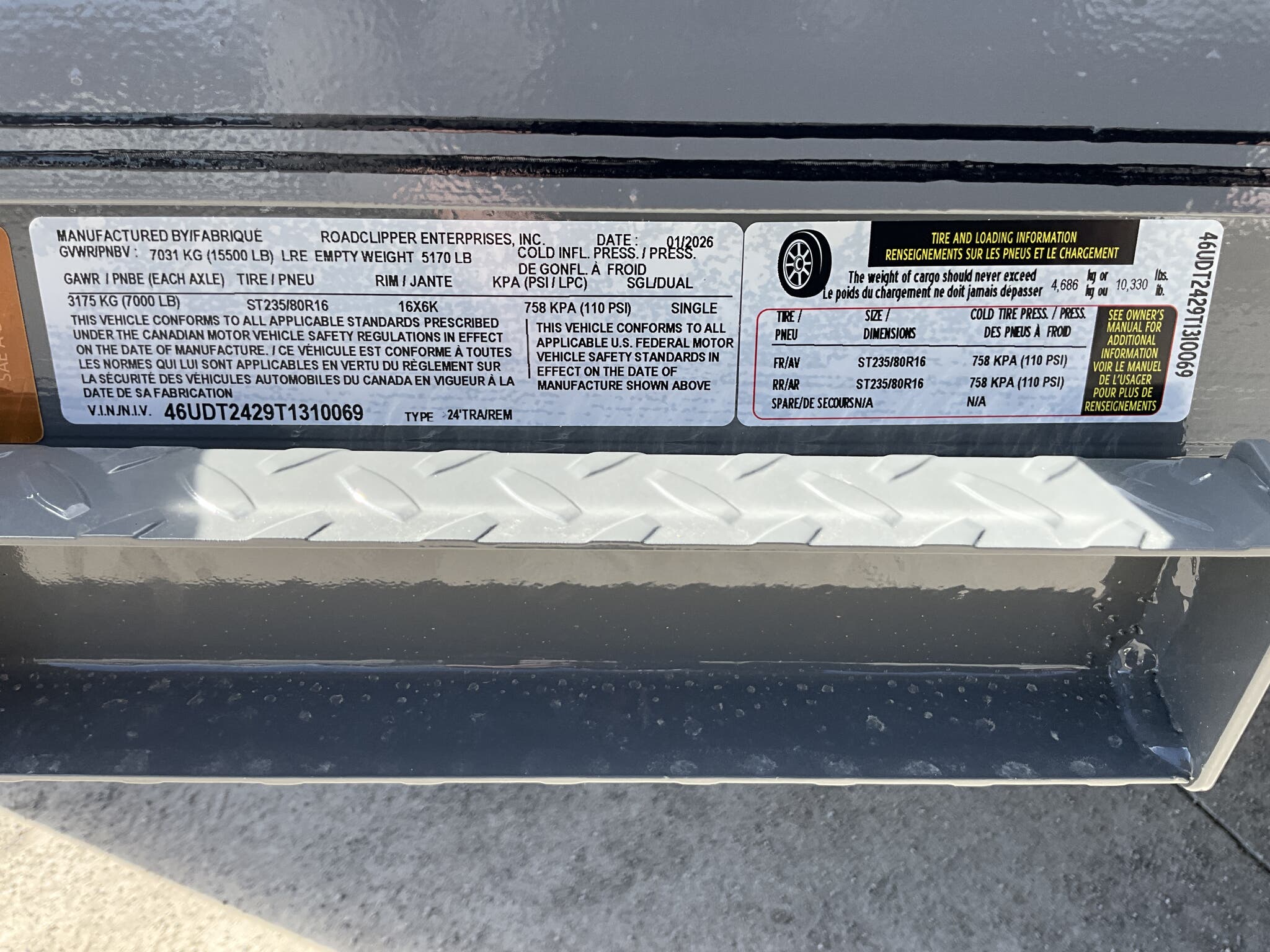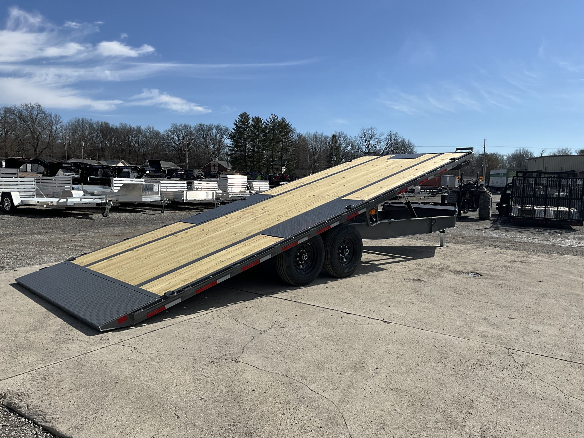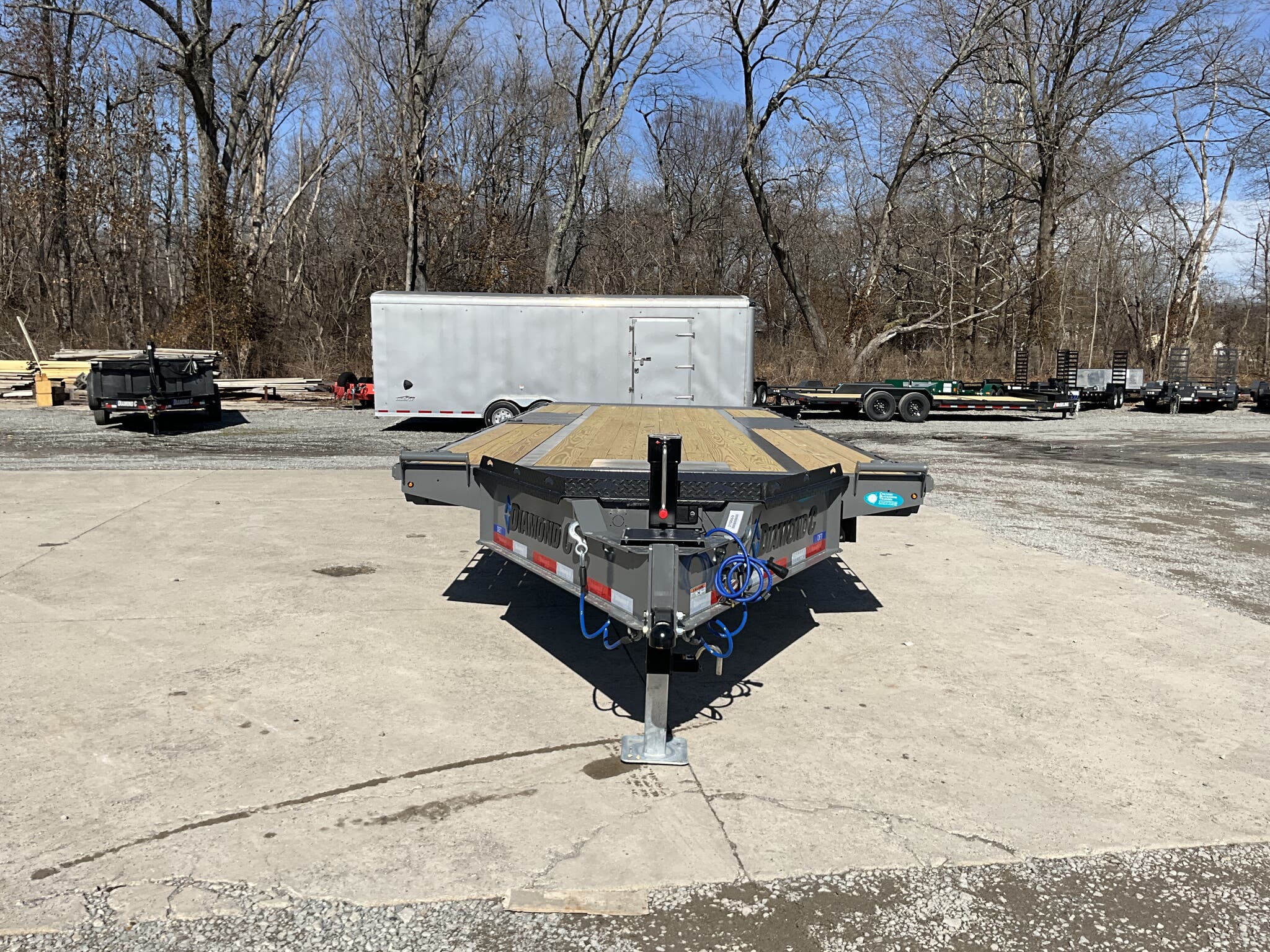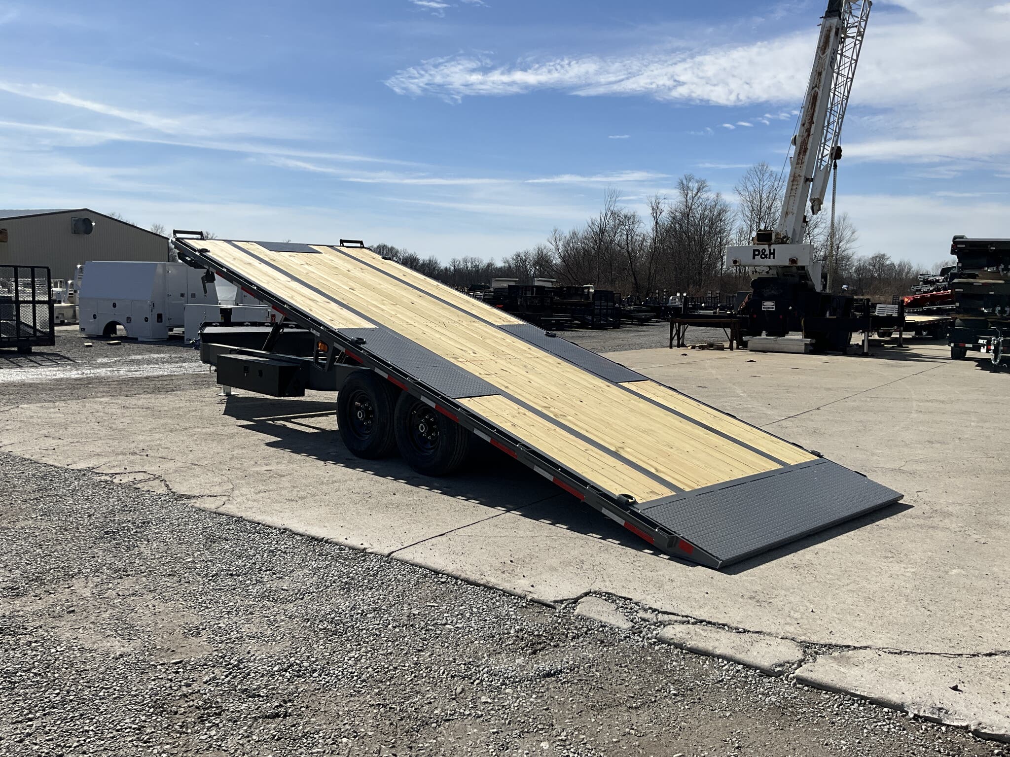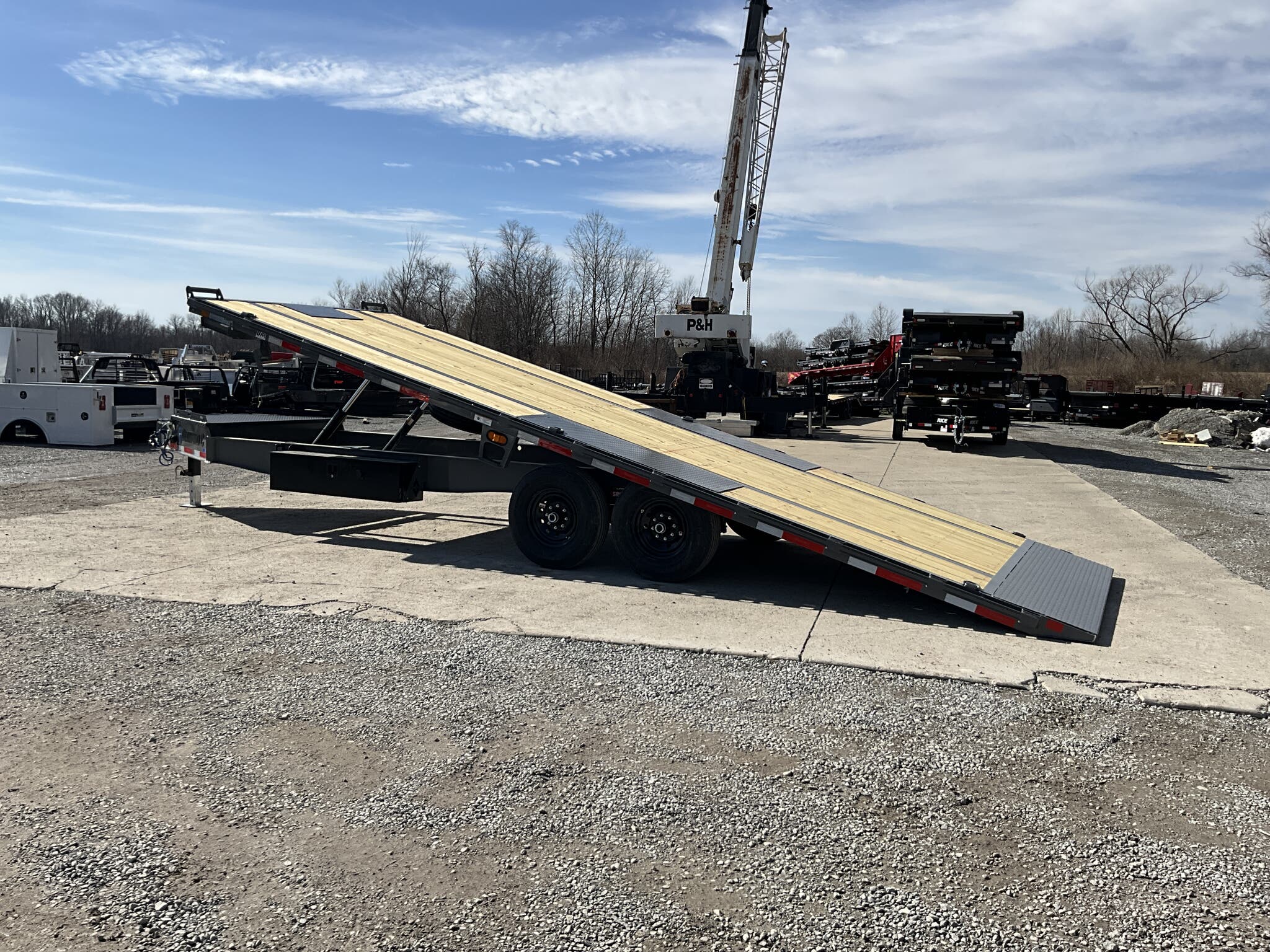 2026 DIAMOND C DET207 24' 102" FULL TILT EQUIPMENT TRAILER, Cement Gray, Tandem 7K Axles, Electric/Hydraulic Tilt For Sale in Illinois Feature: Full bed electric/hydraulic tilt with Bluetooth wireless controller Feature: Underslung component box plus HD V tongue storage lid Feature: SolarPulse charging system with Group 27 battery Feature: (6) additional 5/8" D rings for expanded tie down capacity Specs Frame: Engineered beam frame Specs Deck: Full bed tilt deck (24' total length) Specs Floor: 2" treated lumber Specs Axles/Brakes: (2) 7,000 lb axles; electric drum brakes Specs Suspension: 6 leaf slipper roller spring suspension Specs Coupler: 20K adjustable pintle ring (3" eye) on adjustable channel Specs Jack: 15K Simol 2 speed drop leg jack Specs Storage: HD V tongue lid; 10" 12" 53" underslung component box Specs Rail/Tie Downs: 5" channel lace rail with 3/8" rub rail, stake pockets & pipe spools; (6) extra D rings Specs Steps: Front retractable steps; mid turn light/step combo Specs Winch Prep: Floor level winch mounting plate (no holes drilled) Specs Tires/Wheels: ST235/80R16 14 ply radials on black wheels; matching spare Specs Lighting: All LED lighting Specs Finish: DM Difference Maker coating; Cement Gray Specs Warranty: 6 year Diamond C manufacturer warranty (2026+) Weights & Capacities Total Axle Capacity: 14,000 lb Weights & Capacities Empty Weight: 5,170 lb Weights & Capacities Payload on Axles: 14,000 5,170 = 8,830 lb Weights & Capacities Tongue Load (Bumper Pull @ 10%): 1,400 lb Weights & Capacities Total Payload Including Tongue: 10,230 lb Delivery from 62864 (Lower 48): Up to 100 miles $150 101 300 miles $2.00/mile 301 1200 miles $3.00/mile Over 1200 miles $4.00/mile