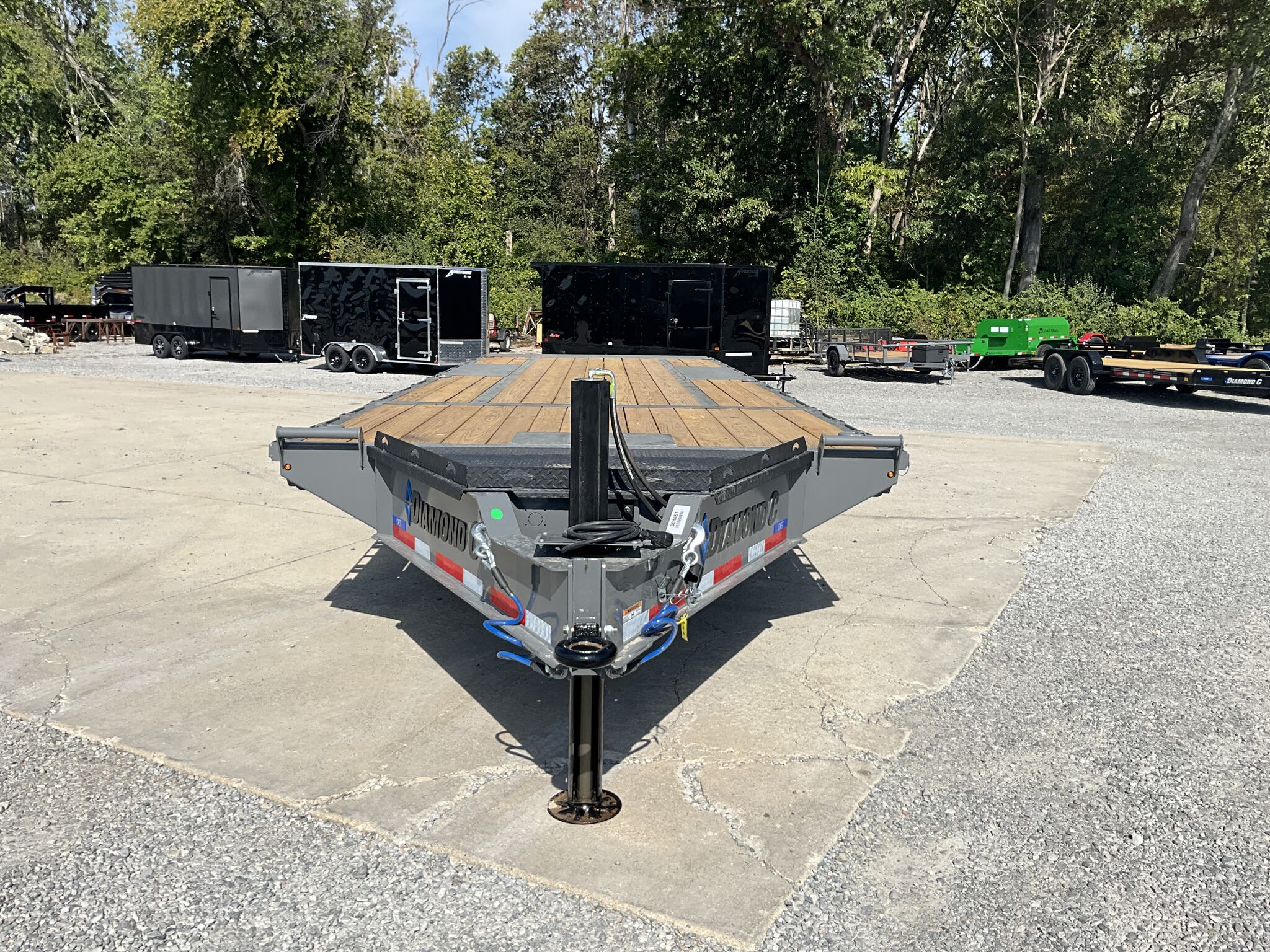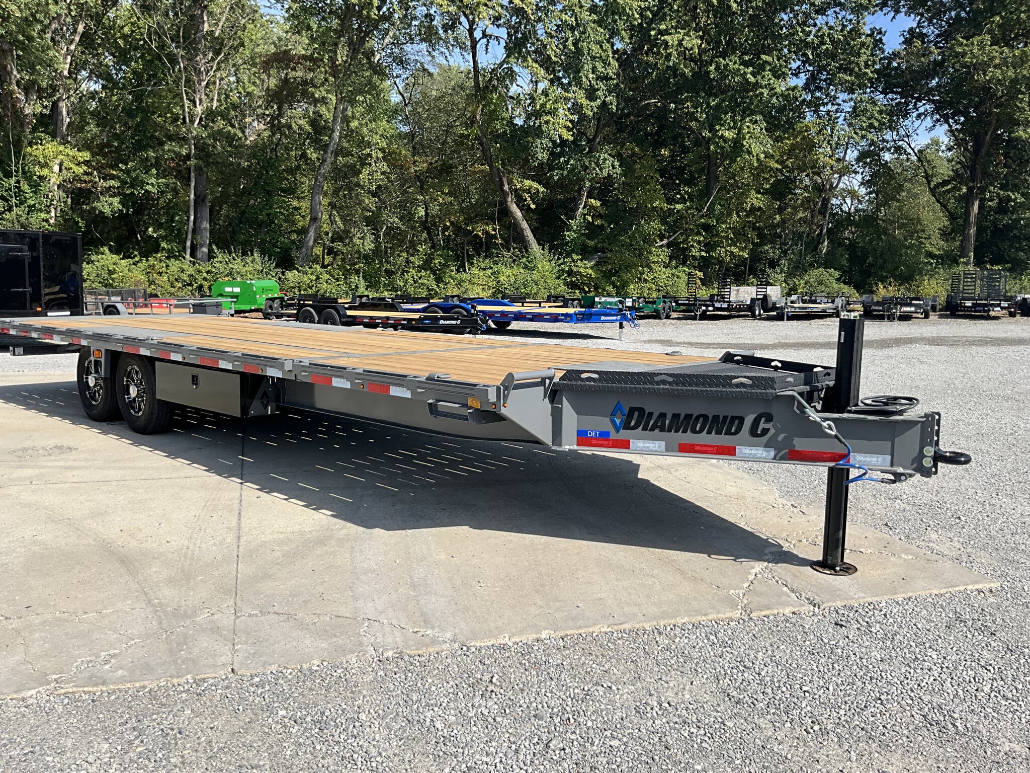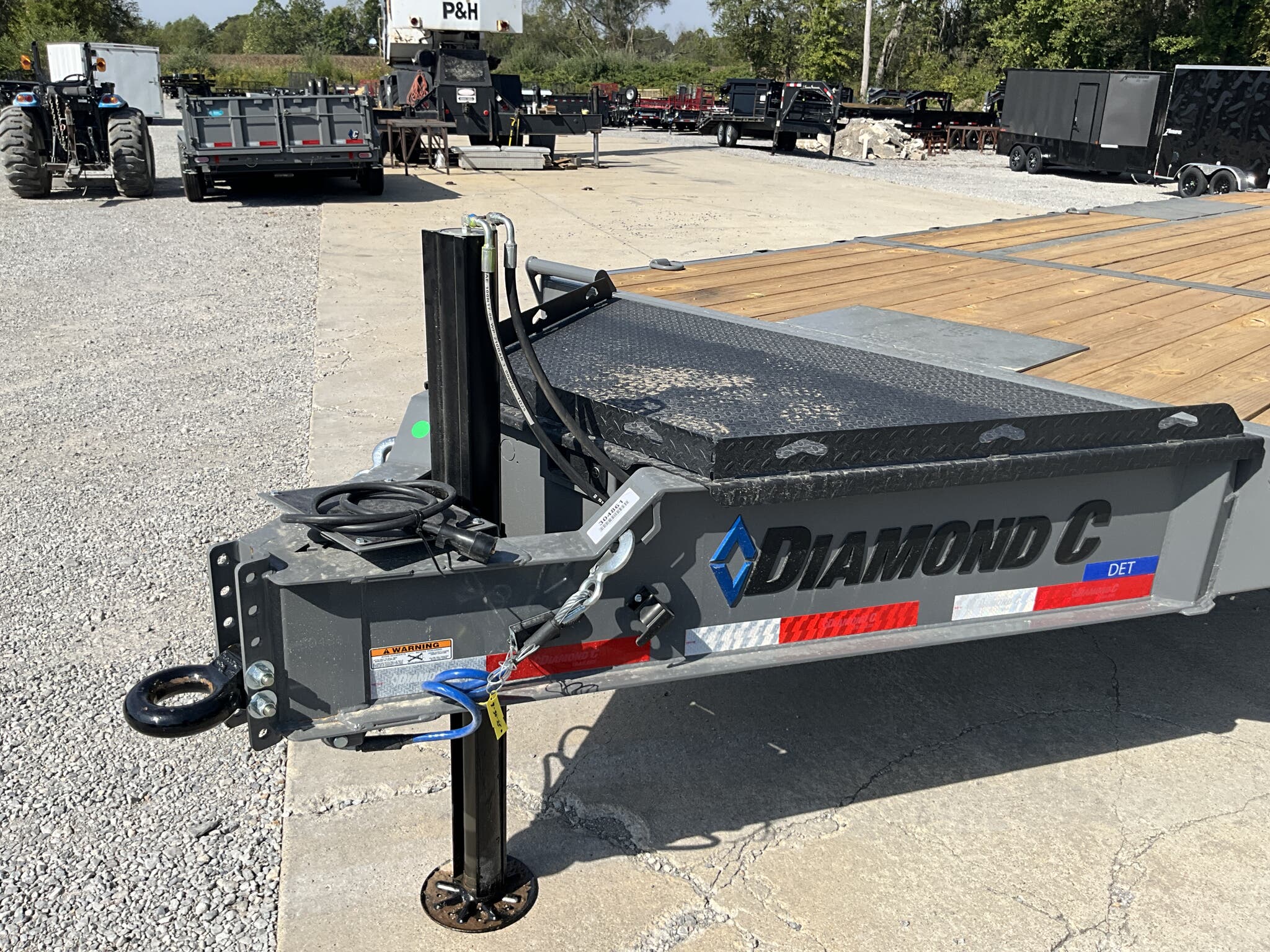 2026 Diamond C DET207 26x102 SPLIT DECK Tilt Equipment Trailer Cement Gray For Sale in Illinois OVERVIEW: 2026 DIAMOND C DET 26 102 SPLIT DECK POWER TILT EQUIPMENT TRAILER HEAVY DUTY 20K PINTLE RING COUPLER + 20K HYDRAULIC JACK CEMENT GRAY DIFFERENCE MAKER POWDERCOAT FINISH SPECIFICATIONS: AXLES: (2) 7,000 LB ELECTRIC DRUM BRAKE AXLES SUSPENSION: 6 LEAF SLIPPER ROLLER SPRINGS FRAME: ENGINEERED BEAM FRAME L26X102 DECK: 6 STATIONARY FRONT + 20 HYDRAULIC POWER TILT DECK (26 TOTAL) CROSSMEMBERS: 3 I BEAM ON 16 CENTERS TILT SYSTEM: ELECTRIC/HYDRAULIC POWERED TILT W/ BLUETOOTH WIRELESS CONTROLLER COUPLER: 20K ADJUSTABLE PINTLE RING (3 EYE) JACK: SINGLE 20K HYDRAULIC JACK STORAGE: HD V TONGUE TOOLBOX + EXTRA UNDER SLUNG BOX FLOOR: 2 TREATED WOOD TIE DOWNS: (6) EXTRA 5/8 D RINGS ADDED TIRES/WHEELS: ST235/80R16 14 PLY RADIALS ALUMINUM WHEELS + MATCHING SPARE LIGHTING: ALL LED LIGHTS + (2) 6 OVAL LED CAUTION FLASHERS + (6 PAIR) EXTRA CLEARANCE LIGHTS COLOR: CEMENT GRAY DELIVERY RATES FROM ZIP CODE 62864: Up to 100 miles $150 101 to 300 miles $2.00 per mile 301 to 1200 miles $3.00 per mile Over 1200 miles $4.00 per mile (Lower 48 states only)