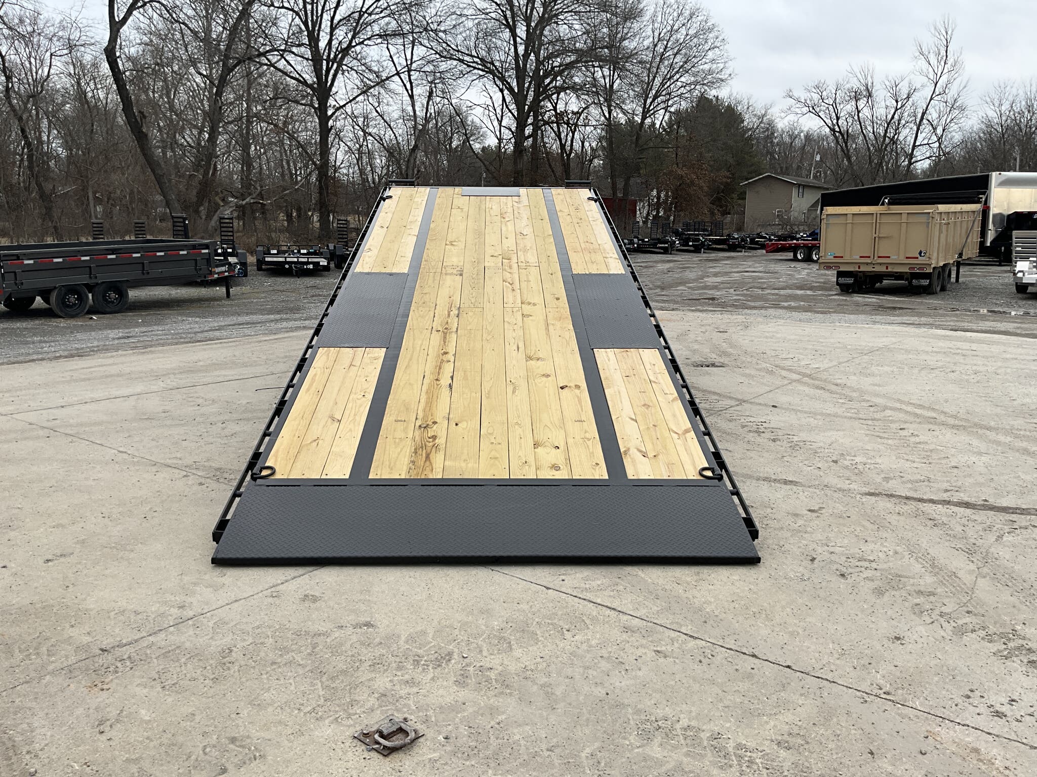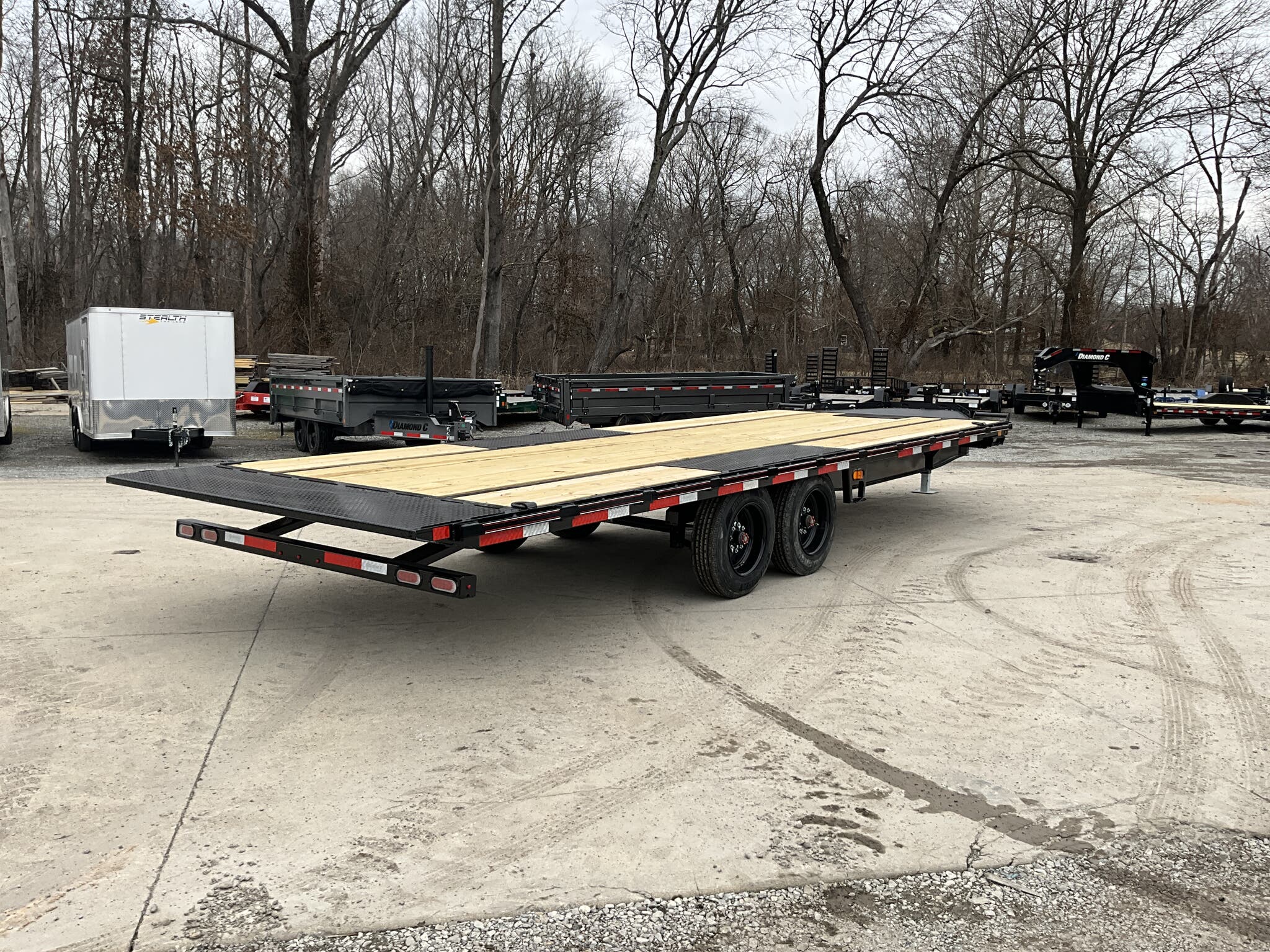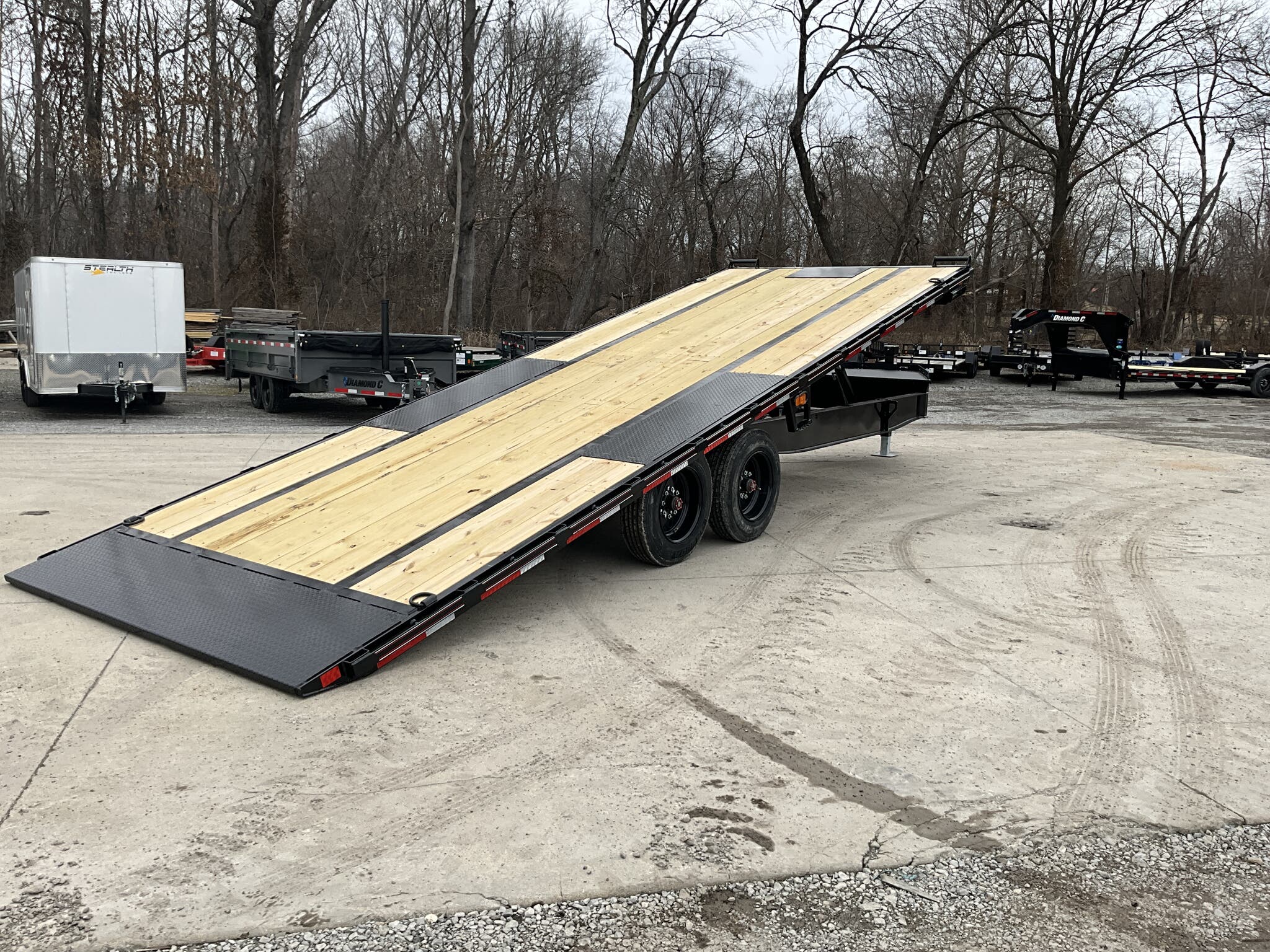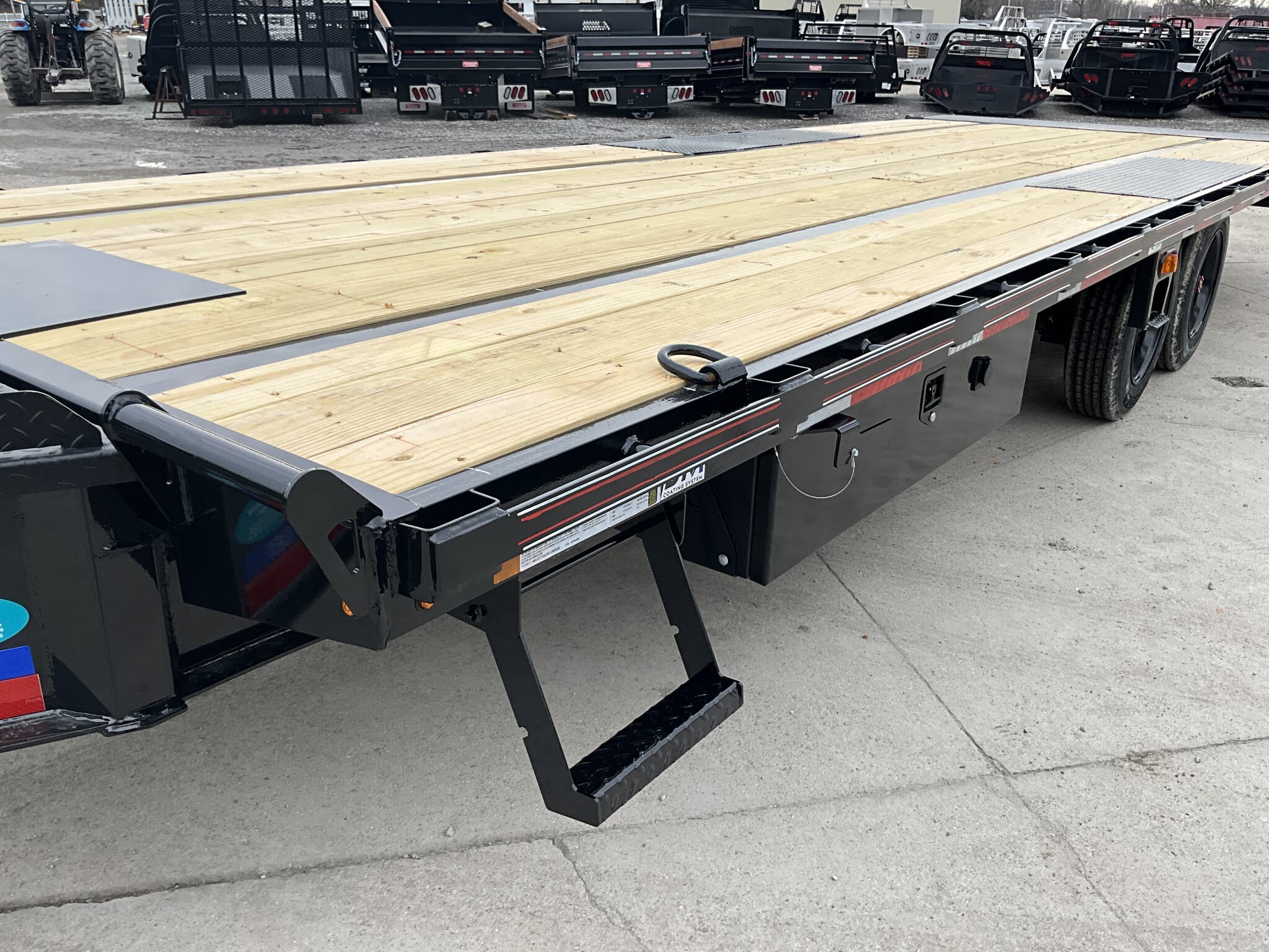 2026 DIAMOND C DET208 24' 102" FULL TILT EQUIPMENT TRAILER, ONYX BLACK, ELECTRIC/HYDRAULIC TILT FOR SALE IN MOUNT VERNON, IL 62864 Feature: Electric/hydraulic powered full bed tilt system Feature: Lithium battery upgrade with SolarPulse charging Feature: Underslung component storage box Feature: Rear LED caution flashers Feature: (6) heavy duty 5/8" D rings Specs Model: DET208 Specs Size: 24' 102" full tilt deck Specs Frame: Engineered beam frame Specs Crossmembers: 3" I beam on 14" centers Specs Floor: 2" treated lumber deck Specs Axles/Brakes: (2) 8,000 lb oil bath axles; electric drum brakes with ABS Specs Suspension: Slipper roller spring suspension Specs Coupler: 2 5/16" 25K Demco EZ Latch flat mount coupler Specs Jack: 15K Simol two speed drop leg jack Specs Storage: HD V tongue lid storage; underslung component box Specs Winch Prep: Winch mounting plate installed Specs Rail/Tie Downs: 5" channel lace rail with 3/8" rub rail, stake pockets and pipe spools; (6) D rings Specs Steps: Front retractable steps; mid turn step/light combo Specs Tires/Wheels: ST215/75R17.5 18 ply radial tires; black wheels; matching spare Specs Electrical: Lithium battery system with SolarPulse 7W charger Specs Lighting: All LED lighting with rear flashing caution lights Specs Finish: DM Difference Maker coating; Onyx Black Specs Warranty: 6 year Diamond C manufacturer warranty (2026+) Weights & Capacities Total Axle Capacity: 16,000 lb Empty Weight: 3,360 lb Payload on Axles: 16,000 3,360 = 12,640 lb Tongue Load (Bumper Pull @ 10%): 1,600 lb Total Effective Payload: 14,240 lb Delivery from 62864 (Lower 48) Up to 100 miles $150 101 300 miles $2.00/mile 301 1200 miles $3.00/mile Over 1200 miles $4.00/mile