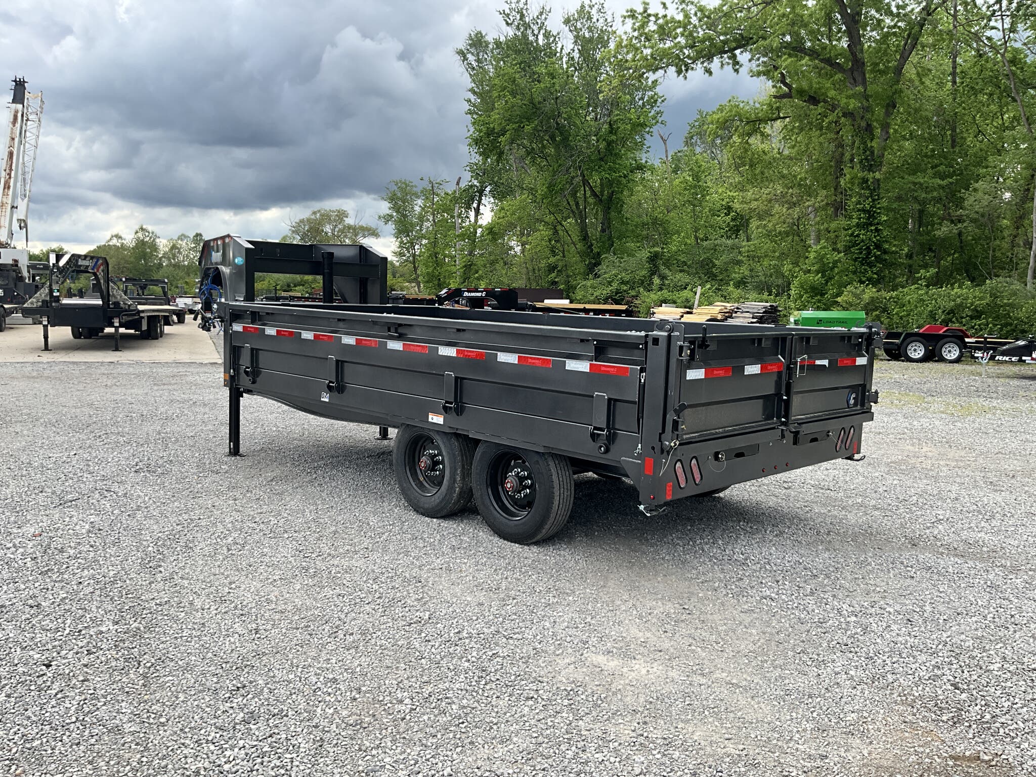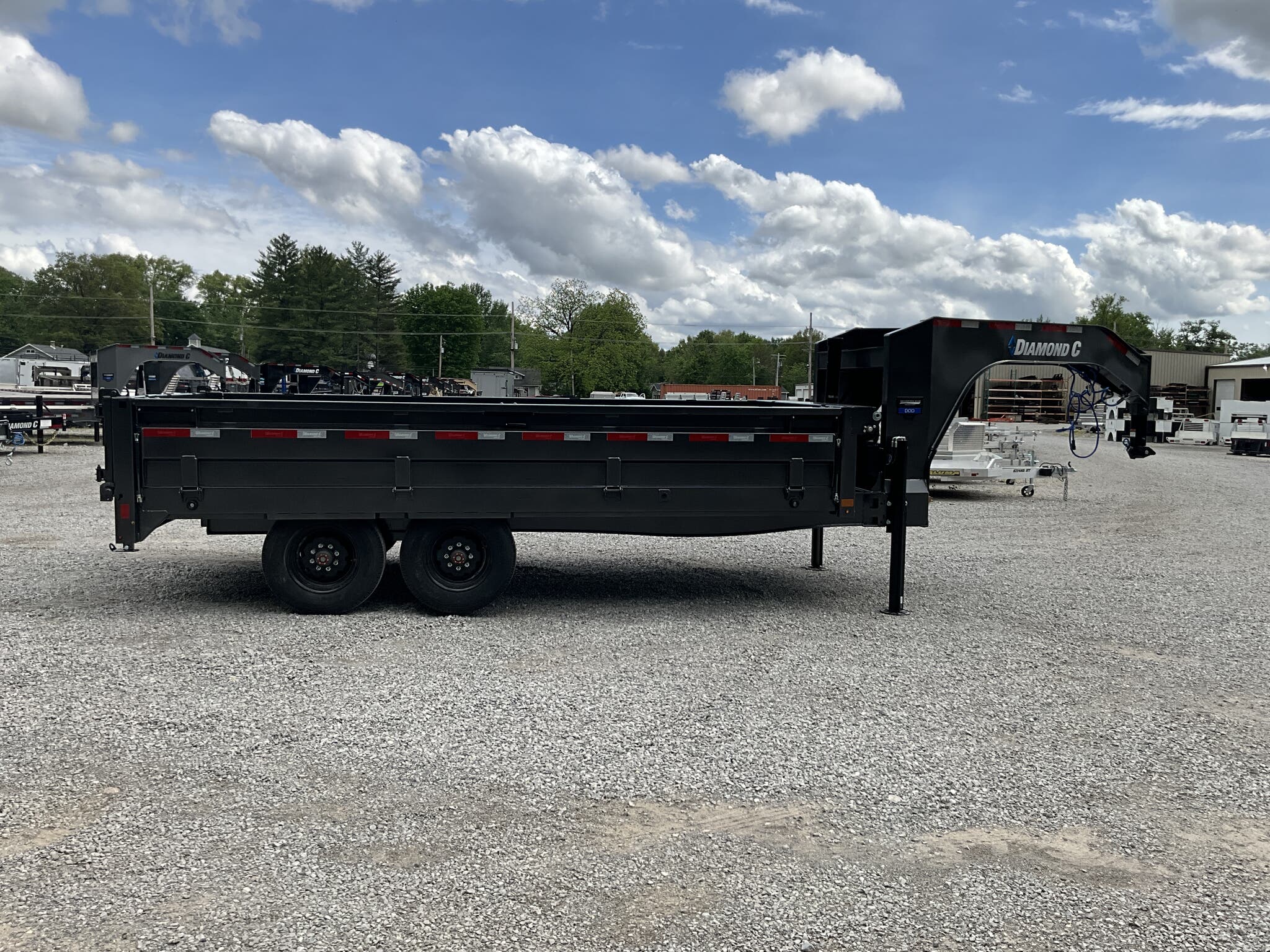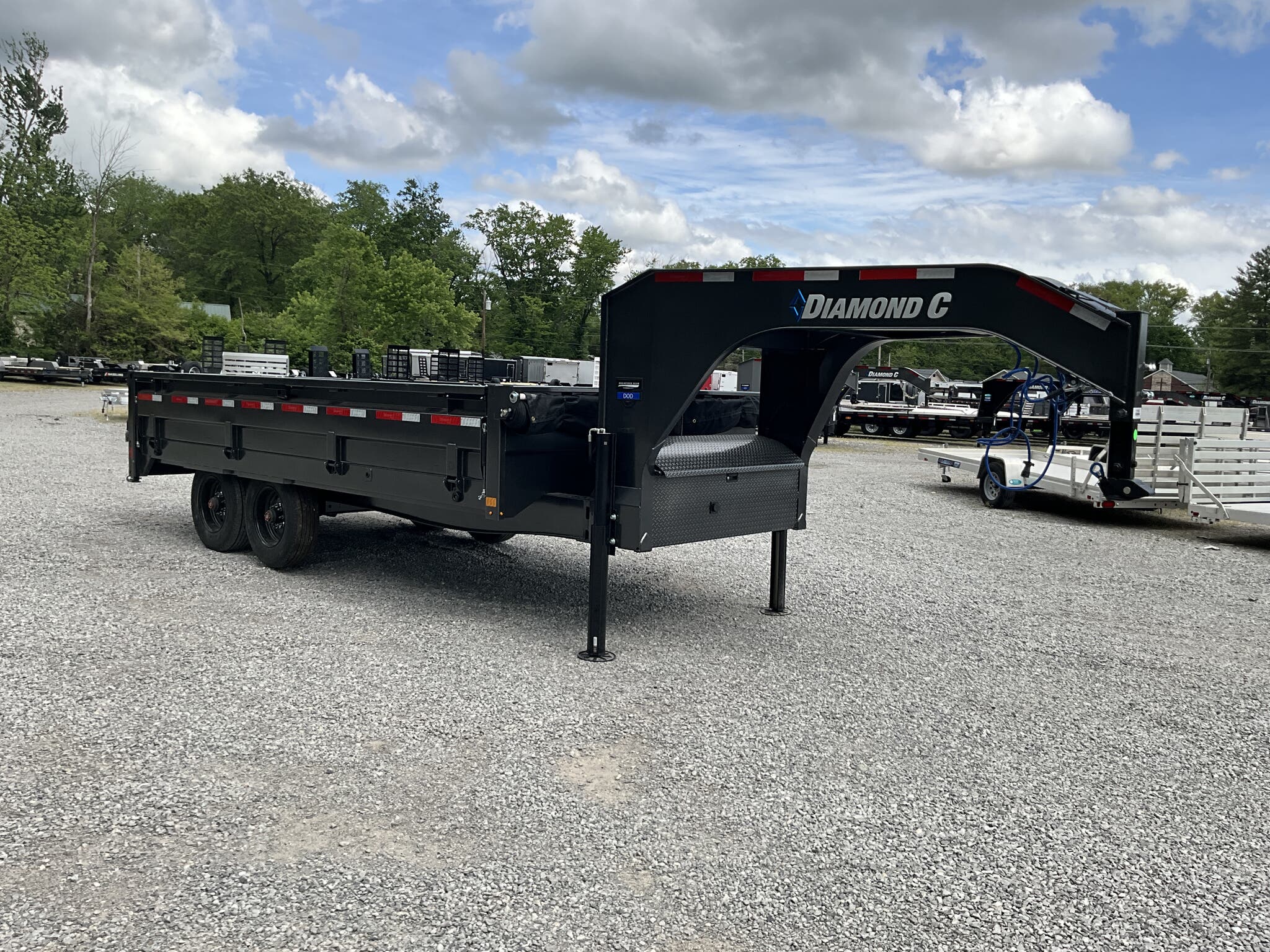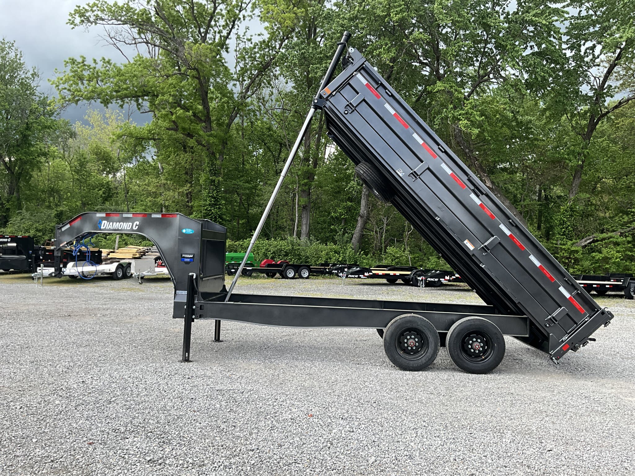 2026 DIAMOND C DOD210 GN 20K 96" 16' ENGINEERED BEAM GOOSENECK DUMP TRAILER, CARBON METALLIC GRAY, 22" FOLD DOWN SIDES FOR SALE IN MOUNT VERNON, IL 62864 Feature: Engineered beam frame with gooseneck configuration for superior hauling stability Feature: 22" tall 10 gauge fold down sides for versatile loading and unloading Feature: Hydraulic dump system with power up / gravity down and Bluetooth wireless controller Feature: Dual 20K hydraulic jacks with SolarPulse charging system and onboard battery Feature: 3 way dump gate with heavy duty 96" slide in rear ramps Specs Model: DOD210 GN Deck Over Dump Trailer Specs Size: 96" 16' Specs GVWR: 20,000 lb Specs Axles/Brakes: (2) 10,000 lb electric drum brake axles Specs Suspension: 10K torsion axles Specs Frame: Engineered beam frame with 12" gooseneck and chain tray Specs Bed: 10 gauge steel floor Specs Sides: 22" tall 10 gauge fold down sides Specs Gate: 3 way rear dump gate Specs Ramps: 96" heavy duty slide in ramps (3" 2" tube) Specs Coupler: 30K 2 5/16" Curt adjustable square coupler Specs Jack: Dual 20K hydraulic jacks Specs Hydraulics: Power up / gravity down system with Bluetooth controller Specs Storage: Under frame retractable spare mount Specs Tie Downs: (8) 5/8" D rings Specs Tires/Wheels: ST235/75R17.5 super single 18 ply, black steel wheels Specs Spare: Matching ST235/75R17.5 super single 18 ply Specs Tarp: 20' heavy duty black mesh tarp installed Specs Stabilizers: Rear drop leg stabilizer jacks (pair) Specs Electrical: Group 27 battery with SolarPulse 7W charging system Specs Lighting: Full LED lighting package Specs Finish: Carbon Metallic Gray powdercoat Specs Certification: NATM compliant Specs Warranty: 6 year Diamond C structural warranty Weights & Capacities GVWR: 20,000 lb Empty Weight: 6,510 lb Payload on Axles: 20,000 6,510 = 13,490 lb Target Tongue Load (20% of GVWR): 4,000 lb Total Effective Payload: 17,490 lb Delivery from 62864 (Lower 48) Up to 100 miles $150 101 300 miles $2.00/mile 301 1200 miles $3.00/mile Over 1200 miles $4.00/mile
