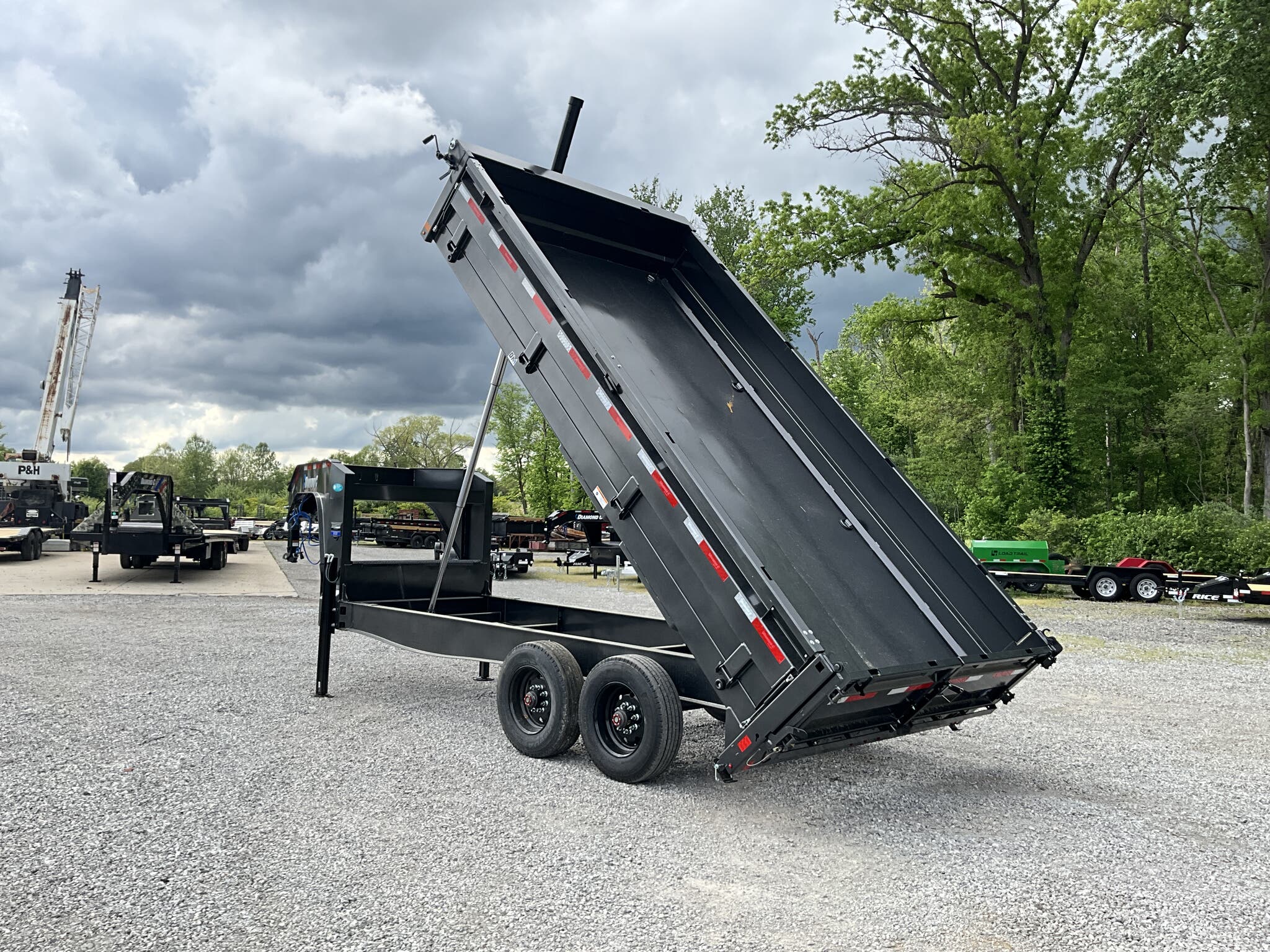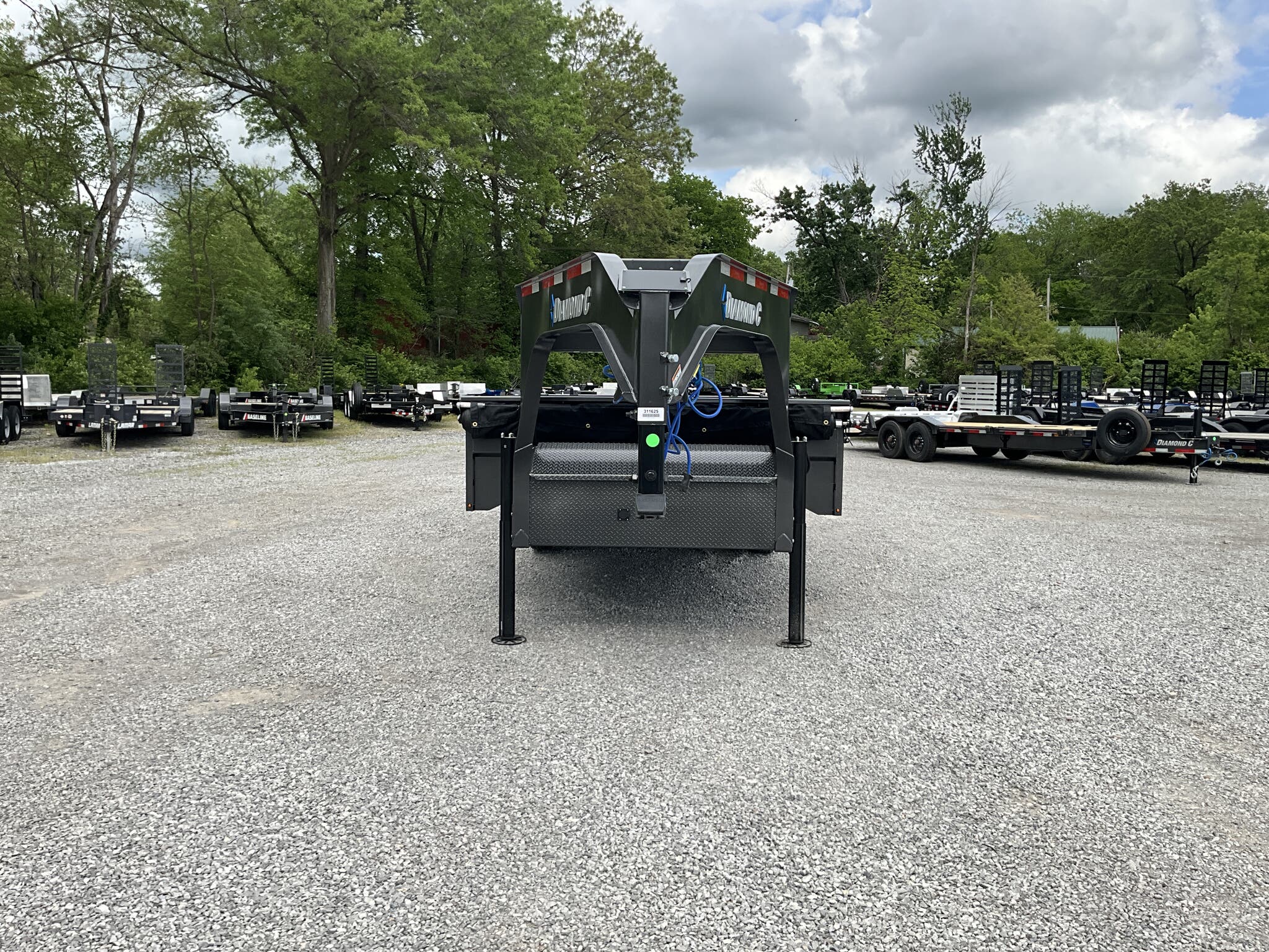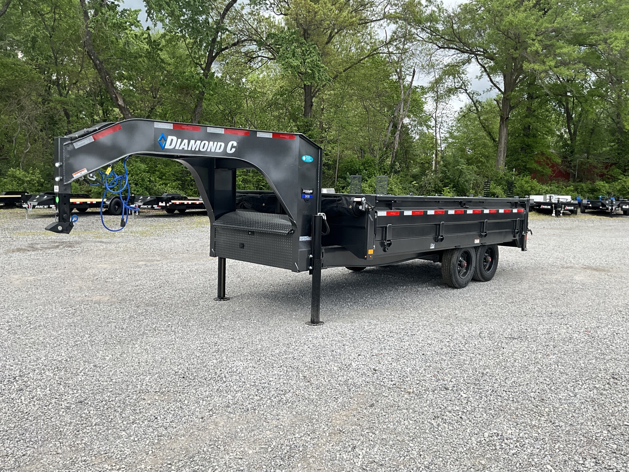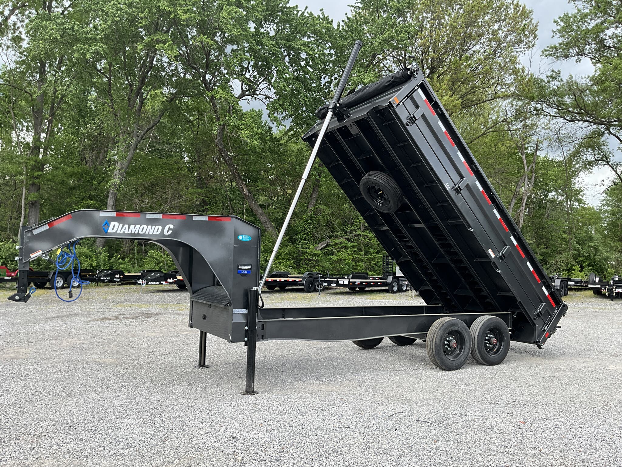 2026 DIAMOND C DOD210 GN 20K 96" 16' ENGINEERED BEAM GOOSENECK DUMP TRAILER, CARBON METALLIC GRAY, 22" FOLD DOWN SIDES FOR SALE IN MOUNT VERNON, IL 62864 Feature: Engineered beam frame with gooseneck configuration for superior hauling stability Feature: 22" tall 10 gauge fold down sides for versatile loading and unloading Feature: Hydraulic dump system with power up / gravity down and Bluetooth wireless controller Feature: Dual 20K hydraulic jacks with SolarPulse charging system and onboard battery Feature: 3 way dump gate with heavy duty 96" slide in rear ramps Specs Model: DOD210 GN Deck Over Dump Trailer Specs Size: 96" 16' Specs GVWR: 20,000 lb Specs Axles/Brakes: (2) 10,000 lb electric drum brake axles Specs Suspension: 10K torsion axles Specs Frame: Engineered beam frame with 12" gooseneck and chain tray Specs Bed: 10 gauge steel floor Specs Sides: 22" tall 10 gauge fold down sides Specs Gate: 3 way rear dump gate Specs Ramps: 96" heavy duty slide in ramps (3" 2" tube) Specs Coupler: 30K 2 5/16" Curt adjustable square coupler Specs Jack: Dual 20K hydraulic jacks Specs Hydraulics: Power up / gravity down system with Bluetooth controller Specs Storage: Under frame retractable spare mount Specs Tie Downs: (8) 5/8" D rings Specs Tires/Wheels: ST235/75R17.5 super single 18 ply, black steel wheels Specs Spare: Matching ST235/75R17.5 super single 18 ply Specs Tarp: 20' heavy duty black mesh tarp installed Specs Stabilizers: Rear drop leg stabilizer jacks (pair) Specs Electrical: Group 27 battery with SolarPulse 7W charging system Specs Lighting: Full LED lighting package Specs Finish: Carbon Metallic Gray powdercoat Specs Certification: NATM compliant Specs Warranty: 6 year Diamond C structural warranty Weights & Capacities GVWR: 20,000 lb Empty Weight: 6,510 lb Payload on Axles: 20,000 6,510 = 13,490 lb Target Tongue Load (20% of GVWR): 4,000 lb Total Effective Payload: 17,490 lb Delivery from 62864 (Lower 48) Up to 100 miles $150 101 300 miles $2.00/mile 301 1200 miles $3.00/mile Over 1200 miles $4.00/mile