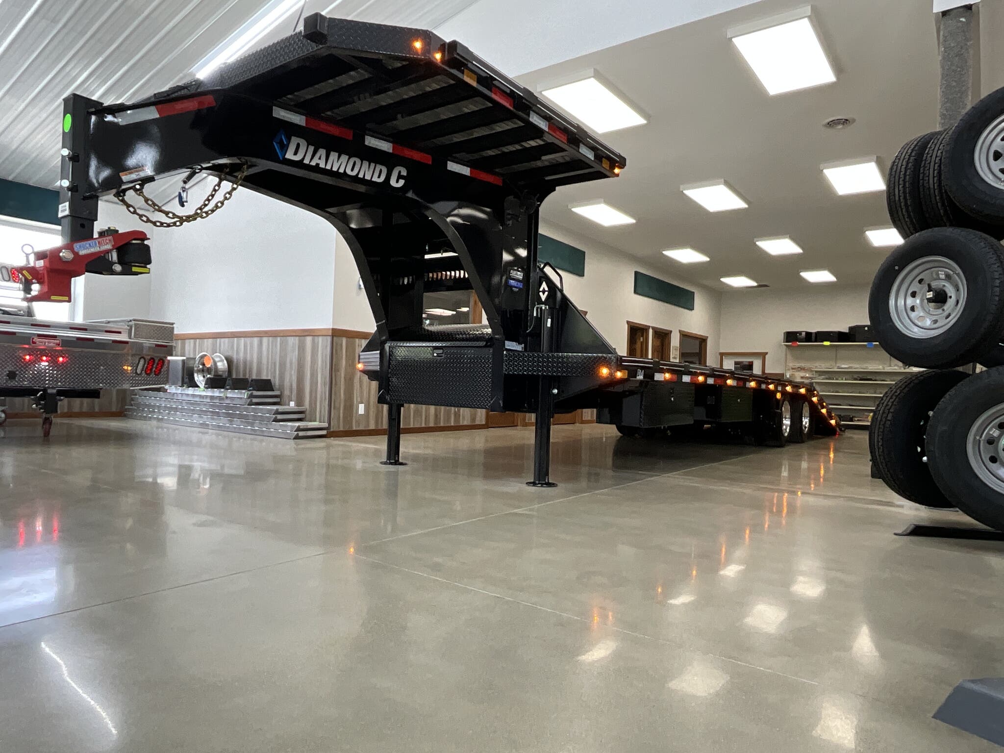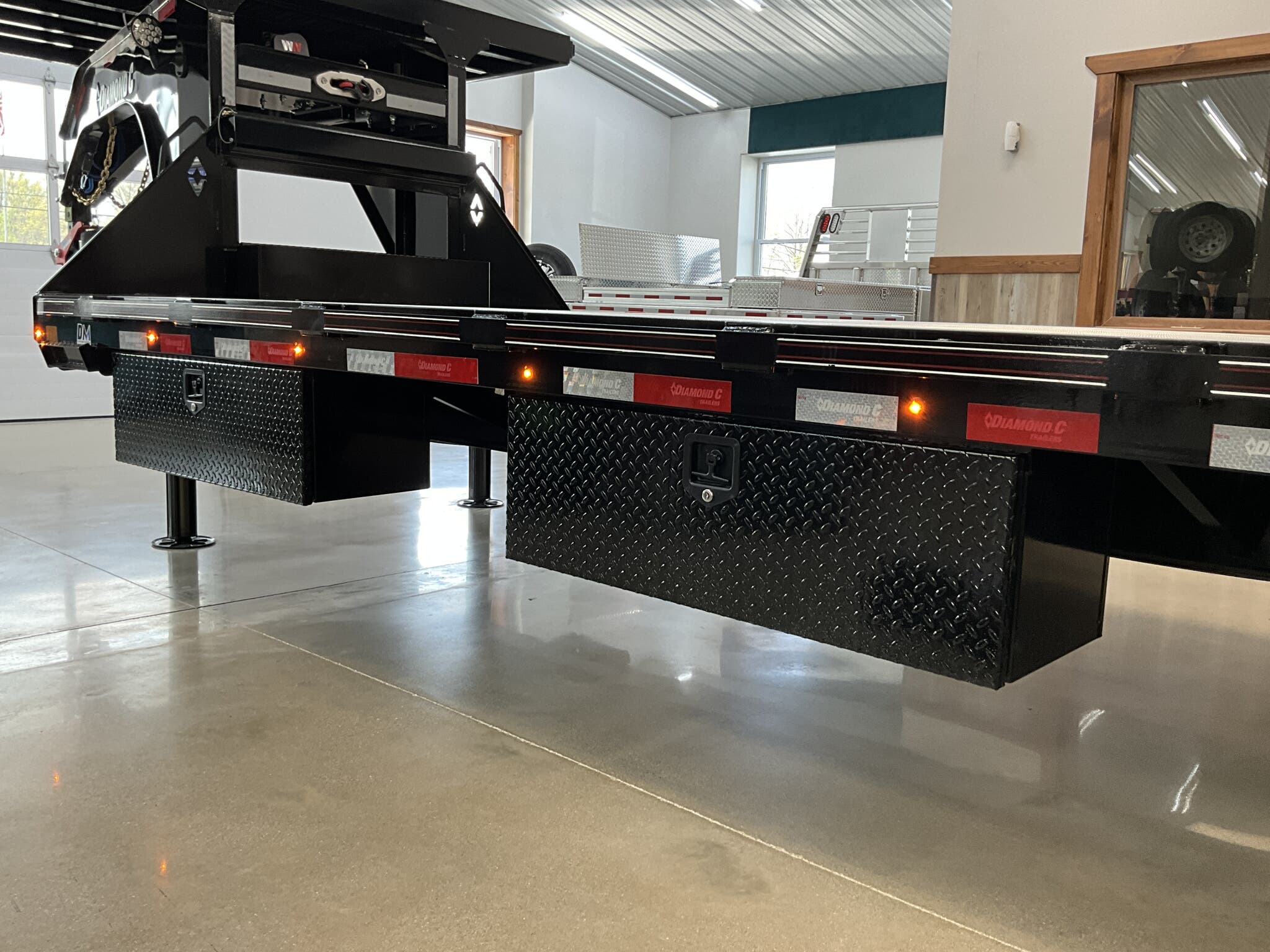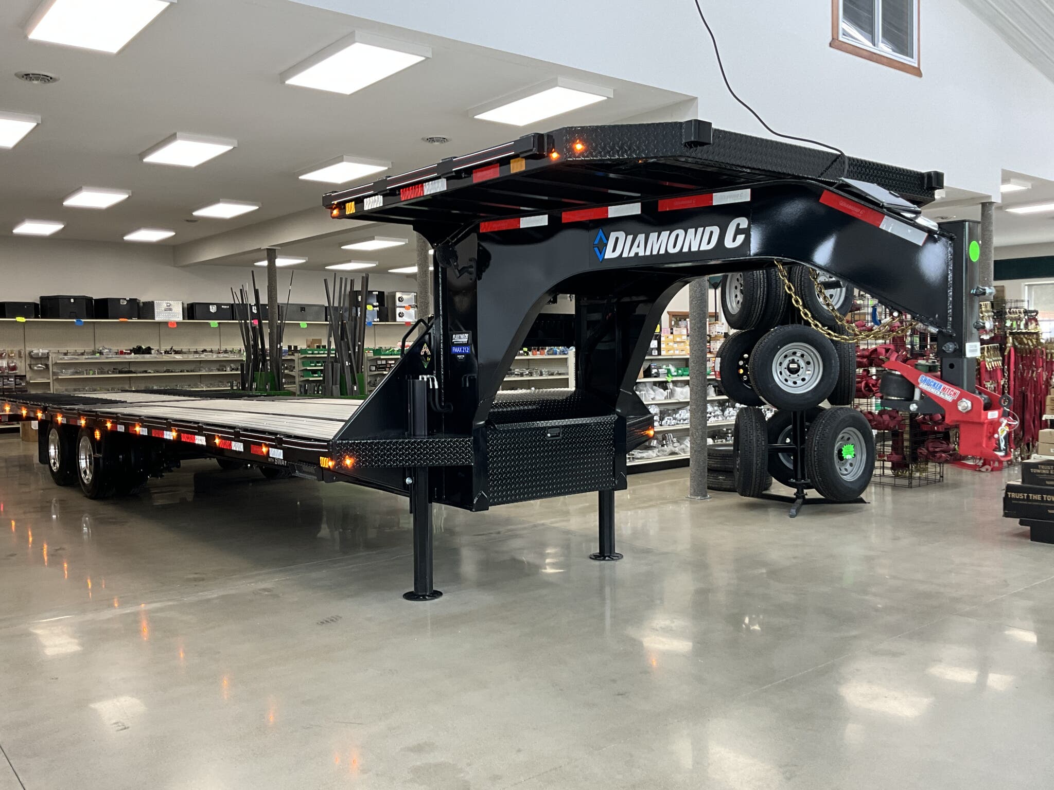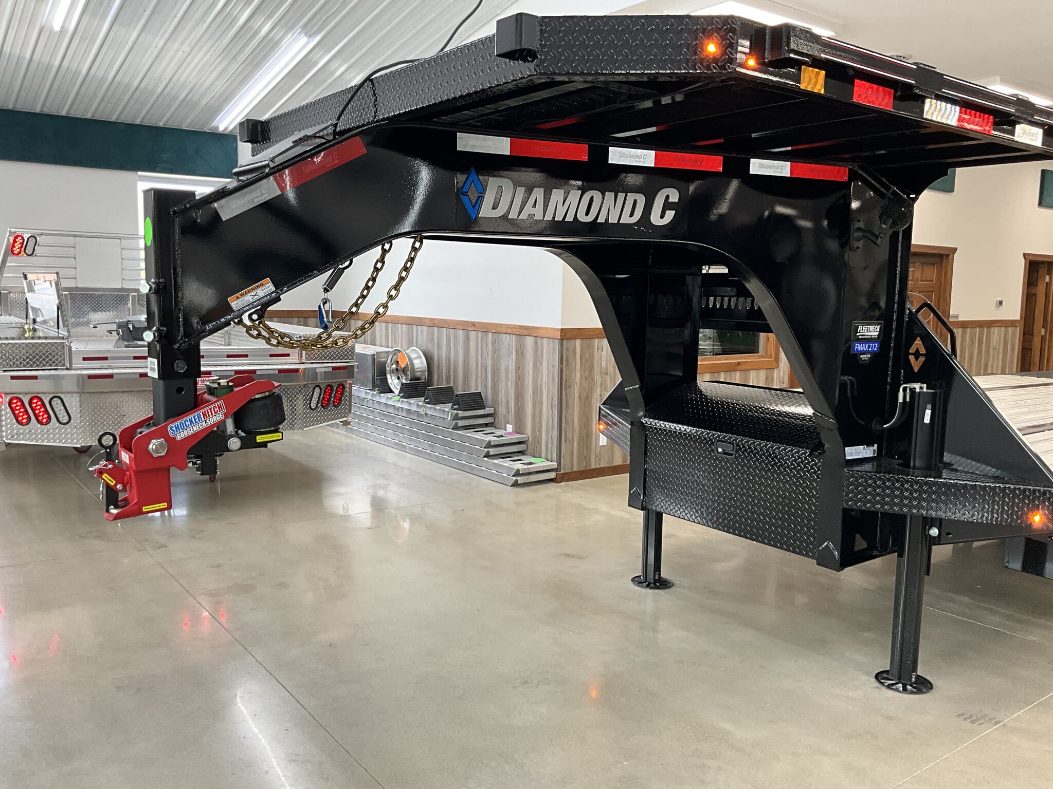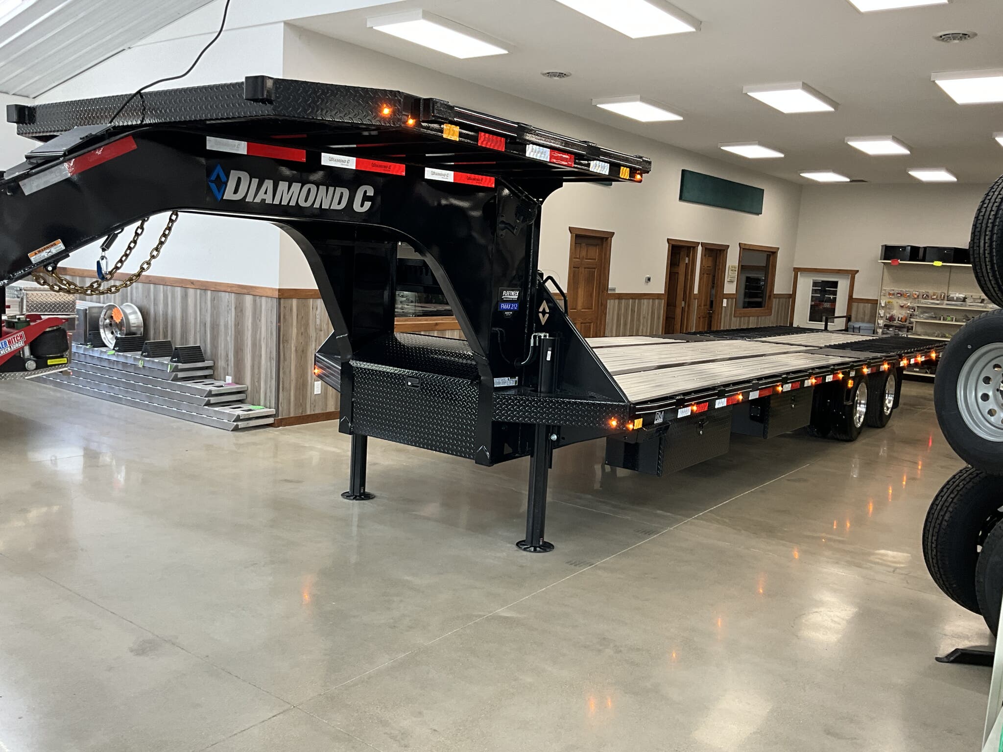 2026 DIAMOND C FMAX212 2.0 PACSETTER EDITION 32' 102" ENGINEERED BEAM GOOSENECK, 12' FULLY AUTOMATIC HYDRAULIC DOVETAIL, ONYX BLACK FOR SALE IN ILLINOIS Feature: 12' fully automatic hydraulic dovetail with 5 amp charger Feature: Electric over hydraulic 12K disc brakes Feature: 7' 8' deck on the neck with full aluminum flooring Feature: 12K winch package with Group 27 battery Feature: Dual 20K hydraulic jacks Feature: Full aluminum main deck flooring Feature: Heavy duty adjustable suspension Specs Size: 32' 102" Specs Frame: 16" Engineered Beam 2.0 with 3" I beam crossmembers on 12" centers Specs Neck: 12" engineered gooseneck Specs Axles/Brakes: (2) 12,000 lb electric over hydraulic disc brake axles Specs Suspension: Heavy duty adjustable suspension Specs Coupler: 30K Shocker hitch (2 5/16" ball) square Specs Flooring: Full aluminum flooring (L32') Specs Dovetail: Full steel runner with cleats Specs Storage: Full width welded chain rack; 14" 14" 42" underslung box Specs Tires/Wheels: ST215/75R17.5 dual 18 ply radials; aluminum outer wheels; matching spare Specs Lighting: All LED lighting; 6" oval LED caution flashers; bolt on 2000 lumen LED flood lights; extra clearance lights Specs Power: Group 27 battery; SolarPulse 7W charging system Specs Spare Mount: Under frame cable winch mount Specs Finish: DM Difference Maker coating; Onyx Black Specs Warranty: 6 year Diamond C manufacturer warranty (2026+) Weights & Capacities Total Axle Capacity: 24,000 lb Empty Weight: 8,960 lb Payload on Axles: 24,000 8,960 = 15,040 lb Tongue Load (Gooseneck @ 20%): 4,800 lb Total Effective Payload: 19,840 lb Delivery from 62864 (Lower 48) Up to 100 miles $150 101 300 miles $2.00/mile 301 1200 miles $3.00/mile Over 1200 miles $4.00/mile