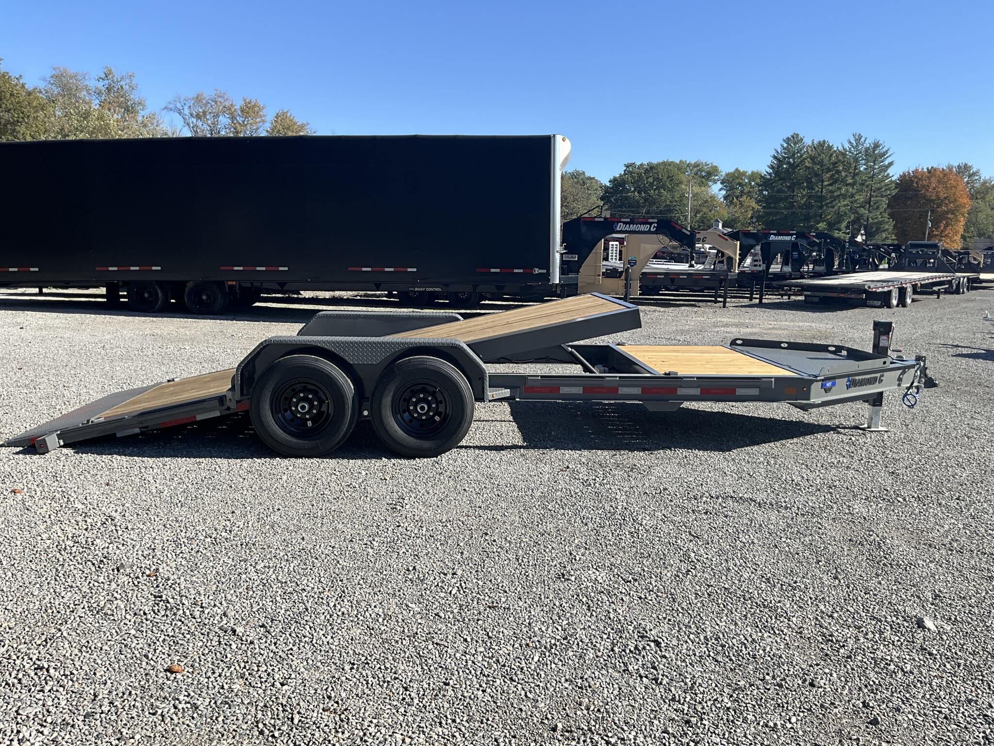 2026 DIAMOND C HDT207 20' x 82" (4' Stationary + 16' Tilt), 14,900 lb GVWR (207 Package), Cement Gray, Bumper Pull, Dual 7K Drop Axles w/ Electric Drum Brakes, Gravity Hydraulic Dampened Tilt For Sale in Illinois Standout Options: HD V tongue storage box with lid Standout Options: Single 15K 2 speed drop leg jack (Simol) Standout Options: 21K Demco EZ Latch coupler in adjustable channel Specs Frame: 8" x 10 lb I Beam; integral I Beam tongue Specs Crossmembers: 3" I Beam on 16" centers Specs Deck: 4' stationary front + 16' tilt bed (L20) Specs Tilt: Hydraulic dampened gravity tilt Specs Fenders: 14 ga teardrop diamond plate, weld on Specs Axles/Brakes: (2) 7,000 lb drop axles; electric drum brakes Specs Suspension: 6 leaf slipper roller springs Specs Floor: 2" treated lumber (20') Specs Coupler: 2 5/16" 21,000 lb Demco EZ Latch (adjustable channel) Specs Tie Downs: (4) 5/8" D rings Specs Rub Rail/Stake Pockets: 2" x 3/8" rub rail with stake pockets Specs Tires/Wheels: ST235/80R16 radial, 14 ply; 8 hole black wheels Specs Lighting: All LED Specs Paint/Finish: Cement Gray, DM Difference Maker coating Specs Decals: HDT badging Specs Warranty: 6 year manufacturer warranty (2026+) Weights & Capacities GVWR: 14,900 lb Weights & Capacities Empty/Trailer Weight: 4,610 lb Weights & Capacities Payload on Axles: 14,900 4,610 = 10,290 lb Weights & Capacities Target Tongue Load (10% of GVWR): 1,490 lb Weights & Capacities Total Payload Including Tongue Support: 14,900 4,610 + 1,490 = 11,780 lb Delivery from 62864 (Lower 48): Up to 100 miles: $150 Delivery from 62864 (Lower 48): 101 300 miles: $2.00/mile Delivery from 62864 (Lower 48): 301 1200 miles: $3.00/mile Delivery from 62864 (Lower 48): Over 1200 miles: $4.00/mile Web ID: 338900 1 Search Tags: Diamond C HDT207 specs; 20 ft tilt trailer 7K axles; hydraulic gravity tilt; 14.9K GVWR equipment trailer; 4' stationary 16' tilt; Cement Gray; Illinois trailer for sale