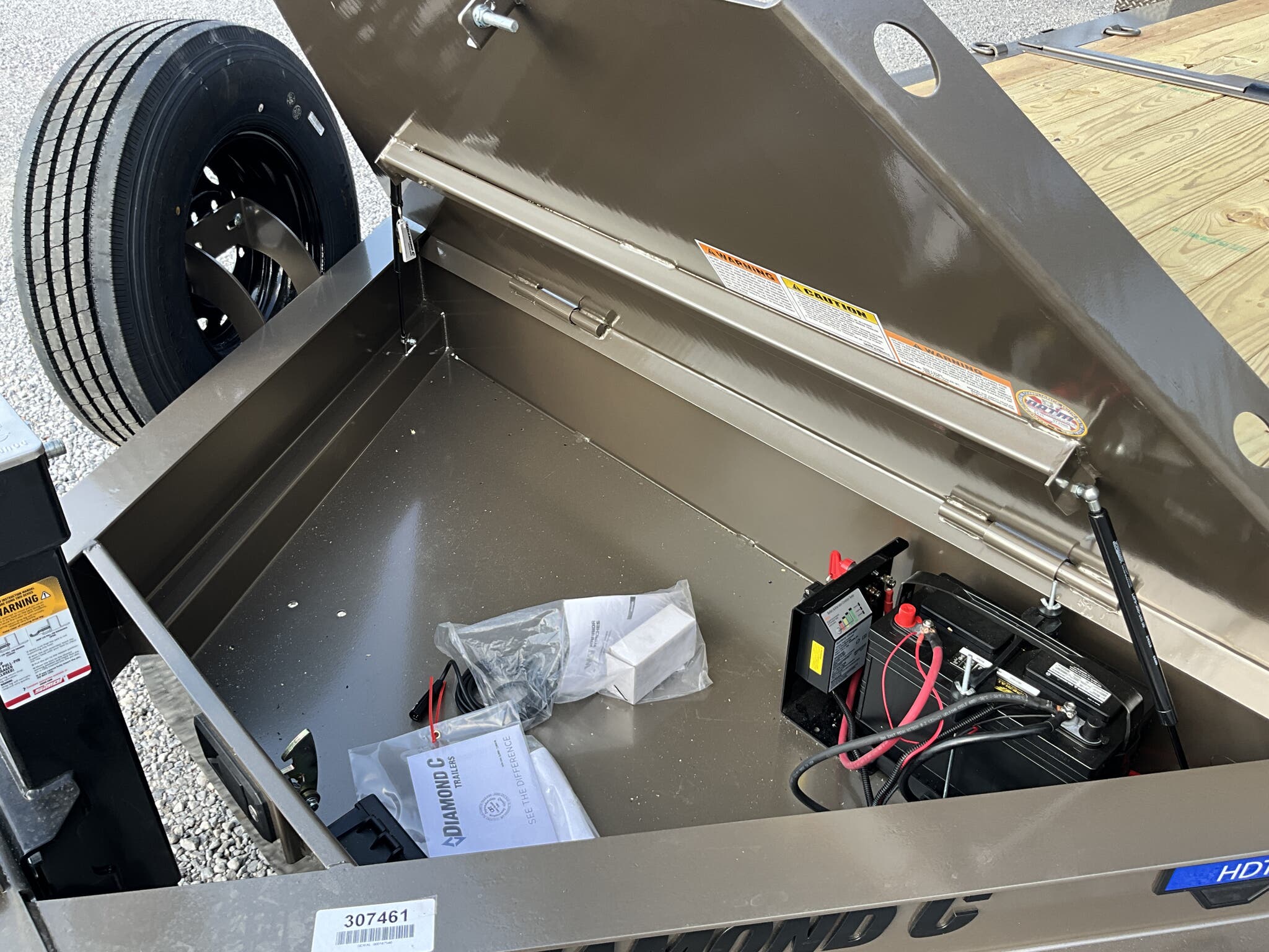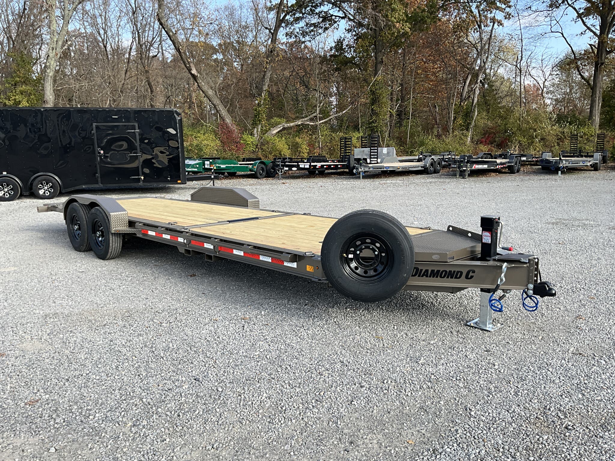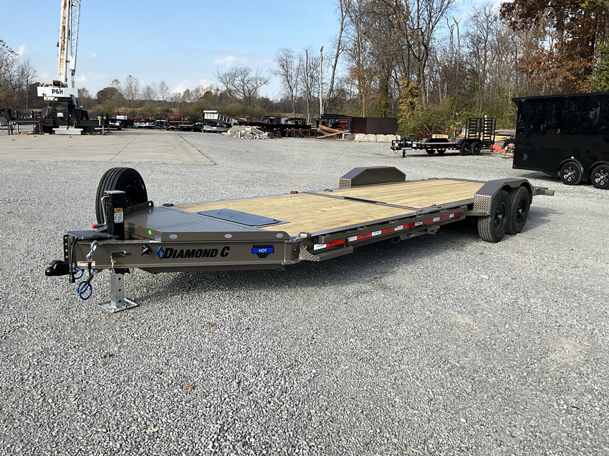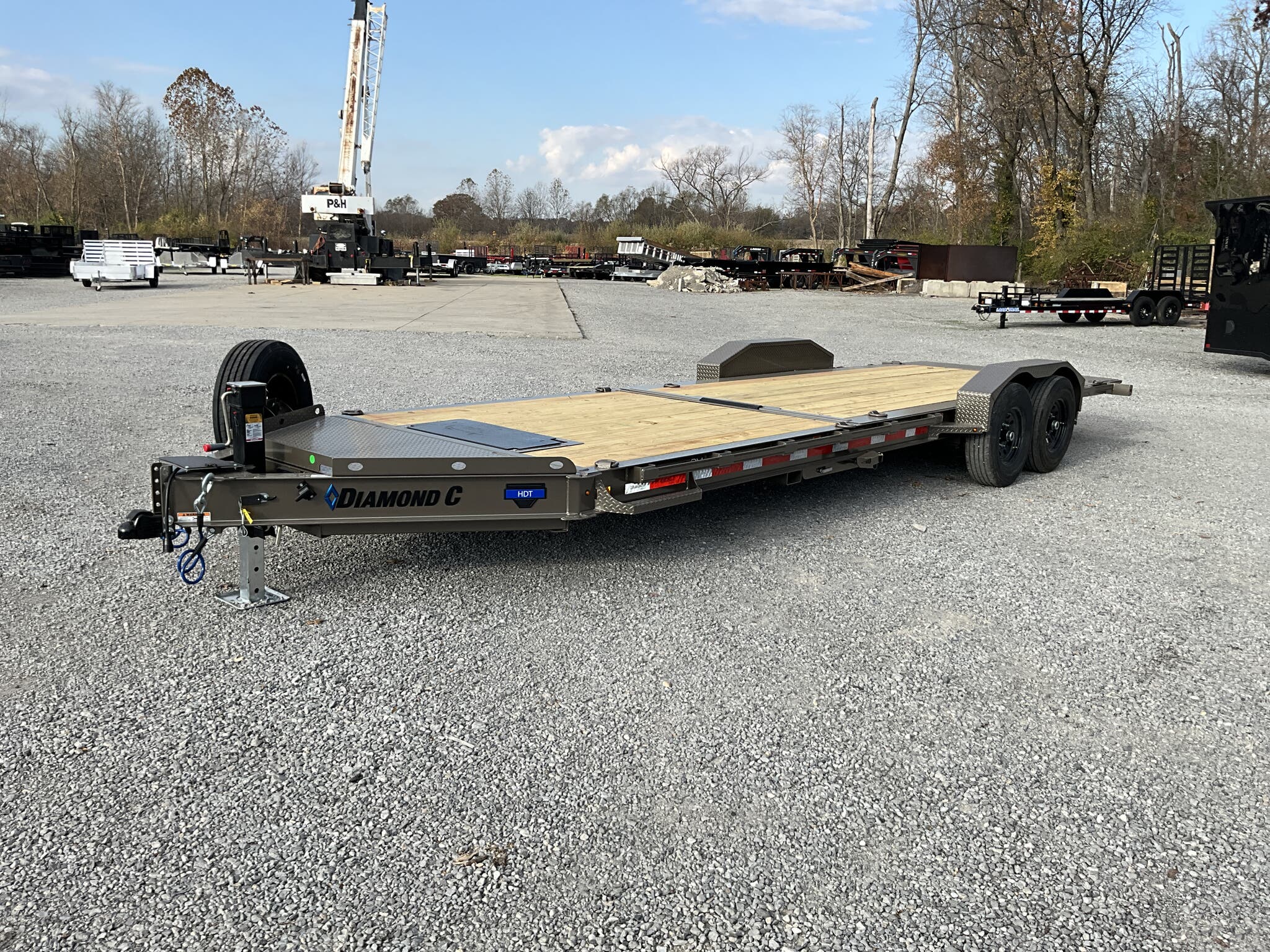 2026 DIAMOND C HDT207 24' x 82", Mocha Metallic, Bumper Pull, 8' Stationary + 16' Gravity Tilt (valve dampened), Dual 7K Drop Axles w/ Electric Brakes, 12K Pop Up Winch Package For Sale in Illinois Standout Options: 12K pop up winch package with tilt bed roller Standout Options: Super heavy duty 3/16" diamond plate fenders Standout Options: Extra (4) 5/8" D rings (8 total) Standout Options: Solarpulse 7W charger; spare tire + curb side spare mount Specs Frame Size: L24 x 82 Specs Main Frame: 8" x 15 lb I beam; integral I beam tongue; HD V tongue lid storage Specs Crossmembers: 3" I beam on 12" centers (L24) Specs Deck: 8' stationary front + 16' tilt bed Specs Tilt: Hydraulic dampened gravity tilt (valve controlled) Specs Floor: 2" treated lumber (24') Specs Coupler: 2 5/16" Demco EZ Latch, 21K, adjustable channel Specs Jack: 15K Simol 2 speed drop leg jack Specs Rail/Tie Downs: 2" x 3/8" rub rail with stake pockets; (8) total 5/8" D rings Specs Steps: 24" side step; step latch Specs Axles/Brakes: (2) 7,000 lb drop axles; electric drum brakes Specs Suspension: 6 leaf slipper roller springs Specs Tires/Wheels: ST235/80R16 radial, 14 ply; 8 hole black wheels Specs Lighting/Wiring: All LED lights; sealed harness Specs Paint/Finish: DM Difference Maker coating; Mocha Metallic Specs Warranty: 6 year manufacturer warranty (2026+) Weights & Capacities Total Axle Capacity (used for payload math): 14,000 lb Weights & Capacities Empty/Trailer Weight: 4,750 lb Weights & Capacities Payload on Axles (Capacity Empty): 14,000 4,750 = 9,250 lb Weights & Capacities Target Tongue Load (Bumper pull @ ~10% of Capacity): 1,400 lb Weights & Capacities Total Payload Including Tongue Support: 9,250 + 1,400 = 10,650 lb Delivery from 62864 (Lower 48): Up to 100 miles: $150 Delivery from 62864 (Lower 48): 101 300 miles: $2.00/mile Delivery from 62864 (Lower 48): 301 1200 miles: $3.00/mile Delivery from 62864 (Lower 48): Over 1200 miles: $4.00/mile