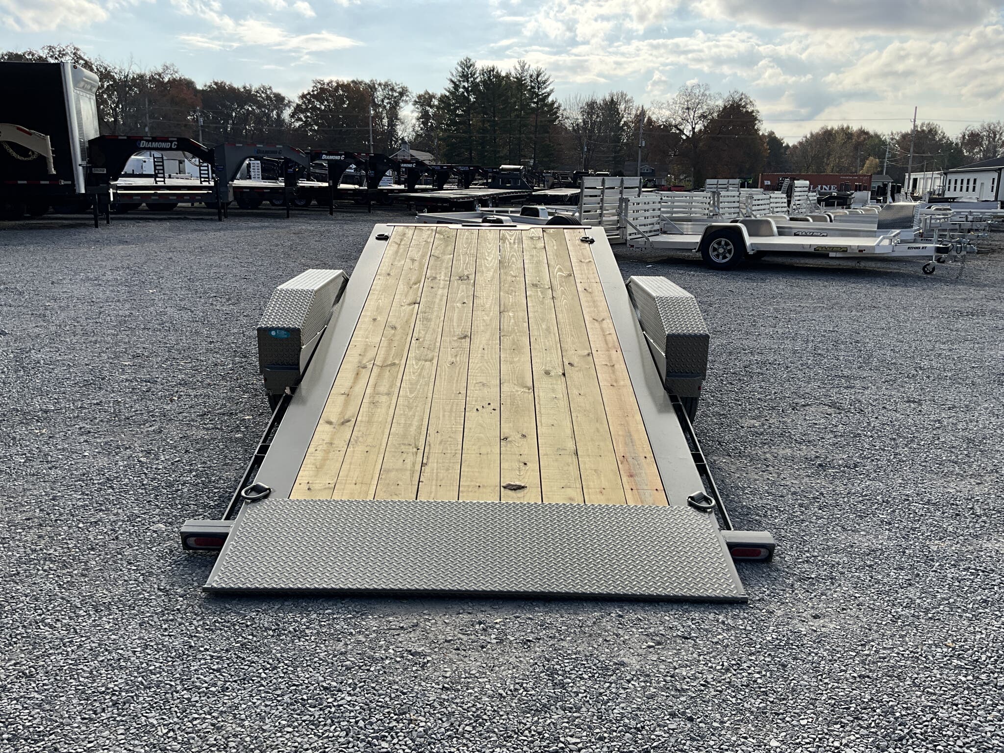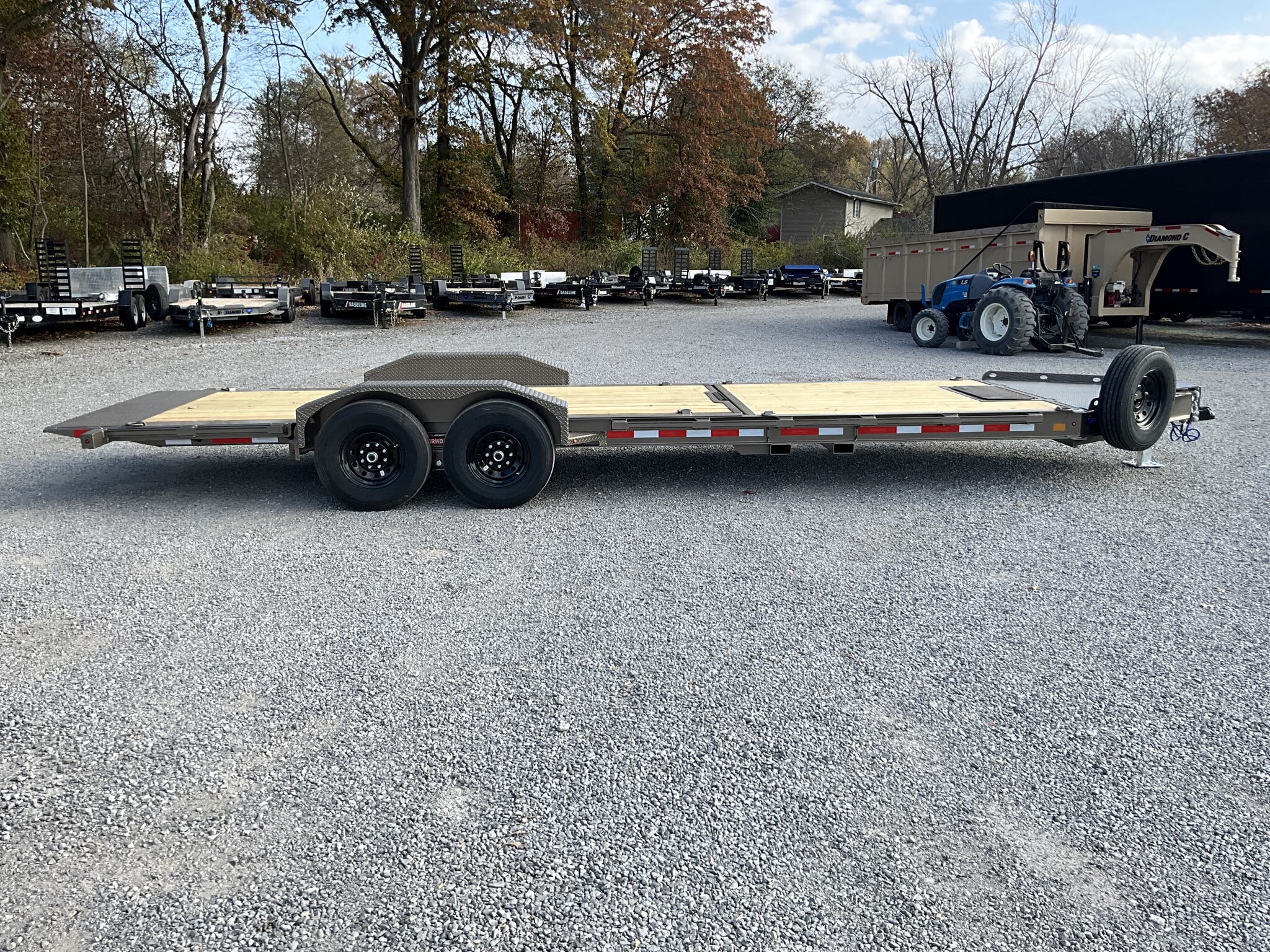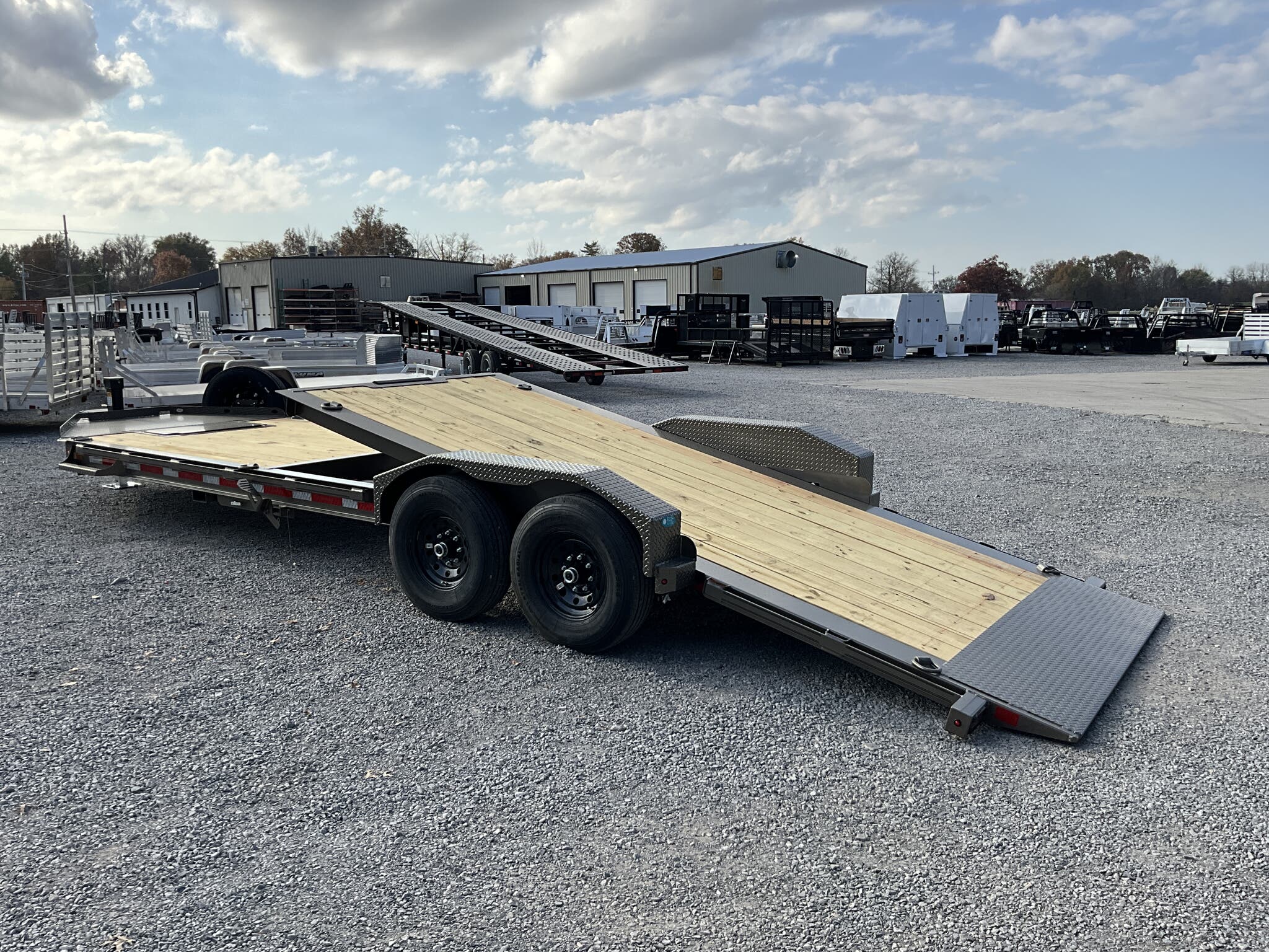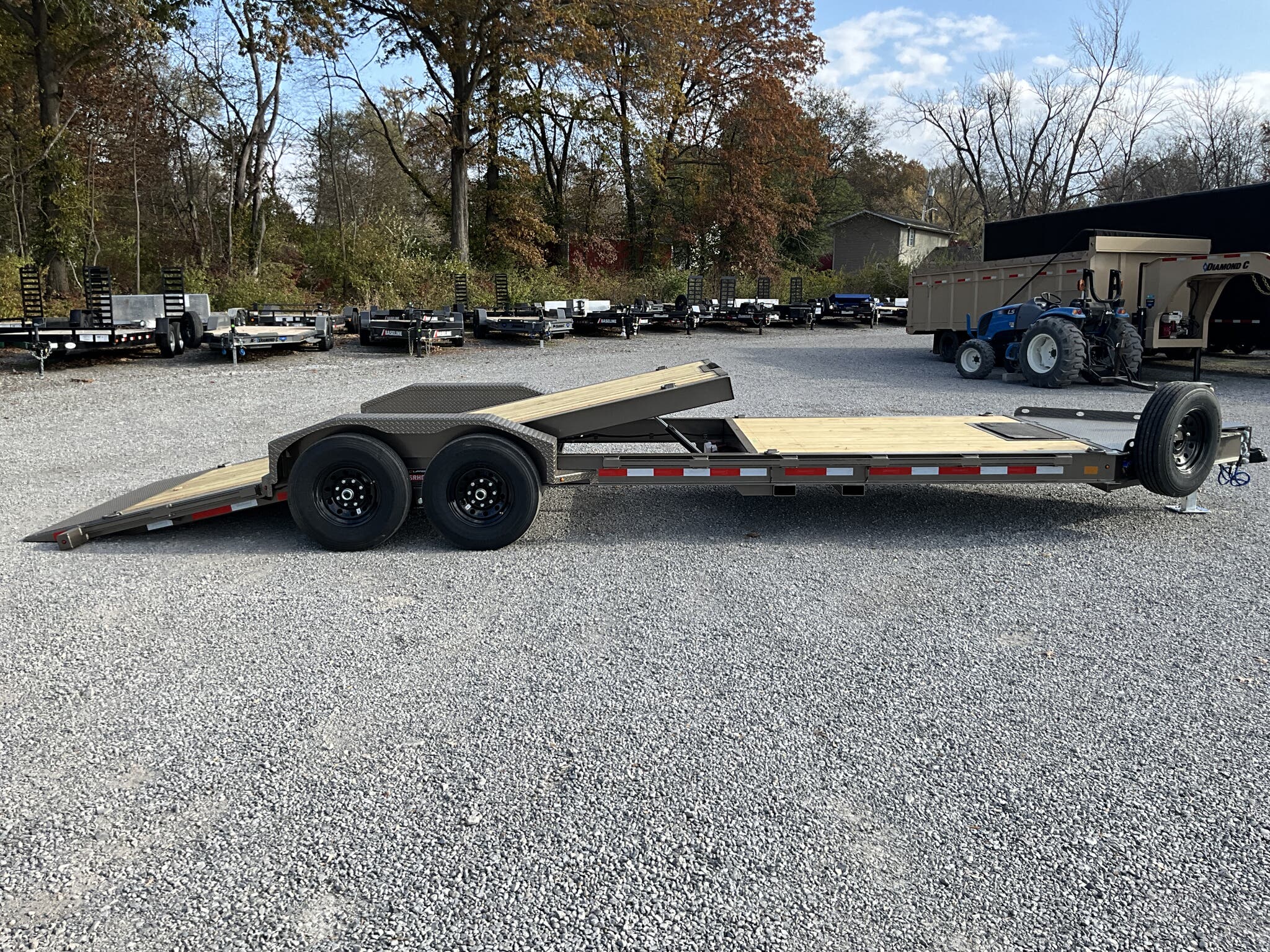 2026 DIAMOND C HDT207 24' x 82", Mocha Metallic, Bumper Pull, 8' Stationary + 16' Gravity Tilt (valve dampened), Dual 7K Drop Axles w/ Electric Brakes, 12K Pop Up Winch Package For Sale in Illinois Standout Options: 12K pop up winch package with tilt bed roller Standout Options: Super heavy duty 3/16" diamond plate fenders Standout Options: Extra (4) 5/8" D rings (8 total) Standout Options: Solarpulse 7W charger; spare tire + curb side spare mount Specs Frame Size: L24 x 82 Specs Main Frame: 8" x 15 lb I beam; integral I beam tongue; HD V tongue lid storage Specs Crossmembers: 3" I beam on 12" centers (L24) Specs Deck: 8' stationary front + 16' tilt bed Specs Tilt: Hydraulic dampened gravity tilt (valve controlled) Specs Floor: 2" treated lumber (24') Specs Coupler: 2 5/16" Demco EZ Latch, 21K, adjustable channel Specs Jack: 15K Simol 2 speed drop leg jack Specs Rail/Tie Downs: 2" x 3/8" rub rail with stake pockets; (8) total 5/8" D rings Specs Steps: 24" side step; step latch Specs Axles/Brakes: (2) 7,000 lb drop axles; electric drum brakes Specs Suspension: 6 leaf slipper roller springs Specs Tires/Wheels: ST235/80R16 radial, 14 ply; 8 hole black wheels Specs Lighting/Wiring: All LED lights; sealed harness Specs Paint/Finish: DM Difference Maker coating; Mocha Metallic Specs Warranty: 6 year manufacturer warranty (2026+) Weights & Capacities Total Axle Capacity (used for payload math): 14,000 lb Weights & Capacities Empty/Trailer Weight: 4,750 lb Weights & Capacities Payload on Axles (Capacity Empty): 14,000 4,750 = 9,250 lb Weights & Capacities Target Tongue Load (Bumper pull @ ~10% of Capacity): 1,400 lb Weights & Capacities Total Payload Including Tongue Support: 9,250 + 1,400 = 10,650 lb Delivery from 62864 (Lower 48): Up to 100 miles: $150 Delivery from 62864 (Lower 48): 101 300 miles: $2.00/mile Delivery from 62864 (Lower 48): 301 1200 miles: $3.00/mile Delivery from 62864 (Lower 48): Over 1200 miles: $4.00/mile