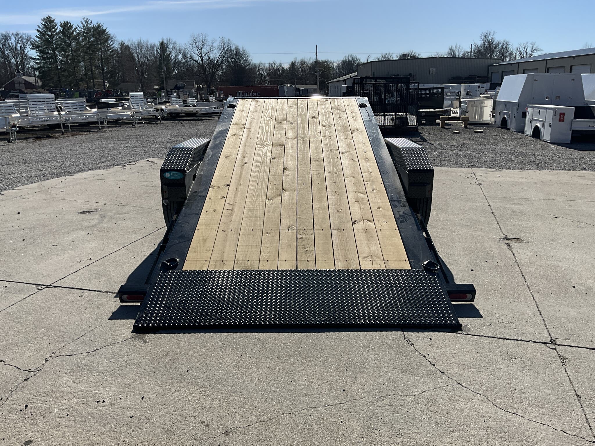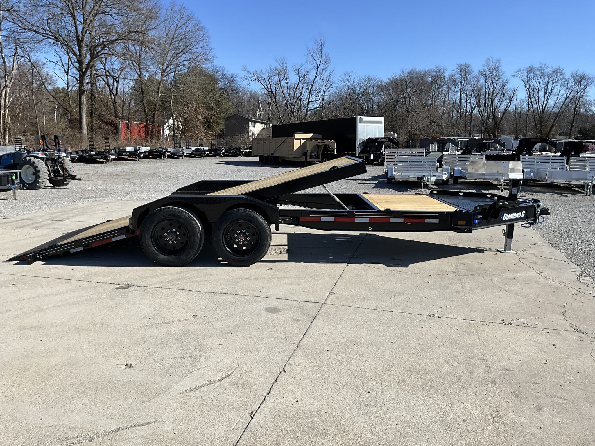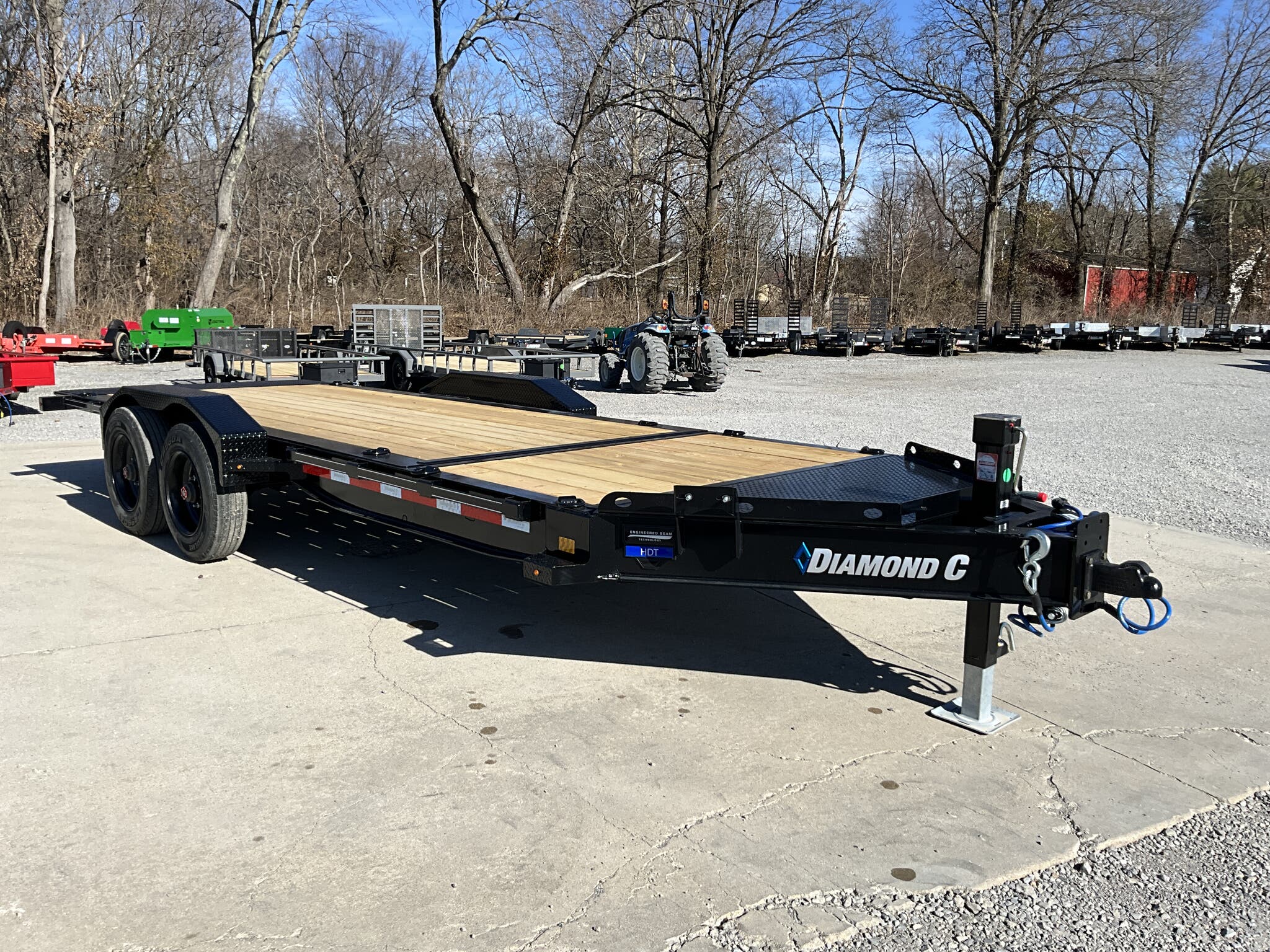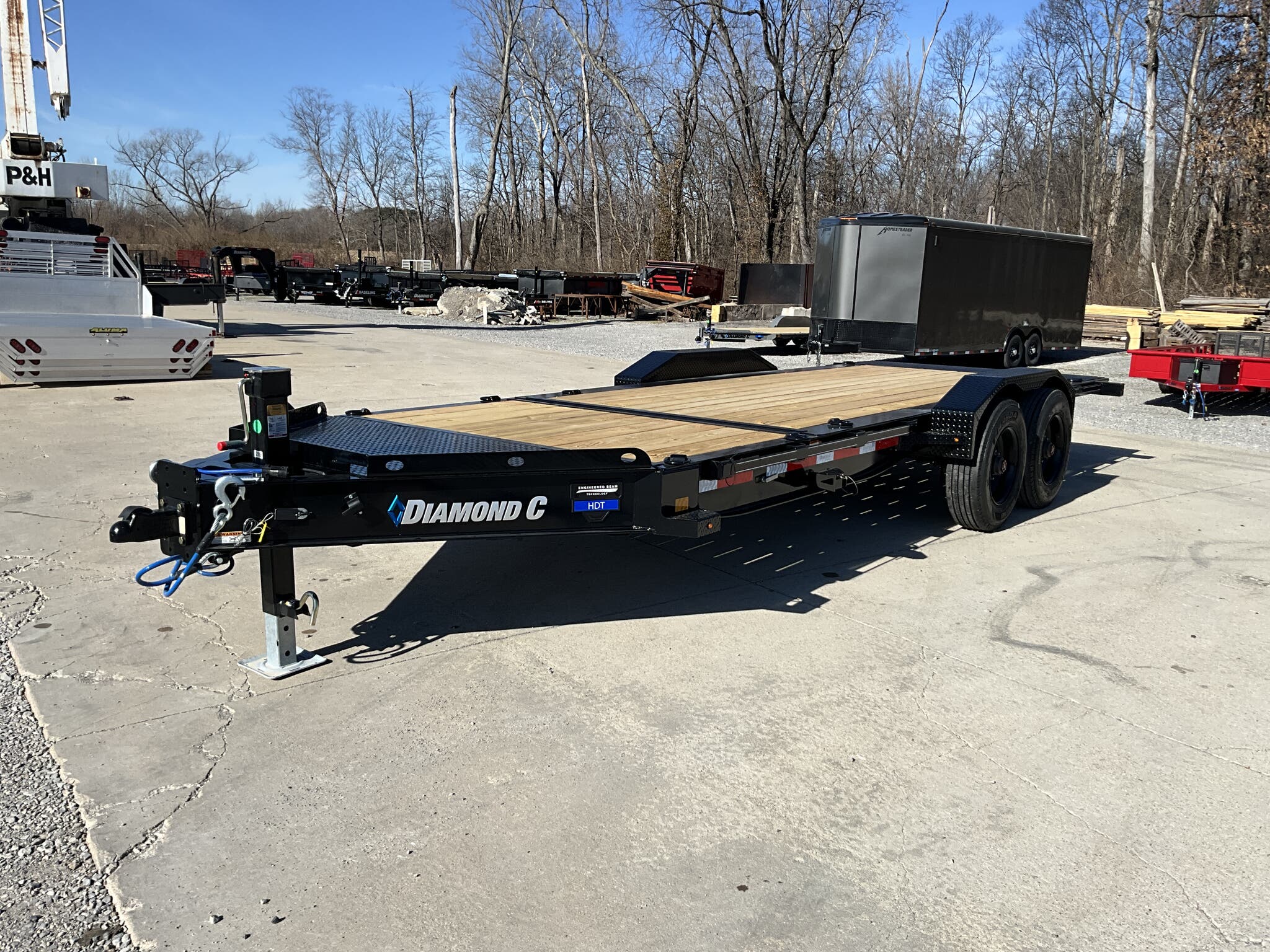 2026 DIAMOND C HDT210 20' 82" Tilt Equipment Trailer, Onyx Black, Dual 10K Torsion Axles For Sale in Illinois Feature: 4' stationary + 16' gravity tilt bed Feature: 3/16" super heavy duty diamond plate fenders Feature: HD V tongue toolbox with lid Feature: (8) total 5/8" D rings Specs Frame: Engineered beam Specs Crossmembers: 3" I beam on 16" centers Specs Tilt: Hydraulic dampened (gravity) Specs Coupler: 2 5/16" Demco EZ Latch flat mount Specs Jack: 15K Simol 2 speed drop leg jack Specs Storage: 10" 13" lockable steel tongue box Specs Tires/Wheels: ST215/75R17.5 18 ply on black steel Specs Lighting: All LED Specs Finish: Onyx Black Specs Web ID: 344581 2 Specs Warranty: 6 year manufacturer warranty (2026+) Weights & Capacities Total Axle Capacity: 20,000 lb Weights & Capacities Empty Weight: 4,370 lb Weights & Capacities Payload on Axles: 15,630 lb Weights & Capacities Tongue Load (10%): 2,000 lb Weights & Capacities Total Payload Including Tongue: 17,630 lb Delivery from 62864 (Lower 48): Up to 100 miles $150 Delivery from 62864 (Lower 48): 101 300 miles $2.00/mile Delivery from 62864 (Lower 48): 301 1200 miles $3.00/mile Delivery from 62864 (Lower 48): Over 1200 miles $4.00/mile