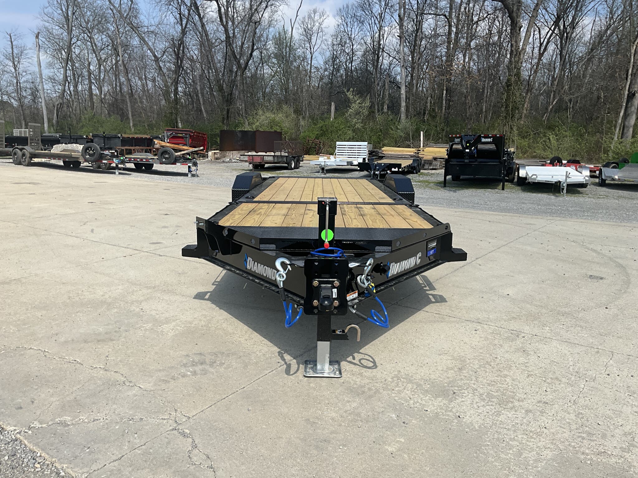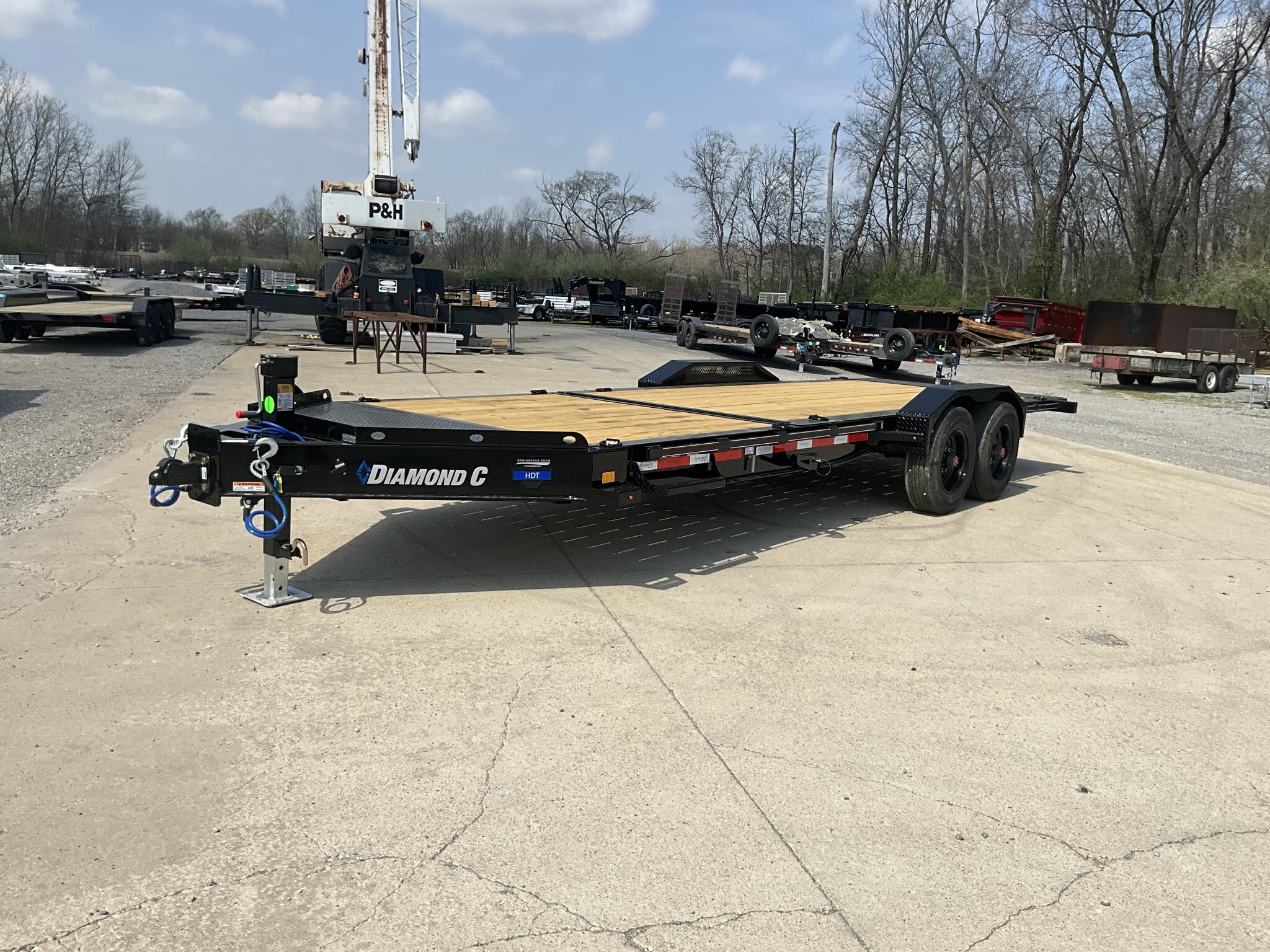 2026 DIAMOND C HDT210 23K 82" 22' HYDRAULICALLY DAMPENED TILT EQUIPMENT TRAILER, ONYX BLACK, 6' STATIONARY / 16' TILT BED FOR SALE IN MOUNT VERNON, IL 62864 Feature: Hydraulic dampened tilt system with valve control for smooth and controlled operation Feature: Engineered beam frame with 3" I beam crossmembers on 12" centers Feature: Adjustable flat mount pintle ring for heavy duty towing versatility Feature: (8) total 5/8" D rings with rub rail and stake pockets for secure tie down Feature: Super heavy duty 3/16" diamond plate fenders with added fork holders Specs Model: HDT210 Hydraulic Tilt Equipment Trailer Specs Size: 82" 22' (6' stationary + 16' tilt) Specs GVWR: 23,000 lb Specs Axles/Brakes: (2) 10,000 lb oil bath torsion axles with electric drum brakes Specs Suspension: Torsion axles Specs Frame: Engineered beam frame Specs Crossmembers: 3" I beam on 12" centers Specs Deck: 2" treated wood floor Specs Tilt: Hydraulic dampened cylinder with valve control Specs Coupler: Adjustable flat mount pintle ring Specs Jack: 15K 2 speed drop leg jack Specs Storage: HD V tongue toolbox Specs Fenders: 3/16" diamond plate super heavy duty Specs Fork Holder: Integrated fork holders Specs Tie Downs: (8) 5/8" D rings Specs Rail: 2" 3/8" rub rail with stake pockets Specs Tires/Wheels: ST235/75R17.5 18 ply radial, black wheels Specs Spare: Matching ST235/75R17.5 18 ply radial with tongue mount Specs Step: 24" side step Specs Spare Mount: Passenger side tongue mount Specs Lighting: Full LED lighting package Specs Finish: Onyx Black DM Difference Maker coating system Specs Certification: NATM compliant Specs Warranty: 6 year Diamond C structural warranty Weights & Capacities GVWR: 23,000 lb Empty Weight: 4,370 lb Payload on Axles: 20,000 4,370 = 15,630 lb Target Tongue Load (10% of GVWR): 2,300 lb Total Effective Payload: 17,930 lb Delivery from 62864 (Lower 48) Up to 100 miles $150 101 300 miles $2.00/mile 301 1200 miles $3.00/mile Over 1200 miles $4.00/mile