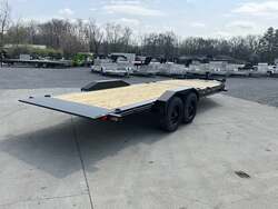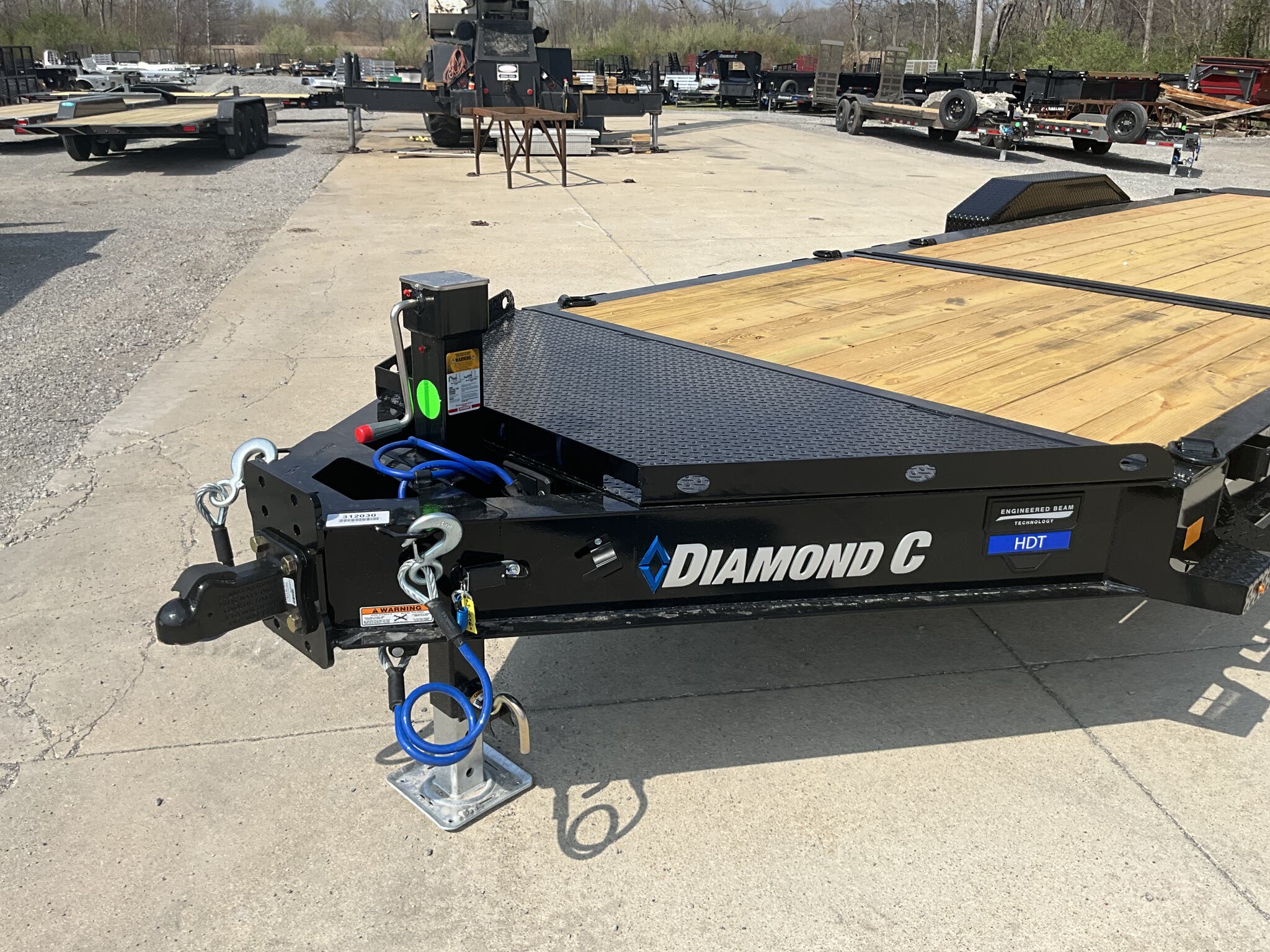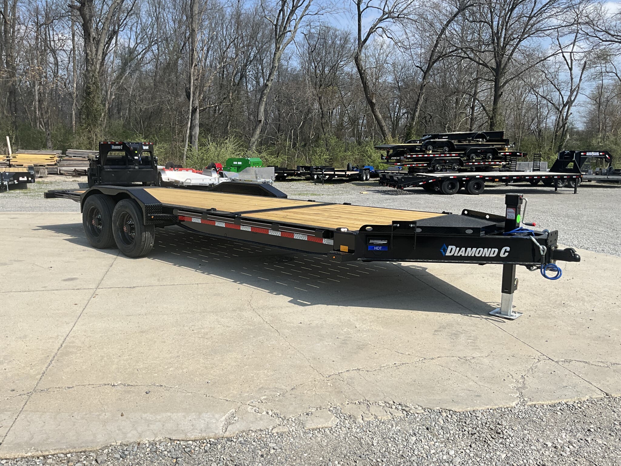 2026 DIAMOND C HDT210 23K 82" 22' HYDRAULICALLY DAMPENED TILT EQUIPMENT TRAILER, ONYX BLACK, 6' STATIONARY / 16' TILT BED FOR SALE IN MOUNT VERNON, IL 62864 Feature: Hydraulic dampened tilt system with valve control for smooth and controlled operation Feature: Engineered beam frame with 3" I beam crossmembers on 12" centers Feature: Adjustable flat mount pintle ring for heavy duty towing versatility Feature: (8) total 5/8" D rings with rub rail and stake pockets for secure tie down Feature: Super heavy duty 3/16" diamond plate fenders with added fork holders Specs Model: HDT210 Hydraulic Tilt Equipment Trailer Specs Size: 82" 22' (6' stationary + 16' tilt) Specs GVWR: 23,000 lb Specs Axles/Brakes: (2) 10,000 lb oil bath torsion axles with electric drum brakes Specs Suspension: Torsion axles Specs Frame: Engineered beam frame Specs Crossmembers: 3" I beam on 12" centers Specs Deck: 2" treated wood floor Specs Tilt: Hydraulic dampened cylinder with valve control Specs Coupler: Adjustable flat mount pintle ring Specs Jack: 15K 2 speed drop leg jack Specs Storage: HD V tongue toolbox Specs Fenders: 3/16" diamond plate super heavy duty Specs Fork Holder: Integrated fork holders Specs Tie Downs: (8) 5/8" D rings Specs Rail: 2" 3/8" rub rail with stake pockets Specs Tires/Wheels: ST235/75R17.5 18 ply radial, black wheels Specs Spare: Matching ST235/75R17.5 18 ply radial with tongue mount Specs Step: 24" side step Specs Spare Mount: Passenger side tongue mount Specs Lighting: Full LED lighting package Specs Finish: Onyx Black DM Difference Maker coating system Specs Certification: NATM compliant Specs Warranty: 6 year Diamond C structural warranty Weights & Capacities GVWR: 23,000 lb Empty Weight: 4,370 lb Payload on Axles: 20,000 4,370 = 15,630 lb Target Tongue Load (10% of GVWR): 2,300 lb Total Effective Payload: 17,930 lb Delivery from 62864 (Lower 48) Up to 100 miles $150 101 300 miles $2.00/mile 301 1200 miles $3.00/mile Over 1200 miles $4.00/mile