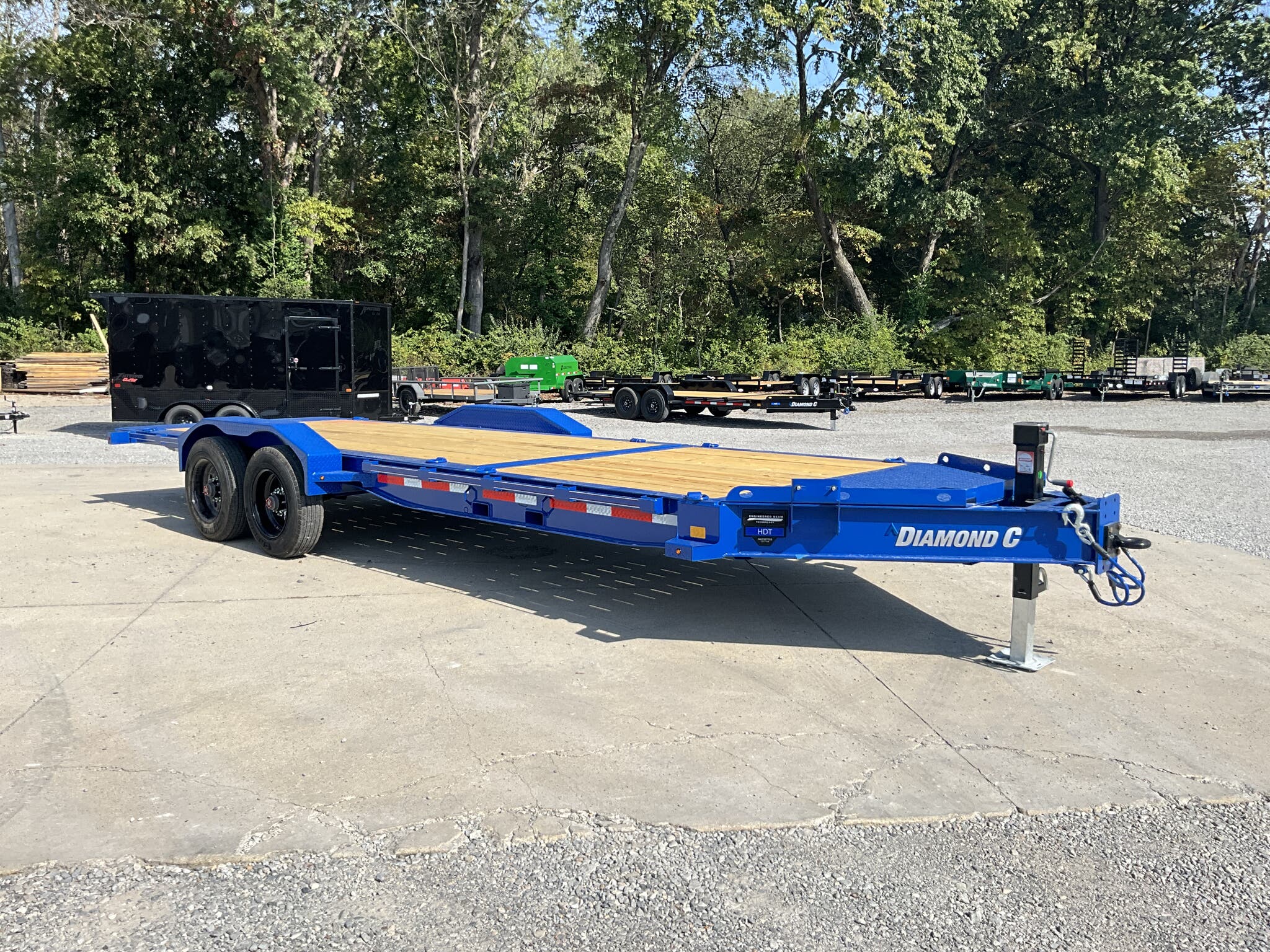 2026 Diamond C HDT210 22 82 Tilt Equipment Trailer Pacesetter Edition Dynamic Blue For Sale in Illinois OVERVIEW: 2026 DIAMOND C HDT 22 82 GRAVITY TILT EQUIPMENT TRAILER PACESETTER EDITION HEAVY DUTY 20K PINTLE COUPLER + SIMOL 15K 2 SPEED JACK DYNAMIC BLUE METALLIC DIFFERENCE MAKER POWDERCOAT FINISH SPECIFICATIONS: Axles: (2) 10,000 lb torsion axles with electric drum brakes Suspension: 10K torsion suspension Frame: Engineered beam frame (L22 82) Deck: 6 stationary front + 16 gravity tilt deck (22 total) Crossmembers: 3 I beam on 12 centers Tilt System: Hydraulic dampened (gravity) Coupler: 35K adjustable pintle ring hitch (2 1/2 eye) Jack: 15K Simol 2 speed drop leg jack Fenders: 3/16 diamond plate super heavy duty Floor: 2 treated wood Storage: HD V tongue toolbox Steps: 24 side step Fork Holder: Included Tie Downs: (8) total (4 extra D rings added) Tires/Wheels: ST215/75R17.5 18 ply radials on black wheels + matching spare Lighting: All LED lighting package Color: Dynamic Blue Metallic WEIGHTS: Empty Weight: ~4,200 lbs GVWR: 20,000 lbs Payload Capacity: ~15,800 lbs Tongue Weight Capacity (10% of GVWR Bumper Pull): 2,000 lbs Total Effective Payload: ~17,800 lbs DELIVERY RATES FROM ZIP CODE 62864: Up to 100 miles $150 101 to 300 miles $2.00 per mile 301 to 1,200 miles $3.00 per mile Over 1,200 miles $4.00 per mile (Lower 48 states only)