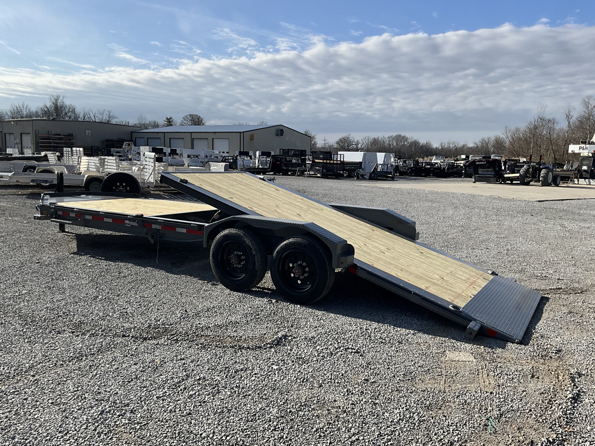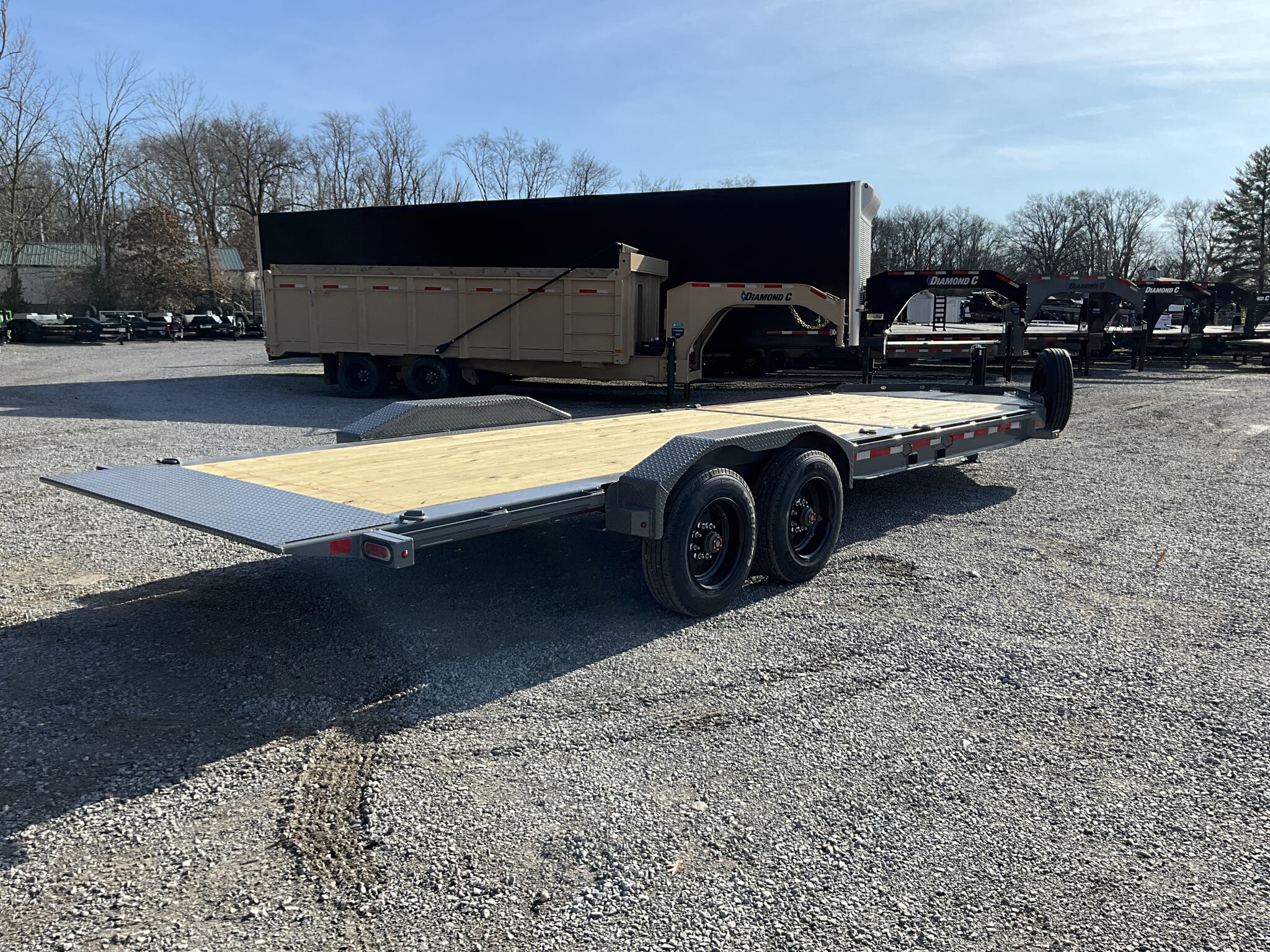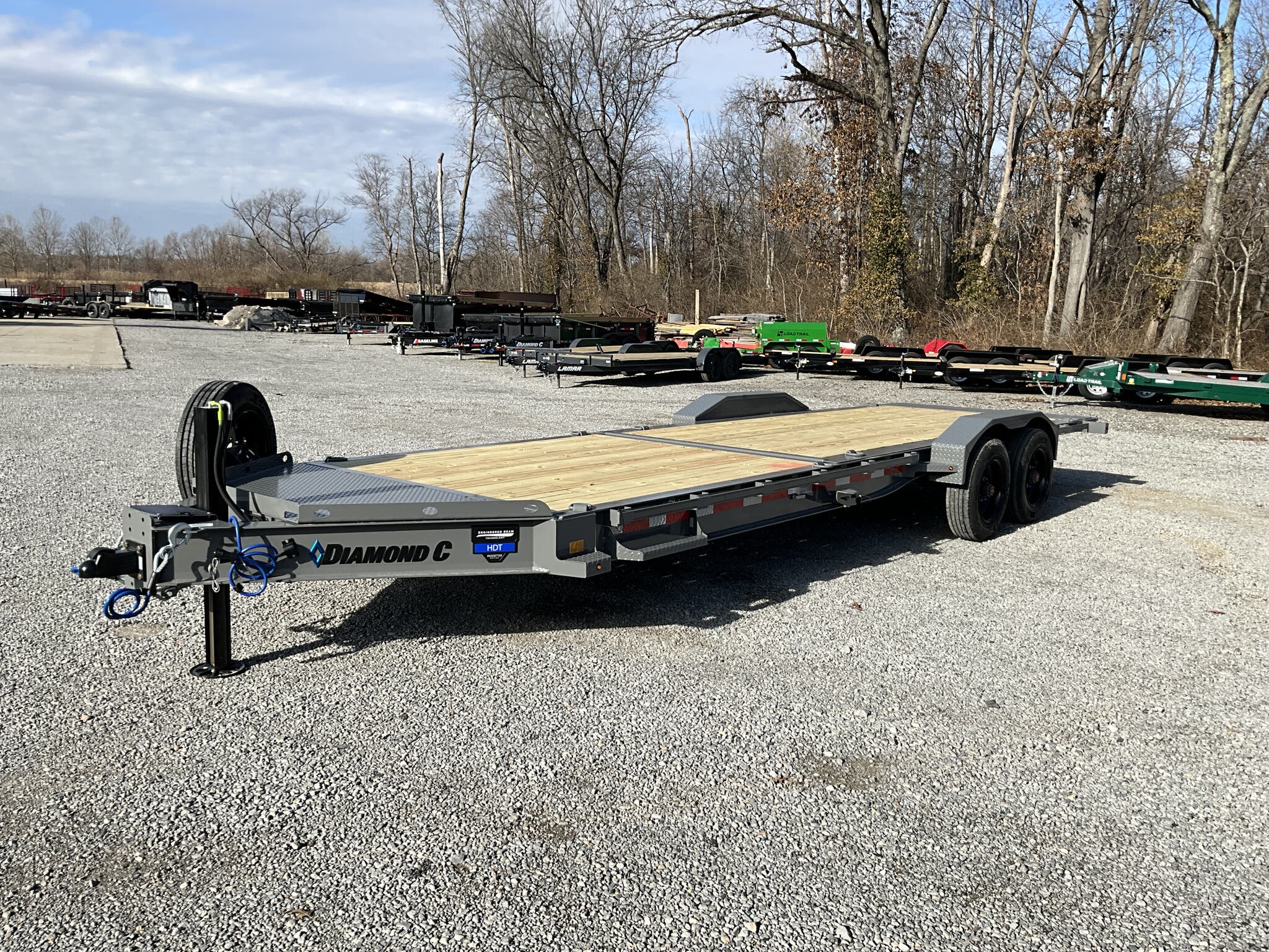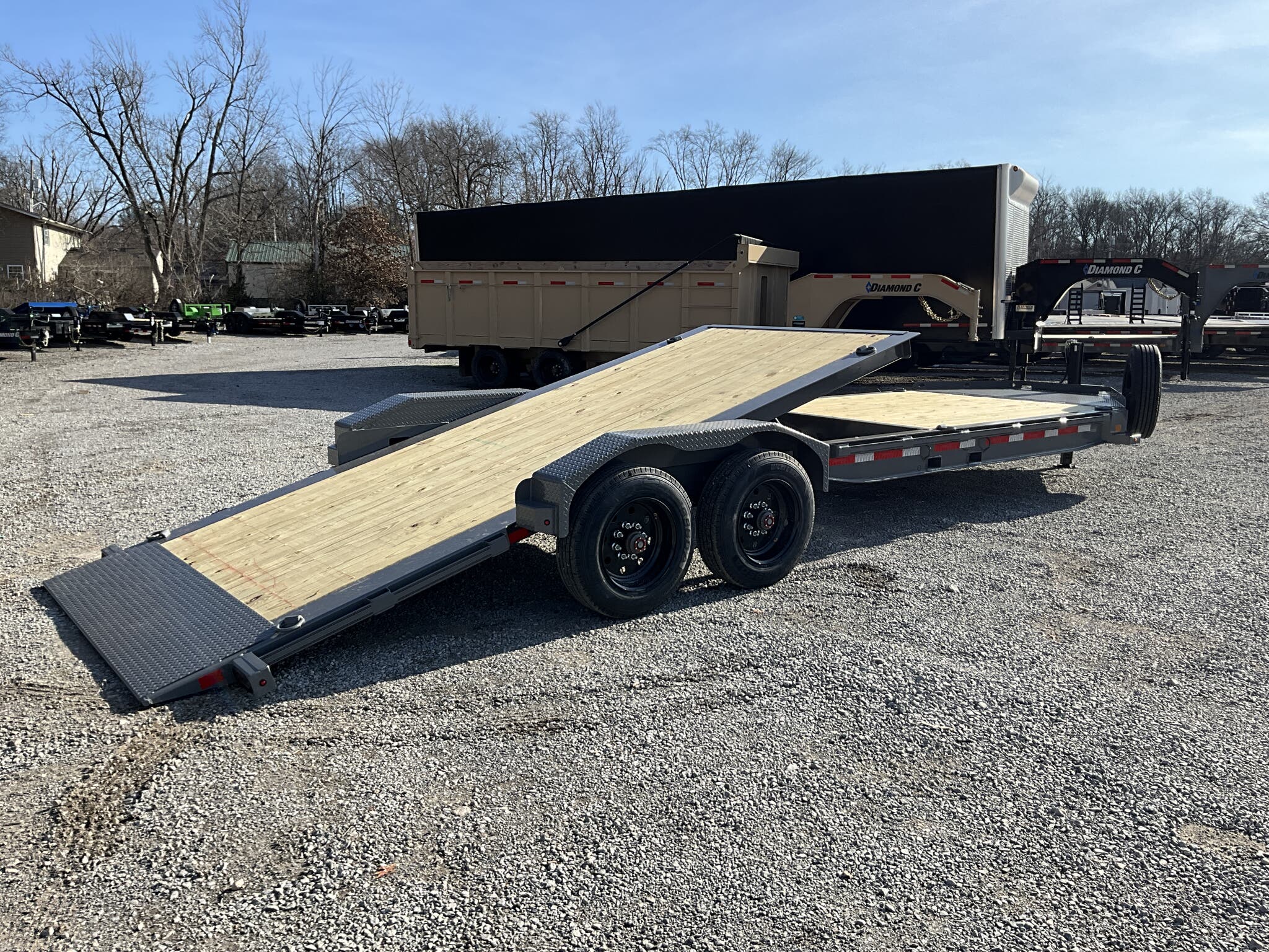 2026 DIAMOND C HDT210 20K 82" 24' HYDRAULICALLY DAMPENED TILT EQUIPMENT TRAILER, CEMENT GRAY, 8' STATIONARY / 16' TILT BED FOR SALE IN MOUNT VERNON, IL 62864 Feature: Pacesetter Edition with hydraulic dampened gravity tilt for smooth, controlled loading Feature: 8' stationary deck with 16' tilt bed for extended loading versatility Feature: Engineered beam frame with 3" I beam crossmembers on 12" centers Feature: 35K adjustable pintle ring hitch for heavy duty towing applications Feature: SolarPulse charging system with hydraulic jack and battery support Specs Model: HDT210 Hydraulic Tilt Equipment Trailer (Pacesetter Edition) Specs Size: 82" 24' (8' stationary + 16' tilt) Specs GVWR: 20,000 lb Specs Axles/Brakes: (2) 10,000 lb electric drum brake axles Specs Suspension: 10K torsion axles Specs Frame: Engineered beam frame with integral I beam tongue Specs Crossmembers: 3" I beam on 12" centers Specs Deck: 2" treated wood floor Specs Tilt: Hydraulic dampened gravity tilt system Specs Coupler: 35K adjustable pintle ring (2 1/2" eye) Specs Jack: 20K hydraulic jack Specs Storage: HD V tongue toolbox Specs Fork Holder: Integrated fork holder Specs Fenders: 3/16" diamond plate super heavy duty Specs Tie Downs: (8) 5/8" D rings Specs Rail: 2" 3/8" rub rail with stake pockets Specs Tires/Wheels: ST235/75R17.5 super single 18 ply, black steel wheels Specs Spare: Matching ST235/75R17.5 super single 18 ply with tongue mount Specs Step: 24" side step Specs Spare Mount: Passenger side tongue mount Specs Electrical: SolarPulse 7W charging system Specs Lighting: Full LED lighting package Specs Finish: Cement Gray powdercoat Specs Certification: NATM compliant Specs Warranty: 6 year Diamond C structural warranty Weights & Capacities GVWR: 20,000 lb Empty Weight: 4,990 lb Payload on Axles: 20,000 4,990 = 15,010 lb Target Tongue Load (10% of GVWR): 2,000 lb Total Effective Payload: 17,010 lb Delivery from 62864 (Lower 48) Up to 100 miles $150 101 300 miles $2.00/mile 301 1200 miles $3.00/mile Over 1200 miles $4.00/mile