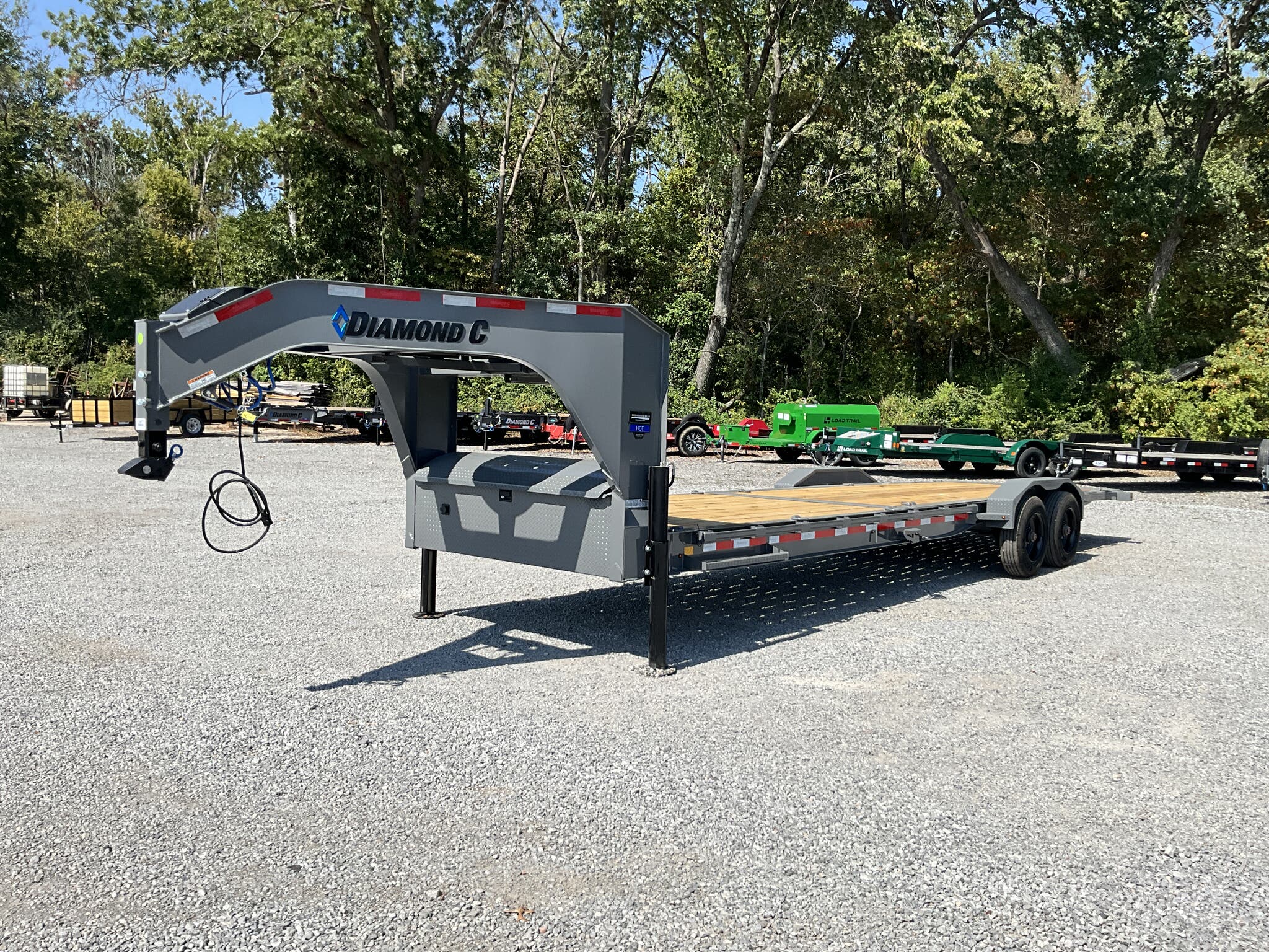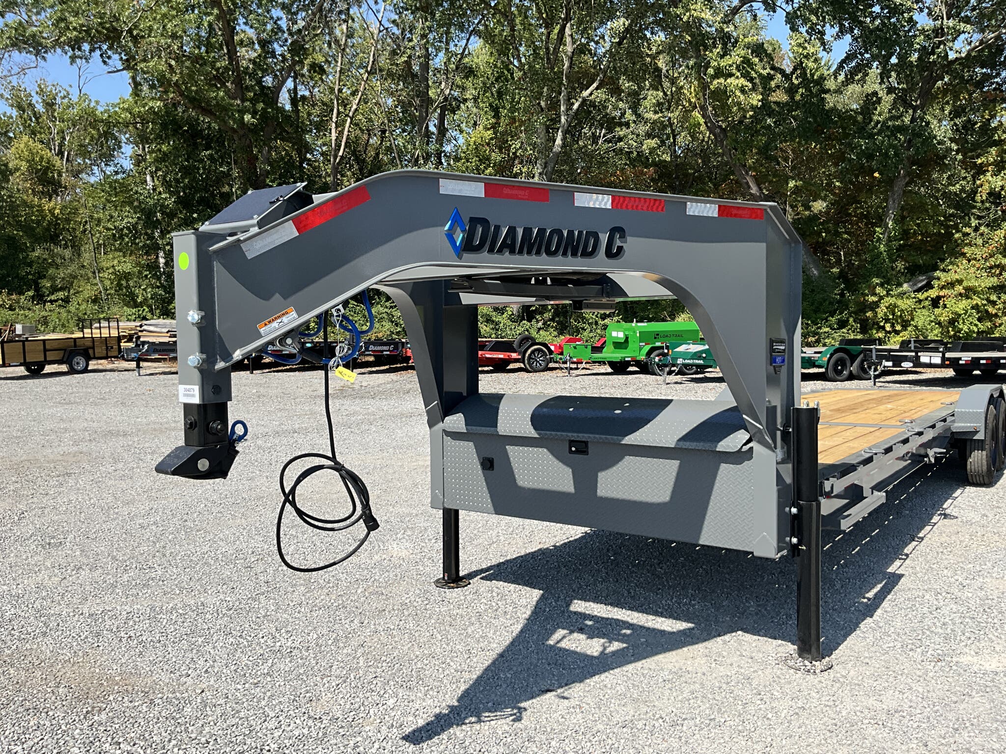 2026 DIAMOND C HDT210 GN PACESETTER EDITION GOOSENECK TILT TRAILER 28' X 82" The 2026 Diamond C HDT210 GN Pacesetter Edition is a gooseneck tilt equipment trailer built with Diamond C s exclusive Engineered Beam Frame and upgraded Pacesetter package. Designed for serious equipment hauling, this 28' x 82" trailer features a tilt deck, torsion axles, hydraulic jacks, and smart storage solutions for everyday professional use. KEY SPECS & FEATURES GVWR: 20,000 LB (Diamond C Trailers) FRAME: ENGINEERED BEAM FRAME WITH 3" I BEAM CROSSMEMBERS ON 12" CENTERS (Diamond C Trailers) AXLES & SUSPENSION: 2 10K TORSION STRAIGHT AXLES WITH ELECTRIC DRUM BRAKES (Diamond C Trailers) DECK CONFIGURATION: 10' STATIONARY DECK + 18' TILT BED (HYDRAULIC DAMPENED GRAVITY TILT) (Diamond C Trailers) NECK & COUPLER: 12" ENGINEERED NECK WITH WINCH TRAY | 30K CURT COUPLER (2 5/16" BALL, SQUARE) (Diamond C Trailers) JACKS: DUAL 20K HYDRAULIC JACKS (Diamond C Trailers) TIRES & WHEELS: ST215/75R17.5 18 PLY RADIAL TIRES ON BLACK STEEL WHEELS | MATCHING SPARE (Diamond C Trailers) FENDERS: SUPER HEAVY DUTY 3/16" DIAMOND PLATE FENDERS (Diamond C Trailers) FLOORING: 2" TREATED WOOD FLOOR (28') (Diamond C Trailers) TIE DOWNS & STORAGE: RUB RAIL WITH STAKE POCKETS | 12 TOTAL D RINGS | FORK HOLDER | HD V TONGUE STORAGE BOX | SPARE TIRE MOUNT (Diamond C Trailers) LIGHTING & POWER: ALL LED LIGHTING | SOLARPULSE 7W CHARGING SYSTEM (Diamond C Trailers) EXTRAS: 36" SIDE STEP | WINCH MOUNTING TRAY (Diamond C Trailers) WARRANTY: NOW BACKED BY DIAMOND C S 6 YEAR STRUCTURAL WARRANTY (Diamond C Trailers) WHY THE HDT210 GN STEPS UP TILT EFFICIENCY: 18' HYDRAULIC GRAVITY TILT BED + 10' STATIONARY DECK MAKES LOADING SIMPLE AND SAFE. BUILT STRONG: ENGINEERED BEAM FRAME WITH CROSSMEMBERS ON 12" CENTERS FOR MAXIMUM PAYLOAD CAPACITY. PRO GRADE FEATURES: DUAL 20K HYDRAULIC JACKS, HEAVY DUTY FENDERS, WINCH TRAY, AND FORK HOLDER BUILT IN. PACESETTER EDITION: ENHANCED FEATURES AND DURABILITY WITH LONG TERM CONFIDENCE FROM THE 6 YEAR WARRANTY. SEO RICH TAGS & KEYWORDS DIAMOND C HDT210 GN, 2026 DIAMOND C TRAILER, 28 FT GOOSENECK TILT TRAILER, PACESETTER EDITION, ENGINEERED BEAM TILT TRAILER, 20K GVWR EQUIPMENT TRAILER, HYDRAULIC GRAVITY TILT TRAILER, PROFESSIONAL EQUIPMENT HAULER, 6 YEAR WARRANTY TRAILER DELIVERY RATES (FROM ZIP CODE 62864) DISTANCE RATE UP TO 100 MILES $150 FLAT RATE 101 300 MILES $2.00 PER MILE 301 1200 MILES $3.00 PER MILE OVER 1200 MILES (LOWER 48 STATES) $4.00 PER MILE