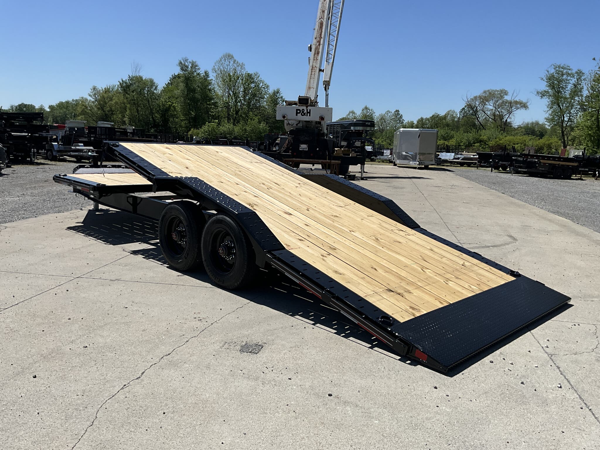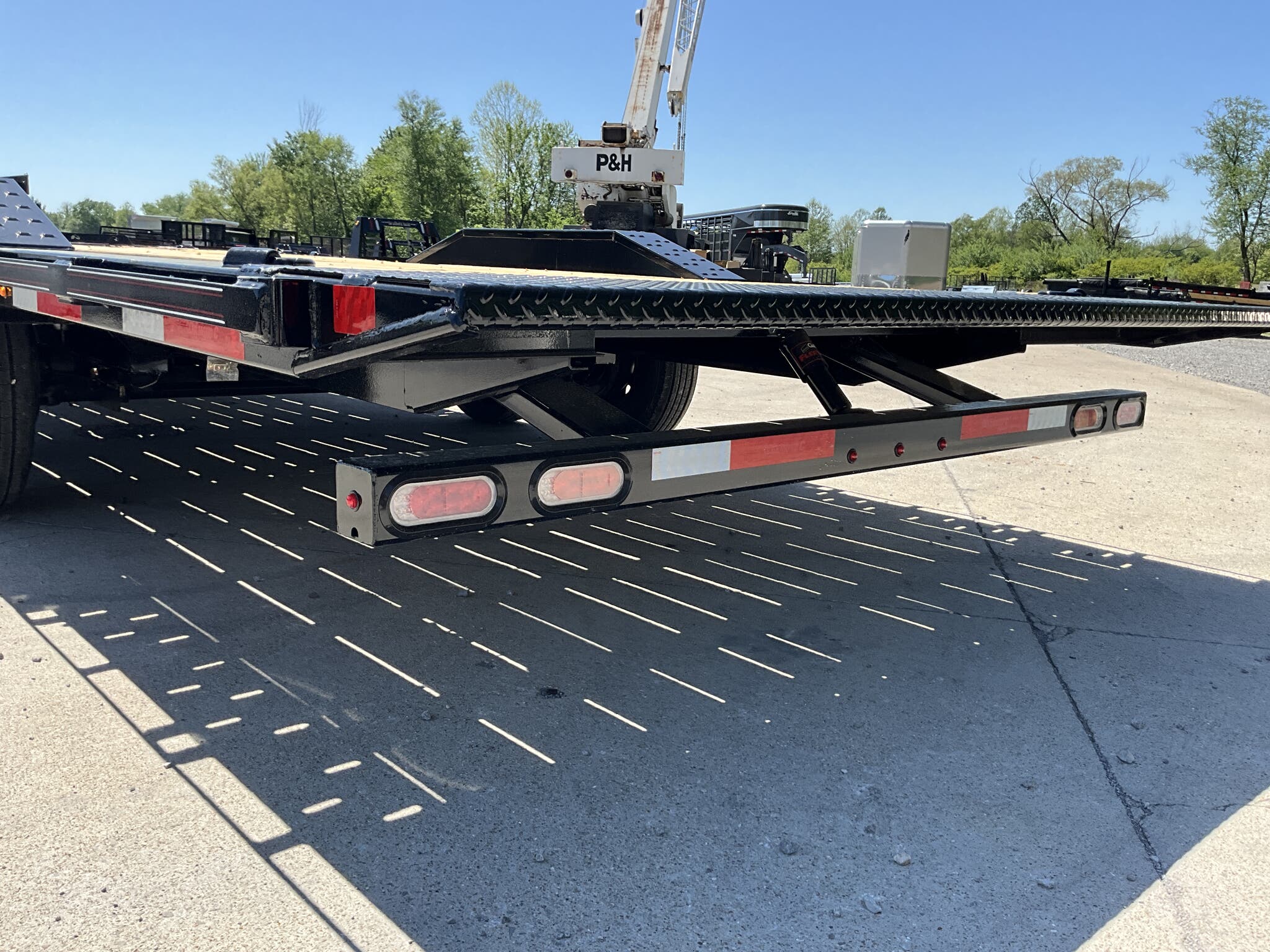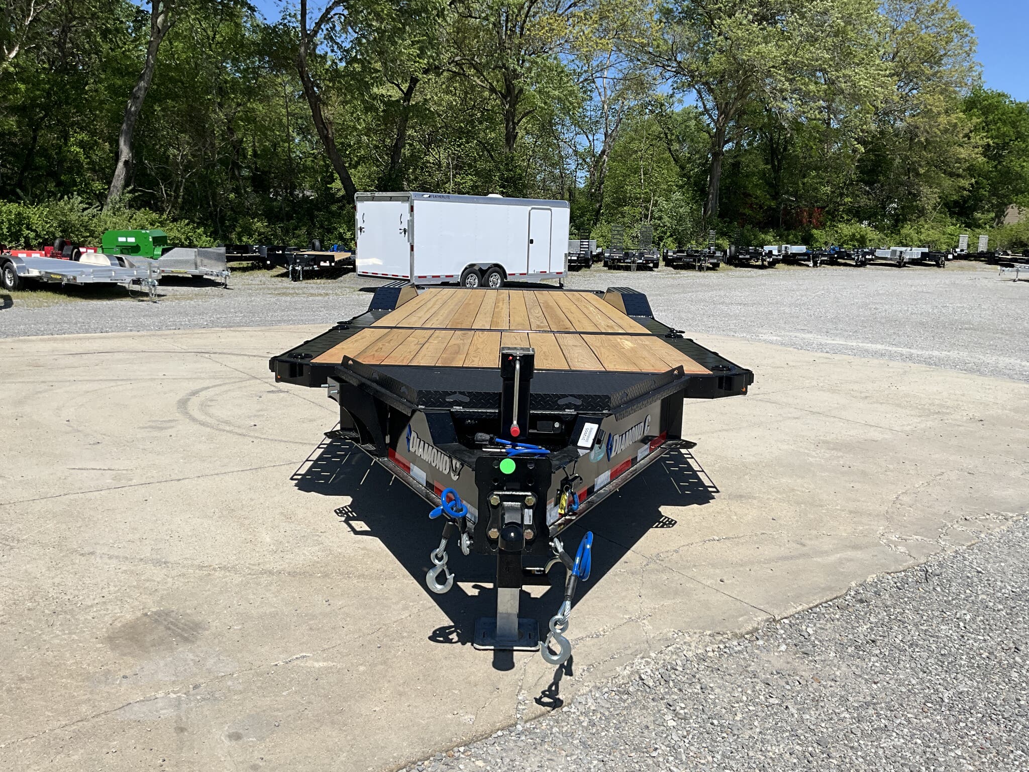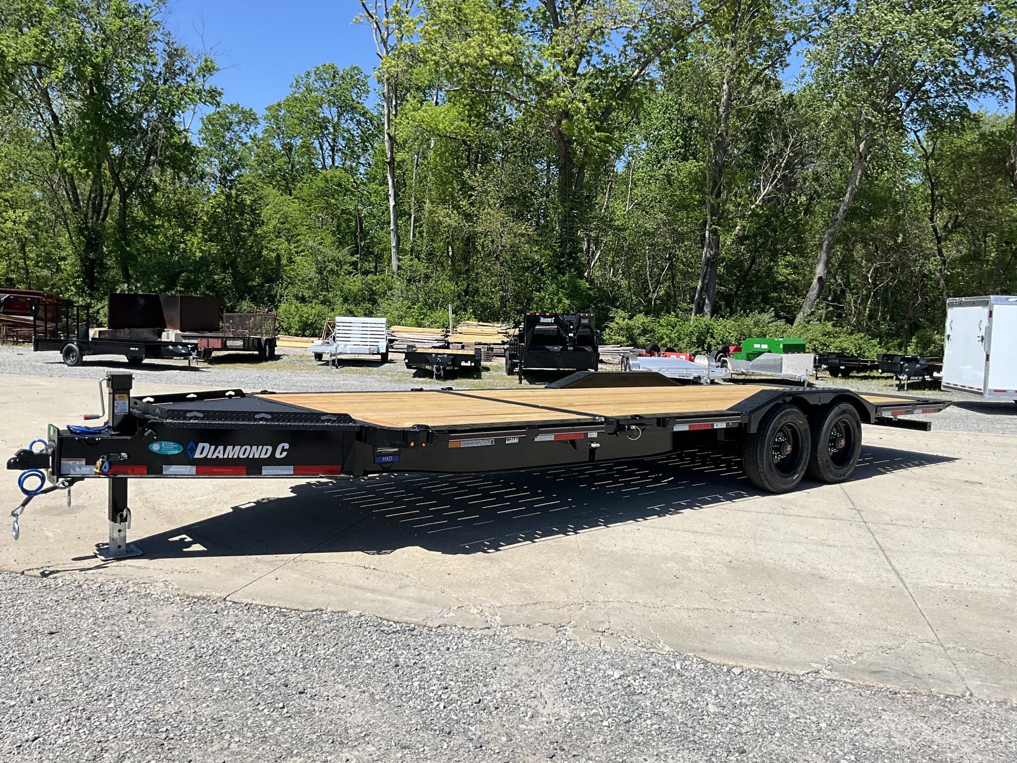 2026 DIAMOND C HXD210 20K 102" 24' MAX WIDTH HYDRAULIC TILT EQUIPMENT TRAILER, ONYX BLACK, 6' STATIONARY / 18' TILT BED FOR SALE IN MOUNT VERNON, IL 62864 Feature: Hydraulic dampened gravity tilt system for smooth, controlled operation Feature: MAX Width package with 10 gauge HD drive over fenders and frame extension Feature: Engineered beam frame with 3" I beam crossmembers on 16" centers Feature: 25K Demco EZ Latch flat mount coupler for secure heavy duty towing Feature: 5/8" D ring tie down system with rub rail, stake pockets, and pipe spools Specs Model: HXD210 Max Width Hydraulic Tilt Equipment Trailer Specs Size: 102" 24' (6' stationary + 18' tilt) Specs GVWR: 20,000 lb Specs Axles/Brakes: (2) 10,000 lb drop axles with electric drum brakes and oil bath hubs Specs Suspension: 10K torsion axles Specs Frame: Engineered beam frame Specs Crossmembers: 3" I beam on 16" centers Specs Deck: 2" treated wood floor Specs Tilt: Hydraulic dampened gravity tilt system Specs Coupler: 2 5/16" 25K Demco EZ Latch flat mount Specs Jack: 15K 2 speed drop leg jack Specs Storage: HD V tongue toolbox Specs Fenders: 10 gauge HD drive over fenders with frame extension Specs Tie Downs: (8) 5/8" D rings Specs Rail: 2" 3/8" rub rail with stake pockets and pipe spools Specs Tires/Wheels: ST235/75R17.5 super single 18 ply, black steel wheels Specs Spare: Matching ST235/75R17.5 super single 18 ply with tongue mount Specs Spare Mount: Passenger side tongue mount Specs Lighting: Full LED lighting package Specs Finish: Onyx Black powdercoat Specs Certification: NATM compliant Specs Warranty: 6 year Diamond C structural warranty Specs Web ID: 354805 1 Weights & Capacities GVWR: 20,000 lb Empty Weight: 5,220 lb Payload on Axles: 20,000 5,220 = 14,780 lb Target Tongue Load (10% of GVWR): 2,000 lb Total Effective Payload: 16,780 lb Delivery from 62864 (Lower 48) Up to 100 miles $150 101 300 miles $2.00/mile 301 1200 miles $3.00/mile Over 1200 miles $4.00/mile