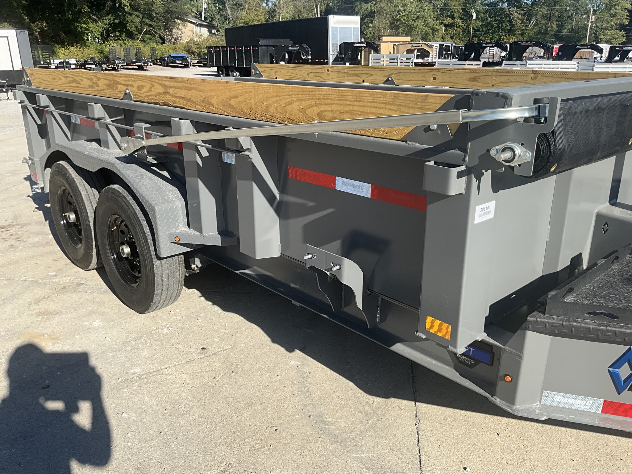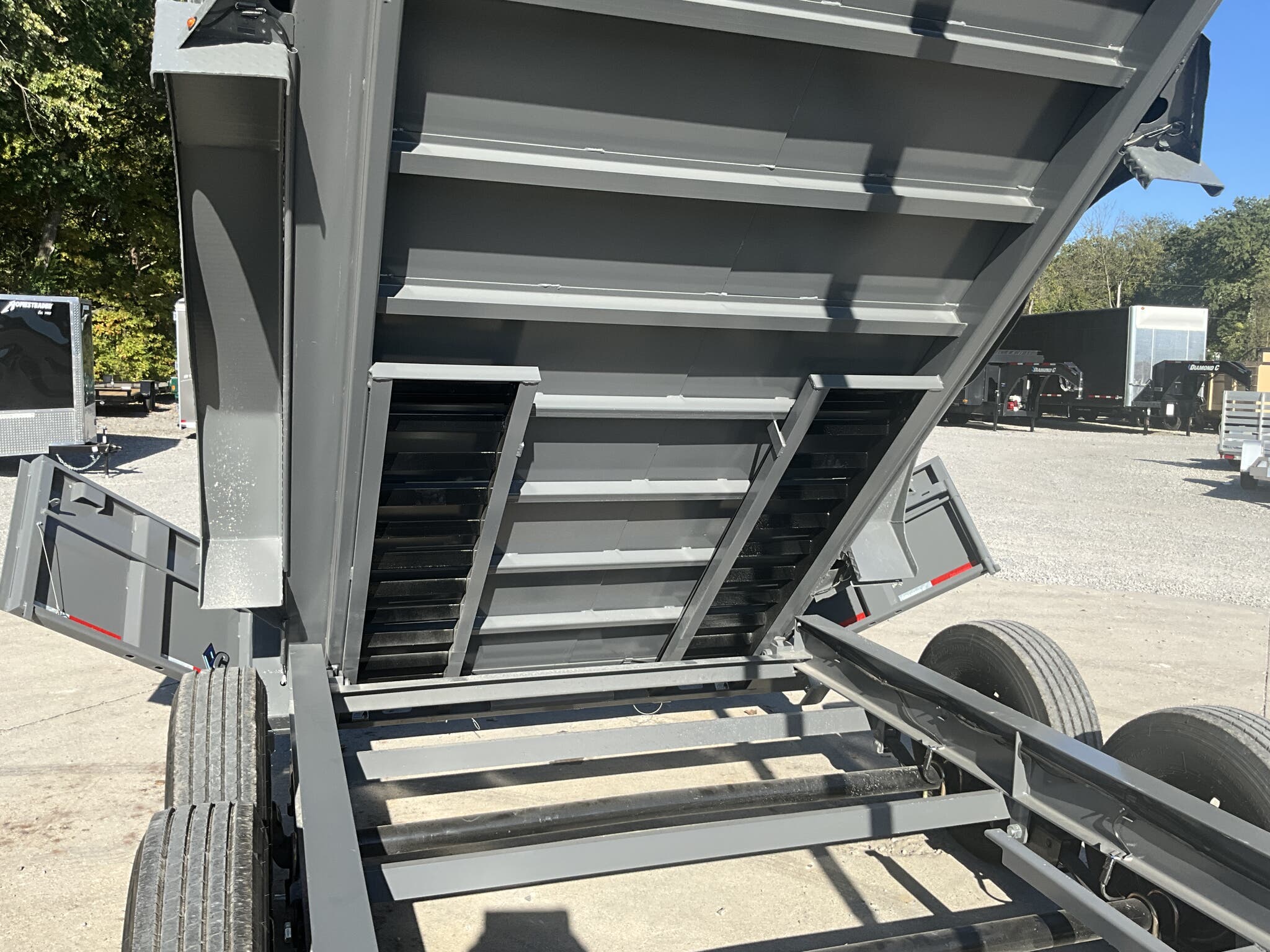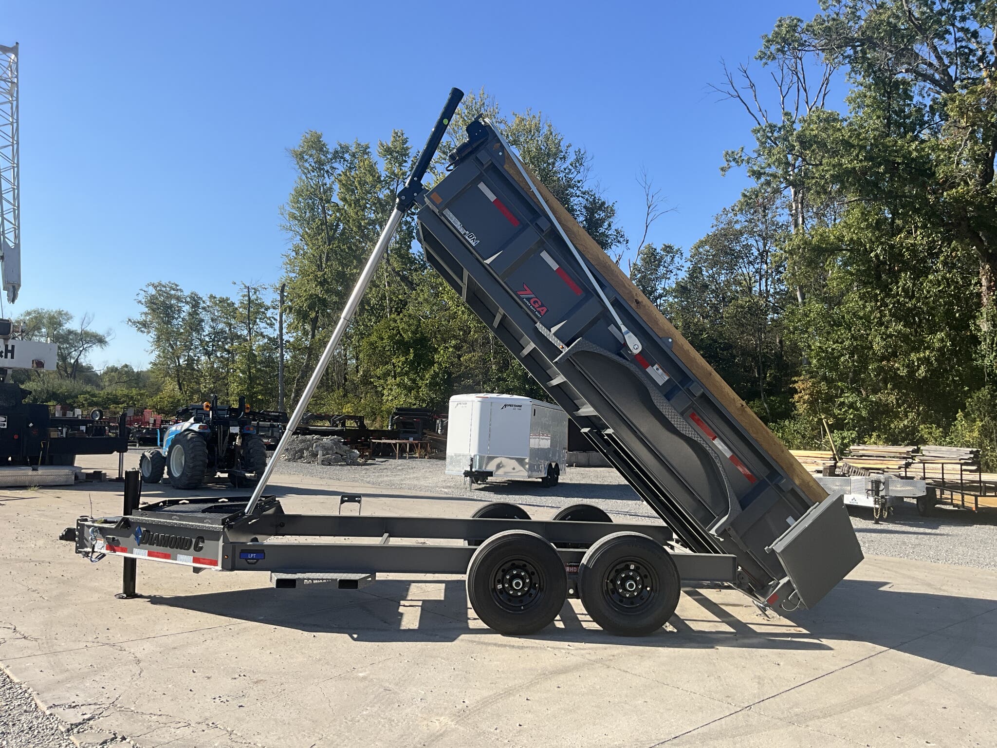 2026 Diamond C LPT207 14 82 Low Profile Telescopic Dump Trailer Pacesetter Edition Cement Gray For Sale in Illinois OVERVIEW: 2026 DIAMOND C LPT 14 82 TELESCOPIC DUMP TRAILER PACESETTER EDITION HEAVY DUTY LOW PROFILE DUMP WITH TELESCOPIC HOIST, ELECTRIC TARP, AND SOLAR CHARGER CEMENT GRAY DIFFERENCE MAKER POWDERCOAT FINISH SPECIFICATIONS: Axles: (2) 7,000 lb drop axles with electric brakes Suspension: 6 leaf slipper roller springs Frame: 8 15# I beam main frame with 16 center crossmembers GVWR: 14,900 lbs Coupler: 2 5/16 21K Demco EZ Latch adjustable channel coupler Jack: Single 20K hydraulic jack Hoist: Telescopic cylinder power up, gravity down with Bluetooth wireless controller Sides/Floor: 24 tall, 7 GA (3/16 ) steel sides + 3/16 steel floor Gate: 3 way rear dump gate Ramps: 72 rear slide in channel ramps Board Brackets: Includes boards and raised front panel Fenders: 3/16 diamond plate super heavy duty Stabilizer Jacks: Drop leg pair Fork Holder Step: Driver side Tie Downs: (4) standard 5/8 D rings Tires/Wheels: ST235/80R16 14 ply radial tires on black wheels + matching spare Battery: Group 27 deep cycle battery + SolarPulse 7 watt charger Tarp System: 20 electric long arm tarp, black mesh Color: Cement Gray WEIGHTS: Empty Weight: ~4,350 lbs GVWR: 14,900 lbs Payload Capacity: ~10,550 lbs Tongue Weight Capacity (10% of GVWR Bumper Pull): 1,490 lbs Total Effective Payload: ~12,040 lbs DELIVERY RATES FROM ZIP CODE 62864: Up to 100 miles $150 101 to 300 miles $2.00 per mile 301 to 1,200 miles $3.00 per mile Over 1,200 miles $4.00 per mile (Lower 48 states only)