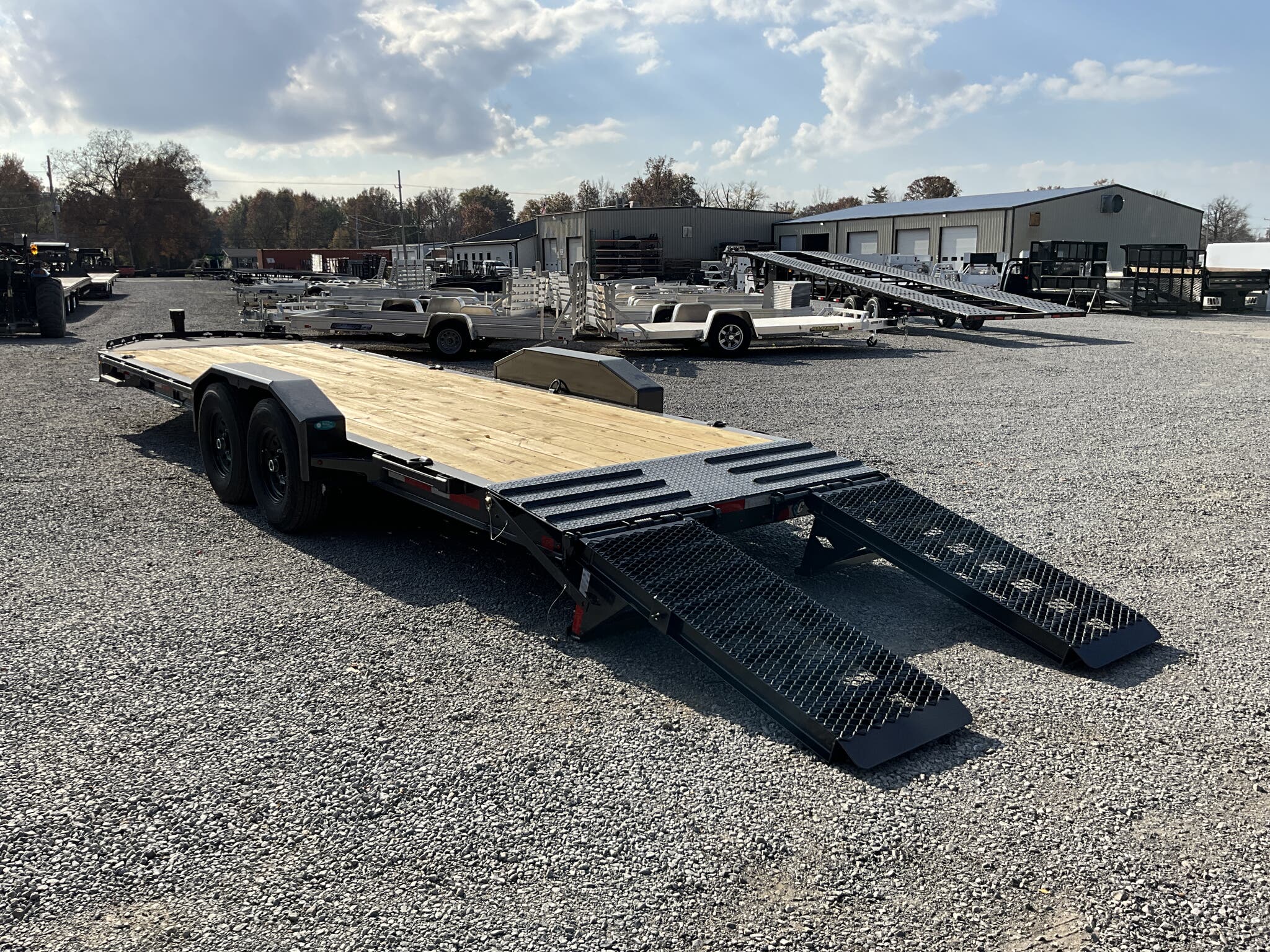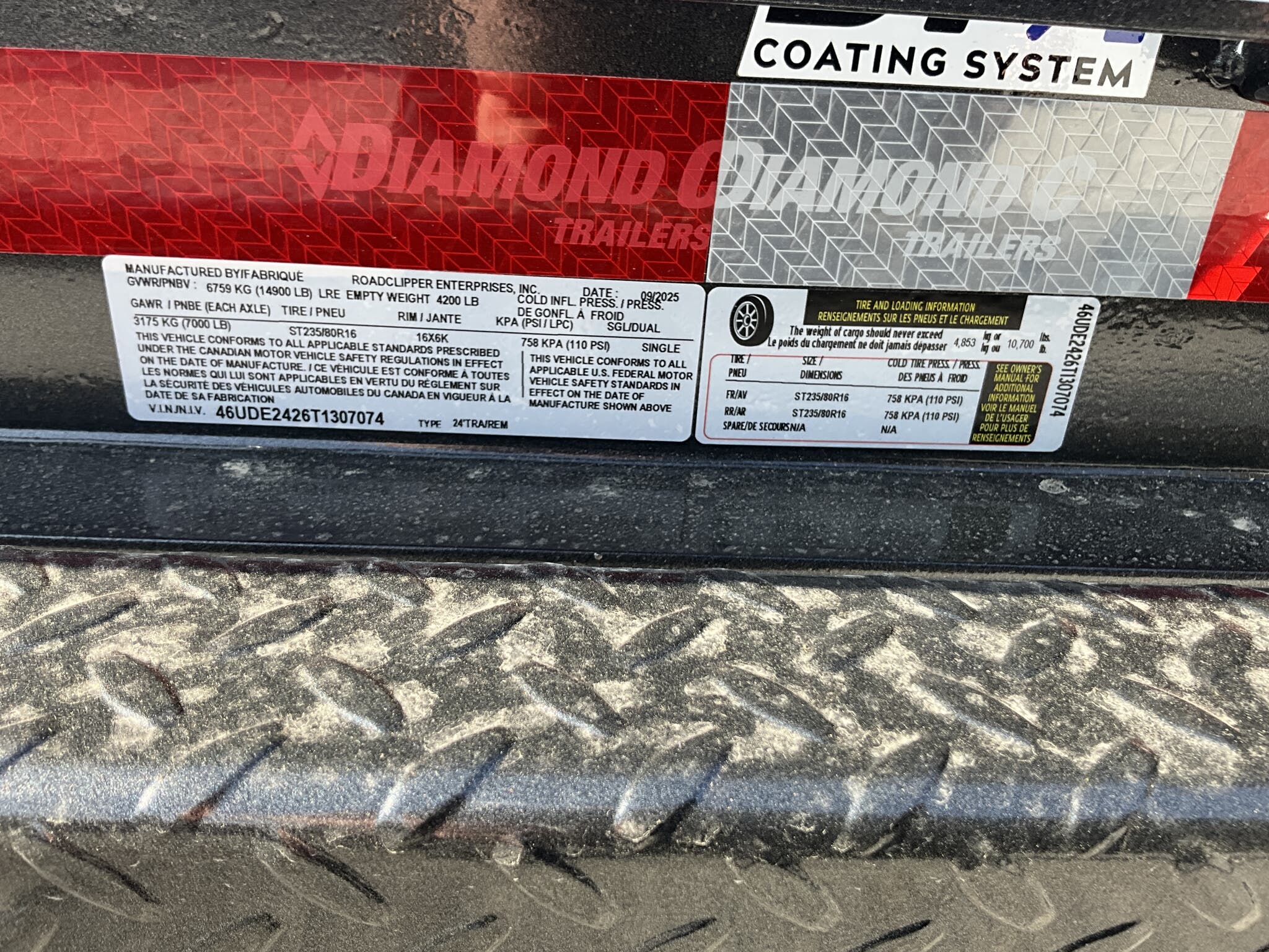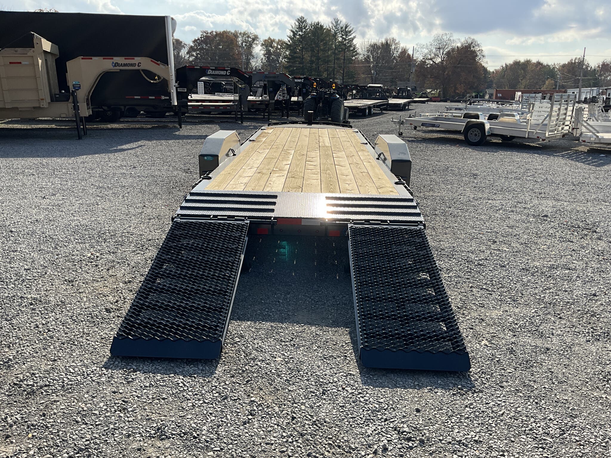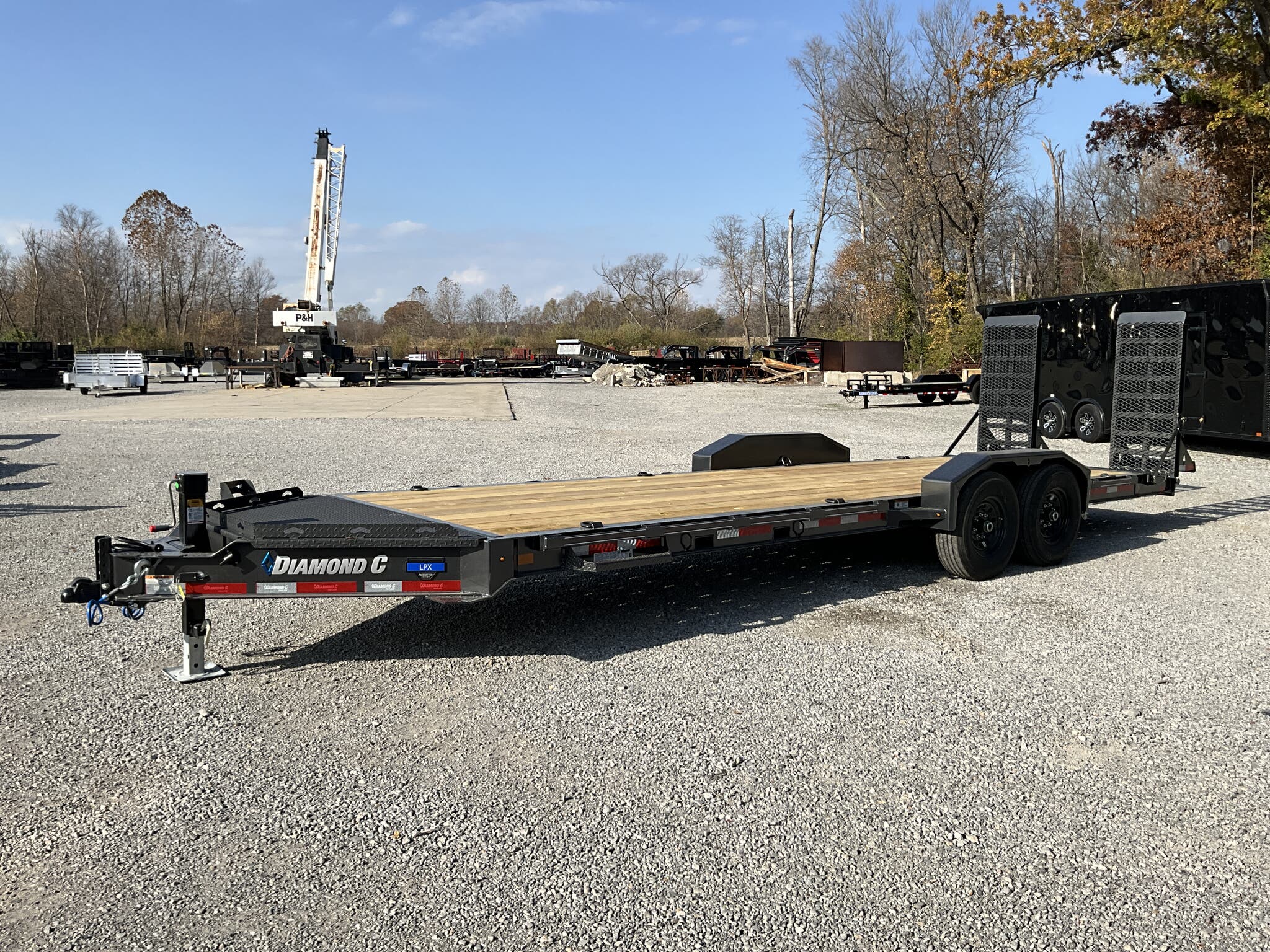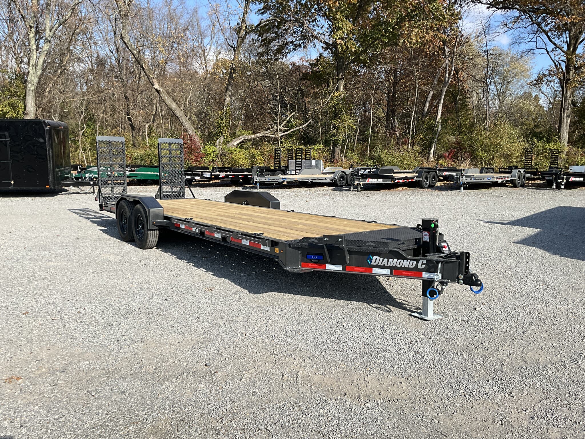2026 DIAMOND C LPX207 24' x 82" Equipment Trailer, Carbon Metallic Gray, Pacesetter Edition, 24" Diamond Plate Dove w/ Cleats + Extra Wide HD Flip Knee Ramps, Dual 7K Drop Axles For Sale in Illinois Standout Options: Pacesetter package (3" I beam on 12" centers, fork holder, +4 extra D rings = 8 total) Standout Options: Super heavy duty 3/16" smooth fenders Standout Options: HD V tongue storage box with lid; 15K Simol 2 speed drop leg jack Specs Frame Size: L24 x 82 Specs Frame: 8" x 15 lb I beam Specs Crossmembers: 3" I beam on 12" centers (L24) Specs Dove/Ramps: 24" diamond plate dove w/ cleats; extra wide HD flip knee ramps Specs Floor: 2" treated lumber (24') Specs Rail/Tie Downs: 2" x 3/8" rub rail w/ stake pockets & pipe spools; (8) total 5/8" D rings Specs Axles/Brakes: (2) 7,000 lb drop axles; electric drum brakes Specs Suspension: 6 leaf slipper roller springs Specs Coupler: 2 5/16" Demco EZ Latch (21K), adjustable channel Specs Jack: 15K Simol 2 speed drop leg Specs Storage: HD V tongue box; spare mount (curb side of tongue) Specs Tires/Wheels: ST235/80R16 radial, 14 ply; 8 hole black wheels Specs Steps: 24" side step Specs Lighting/Wiring: All LED lighting; sealed harness Specs Paint/Finish: DM Difference Maker coating; Carbon Metallic Gray Specs Warranty: 6 year manufacturer warranty (2026+) Weights & Capacities Total Axle Capacity (used for payload math): 14,000 lb Weights & Capacities Empty/Trailer Weight: 4,200 lb Weights & Capacities Payload on Axles (Capacity Empty): 14,000 4,200 = 9,800 lb Weights & Capacities Target Tongue Load (Bumper pull @ ~10% of Capacity): 1,400 lb Weights & Capacities Total Payload Including Tongue Support: 9,800 + 1,400 = 11,200 lb Delivery from 62864 (Lower 48): Up to 100 miles: $150 Delivery from 62864 (Lower 48): 101 300 miles: $2.00/mile Delivery from 62864 (Lower 48): 301 1200 miles: $3.00/mile Delivery from 62864 (Lower 48): Over 1200 miles: $4.00/mile