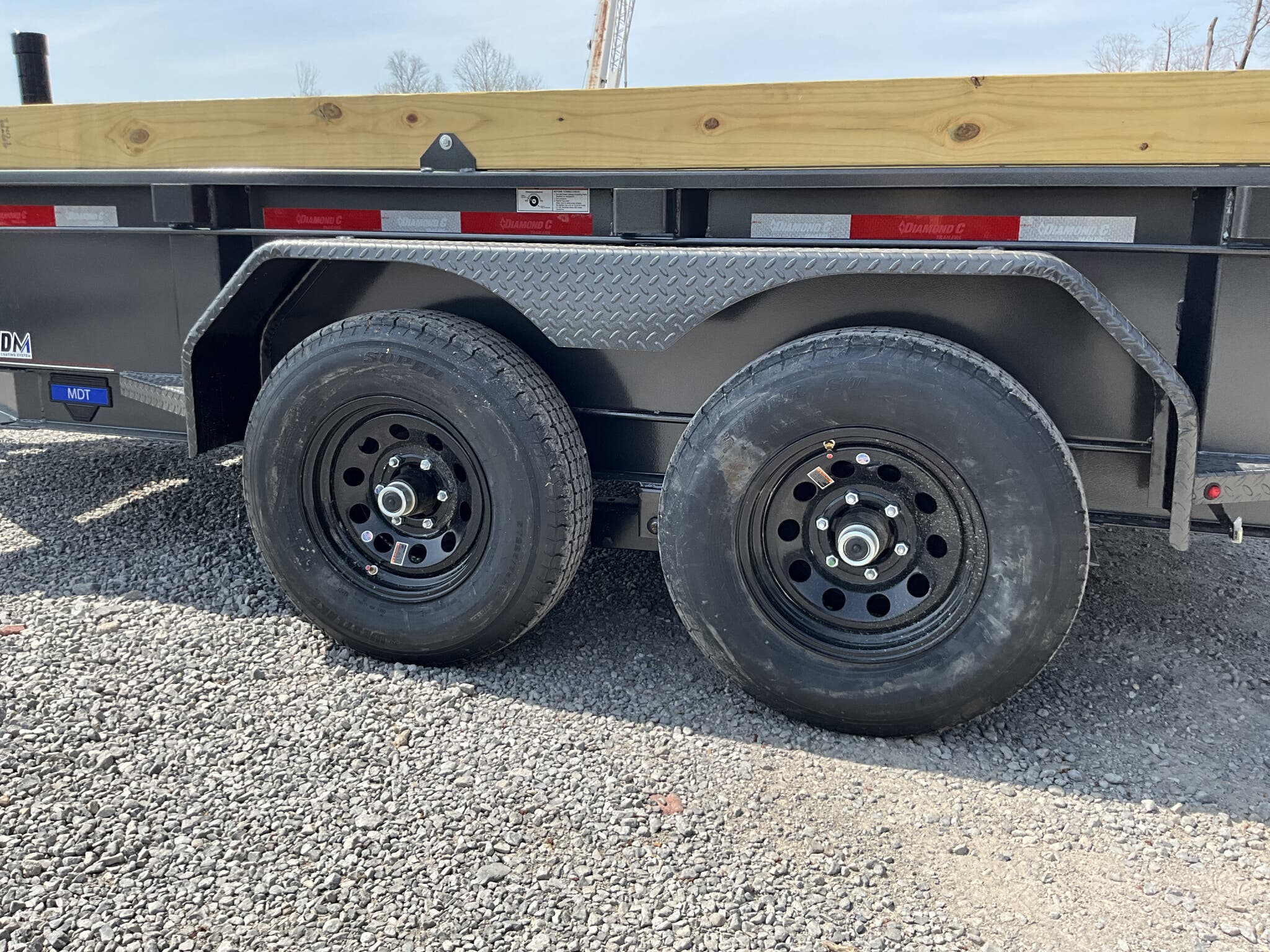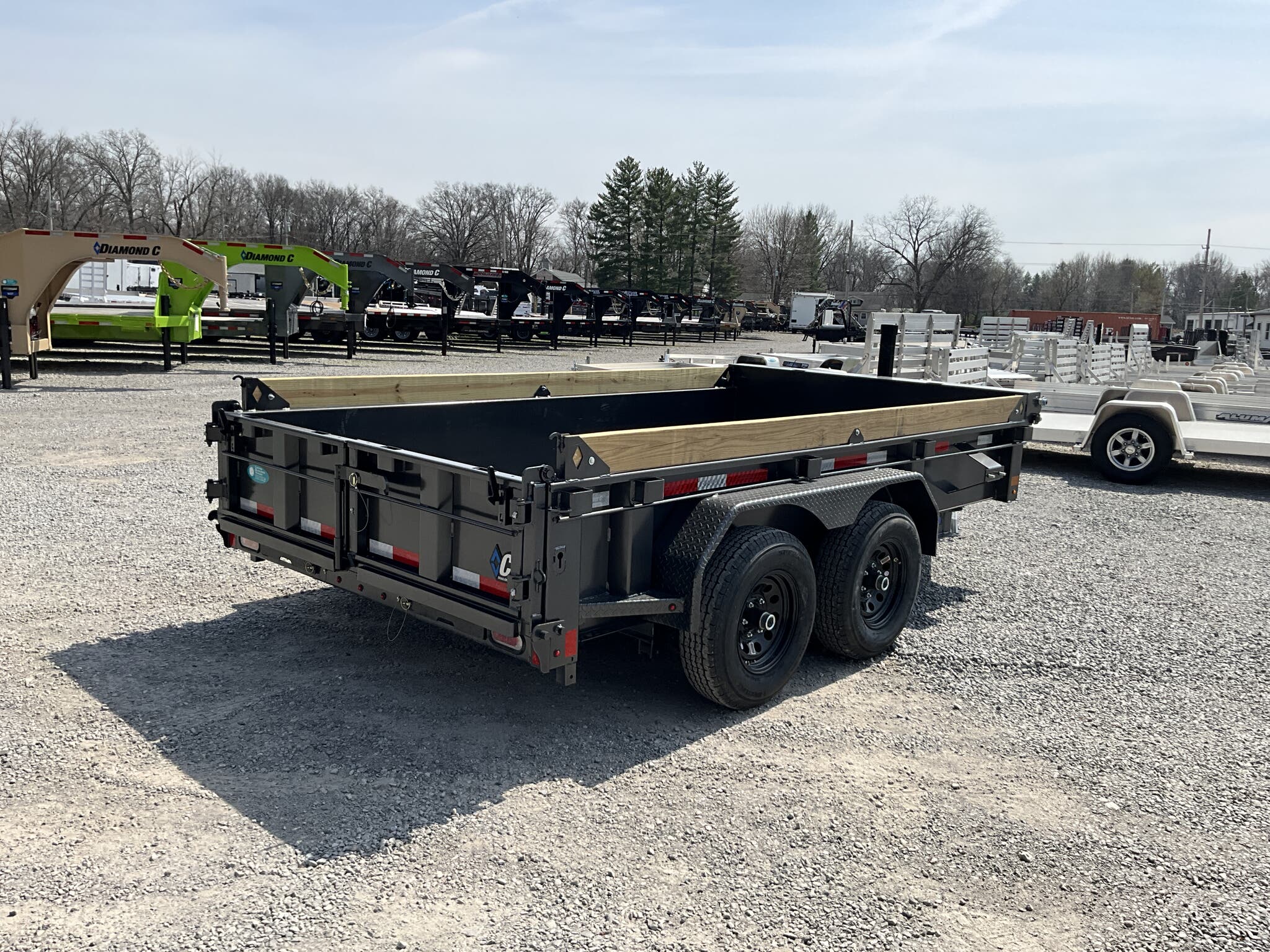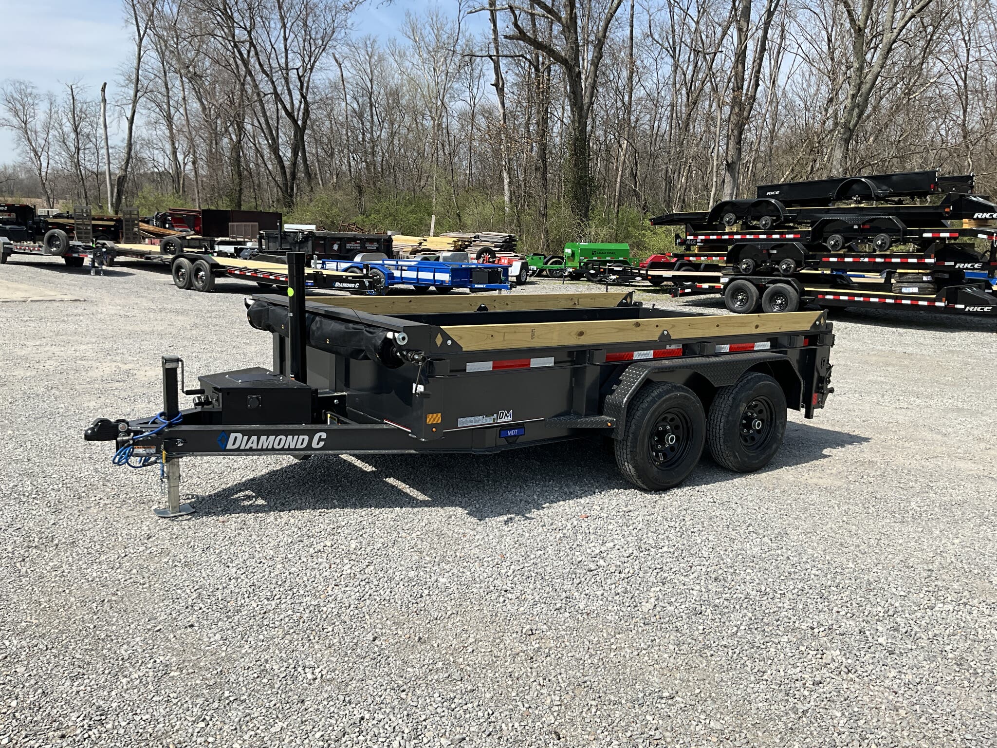 2026 DIAMOND C MDT206 12' 77" MEDIUM DUTY DUMP TRAILER, CARBON METALLIC GRAY, 12K AXLE CAPACITY FOR SALE IN ILLINOIS Feature: Three stage telescopic hoist Feature: Power up / gravity down hydraulic system Feature: 60" rear slide in ramps Feature: 3 way dump gate Feature: Installed heavy duty mesh tarp Specs Size: 12' 77" Specs Frame: 6" 8.5 lb I beam tongue/frame Specs Crossmembers: 3" I beam on 16" centers Specs Dump Body Frame: 3" 2" 11 gauge rectangle tube Specs Floor/Sides: 12 gauge integral floor; 18" tall sides Specs Axles/Brakes: (2) 6,000 lb drop axles; electric brakes Specs Suspension: 5 leaf slipper springs Specs Hoist: Three stage telescopic cylinder Specs Hydraulics: Power up / gravity down; Group 27 battery; SolarPulse 7W charger Specs Coupler: 2 5/16" 21K Demco EZ Latch (adjustable channel) Specs Jack: 7K drop leg jack Specs Storage: Steel hydraulic pump box Specs Gate: 3 way dump gate Specs Ramps: 60" rear slide in ramps (2" square tube) Specs Tie Downs: (4) 1/2" D rings Specs Tires/Wheels: ST225/75R15 radial; 6 hole black wheels Specs Fenders: 14 gauge teardrop diamond plate (weld on) Specs Lighting: All LED lighting Specs Finish: DM Difference Maker coating; Carbon Metallic Gray Specs Warranty: 6 year Diamond C manufacturer warranty (2026+) Weights & Capacities Total Axle Capacity: 12,000 lb Empty Weight: 3,000 lb Payload on Axles: 12,000 3,000 = 9,000 lb Tongue Load (Bumper Pull @ 10%): 1,200 lb Total Effective Payload: 10,200 lb Delivery from 62864 (Lower 48) Up to 100 miles $150 101 300 miles $2.00/mile 301 1200 miles $3.00/mile Over 1200 miles $4.00/mile
