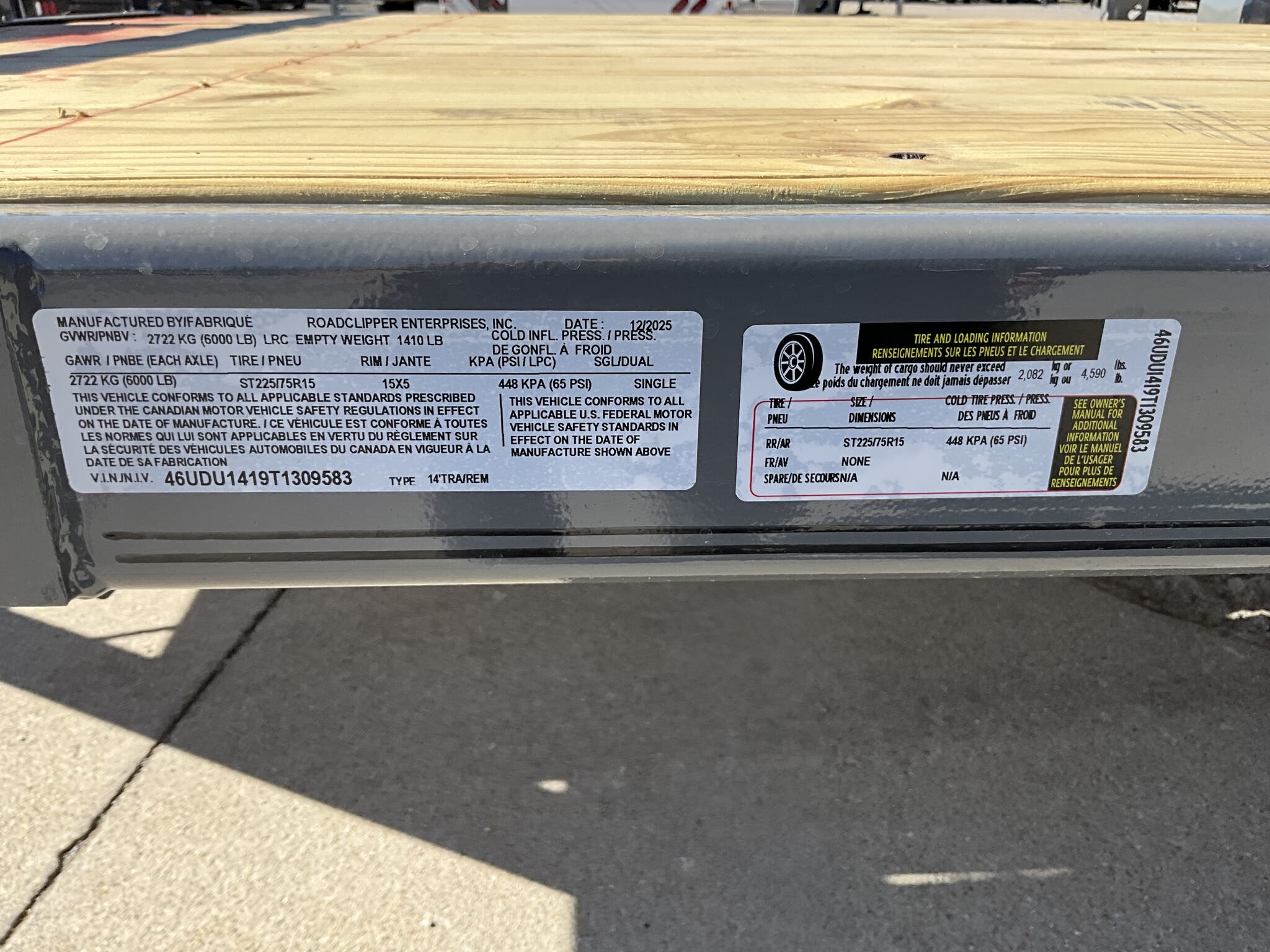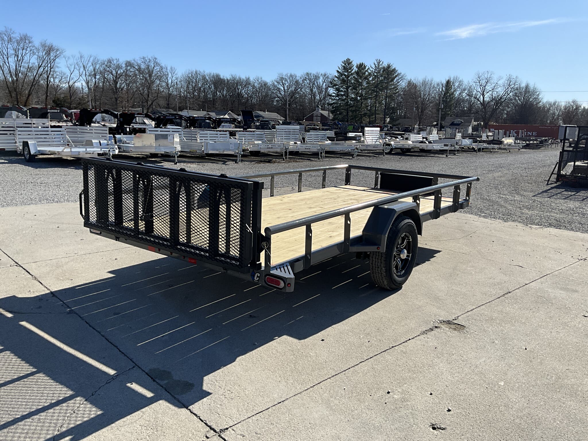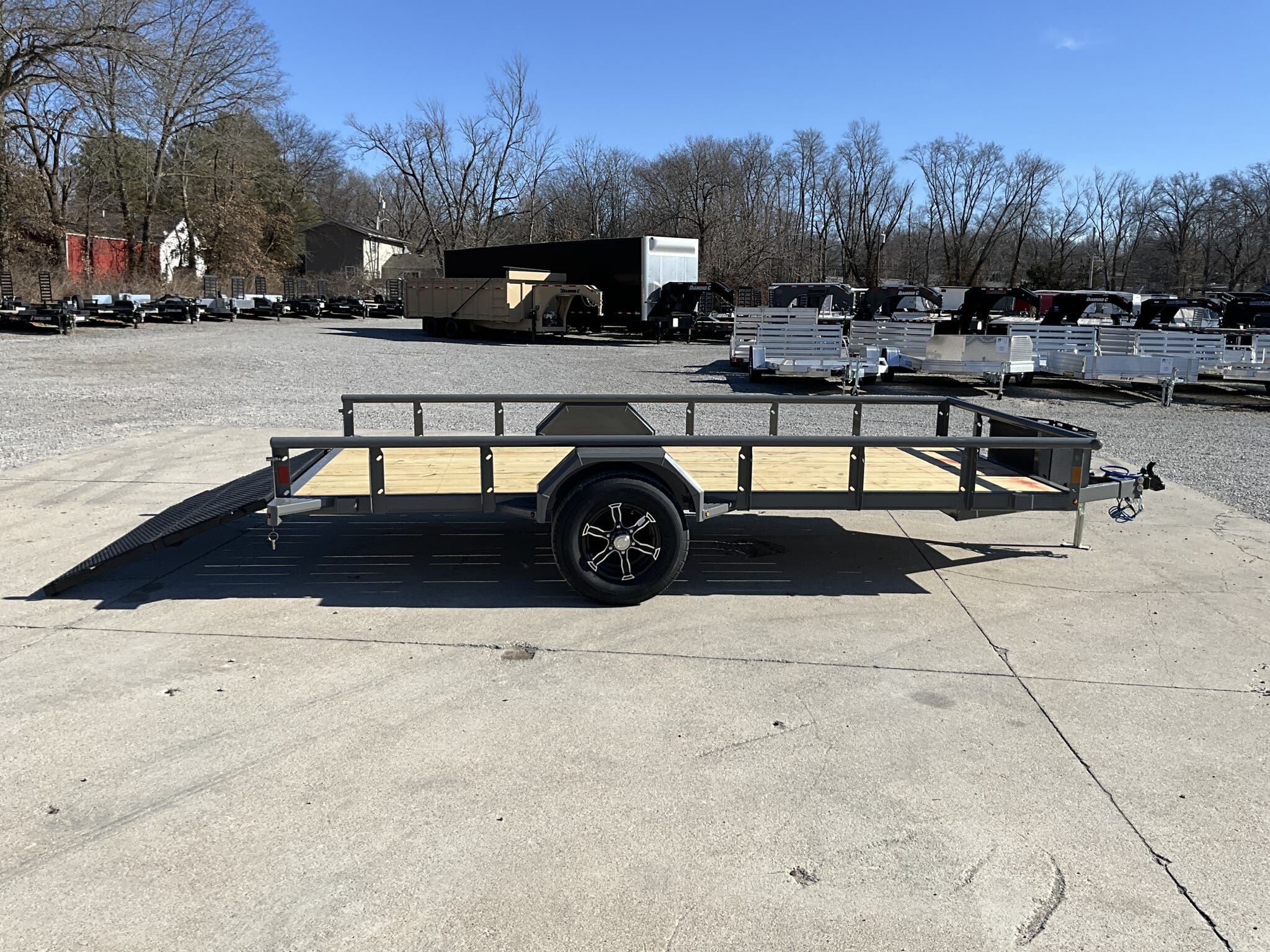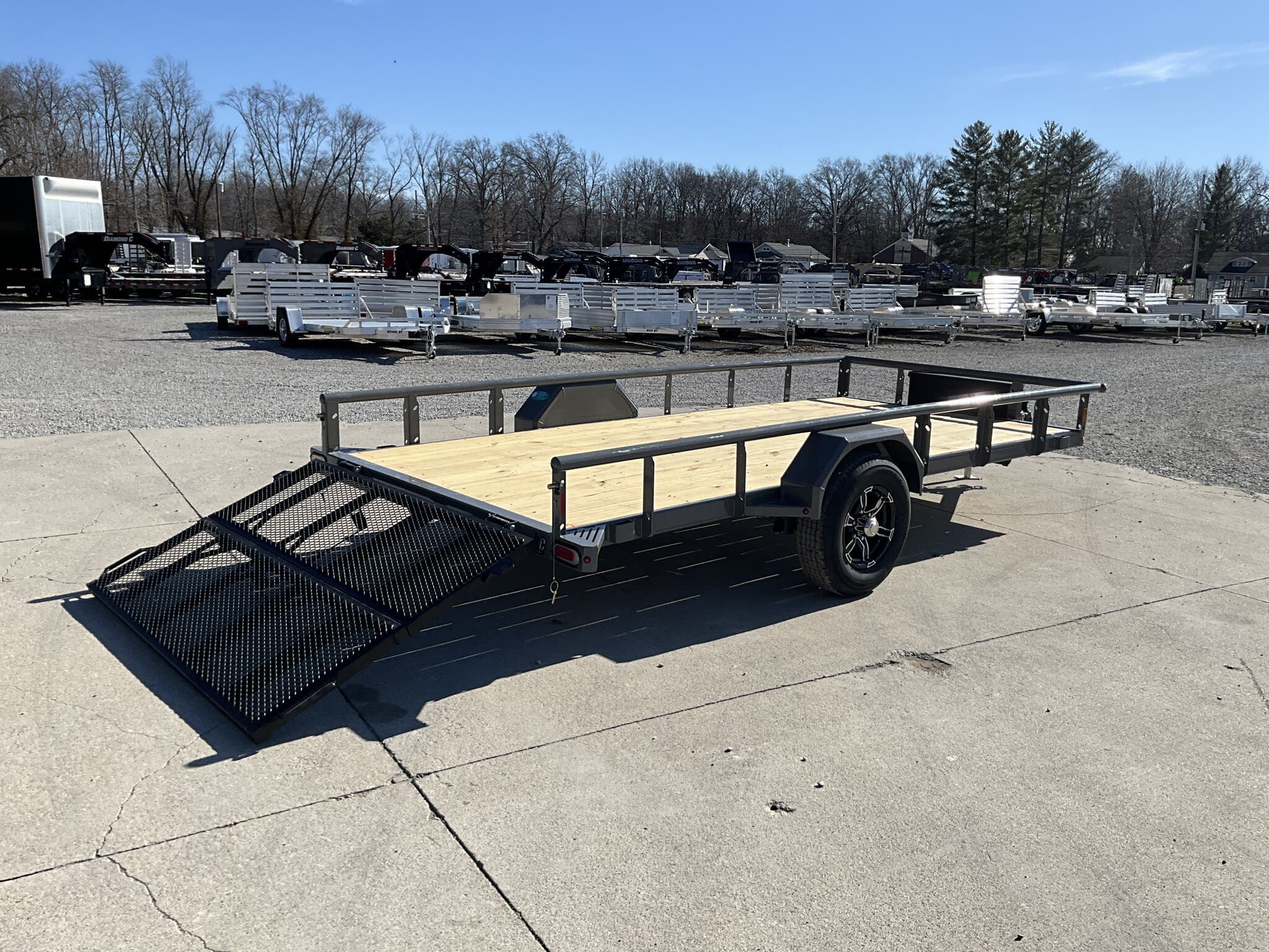2026 DIAMOND C PSA106 14' 77" Utility Trailer, Cement Gray, Single 6K Axle w/ Electric Brake For Sale in Illinois Feature: Retractable under frame spare cable winch Feature: Lockable 10" 13" steel tongue box Feature: 48" bi fold ramp gate Specs Frame: 4" channel with 2" channel crossmembers on 24" centers Specs Top Rail: 2 3/8" pipe open sides Specs Jack: 2K flip jack (top wind) Specs Tires/Wheels: ST225/75R15 aluminum wheels Specs Lighting: All LED Specs Finish: Cement Gray Specs Web ID: 347348 Specs Warranty: 6 year manufacturer warranty (2026+) Weights & Capacities Total Axle Capacity: 6,000 lb Weights & Capacities Empty Weight: 1,500 lb Weights & Capacities Payload on Axles: 4,500 lb Weights & Capacities Tongue Load (10%): 600 lb Weights & Capacities Total Payload Including Tongue: 5,100 lb Delivery from 62864 (Lower 48): Up to 100 miles $150 Delivery from 62864 (Lower 48): 101 300 miles $2.00/mile Delivery from 62864 (Lower 48): 301 1200 miles $3.00/mile Delivery from 62864 (Lower 48): Over 1200 miles $4.00/mile
