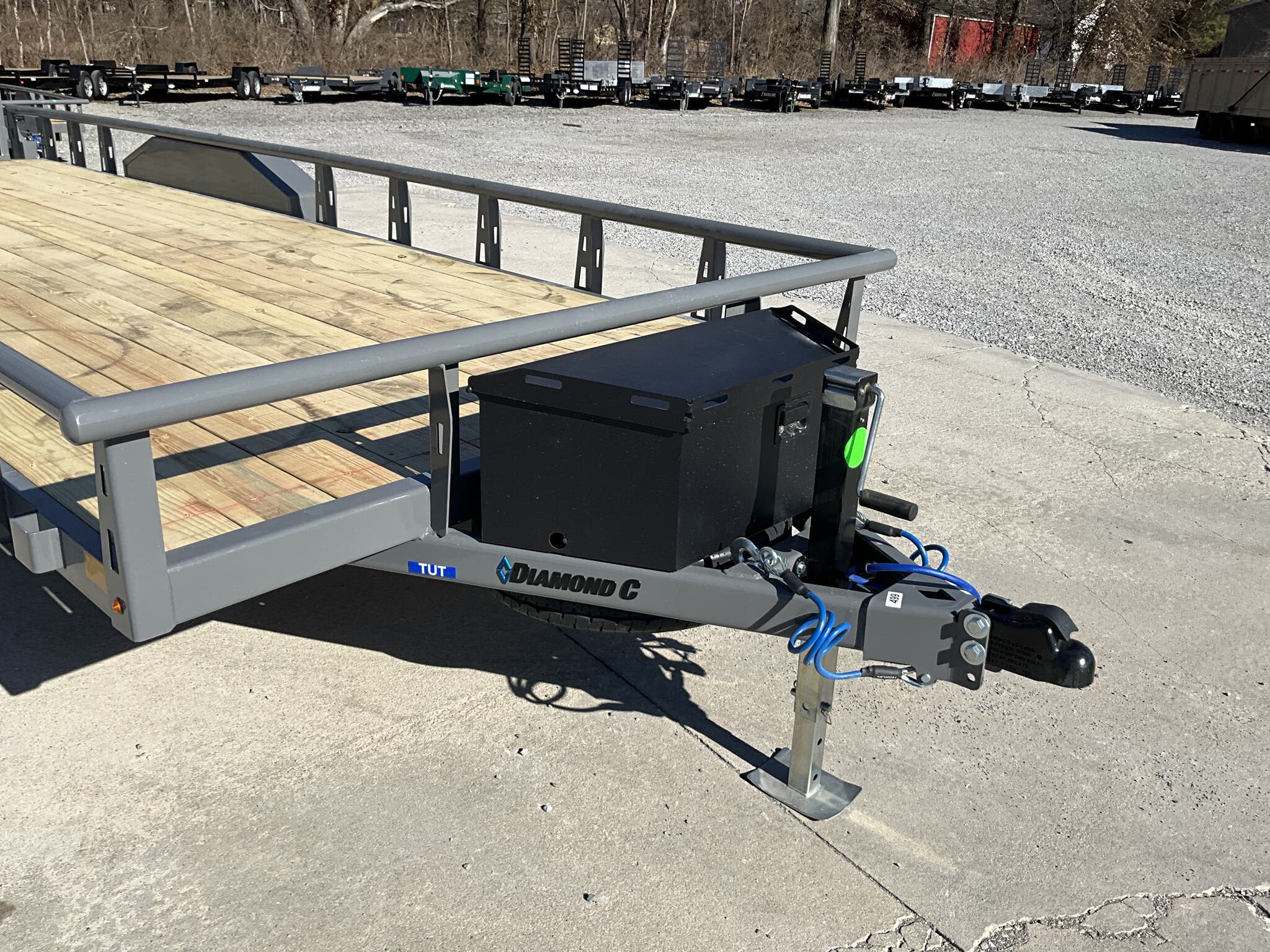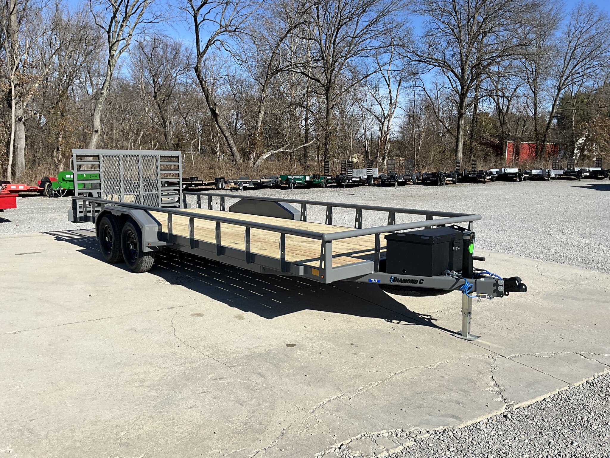 2026 DIAMOND C TUT206 22' 83" Utility Trailer, Cement Gray, Dual 6K Axles w/ Electric Brakes For Sale in Illinois Feature: Heavy duty utility design with beam tractor gate Feature: Lockable steel tongue box Feature: Retractable under frame spare tire mount Specs Frame: 4" channel with 2" channel crossmembers on 16" centers Specs Top Rail: 2 3/8" pipe, open sides Specs Gate: 48" beam tractor gate with knees Specs Jack: 7K drop leg jack Specs Tires/Wheels: ST225/75R15 radials on black wheels; matching spare Specs Lighting: All LED lighting Specs Finish: Cement Gray Specs Warranty: 6 year Diamond C manufacturer warranty Weights & Capacities Total Axle Capacity: 12,000 lb Weights & Capacities Empty Weight: 2,690 lb Weights & Capacities Payload on Axles: 12,000 2,690 = 9,310 lb Weights & Capacities Tongue Load (10%): 1,200 lb Weights & Capacities Total Payload Including Tongue: 10,510 lb Delivery from 62864 (Lower 48): Up to 100 miles $150 101 300 miles $2.00/mile 301 1200 miles $3.00/mile Over 1200 miles $4.00/mile