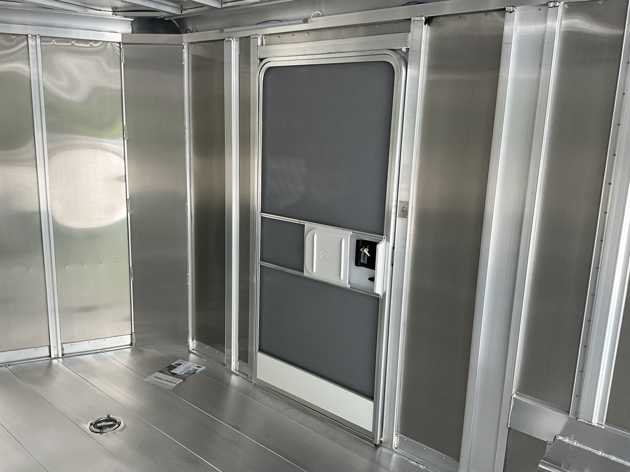 Feature: Camper-style side door with screen and deadbolt provides convenient access without opening rear ramp