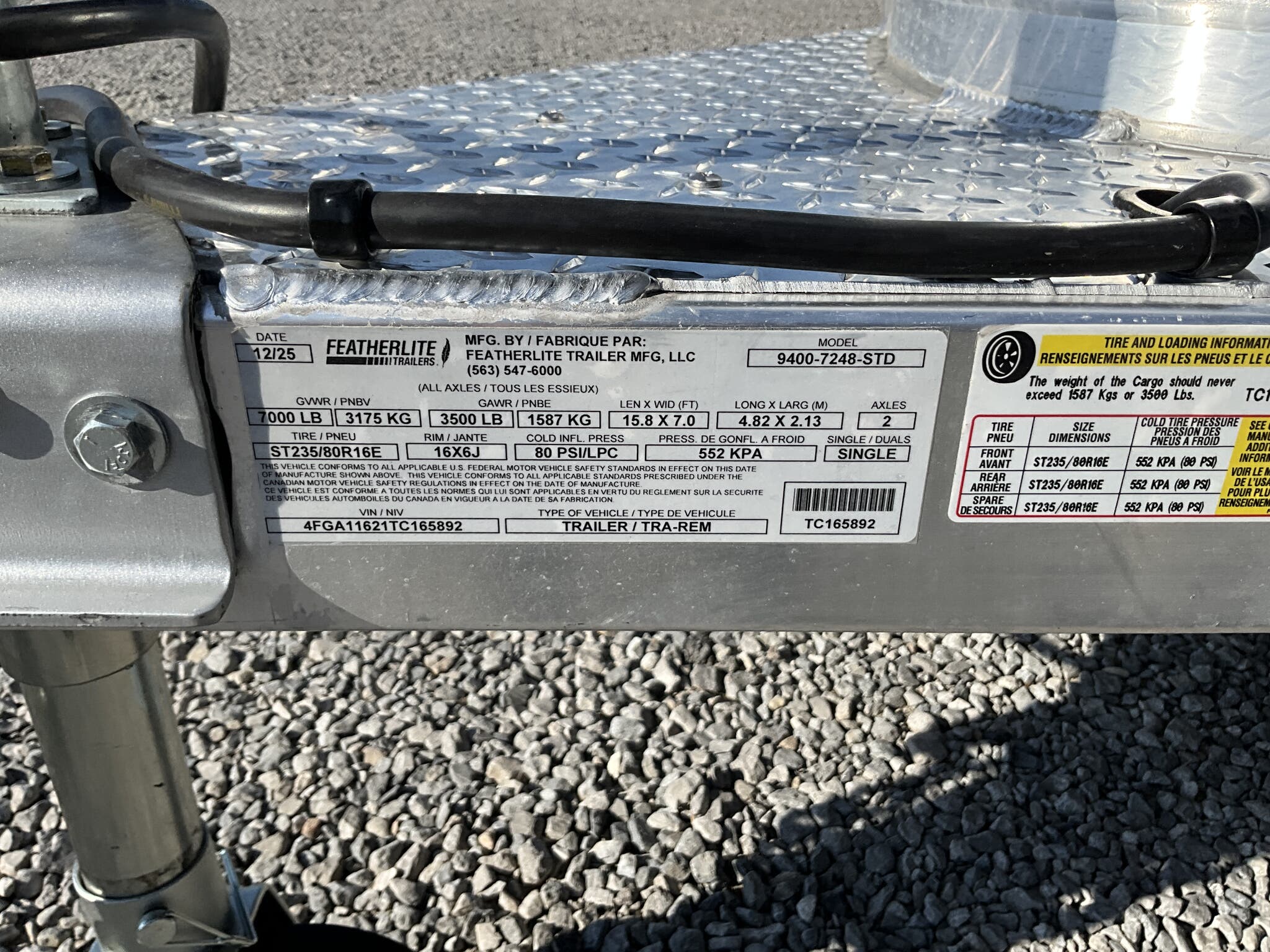 Specs — Axles/Brakes: (2) 3,500 lb rubber torsion axles; electric brakes