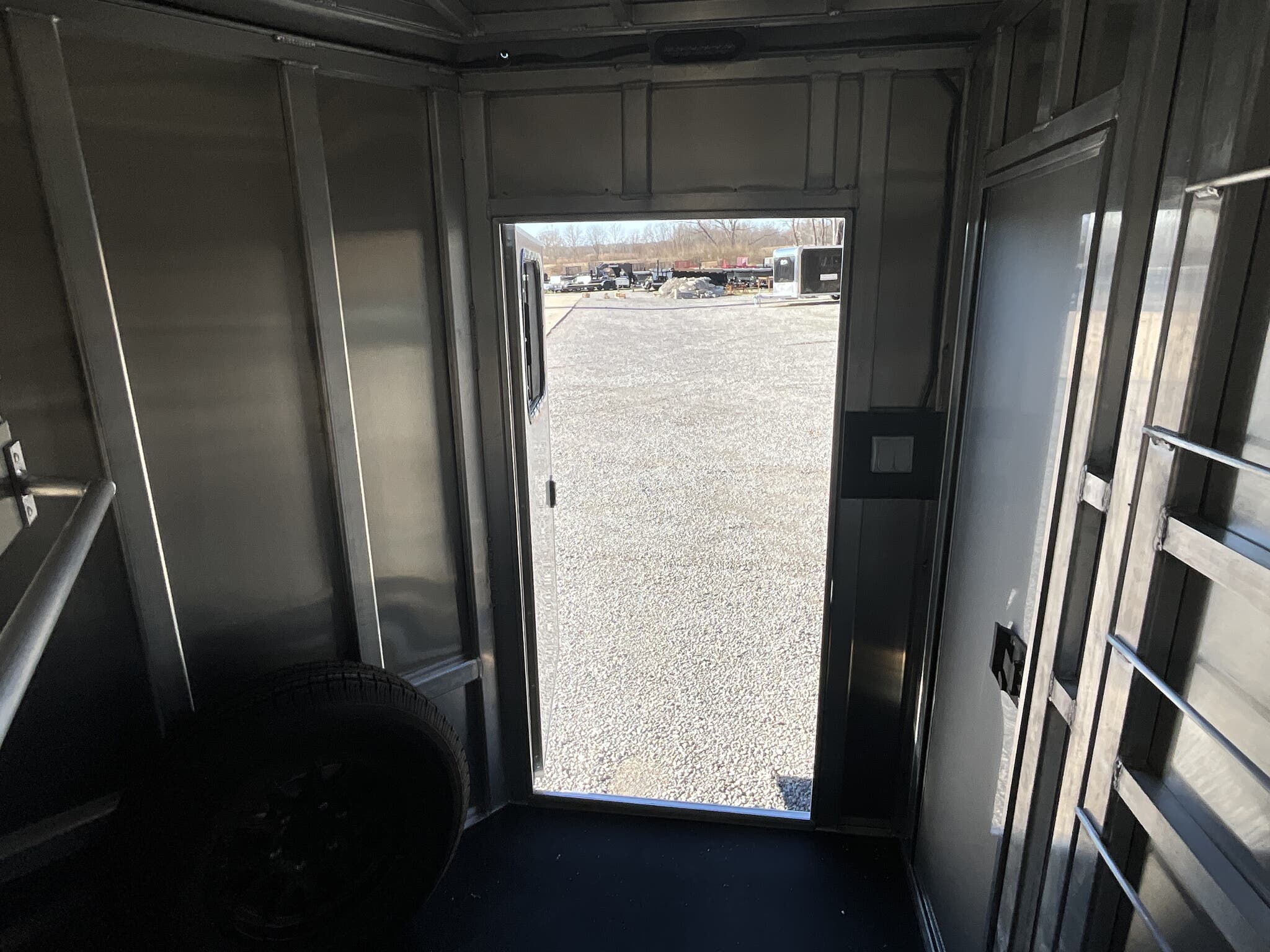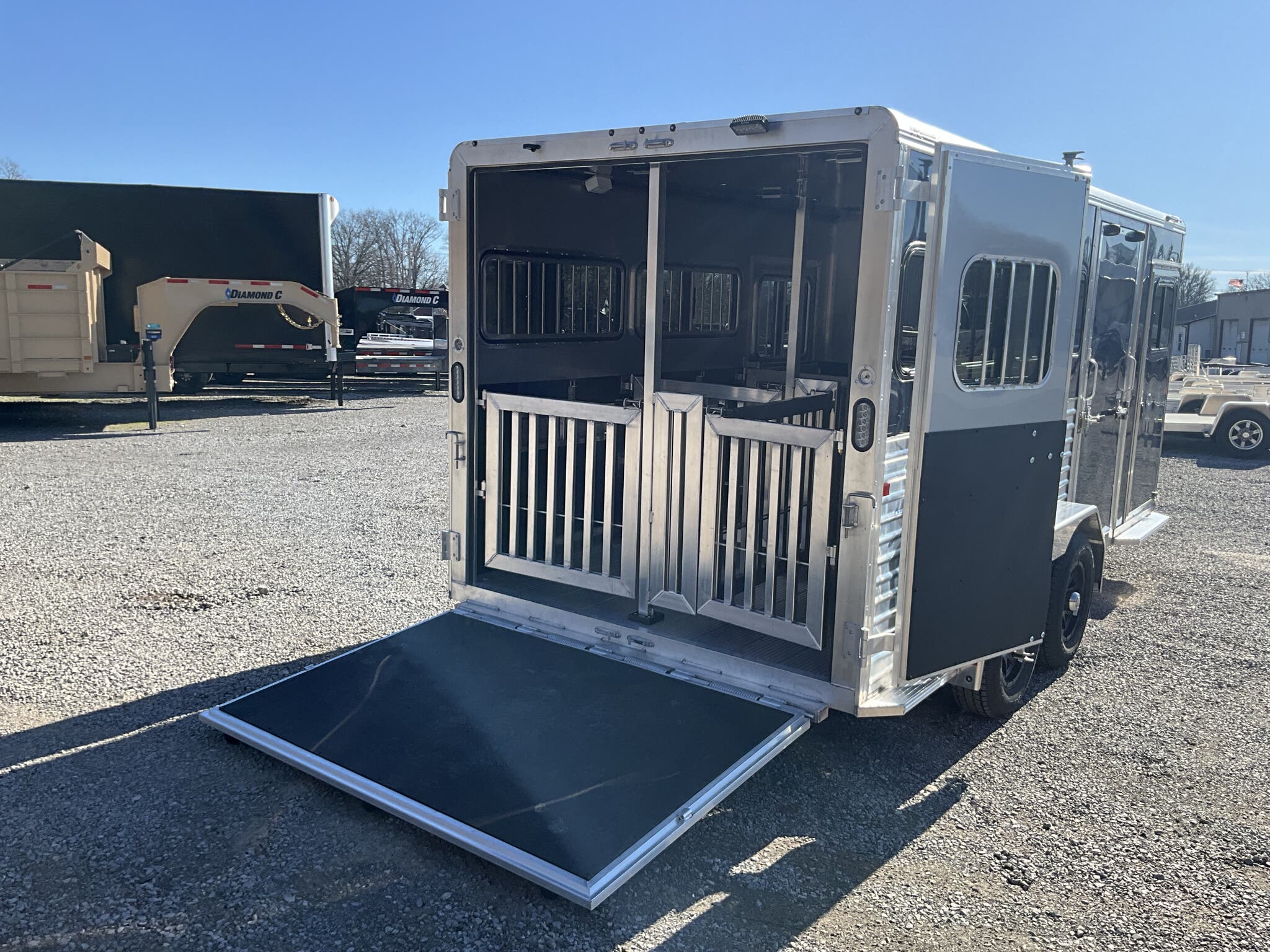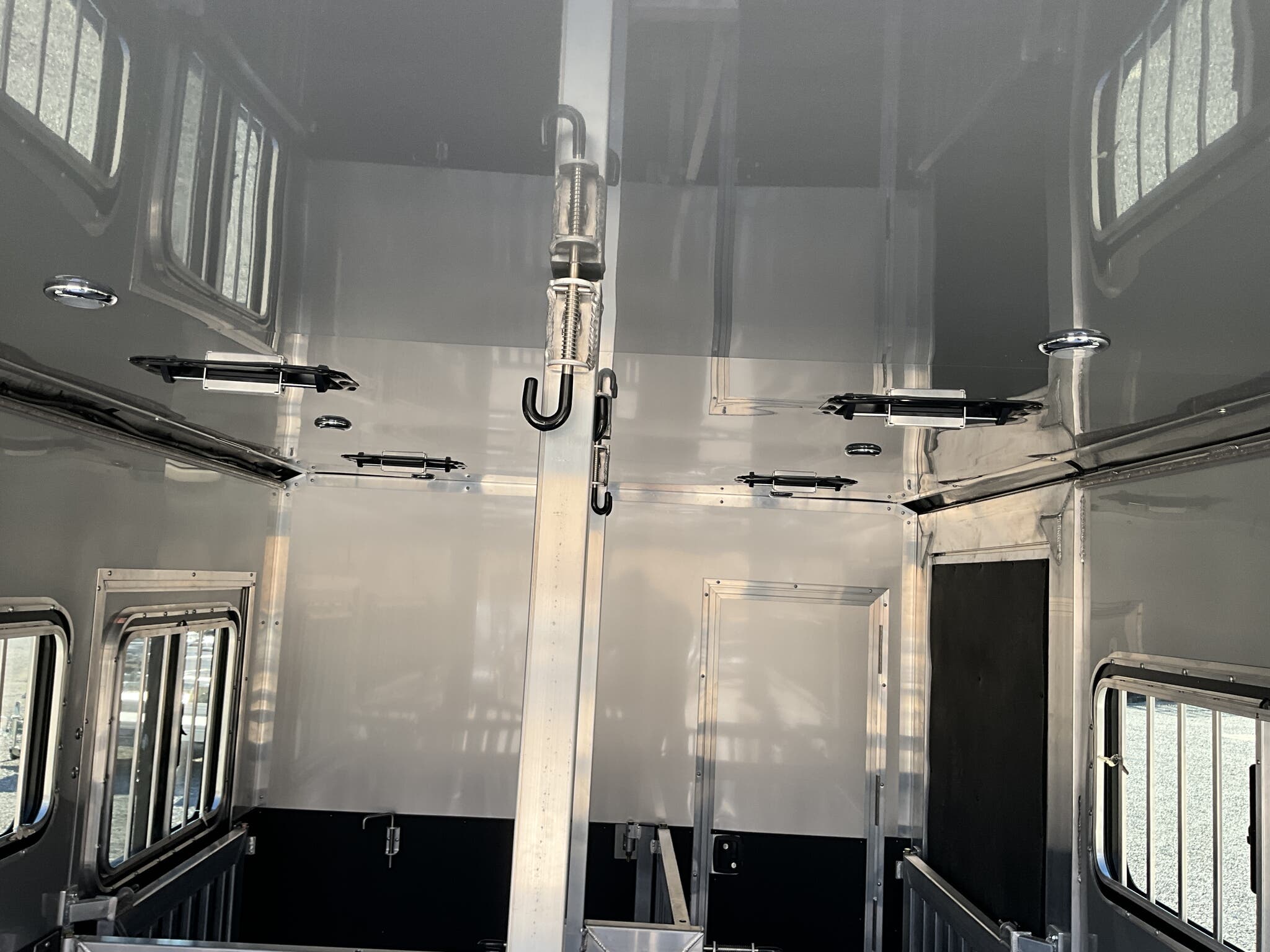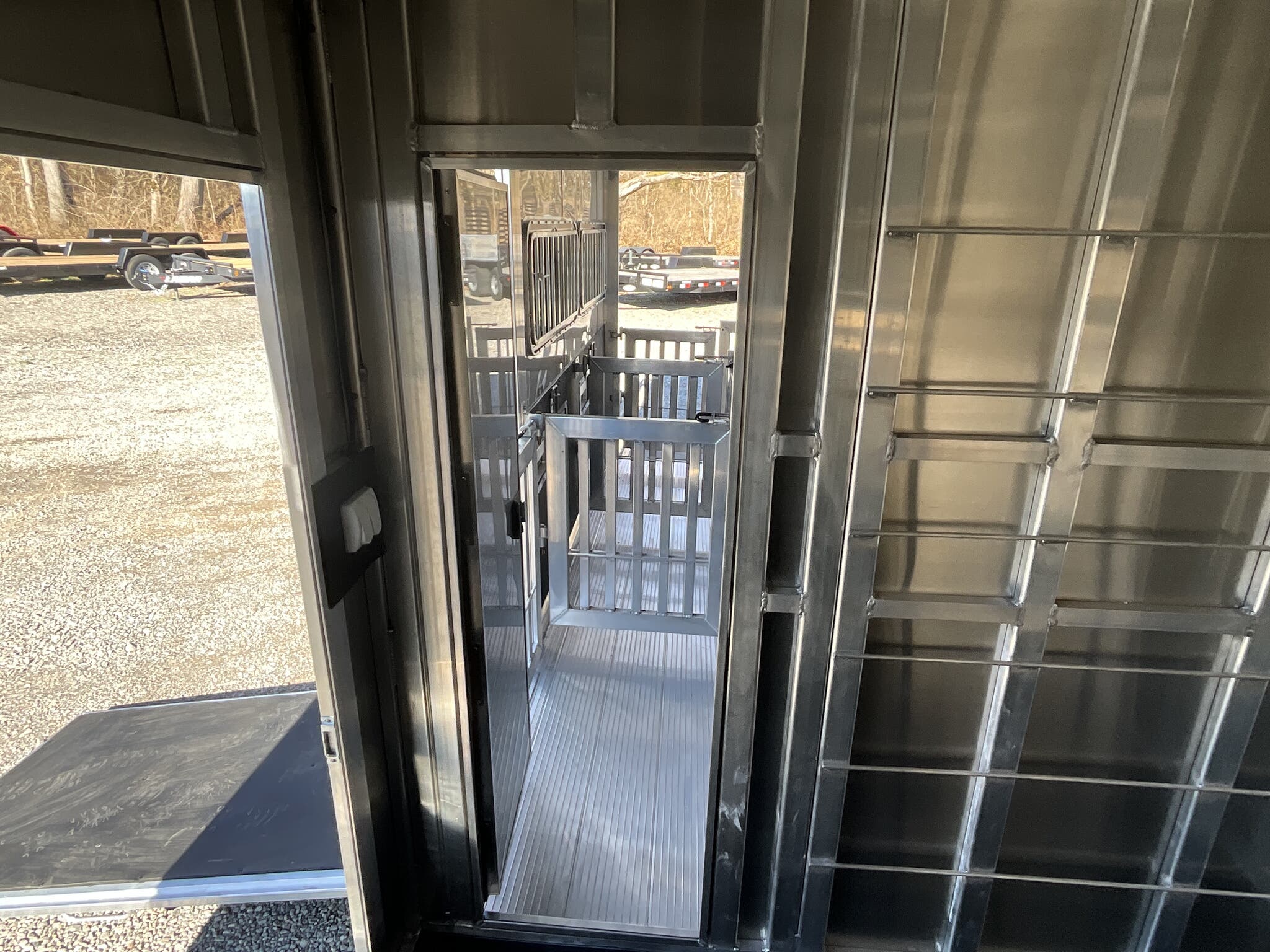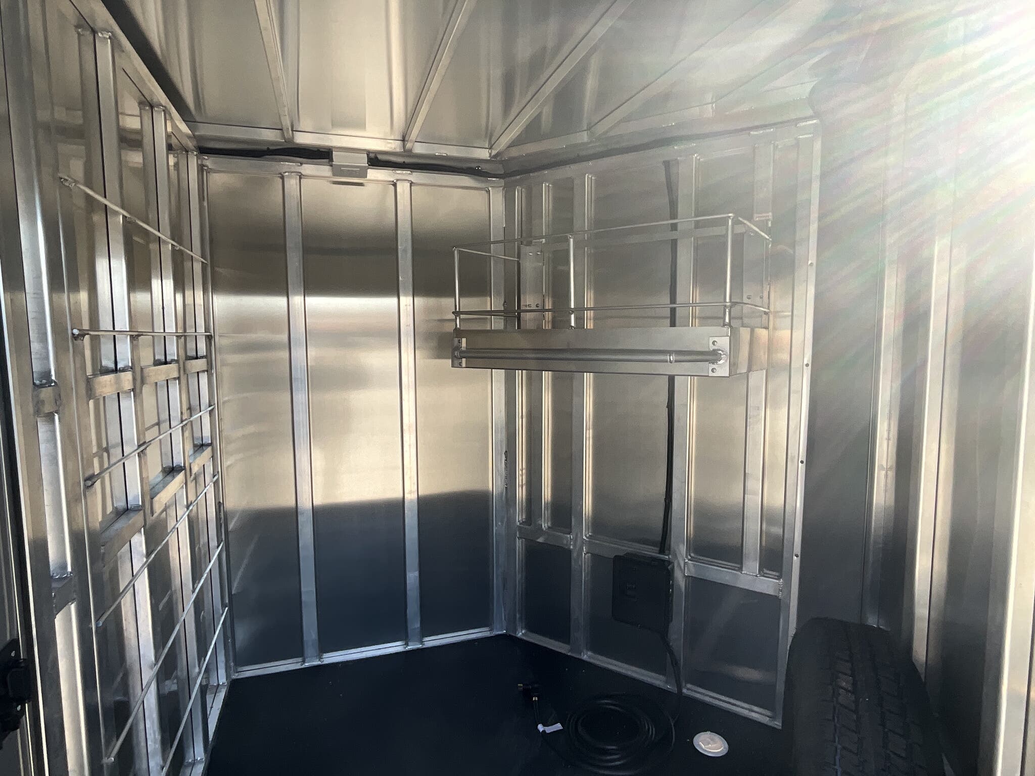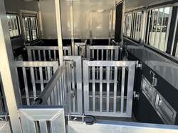 Specs — Lighting: All LED exterior lighting; full-length interior LED strip lights both sides of pen area; rear LED load light; LED scare/porch light over tack door