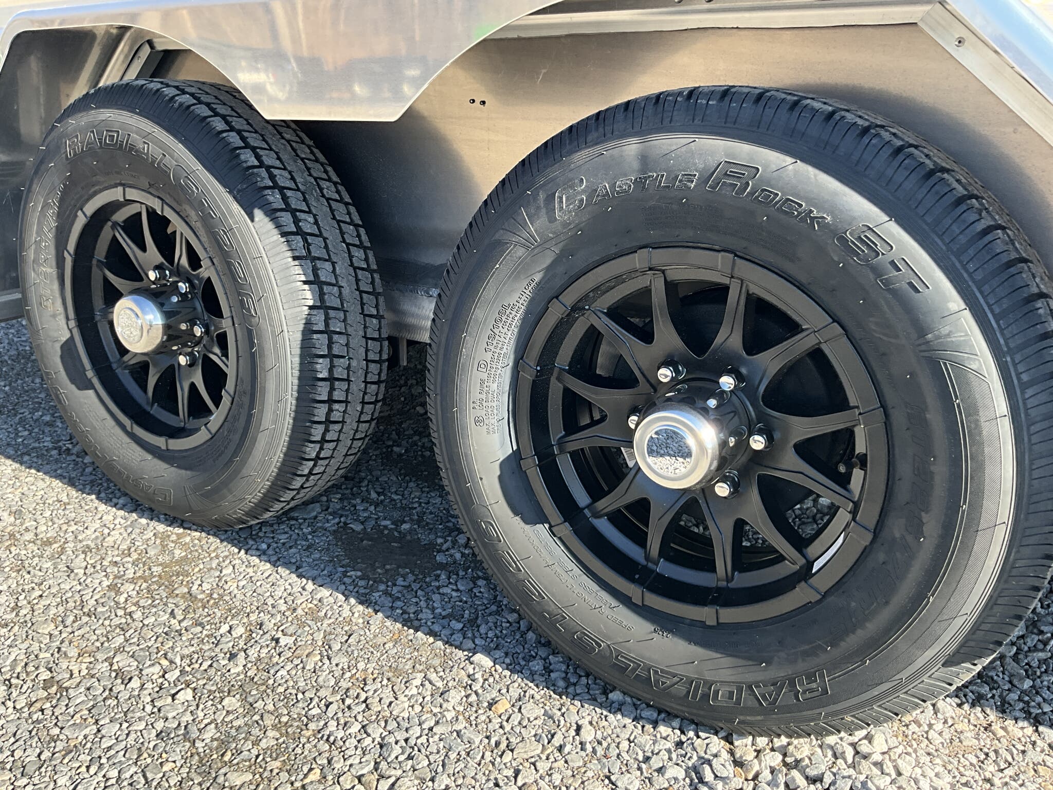 Specs — Tires/Wheels: ST225/75R15 tires on black aluminum wheels; matching spare included