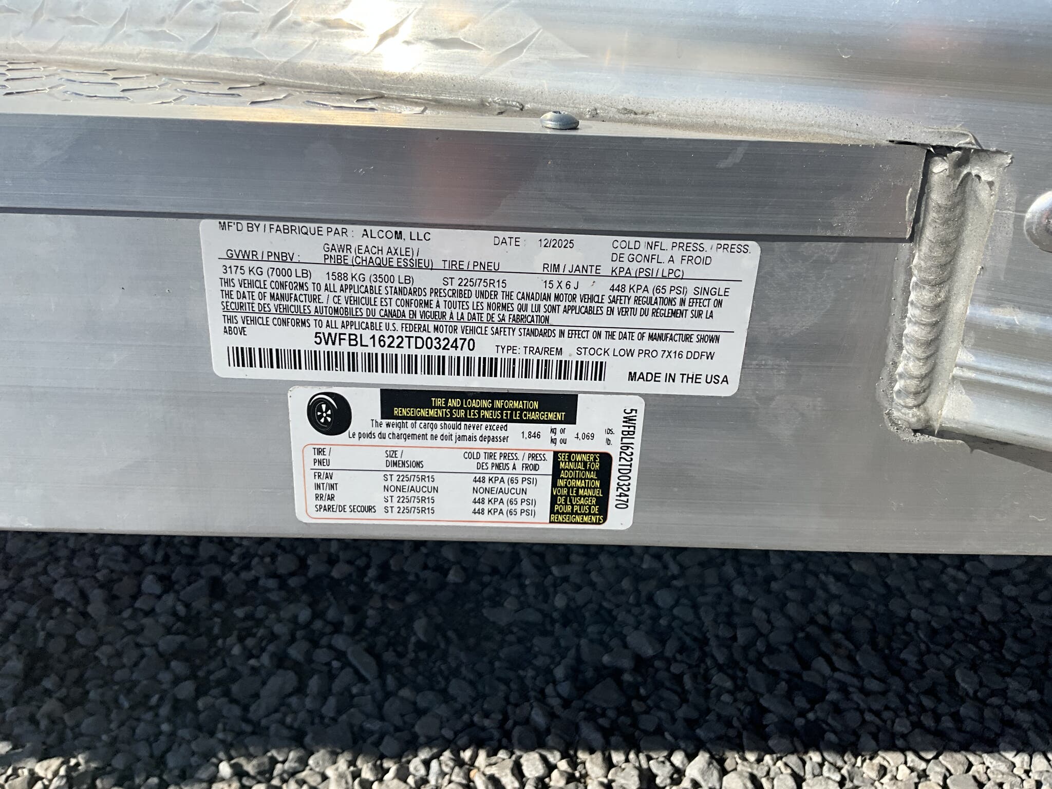 Weights & Capacities — Total Axle Capacity: 7,000 lb