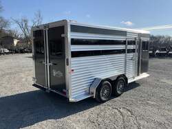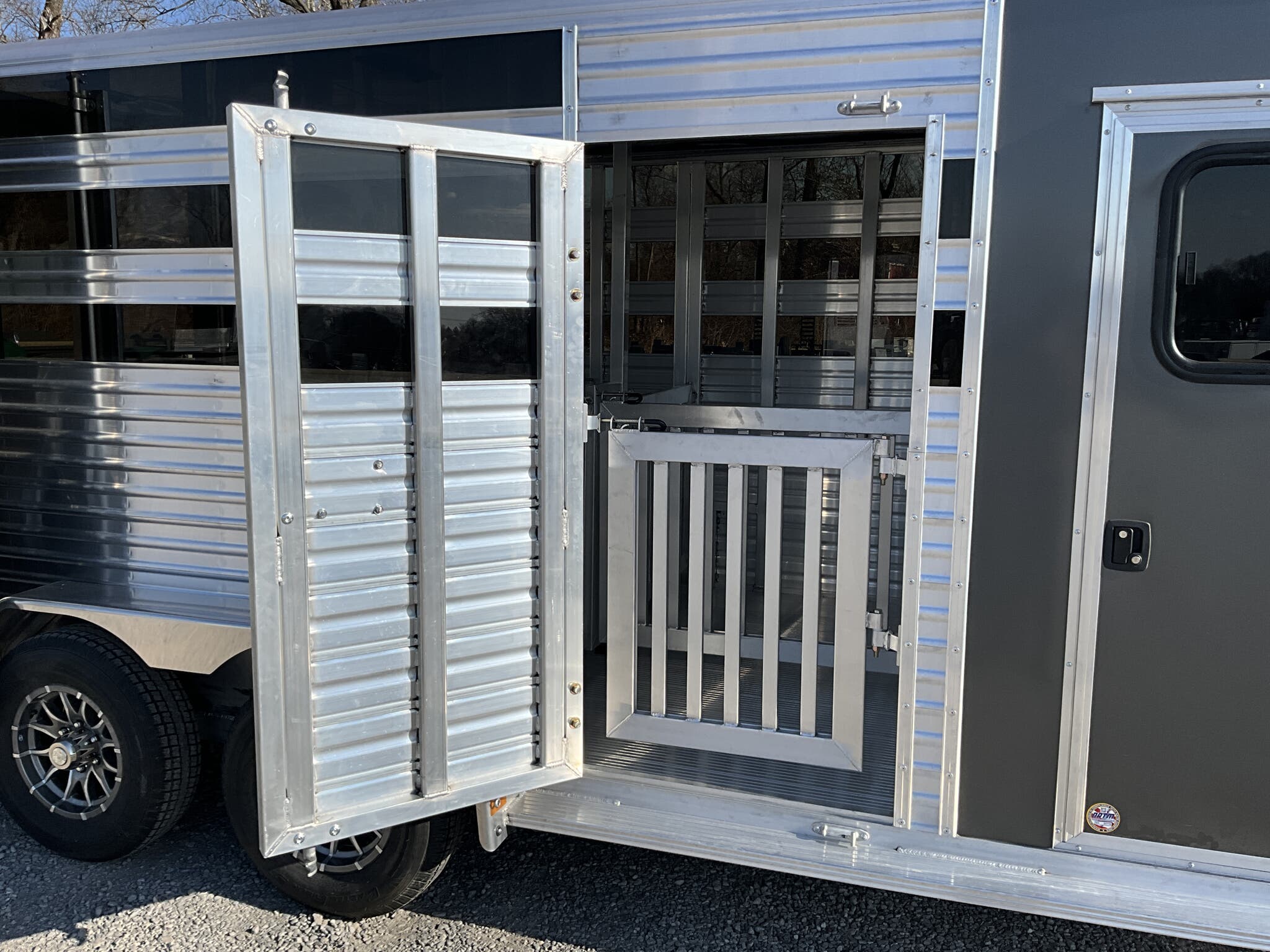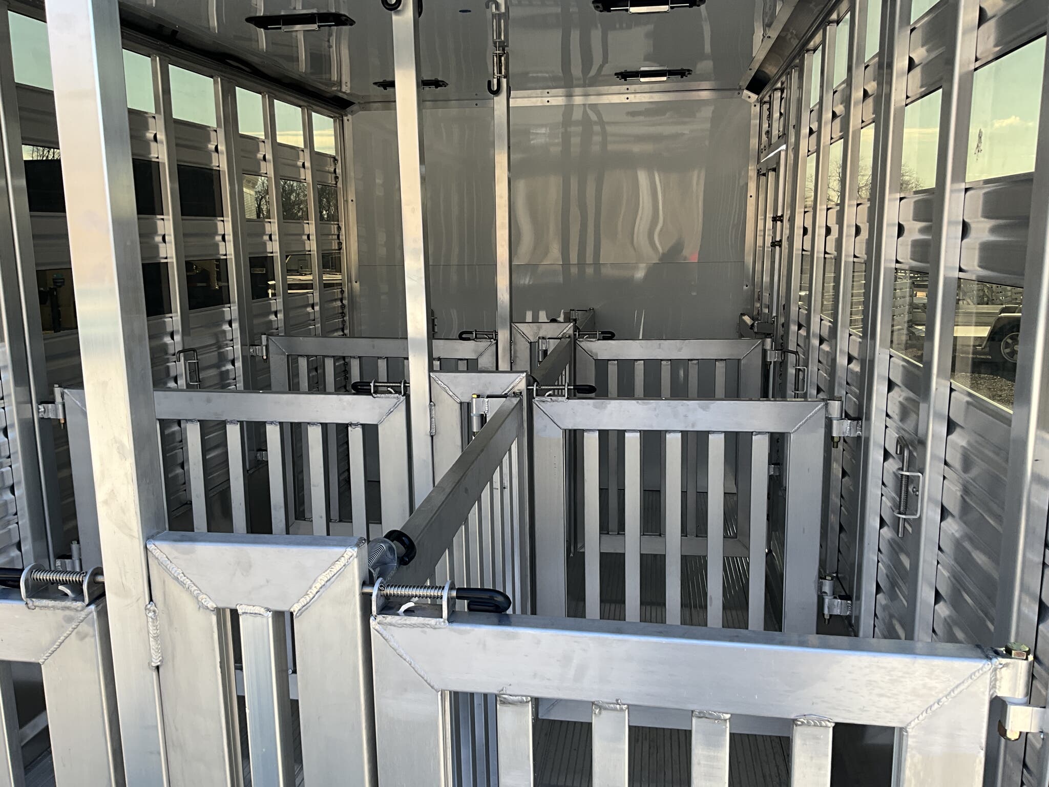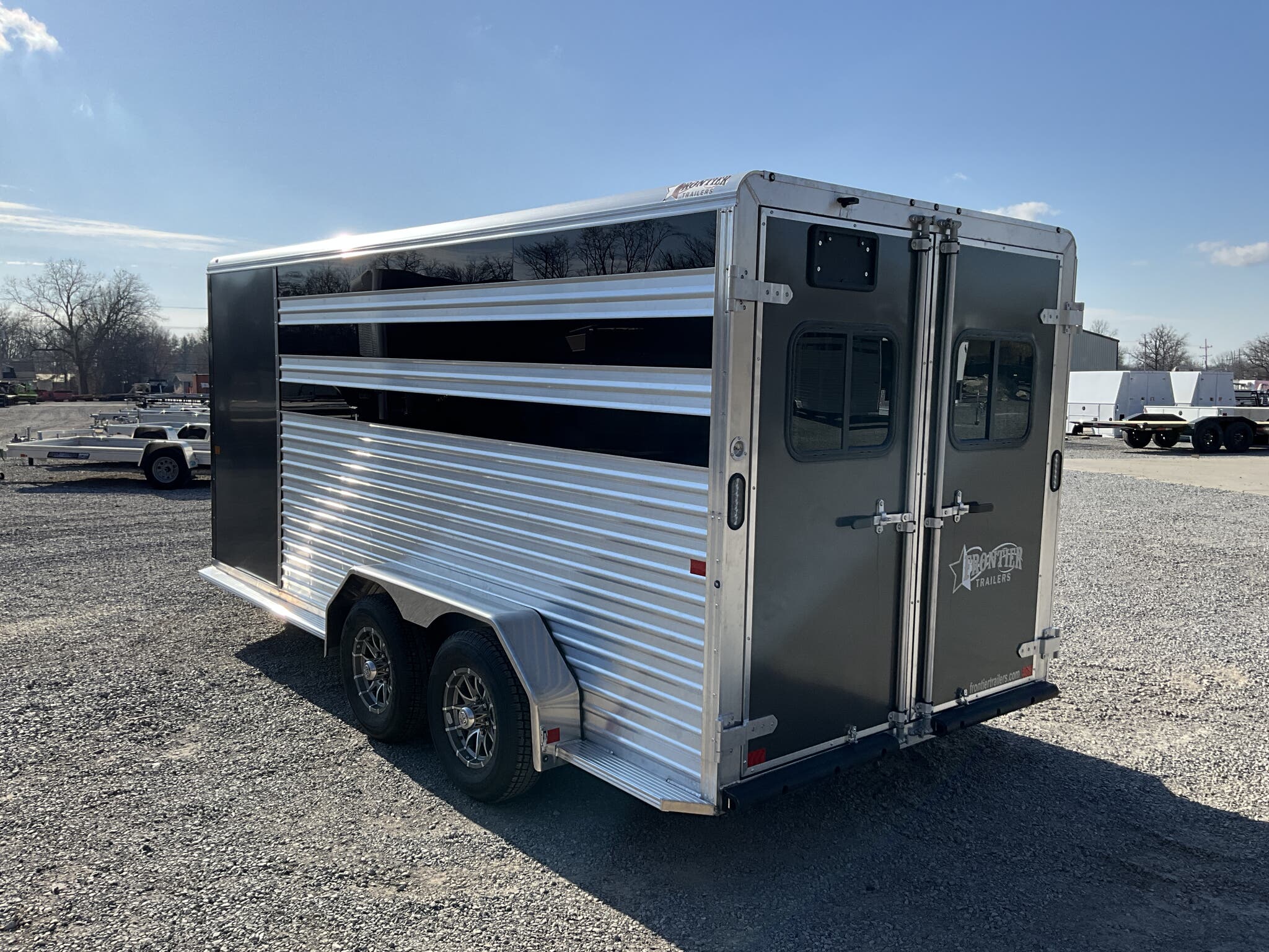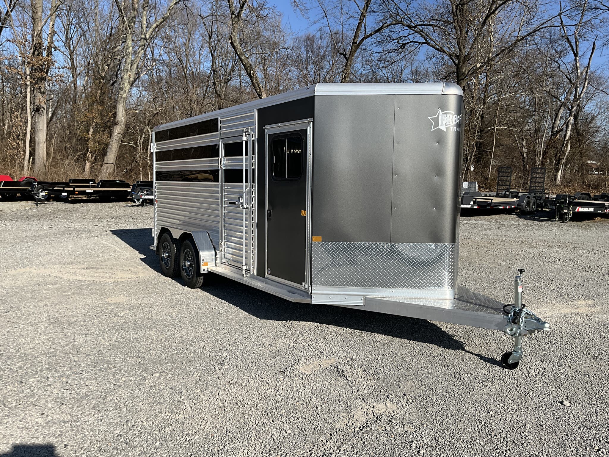 2026 FRONTIER LOW PRO LIVESTOCK TRAILER w/ PEN SYSTEM 7' 16', 78" Interior Height, Charcoal w/ Silver Graphics, Bumper Pull, Tandem Torsion Axles For Sale in Illinois Feature: Low Pro livestock trailer with adjustable pen/stall system 60/40 or 50/50 split Feature: +6" box height upgrade for full 78" interior height Feature: Curbside tack door + curbside escape door Feature: Extended tongue (+6") with center beam upgrade Feature: 110V power package with shore line and interior outlets Specs Interior Size: 16' floor length 7' wide 78" tall Specs Construction: All box tube aluminum chassis Specs Floor: Extruded aluminum decking; 12" O.C. I beam crossmembers Specs Roof: One piece .040 aluminum roof with heavy duty radius extrusion Specs Ceiling: White .030 aluminum ceiling liner with insulation (horse area) Specs Exterior: .040 pre painted aluminum side sheets; V nose with 24" stone guard Specs Axles/Brakes: (2) 3,500 lb Dexter torsion axles; electric brakes on all wheels Specs Tires/Wheels: ST225/75R15 tires on aluminum wheels; matching spare included Specs Spare Mount: Interior floor level spare mount in tack area Specs Doors: 32" 64" livestock access door; 50/50 double rear doors with slider Specs Gates/Pens: New 4' adjustable stalls with spring latch system; escape door pen gate with U bolt spring latches Specs Ventilation: (3) air gaps with Plexitrac for plexiglass sides Specs Tack Area: 44" tack with rubber mats; LED dome light with wall switch Specs Electrical: 110V power package (30 amp breaker box, 25' shore line, standard outlet, GFI outlet); brace & stub wiring for future A/C Specs Lighting: Full LED exterior lighting; full length LED strip lights in stock area (both sides) Specs Tongue/Jack: Extended tongue; top winding jack with wheel Specs Exterior Features: Full length running boards; heavy duty rear step up rubber bumper Specs Finish: Charcoal exterior with silver graphics Specs Warranty: 8 year limited manufacturer warranty Weights & Capacities Total Axle Capacity: 7,000 lb Weights & Capacities Empty Weight: 2,931 lb Weights & Capacities Payload on Axles: 7,000 2,931 = 4,069 lb Weights & Capacities Tongue Load (Bumper Pull @ 10%): 700 lb Weights & Capacities Total Payload Including Tongue: 4,769 lb Delivery from 62864 (Lower 48): Up to 100 miles $150 101 300 miles $2.00/mile 301 1200 miles $3.00/mile Over 1200 miles $4.00/mile