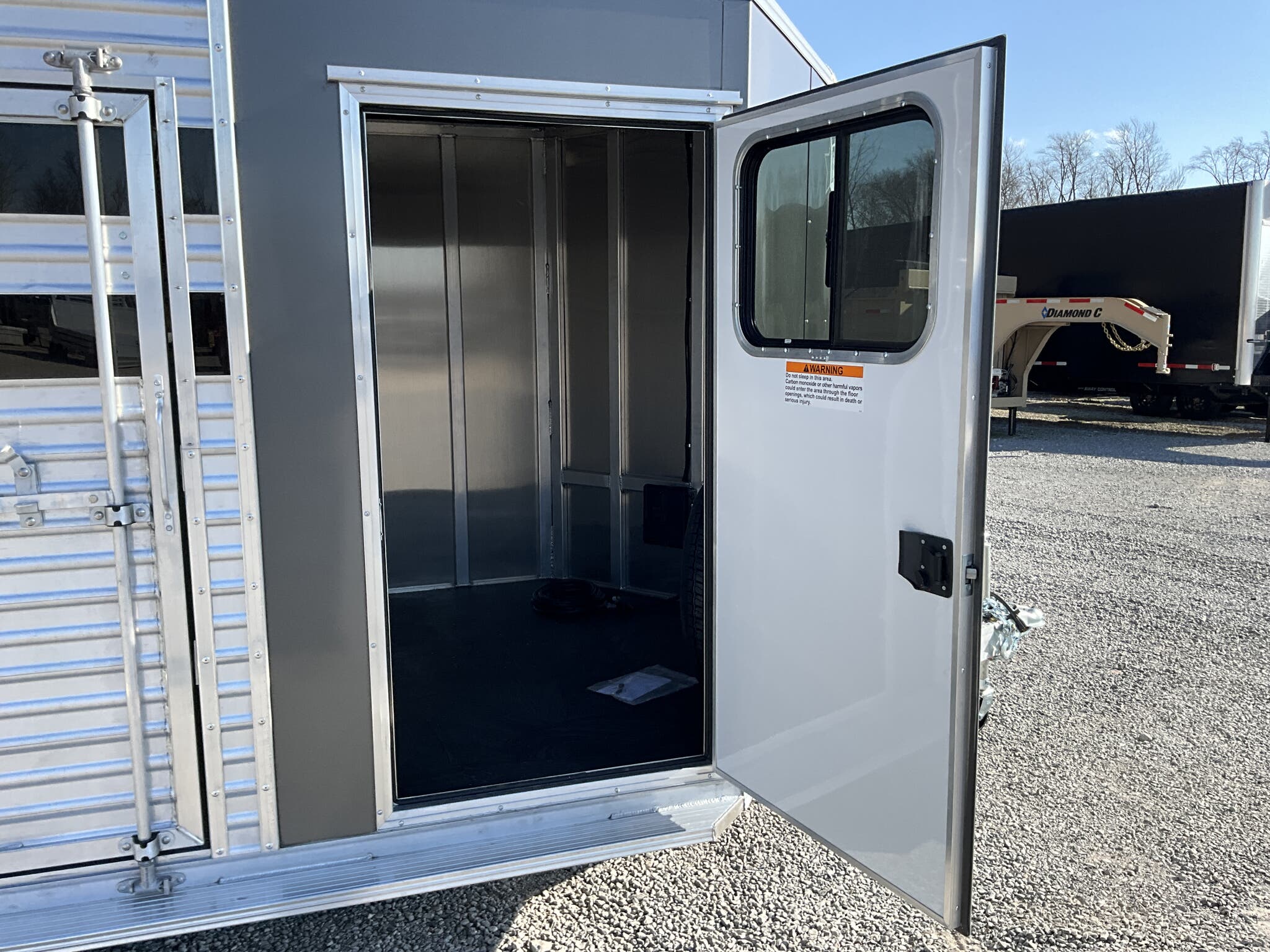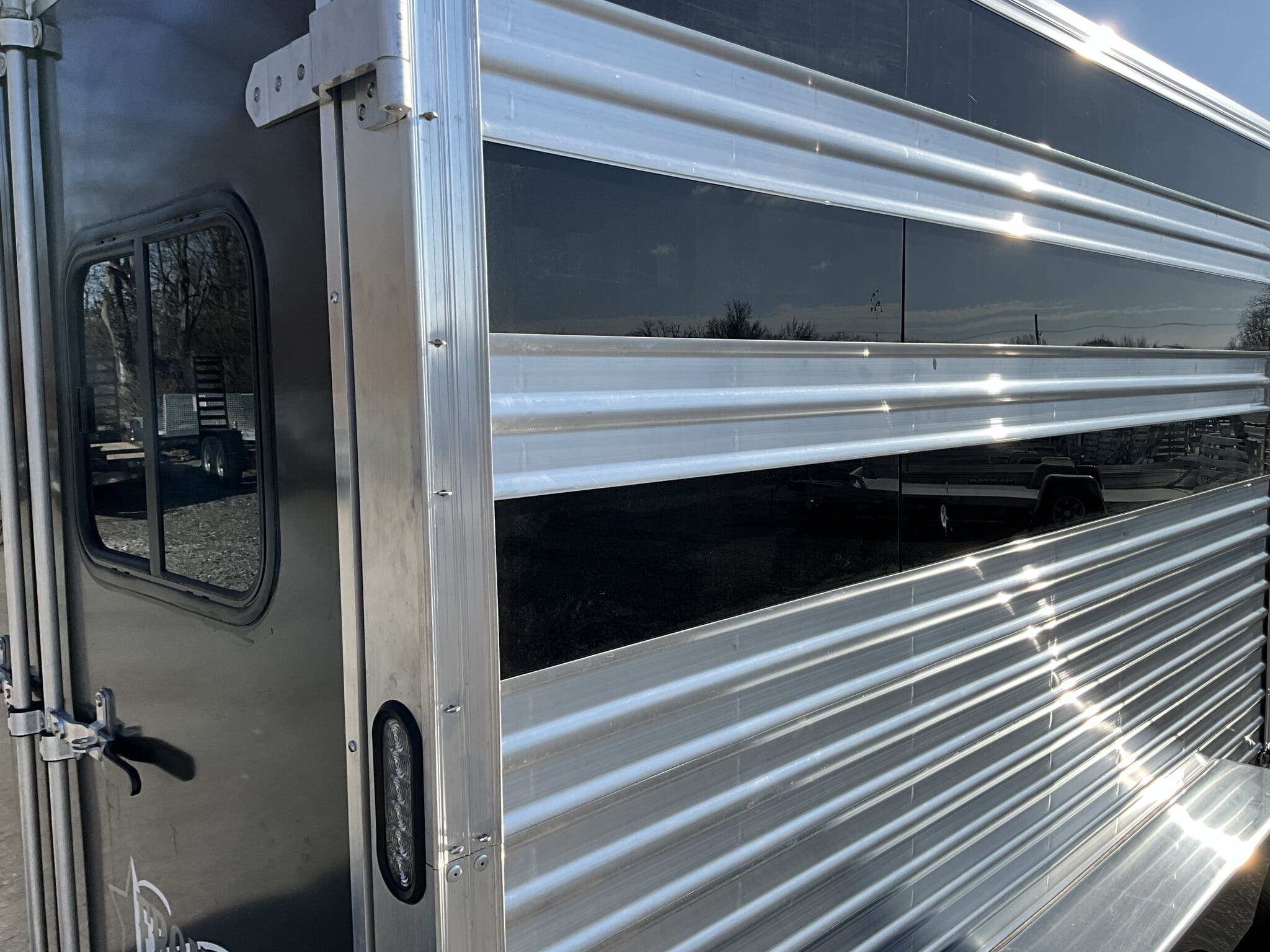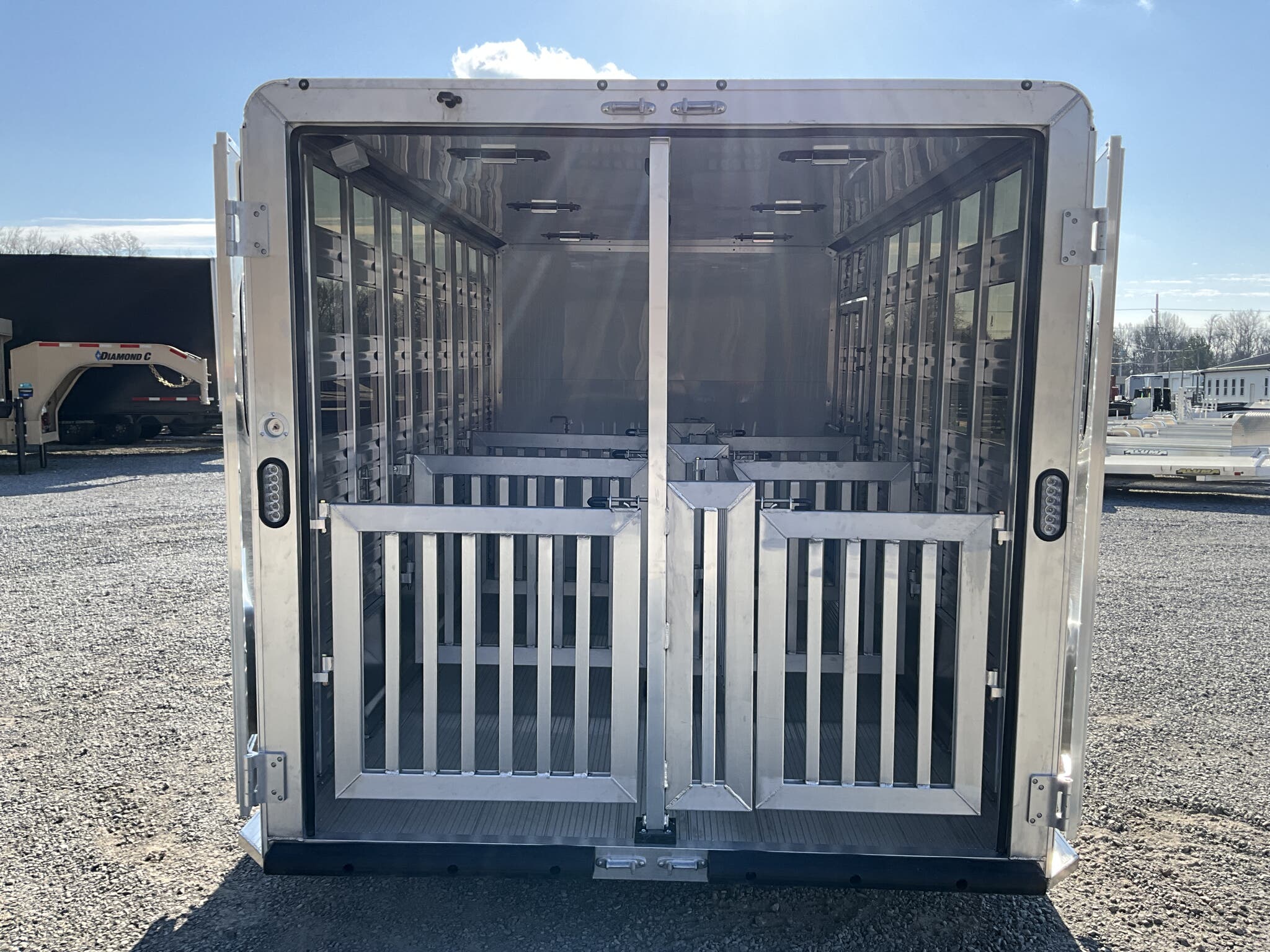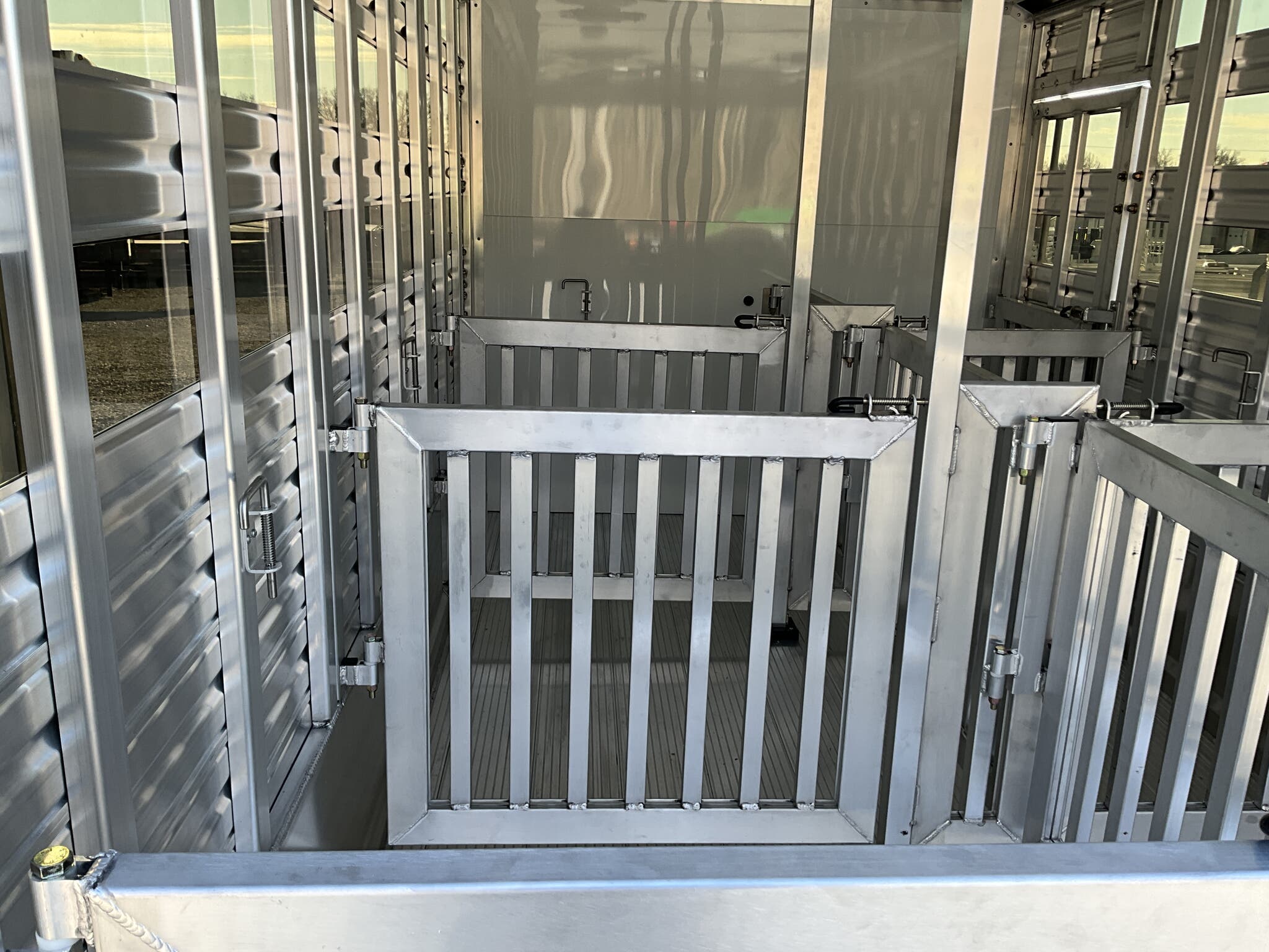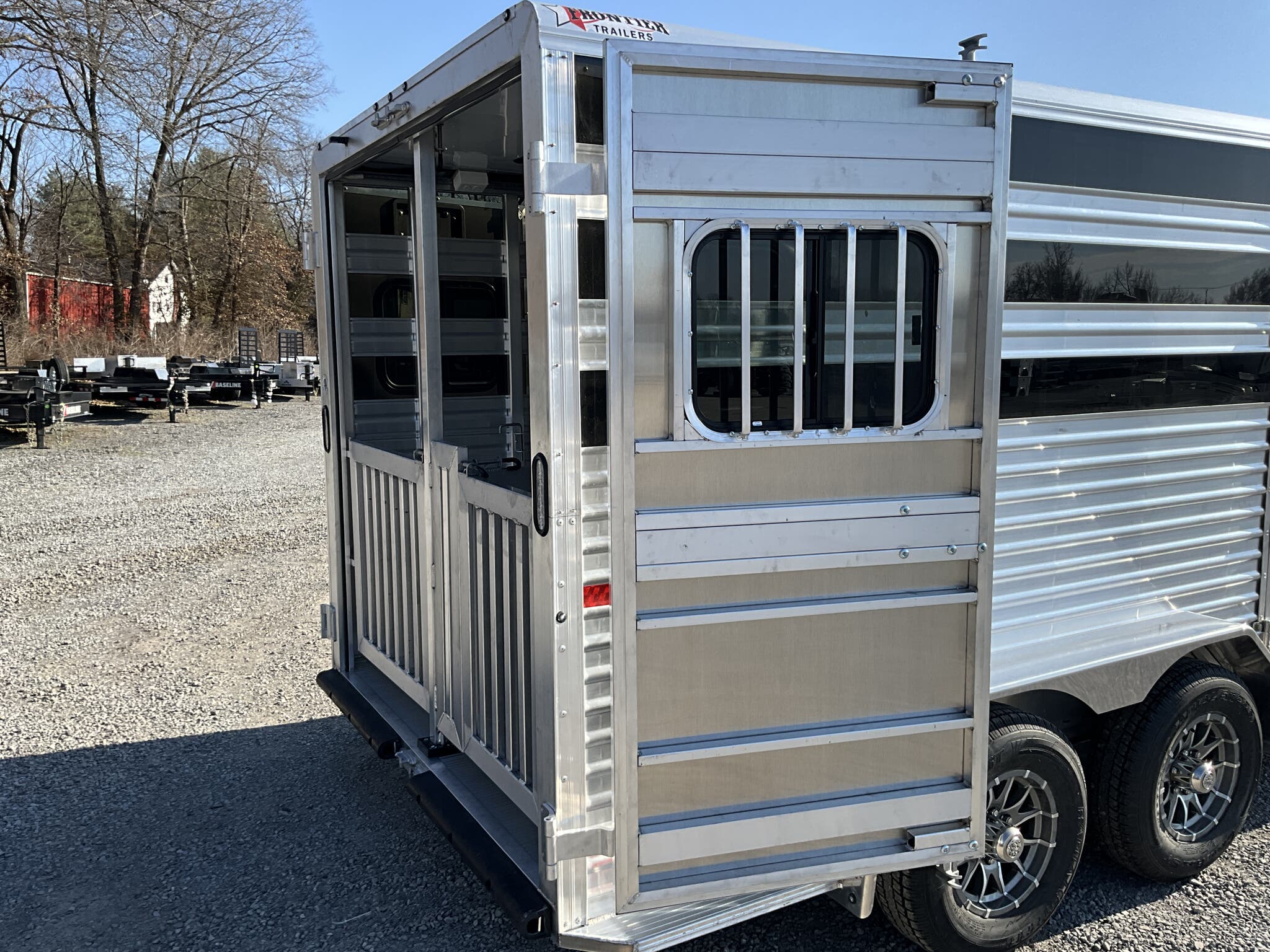 2026 FRONTIER LOW PRO LIVESTOCK TRAILER w/ PEN SYSTEM 7' 16', 78" Interior Height, Charcoal w/ Silver Graphics, Bumper Pull, Tandem Torsion Axles For Sale in Illinois Feature: Low Pro livestock trailer with adjustable pen/stall system 60/40 or 50/50 split Feature: +6" box height upgrade for full 78" interior height Feature: Curbside tack door + curbside escape door Feature: Extended tongue (+6") with center beam upgrade Feature: 110V power package with shore line and interior outlets Specs Interior Size: 16' floor length 7' wide 78" tall Specs Construction: All box tube aluminum chassis Specs Floor: Extruded aluminum decking; 12" O.C. I beam crossmembers Specs Roof: One piece .040 aluminum roof with heavy duty radius extrusion Specs Ceiling: White .030 aluminum ceiling liner with insulation (horse area) Specs Exterior: .040 pre painted aluminum side sheets; V nose with 24" stone guard Specs Axles/Brakes: (2) 3,500 lb Dexter torsion axles; electric brakes on all wheels Specs Tires/Wheels: ST225/75R15 tires on aluminum wheels; matching spare included Specs Spare Mount: Interior floor level spare mount in tack area Specs Doors: 32" 64" livestock access door; 50/50 double rear doors with slider Specs Gates/Pens: New 4' adjustable stalls with spring latch system; escape door pen gate with U bolt spring latches Specs Ventilation: (3) air gaps with Plexitrac for plexiglass sides Specs Tack Area: 44" tack with rubber mats; LED dome light with wall switch Specs Electrical: 110V power package (30 amp breaker box, 25' shore line, standard outlet, GFI outlet); brace & stub wiring for future A/C Specs Lighting: Full LED exterior lighting; full length LED strip lights in stock area (both sides) Specs Tongue/Jack: Extended tongue; top winding jack with wheel Specs Exterior Features: Full length running boards; heavy duty rear step up rubber bumper Specs Finish: Charcoal exterior with silver graphics Specs Warranty: 8 year limited manufacturer warranty Weights & Capacities Total Axle Capacity: 7,000 lb Weights & Capacities Empty Weight: 2,931 lb Weights & Capacities Payload on Axles: 7,000 2,931 = 4,069 lb Weights & Capacities Tongue Load (Bumper Pull @ 10%): 700 lb Weights & Capacities Total Payload Including Tongue: 4,769 lb Delivery from 62864 (Lower 48): Up to 100 miles $150 101 300 miles $2.00/mile 301 1200 miles $3.00/mile Over 1200 miles $4.00/mile