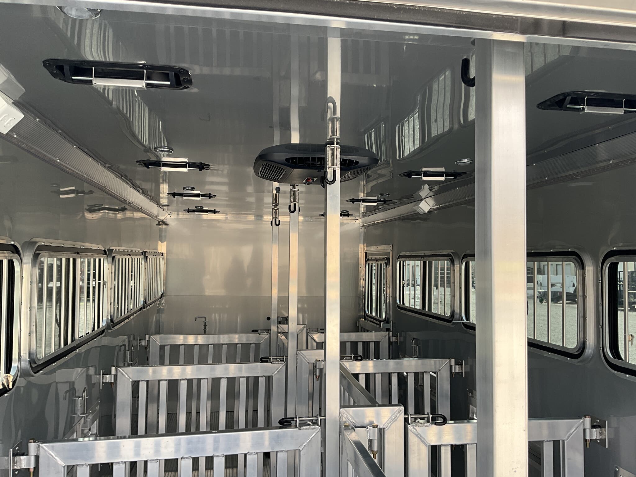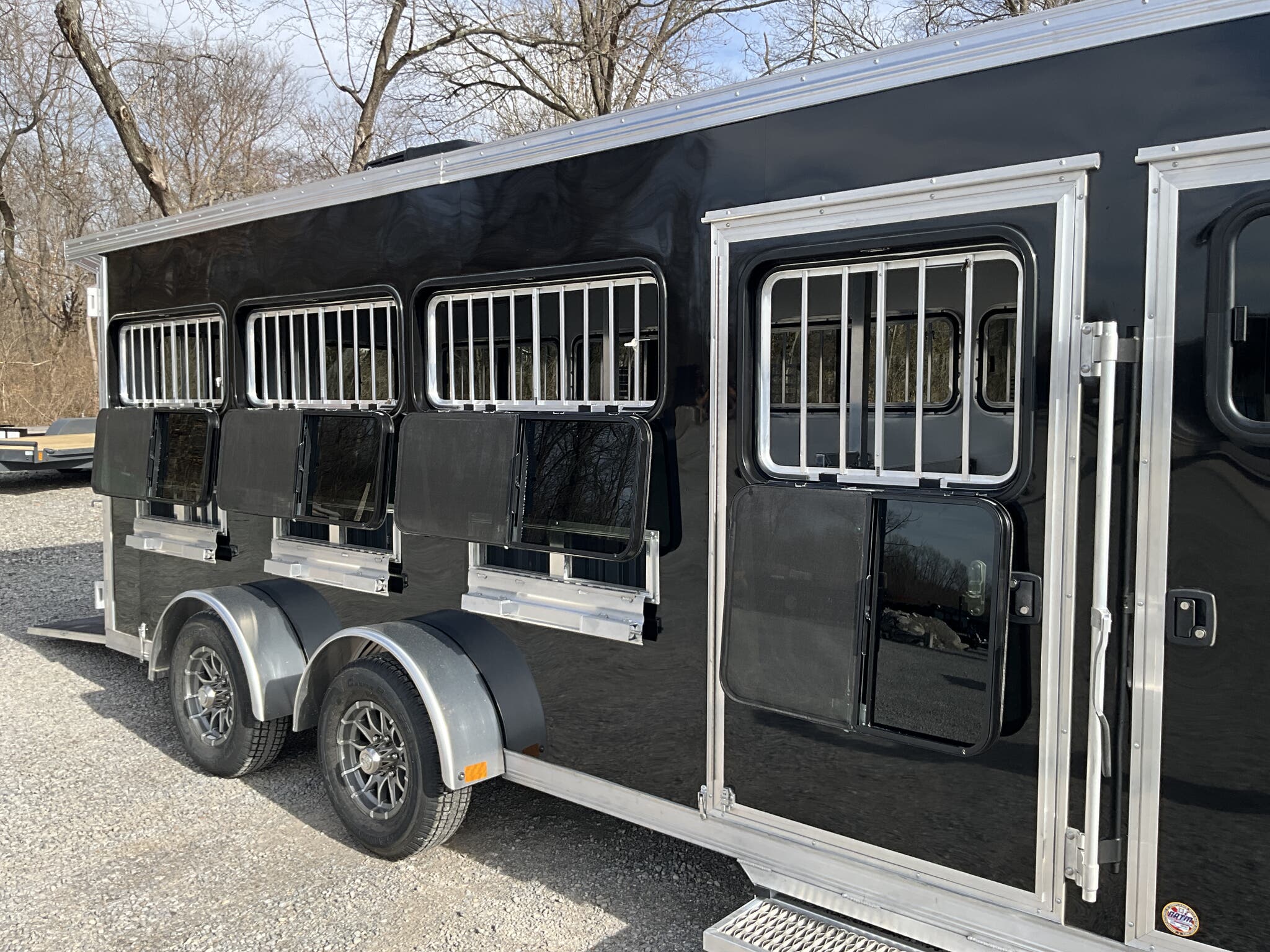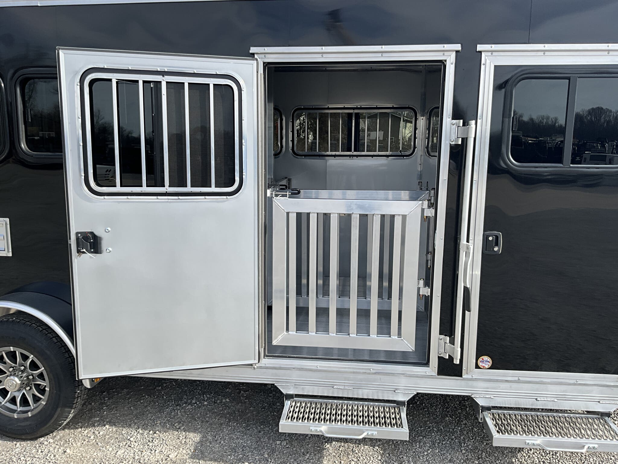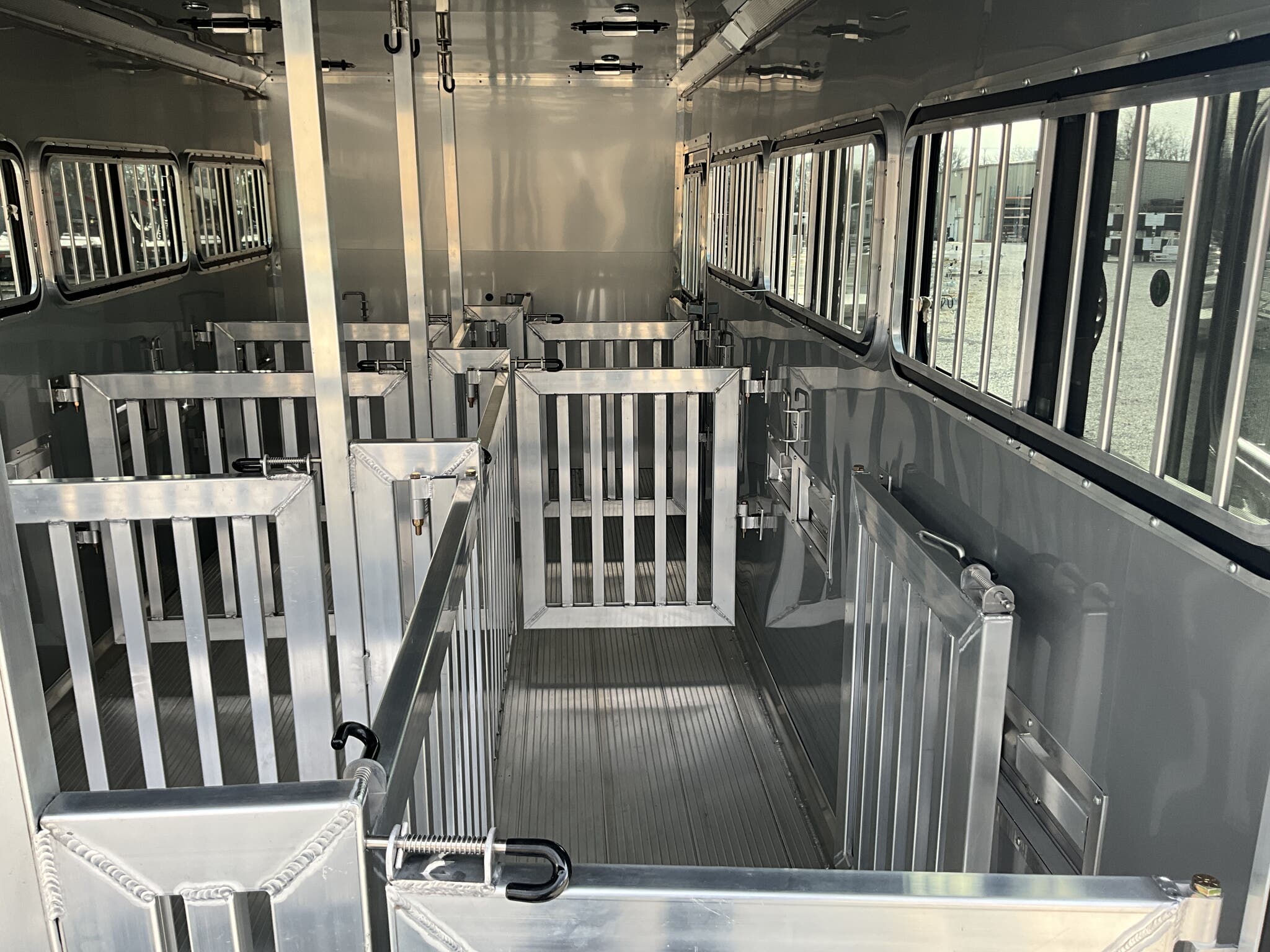 2026 FRONTIER 7 20 LOW PRO 8 PEN SYSTEM TRAILER JACKPOT PACKAGE Drop Down Feed Windows, 78" Interior Height, Bumper Pull, Tandem Torsion Axles For Sale in Illinois Feature: Low Pro 8 pen system trailer with adjustable stall/pen layout Feature: NEW Jackpot Package with 110V power, A/C, ramp, canopy, and upgraded lighting Feature: 13,500 BTU Penguin II roof A/C with 30A power system Feature: Drop down feed windows per pen Feature: Ramp behind double rear doors Feature: Rear canopy system with integrated lights Specs Interior Size: 20' floor length 7' wide 78" tall Specs Construction: All box tube aluminum chassis Specs Floor: Extruded aluminum decking; 12" O.C. I beam crossmembers Specs Roof: One piece .040 aluminum roof with heavy duty radius extrusion Specs Exterior: Lower half extruded aluminum sides; .040 aluminum upper skin & V nose; 24" stone guard Specs Axles/Brakes: (2) 3,500 lb Dexter torsion axles; electric brakes on all wheels with breakaway kit Specs Tires/Wheels: ST225/75R15 tires on aluminum rims (6 lug); matching spare & mount included Specs Doors: 50/50 double rear doors with sliding windows and bars Specs Feed Windows: 45" 18" drop down feed window per pen; 30" 24" feed window at escape door Specs Ventilation: Double action pop up roof vent per pen; (1) air gap with flip down cover Specs Pen System: (8) adjustable pens with new 4' spring loaded latch system; escape door pen gate with U bolt spring latch tie backs Specs Tack Area: 44" tack; curbside tack door (32" 64") with sliding window & screen; rubber mats; LED dome light Specs Electrical (Jackpot): 110V package with (2) standard outlets, (2) GFI outlets, 30A breaker, 30A power converter Specs A/C (Jackpot): 13,500 BTU Penguin II roof A/C Specs Lighting: All LED exterior lights; full length interior LED strip lights both sides of pen area with exterior cup switch; recessed LED puck lighting Specs Exterior Features: Full length running boards; heavy duty rear step up rubber bumper Specs Tongue/Jack: Manual landing gear Specs Finish: Pre painted aluminum exterior Specs Warranty: 8 year limited manufacturer warranty Weights & Capacities Total Axle Capacity: 7,000 lb Weights & Capacities Empty Weight: 3,412 lb Weights & Capacities Payload on Axles: 7,000 3,412 = 3,588 lb Weights & Capacities Tongue Load (Bumper Pull @ 10%): 700 lb Weights & Capacities Total Payload Including Tongue: 4,288 lb Delivery from 62864 (Lower 48): Up to 100 miles $150 101 300 miles $2.00/mile 301 1200 miles $3.00/mile Over 1200 miles $4.00/mile