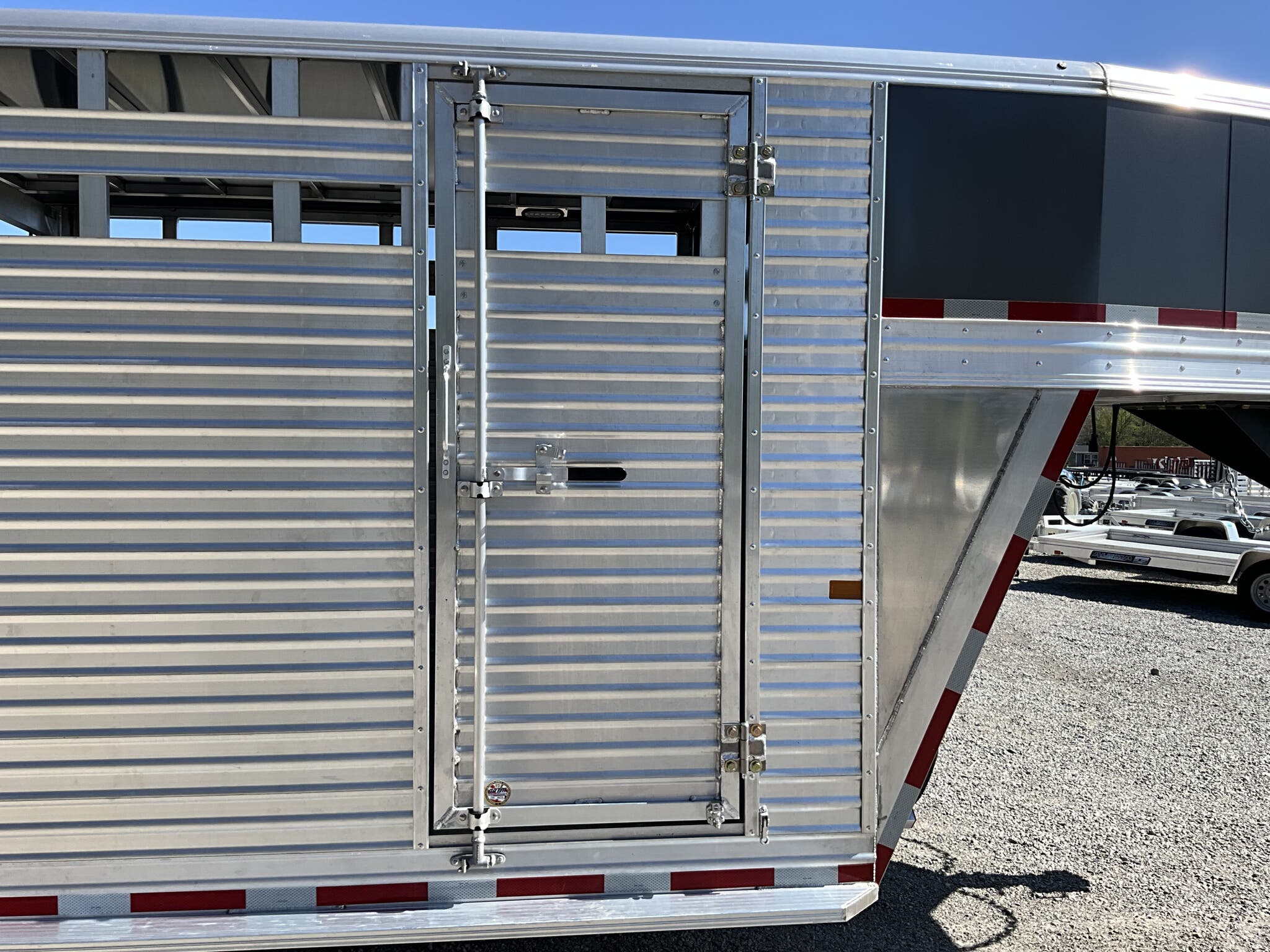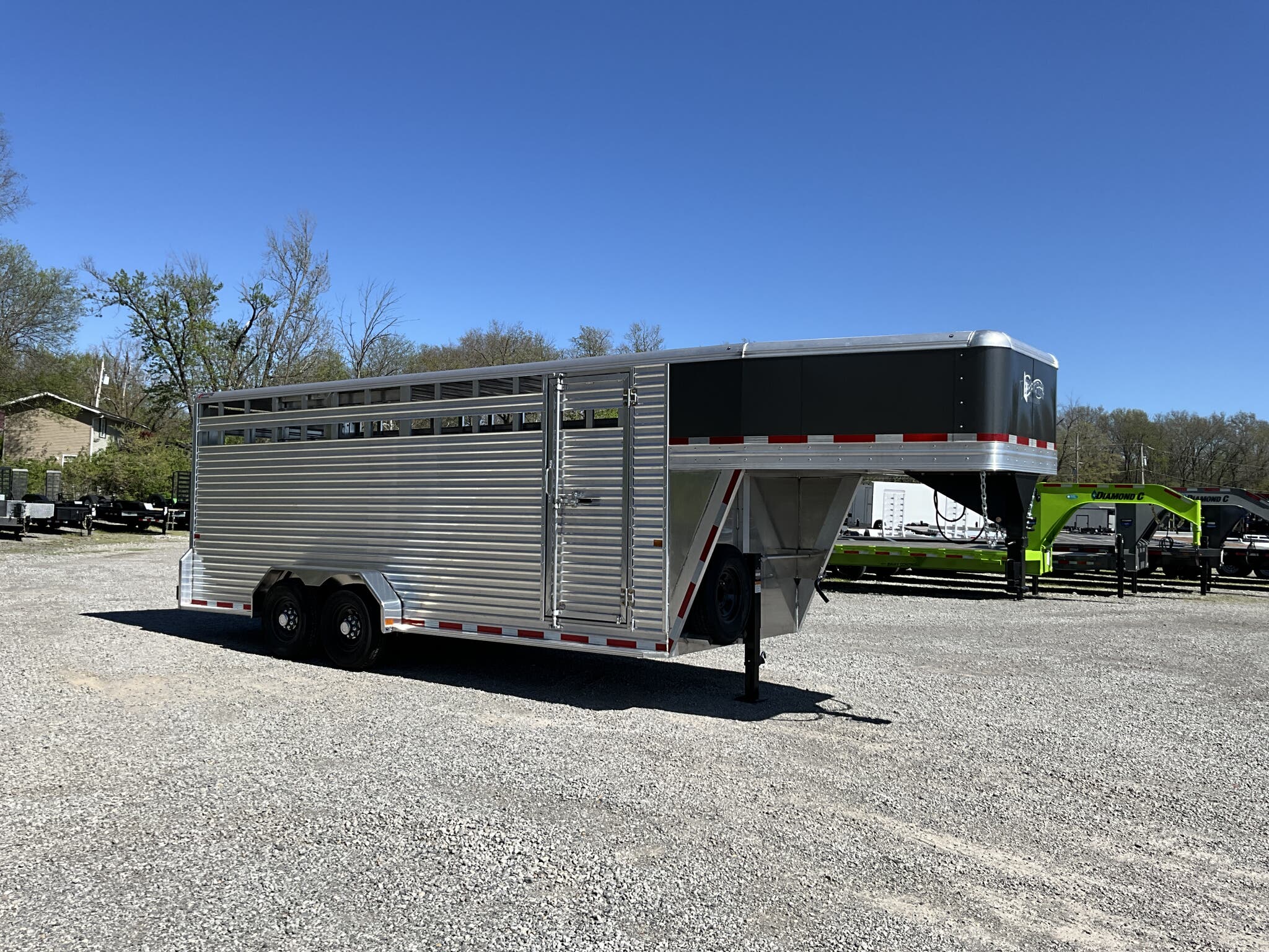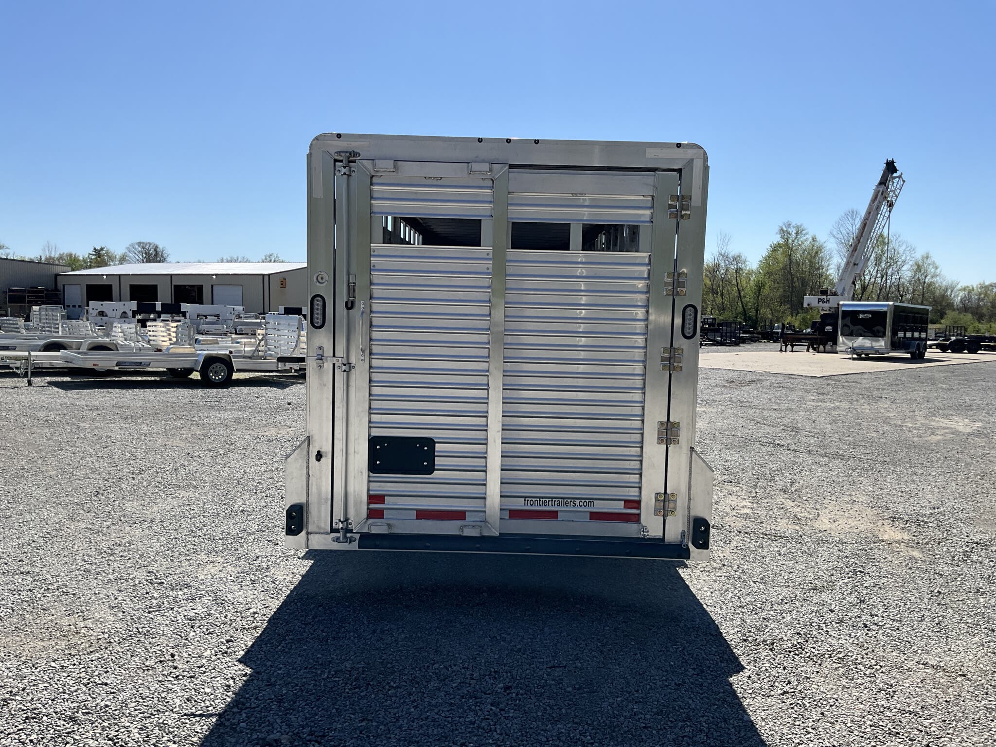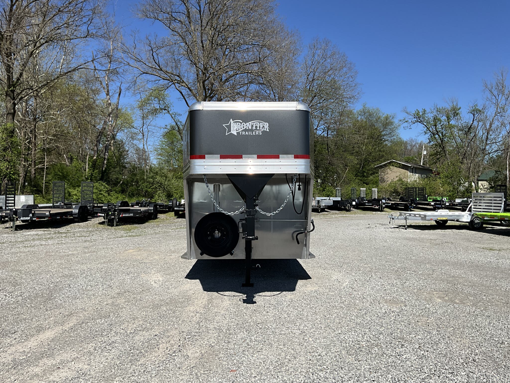 2026 FRONTIER 7' × 20' × 7' TALL GOOSENECK LIVESTOCK TRAILER, CHARCOAL ALUMINUM WITH BLACK GRAPHICS, ESCAPE DOOR, CENTER SLIDING CALF GATE — FOR SALE IN MOUNT VERNON, IL 62864