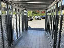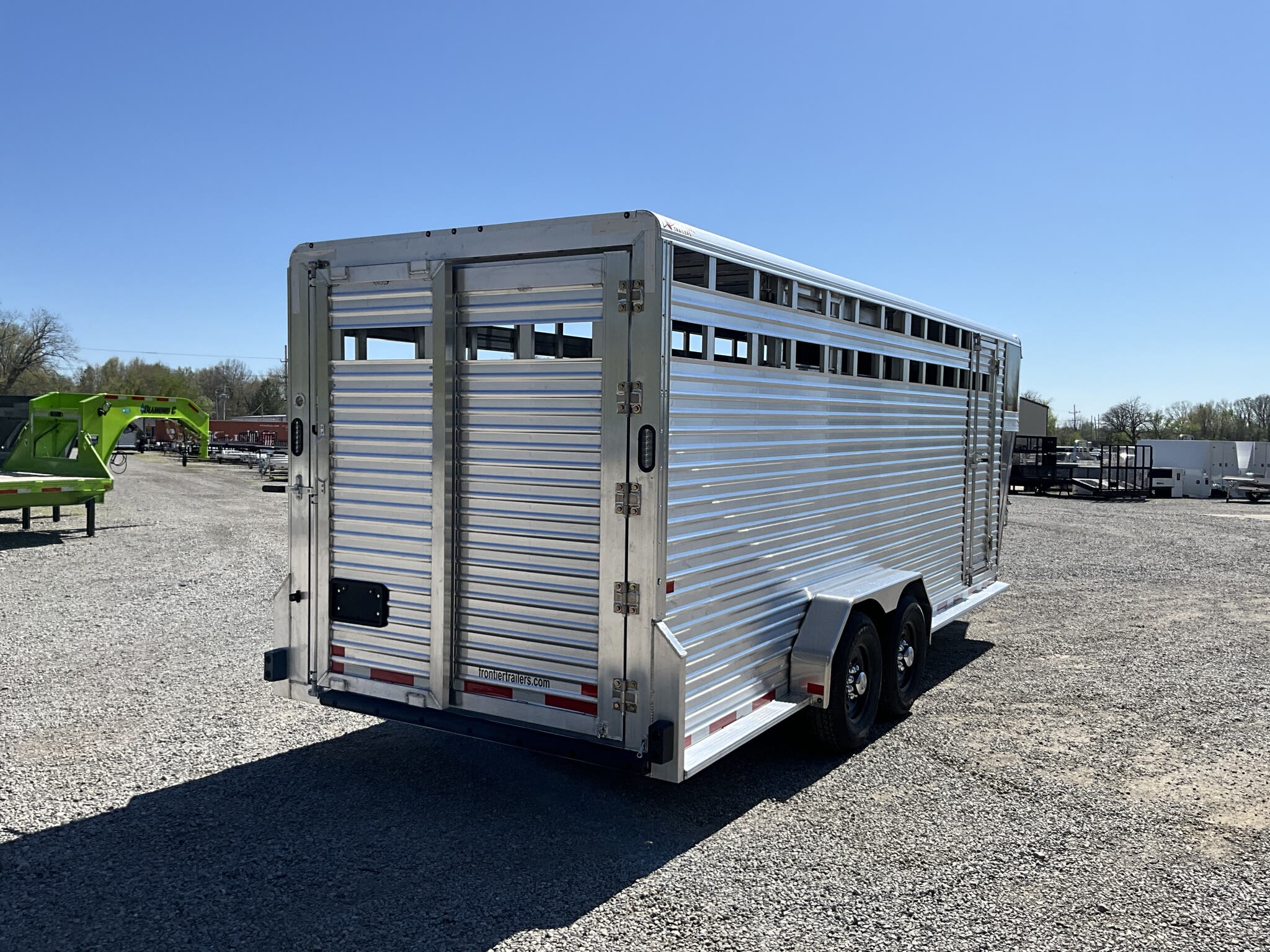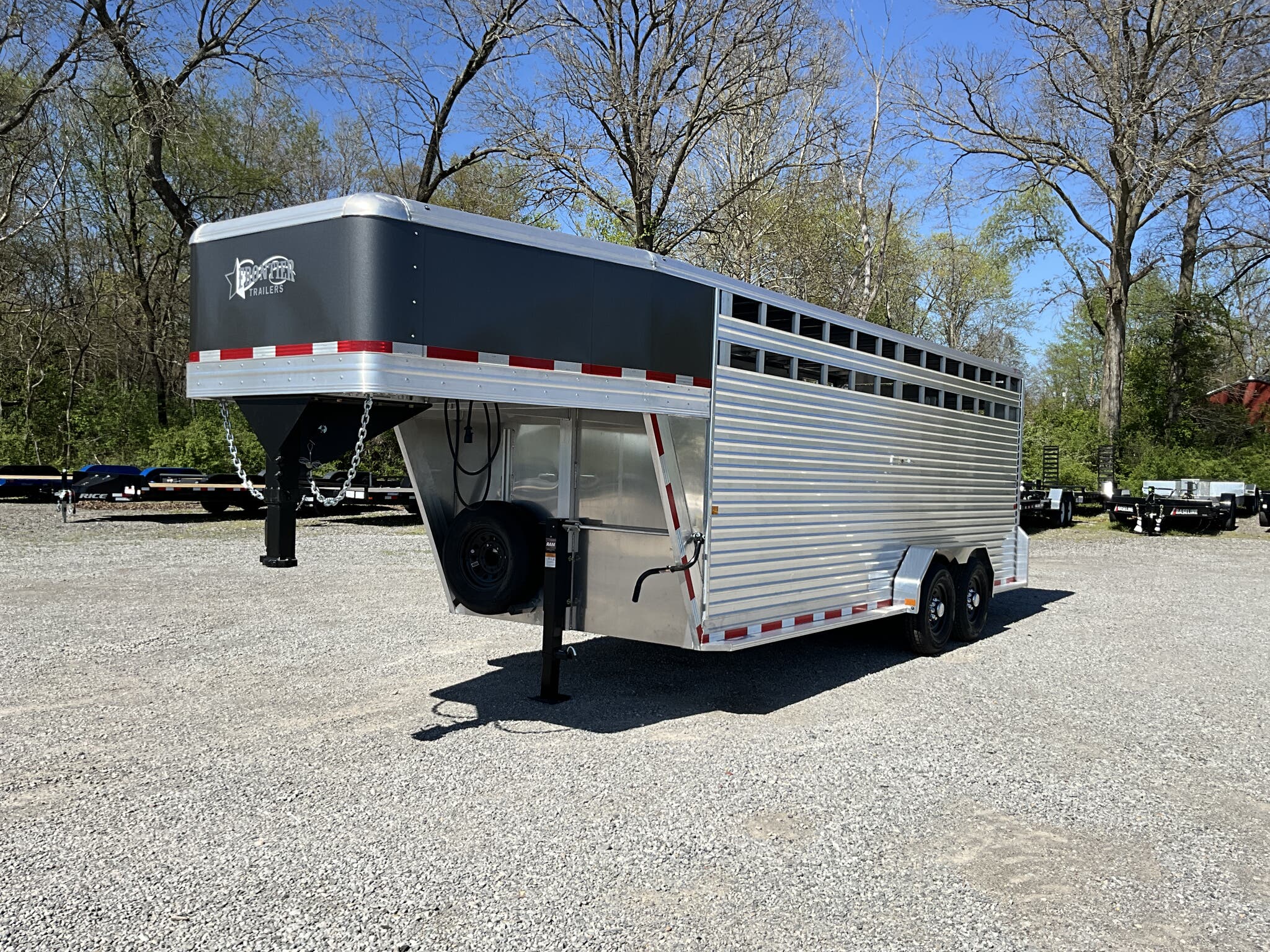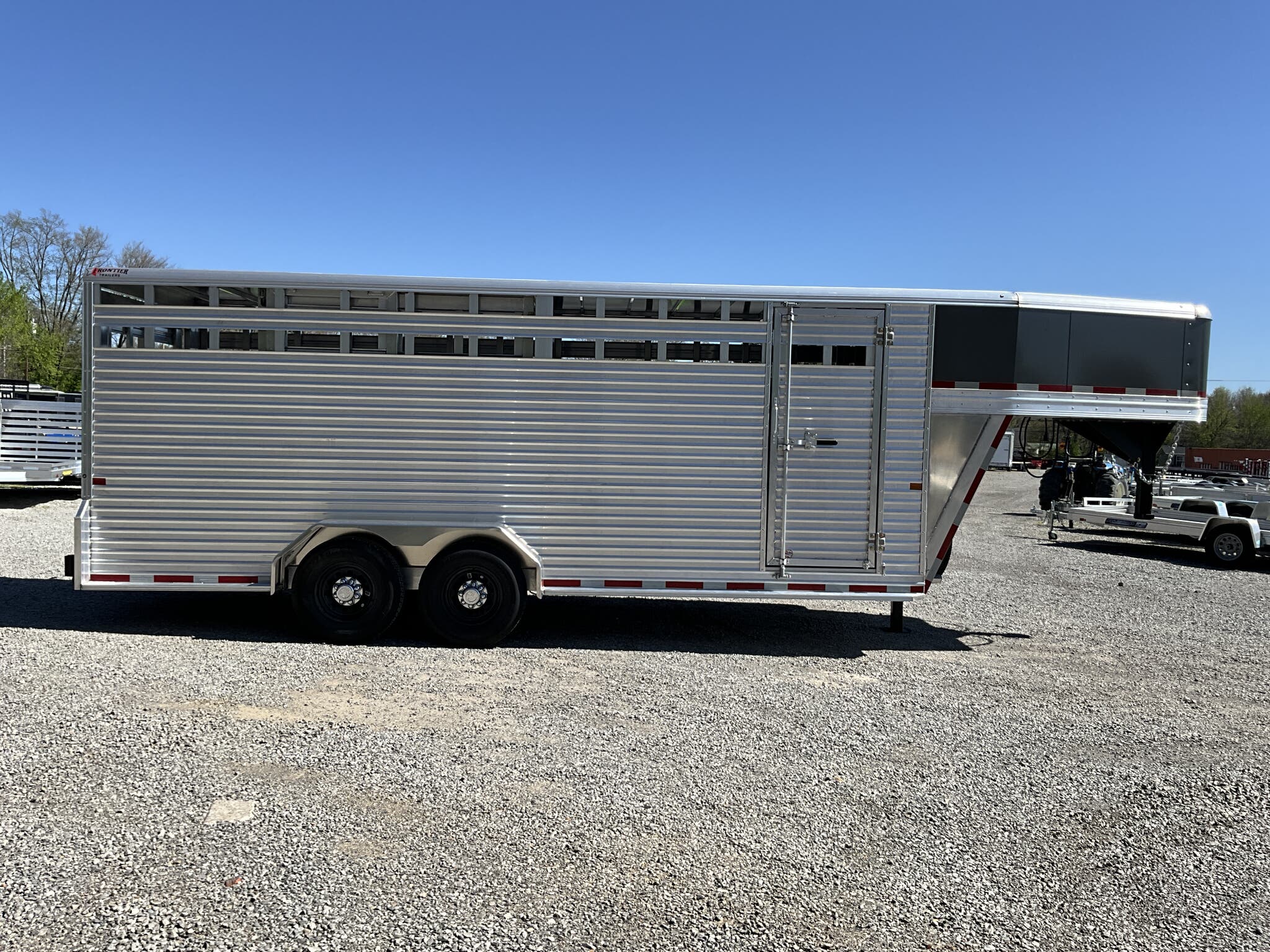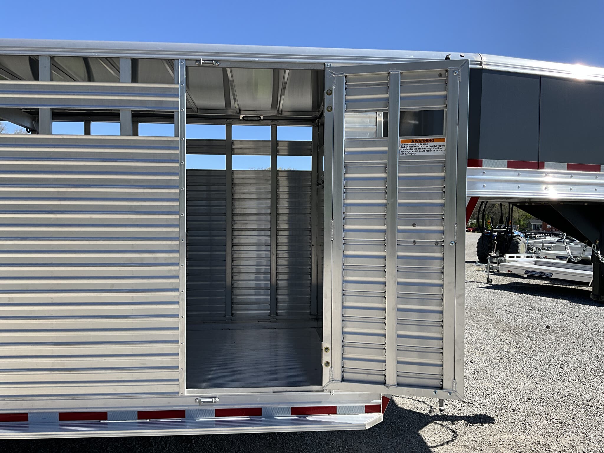 2026 FRONTIER 7' × 20' × 7' TALL GOOSENECK LIVESTOCK TRAILER, CHARCOAL ALUMINUM WITH BLACK GRAPHICS, ESCAPE DOOR, CENTER SLIDING CALF GATE — FOR SALE IN MOUNT VERNON, IL 62864