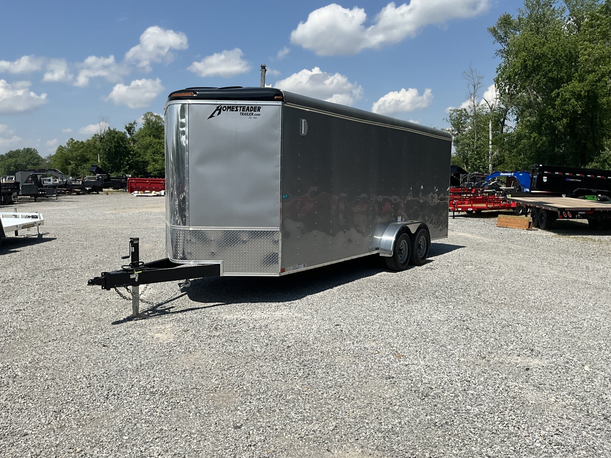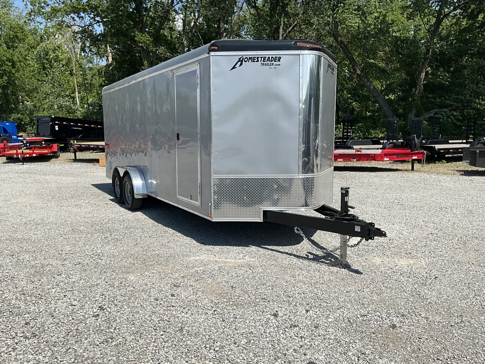 HOMESTEADER CHALLENGER 7 X 20 X 86 TALL TANDEM AXLE ENCLOSED CARGO TRAILER WITH RAMP DOOR SILVER FOR SALE IN ILLINOIS The 2024 Homesteader Challenger 7x20x86 tall tandem axle enclosed cargo trailer with ramp door is built for CONTRACTORS, COMMERCIAL USERS, and GENERAL HAULERS who need a dependable, long body enclosed trailer with heavy duty features. With a SILVER ALUMINUM EXTERIOR, V NOSE ROUND TOP DESIGN, and reinforced frame, this Challenger delivers both durability and value. This trailer includes a 32 SIDE DOOR WITH BAR LOCK AND DOOR HOLDBACK for easy access, plus a REAR RAMP DOOR WITH EXTENDED WOOD FLAP for smooth loading of equipment or cargo. Inside, you ll find a FULL 86 INTERIOR HEIGHT, a 3/4 PLYWOOD FLOOR, 3/8 PLYWOOD WALLS, and durable FLOW THRU VENTS for airflow. Built tough with 16 ON CENTER WALL POSTS AND FLOOR CROSSMEMBERS, this unit provides excellent structural support. The ONE PIECE ALUMINUM ROOF and SCREWED ALUMINUM EXTERIOR PANELS ensure long lasting weather protection. Additional exterior details include ALUMINUM TREADPLATE FENDERS and an EXTENDED TONGUE with an ADJUSTABLE HEIGHT 2 5/16 COUPLER for improved towing versatility. This trailer rides on TWO 5,200 LB ELECTRIC BRAKE AXLES WITH SPRING SUSPENSION, 15 RADIAL TIRES, and includes a 7K DROP LEG JACK for stable support. This trailer has an EMPTY WEIGHT OF APPROX. 3,000 LBS, a GVWR OF 9,990 LBS, and a PAYLOAD CAPACITY OF ABOUT 6,990 LBS. FEATURE HIGHLIGHTS: 2024 HOMESTEADER CHALLENGER 7X20X86 TALL TANDEM AXLE ENCLOSED TRAILER WITH RAMP DOOR SILVER EXTERIOR V NOSE ROUND TOP DESIGN IMPROVED AERODYNAMICS & STYLE 86 INTERIOR HEIGHT TALLER CLEARANCE FOR CARGO & EQUIPMENT 32 SIDE DOOR WITH BAR LOCK + DOOR HOLDBACK REAR RAMP DOOR WITH EXTENDED WOOD FLAP 3/4 PLYWOOD FLOOR, 3/8 PLYWOOD WALLS 16 O.C. WALL POSTS & FLOOR CROSSMEMBERS, SCREWED EXTERIOR ONE PIECE ALUMINUM ROOF, ALUMINUM TREADPLATE FENDERS DUAL 5,200 LB ELECTRIC BRAKE AXLES, 15 RADIAL TIRES EXTENDED TONGUE, 7K DROP LEG JACK, ADJUSTABLE HEIGHT 2 5/16 COUPLER EMPTY WEIGHT 3,000 LBS GVWR 9,