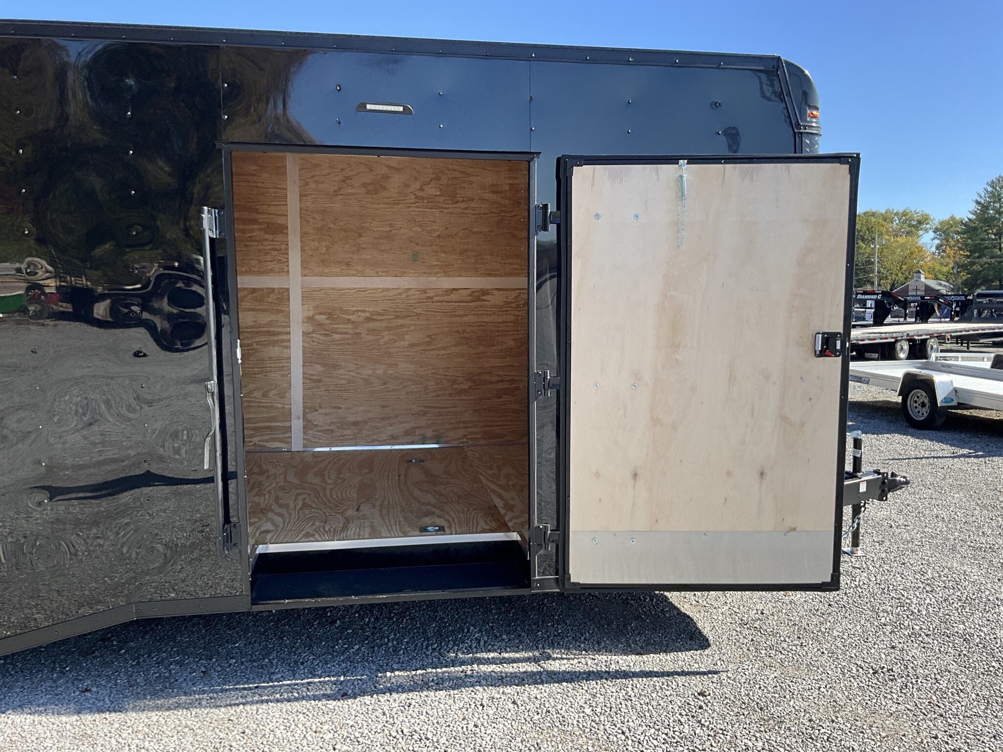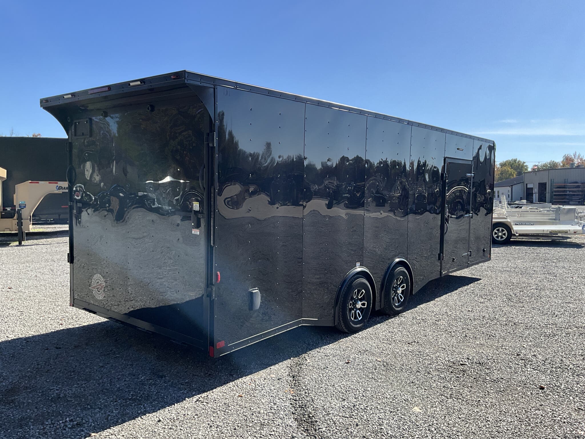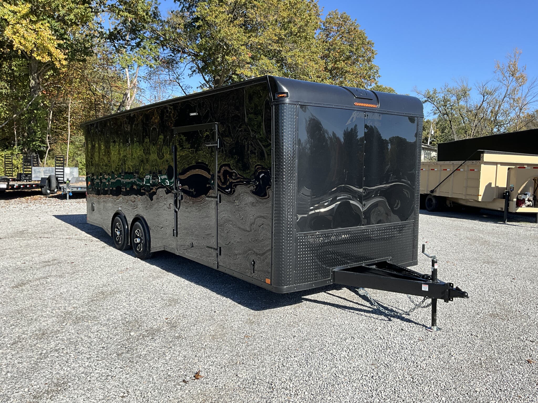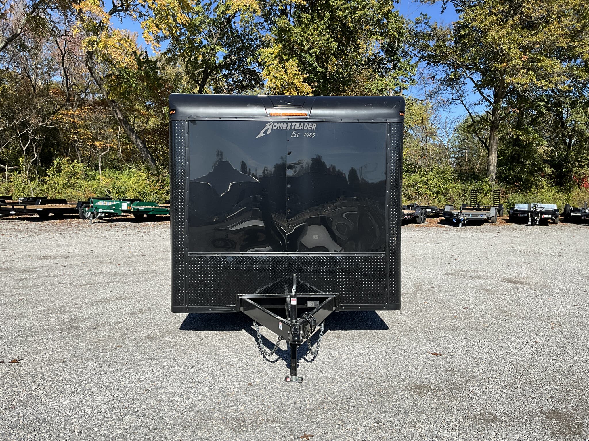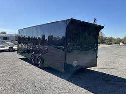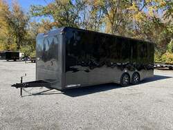 2026 HOMESTEADER CHAMPION 8.5' x 24' Enclosed Car Hauler Black .080 PolyCor Exterior, 48" Side Door w/ Flushlock & Bar Lock, 60" Extended Tongue w/ 2 5/16" Adjustable Coupler, Blacked Out Trim, Spread 5.2K Torsion Brake Axles, 15" Aluminum Wheels For Sale in Illinois Standout Options: 48" side door with flushlock and bar lock Standout Options: 60" extended tongue with adjustable 2 5/16" coupler Standout Options: Spread 5.2K torsion axles; 15" aluminum wheels; blacked out exterior trim Specs Series/Body: Champion enclosed auto hauler; 102" wide body Specs Exterior: Black .080 PolyCor aluminum; ATP front stoneguard; undercoated frame Specs Doors: 48" side entry (flush + bar lock); rear ramp door (Champion series standard) Specs Frame: 2x6 tube steel main rails; full height crossmembers 16" O.C.; tubular wall posts 16" O.C. Specs Floor/Walls: 3/4" exterior grade plywood floor; 3/8" plywood wall liner Specs Roof: One piece aluminum roof; tubular roof supports Specs Axles/Brakes: (2) 5,200 lb torsion axles with electric brakes (spread axle option) Specs Tires/Wheels: 15" radial trailer tires; aluminum wheels Specs Lighting: LED exterior lighting; interior lights with wall switch Specs Tie Downs/Load: 4 D ring tie downs (Champion series standard); 4' beavertail at ramp (8.5 wide series standard) Specs Wiring/Plug: Sealed wiring; RV style 7 way plug; breakaway kit with charger (tandem) Specs Coupler/Jack/Safety: Adjustable 2 5/16" coupler on 60" extended tongue; A frame jack; safety chains Specs Warranty: 3 year limited structural warranty; torsion axle manufactured warranty (typ. 11 year) Weights & Capacities Total Axle Capacity (used for payload math): 10,400 lb Weights & Capacities Empty/Trailer Weight: 3,828 lb Weights & Capacities Payload on Axles (Capacity Empty): 10,400 3,828 = 6,572 lb Weights & Capacities Target Tongue Load (Bumper pull @ ~10% of Capacity): 1,040 lb Weights & Capacities Total Effective Payload (Axles + Tongue Support): 6,572 + 1,040 = 7,612 lb Delivery from 62864 (Lower 48): Up to 100 miles: $150 Delivery from 62864 (Lower 48): 101 300 miles: $2.00/mile Delivery from 62864 (Lower 48): 301 1200 miles: $3.00/mile Delivery from 62864 (Lower 48): Over 1200 miles: $4.00/mile