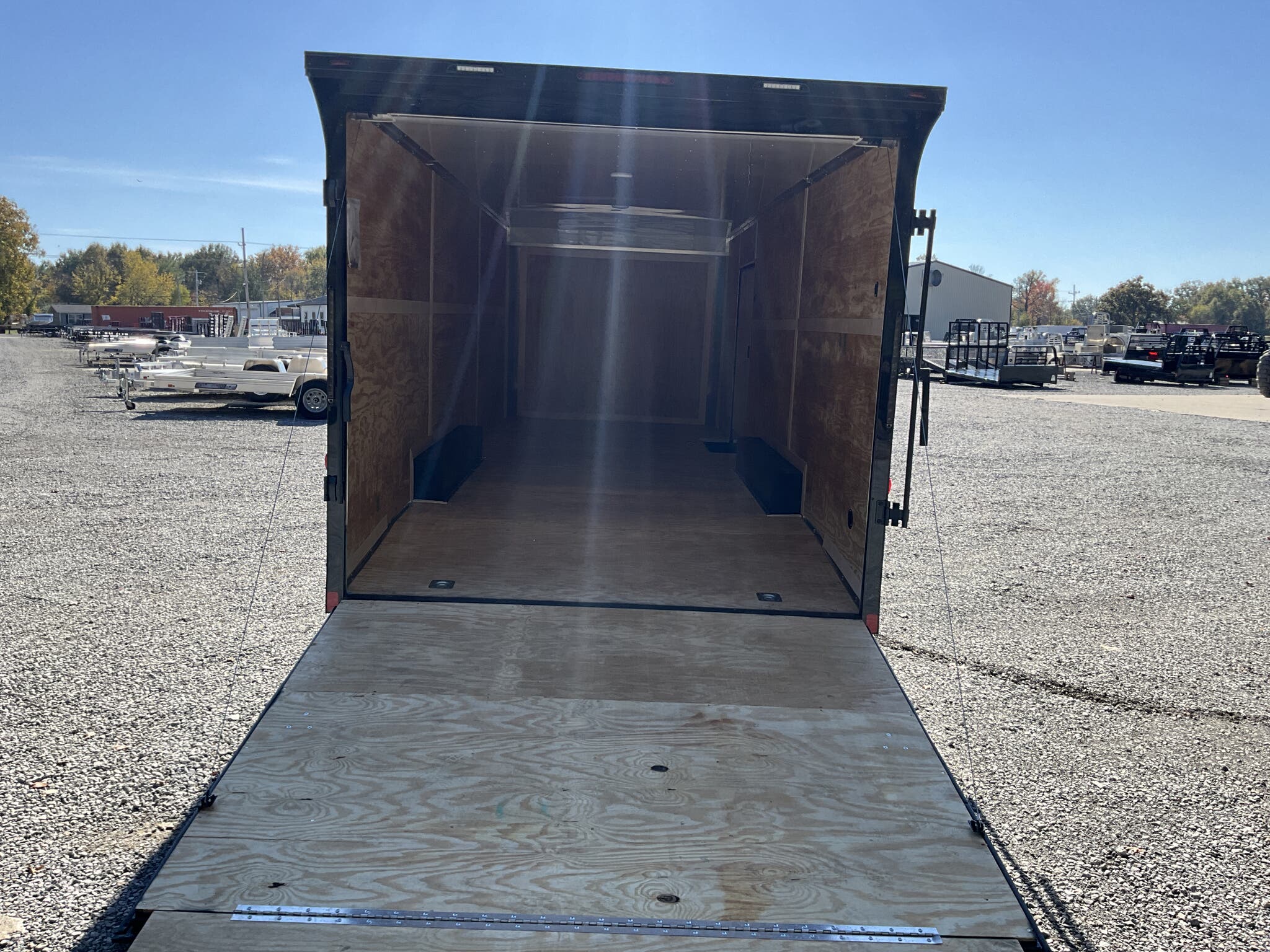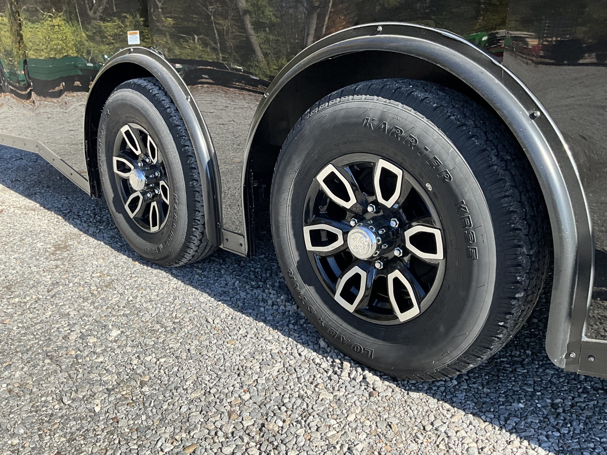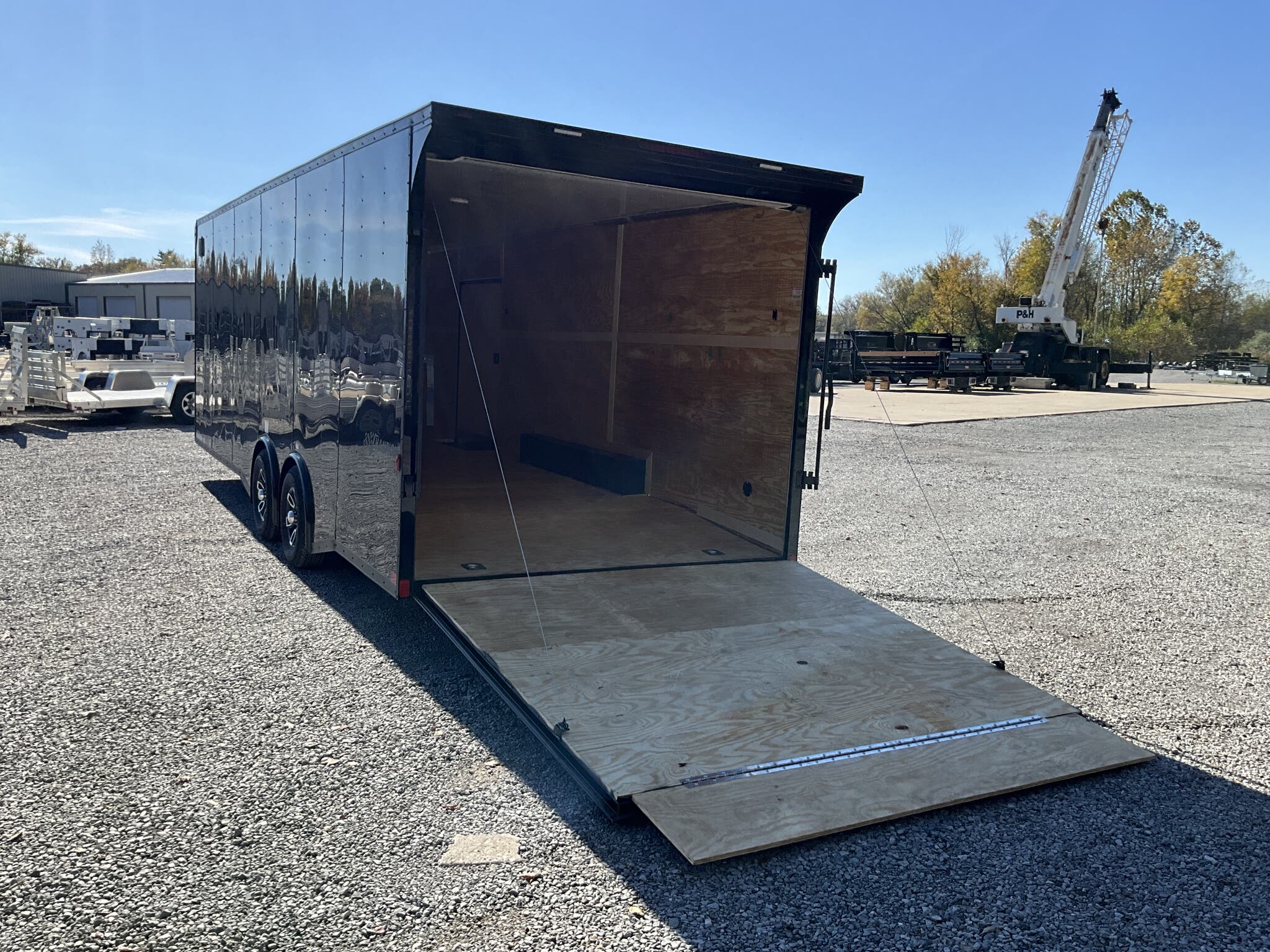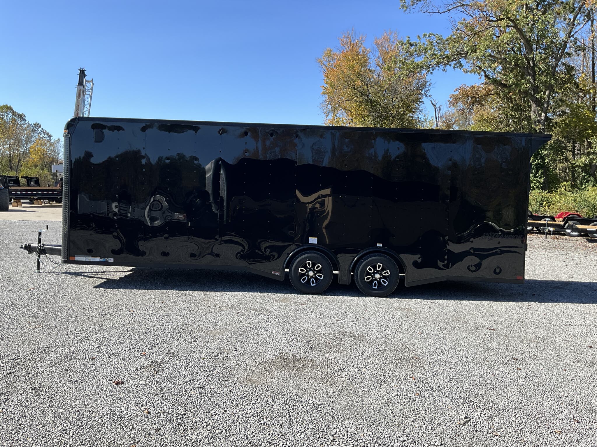 2026 HOMESTEADER CHAMPION 8.5' x 24' Enclosed Car Hauler Black .080 PolyCor Exterior, 48" Side Door w/ Flushlock & Bar Lock, 60" Extended Tongue w/ 2 5/16" Adjustable Coupler, Blacked Out Trim, Spread 5.2K Torsion Brake Axles, 15" Aluminum Wheels For Sale in Illinois Standout Options: 48" side door with flushlock and bar lock Standout Options: 60" extended tongue with adjustable 2 5/16" coupler Standout Options: Spread 5.2K torsion axles; 15" aluminum wheels; blacked out exterior trim Specs Series/Body: Champion enclosed auto hauler; 102" wide body Specs Exterior: Black .080 PolyCor aluminum; ATP front stoneguard; undercoated frame Specs Doors: 48" side entry (flush + bar lock); rear ramp door (Champion series standard) Specs Frame: 2x6 tube steel main rails; full height crossmembers 16" O.C.; tubular wall posts 16" O.C. Specs Floor/Walls: 3/4" exterior grade plywood floor; 3/8" plywood wall liner Specs Roof: One piece aluminum roof; tubular roof supports Specs Axles/Brakes: (2) 5,200 lb torsion axles with electric brakes (spread axle option) Specs Tires/Wheels: 15" radial trailer tires; aluminum wheels Specs Lighting: LED exterior lighting; interior lights with wall switch Specs Tie Downs/Load: 4 D ring tie downs (Champion series standard); 4' beavertail at ramp (8.5 wide series standard) Specs Wiring/Plug: Sealed wiring; RV style 7 way plug; breakaway kit with charger (tandem) Specs Coupler/Jack/Safety: Adjustable 2 5/16" coupler on 60" extended tongue; A frame jack; safety chains Specs Warranty: 3 year limited structural warranty; torsion axle manufactured warranty (typ. 11 year) Weights & Capacities Total Axle Capacity (used for payload math): 10,400 lb Weights & Capacities Empty/Trailer Weight: 3,828 lb Weights & Capacities Payload on Axles (Capacity Empty): 10,400 3,828 = 6,572 lb Weights & Capacities Target Tongue Load (Bumper pull @ ~10% of Capacity): 1,040 lb Weights & Capacities Total Effective Payload (Axles + Tongue Support): 6,572 + 1,040 = 7,612 lb Delivery from 62864 (Lower 48): Up to 100 miles: $150 Delivery from 62864 (Lower 48): 101 300 miles: $2.00/mile Delivery from 62864 (Lower 48): 301 1200 miles: $3.00/mile Delivery from 62864 (Lower 48): Over 1200 miles: $4.00/mile