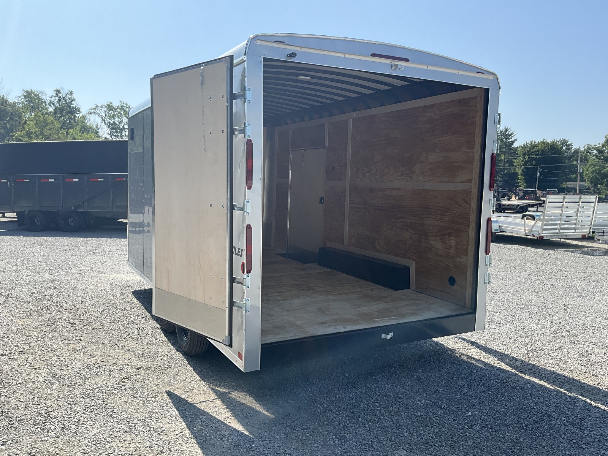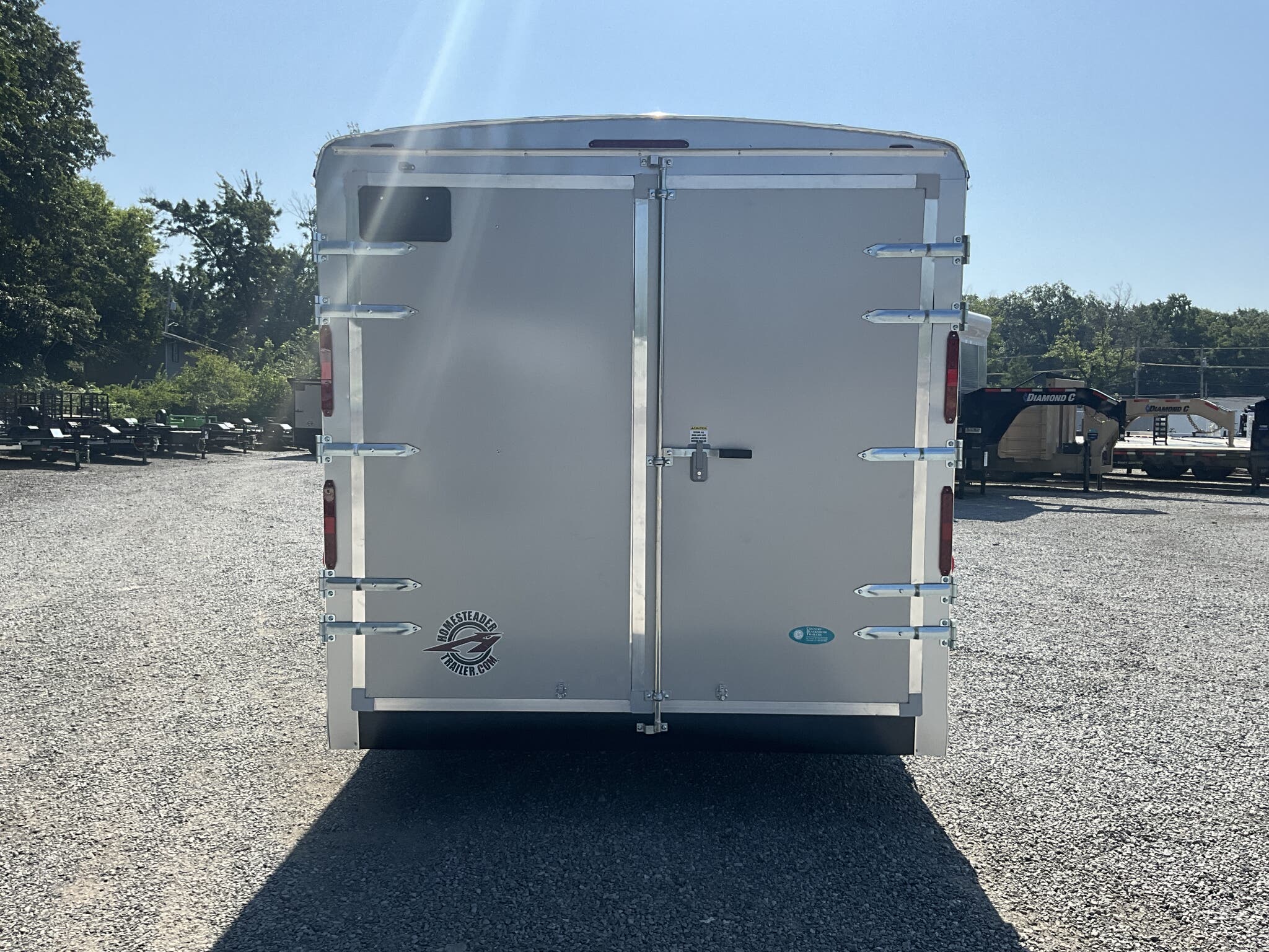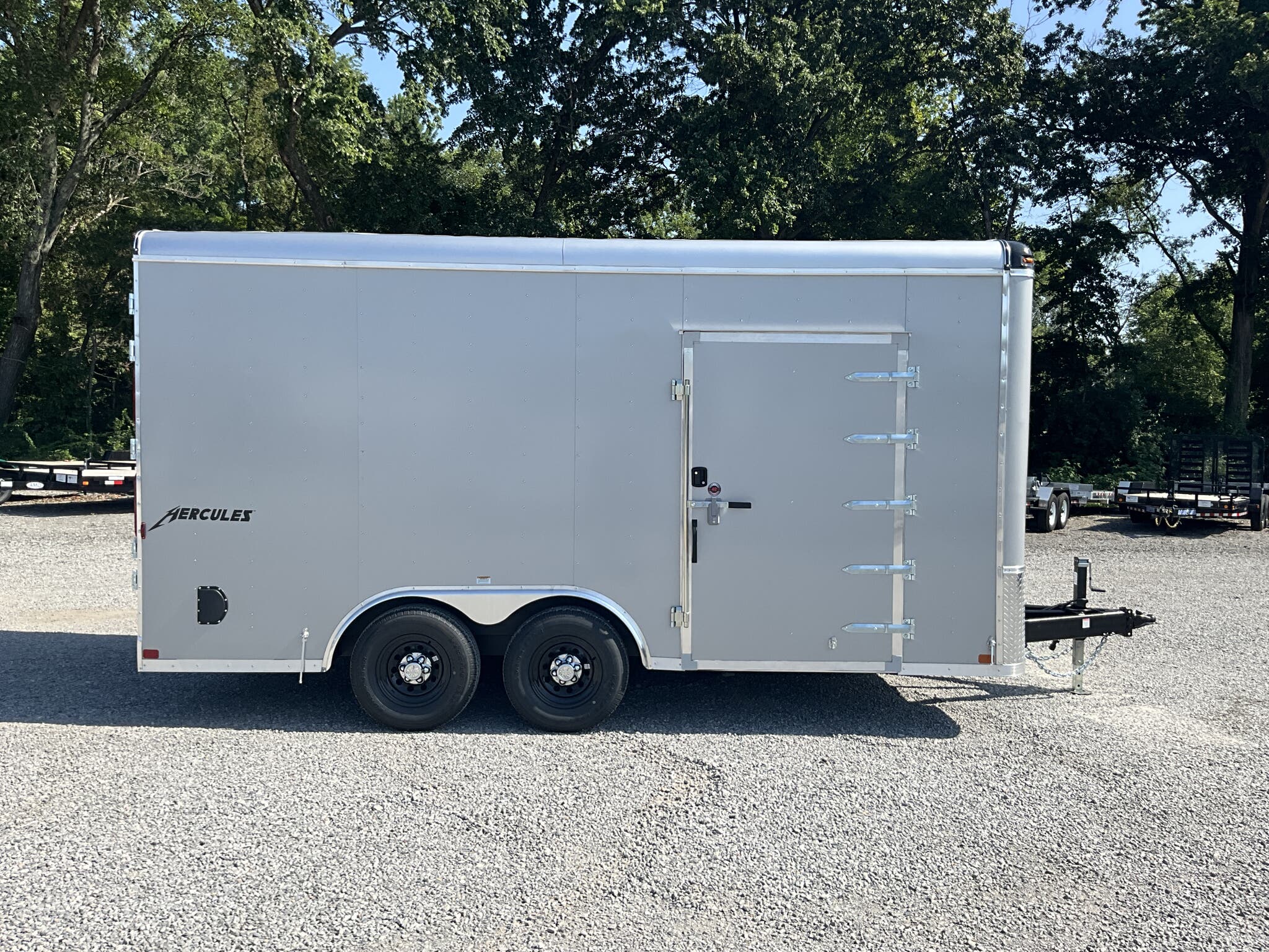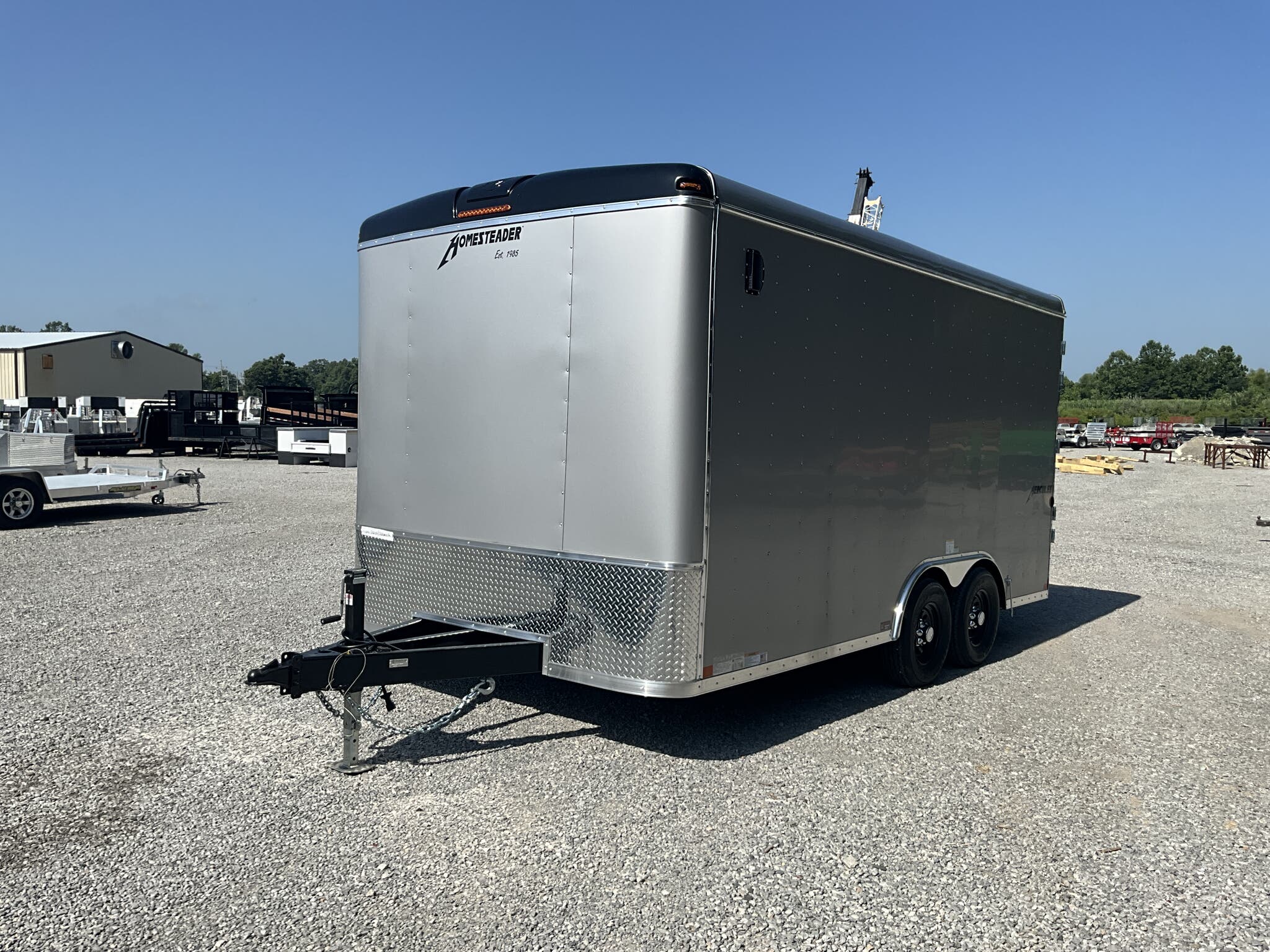 2026 HOMESTEADER HERCULES 8.5' 16' 7'6" TALL ENCLOSED CARGO TRAILER, SILVER MIST .080 POLYCOR, REAR DOUBLE DOORS FOR SALE IN MOUNT VERNON, IL 62864 Feature: Heavy duty Hercules series construction Feature: .080 Polycor aluminum exterior upgrade Feature: Extra tall 7'6" interior height Feature: 48" side door with flush lock and extra hinges Feature: (3) interior LED dome lights with wall switch Specs Model: Hercules Specs Size: 8.5' 16' Specs Exterior: Silver Mist .080 Polycor aluminum exterior Specs Interior Height: 7'6" tall interior clearance Specs Axles/Brakes: (2) 5,200 lb torsion axles with electric brakes Specs Suspension: Torsion suspension Specs Frame: Heavy duty frame with 12" O.C. crossmembers, wall posts, and roof bows Specs Roof: One piece aluminum roof Specs Floor/Walls: 3/4" plywood floor; 3/8" plywood walls Specs Doors: Rear double doors with double LED tail lights; 48" side door with flush lock and extra hinges Specs Lighting: (3) interior LED dome lights with wall switch; LED exterior lighting package Specs Tongue: 60" extended tongue with HD V tongue lid storage Specs Coupler: Adjustable 2 5/16" coupler Specs Jack: 8K drop leg jack Specs Certification: NATM compliant Specs Warranty: 3 year Homesteader structural warranty Weights & Capacities GVWR: 9,990 lb Empty Weight: 3,126 lb Payload on Axles: 9,990 3,126 = 6,864 lb Target Tongue Load (10% of GVWR): 999 lb Total Effective Payload: 7,863 lb Delivery from 62864 (Lower 48) Up to 100 miles $150 101 300 miles $2.00/mile 301 1200 miles $3.00/mile Over 1200 miles $4.00/mile