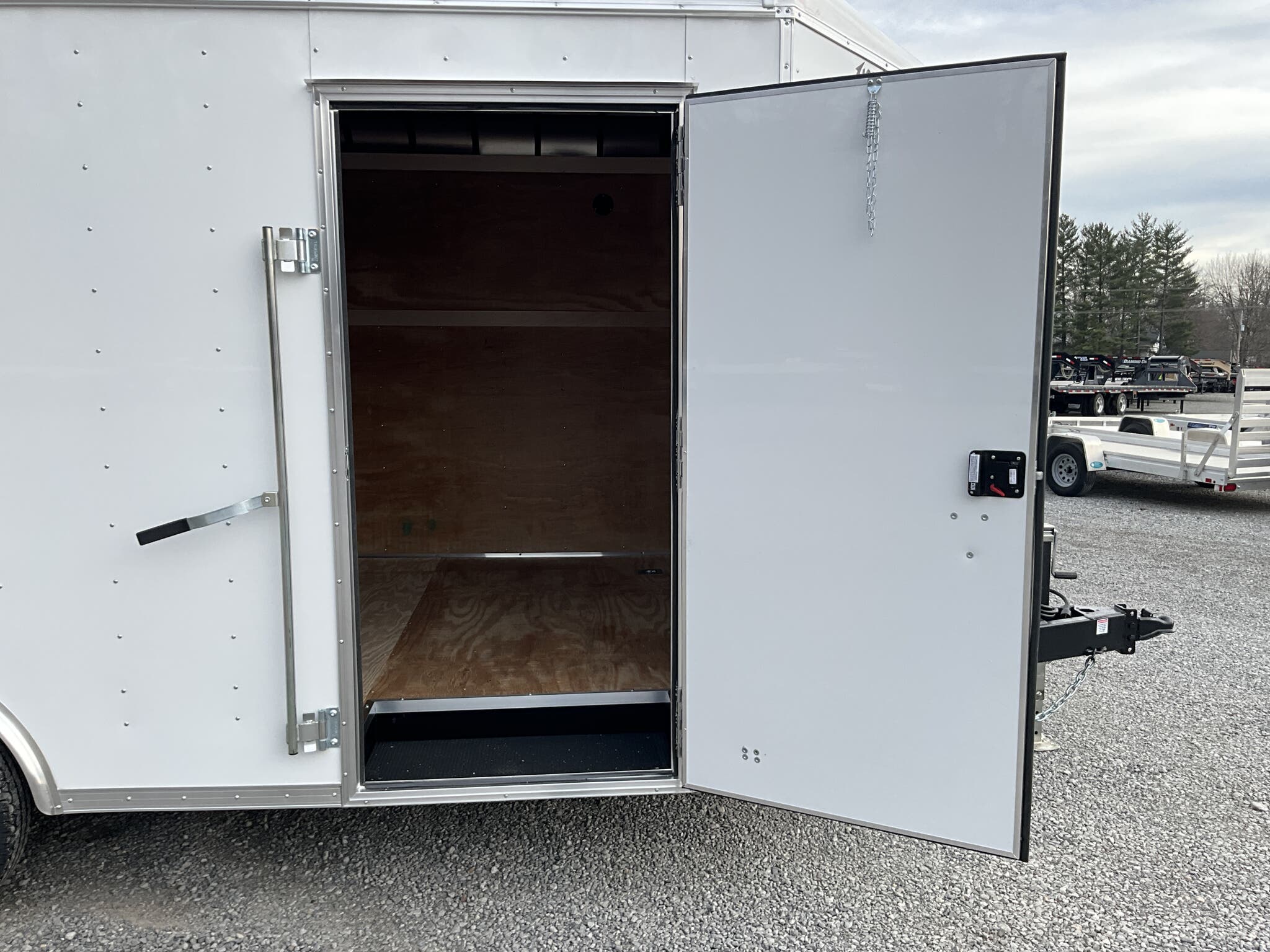 2026 Homesteader Hercules 8.5 16 Enclosed Cargo Trailer 10,000 GVWR White For Sale in Illinois OVERVIEW: 2026 HOMESTEADER HERCULES 8.5 16 TANDEM AXLE ENCLOSED TRAILER HERCULES HEAVY DUTY SERIES WITH UPGRADED STRUCTURE AND TORSION SUSPENSION 6.5 SIDEWALL HEIGHT WITH HERCULES ROOF BOW DESIGN (APPROX. 7 INTERIOR HEIGHT) WHITE ALUMINUM EXTERIOR WITH V NOSE AND FULL HEAVY DUTY RAMP PACKAGE SPECIFICATIONS: Frame: Heavy duty Hercules steel frame GVWR: 10,000 lbs Axles: (2) 5,200 lb torsion axles with electric brakes Suspension: Torsion suspension for smoother towing and reduced maintenance Exterior: White aluminum siding with matching white nose cap V Nose: 8.5 wide V nose (requires extended tongue) Tongue: 72 extended tongue with adjustable coupler Coupler: 2 5/16 adjustable coupler Jack: 8K drop leg jack Crossmembers: 12 on center (upgraded from standard 16 ) Wall Posts: 12 on center (upgraded from standard 16 ) Roof Bows: 12 on center round roof bows Roof: One piece aluminum roof Floor/Walls: 3/4 plywood floor and 3/8 plywood walls DOORS & ACCESS: 36 74 bonded side door with bar lock and lockable hasp Double reinforced 8.5 wide rear ramp door with flap Heavy duty ramp door package for 6.5 sidewall height INTERIOR & TIE DOWNS: (4) recessed 5,000 lb floor mounted D rings Interior LED dome light with wall switch EXTERIOR FEATURES: LED exterior lighting Double LED tail lights Aluminum fenders Rear bogey wheels to protect trailer on steep transitions WEIGHTS: Empty Weight: 3,255 lbs GVWR: 10,000 lbs Payload Capacity: 6,745 lbs Tongue Weight Capacity (10% of GVWR Bumper Pull): 1,000 lbs Total Effective Payload: 7,745 lbs CONDITION & NOTES: New 2026 model Hercules series heavier duty than standard Homesteader enclosed trailers Excellent for equipment, UTVs, cargo, or contractor use DELIVERY RATES FROM ZIP CODE 62864: Up to 100 miles $150 101 to 300 miles $2.00 per mile 301 to 1,200 miles $3.00 per mile Over 1,200 miles $4.00 per mile (Lower 48 states only)