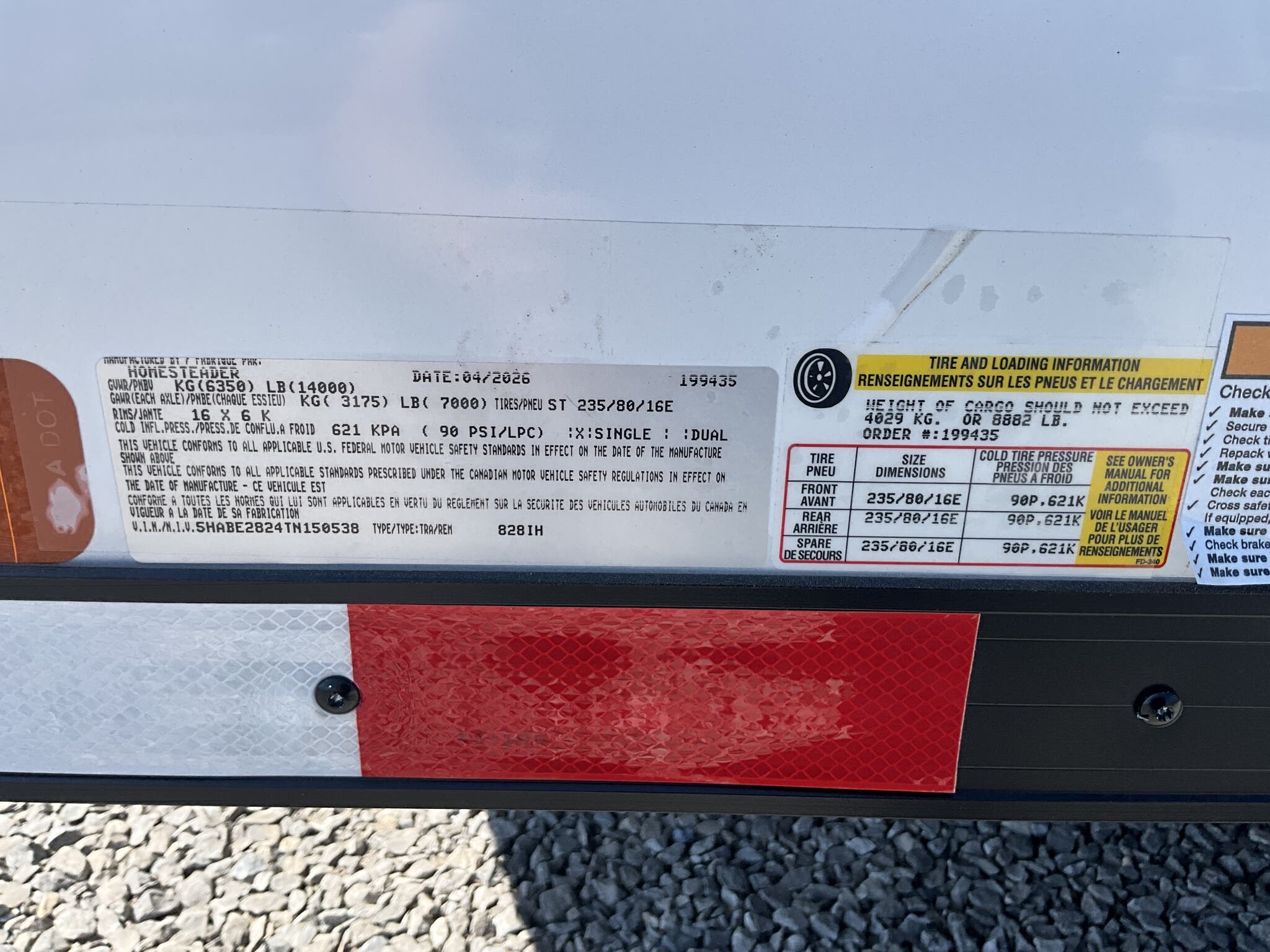 Specs — Axles/Brakes: (2) 7,000 lb torsion axles with electric brakes (spread axle)